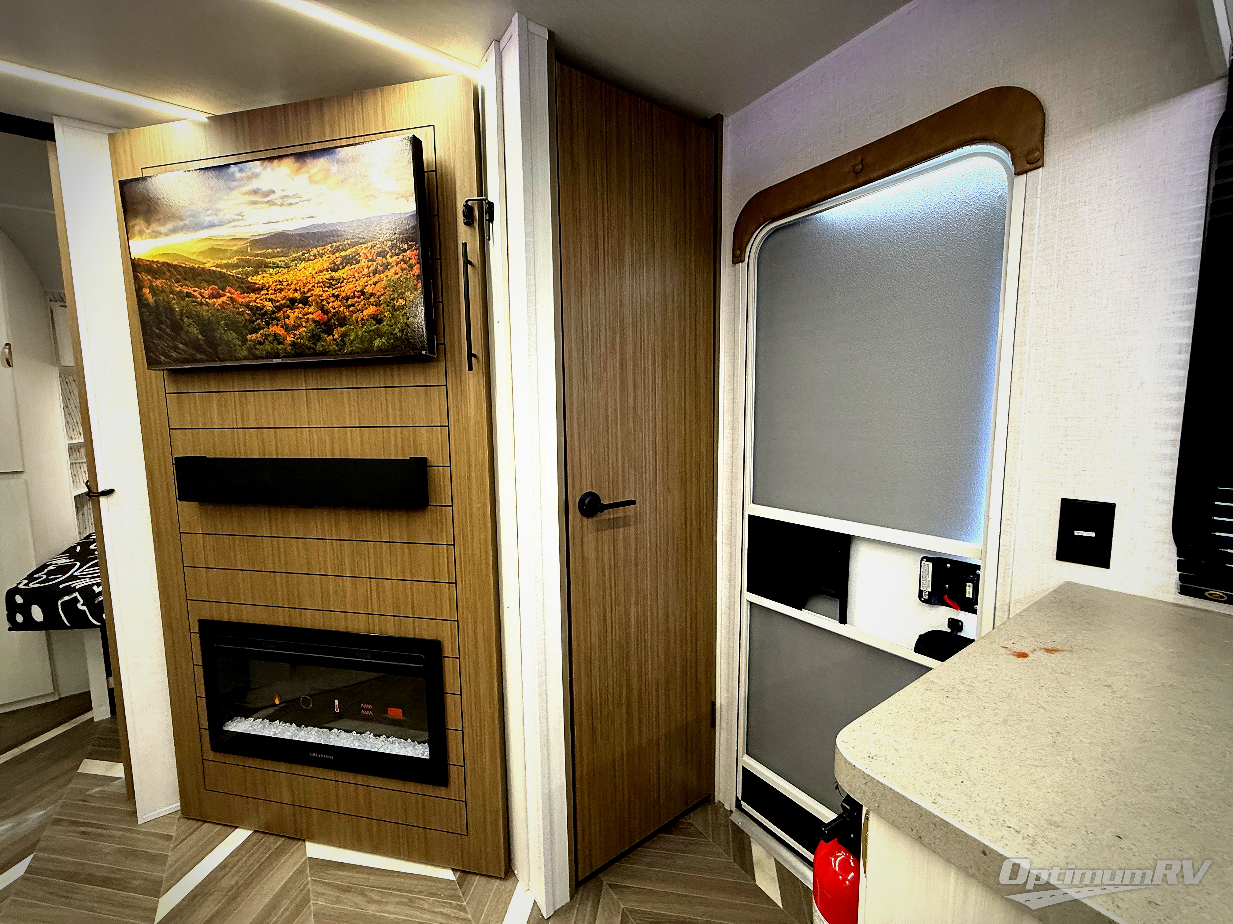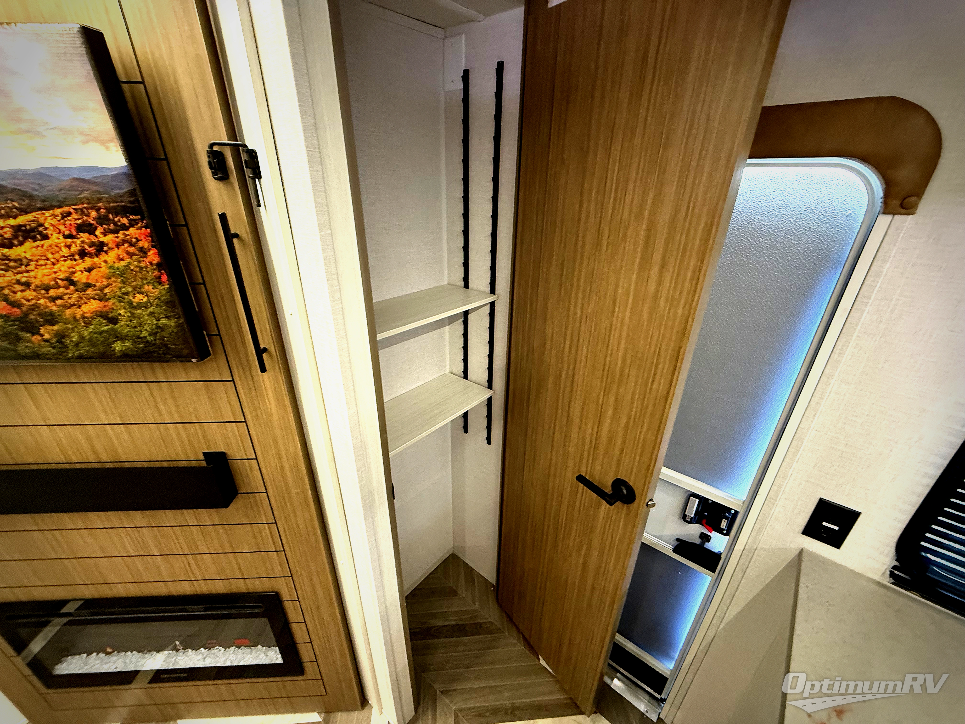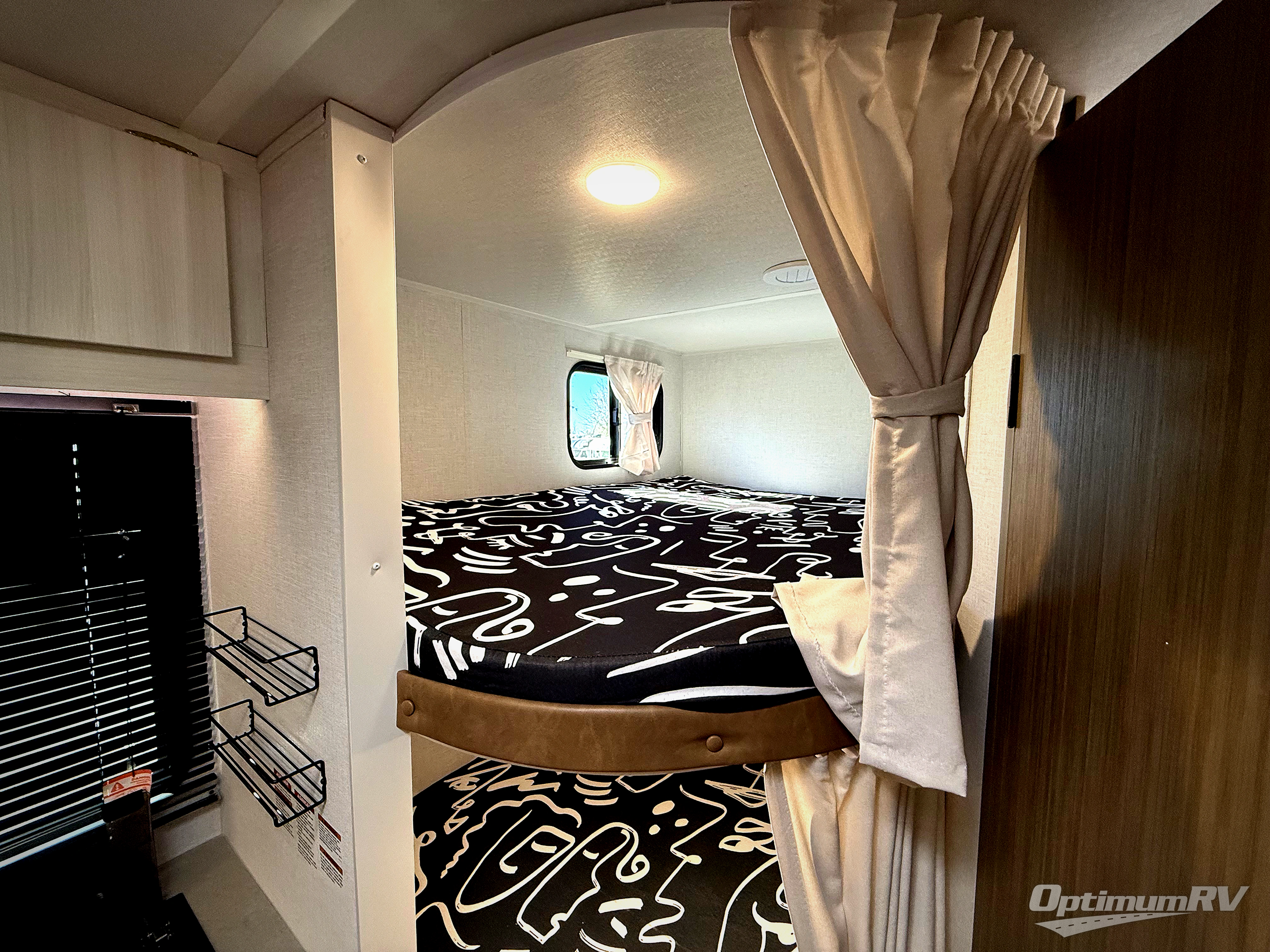 Trips to the lake just got sweeter in this travel trailer with a large slide for more space. Here, you'll find an versa lounge , and the entertainment center with a fireplace will make it feel a little more like home. A full bath with a 36" x 30" shower will let you clean up each day without having to use the camp's facilities, and the double-size bunks with an exterior bike door will let you easily pack gear in. Head up front to enjoy the private bedroom all to yourselves with a king bed and dual wardrobes for wrinkle-free clothes!