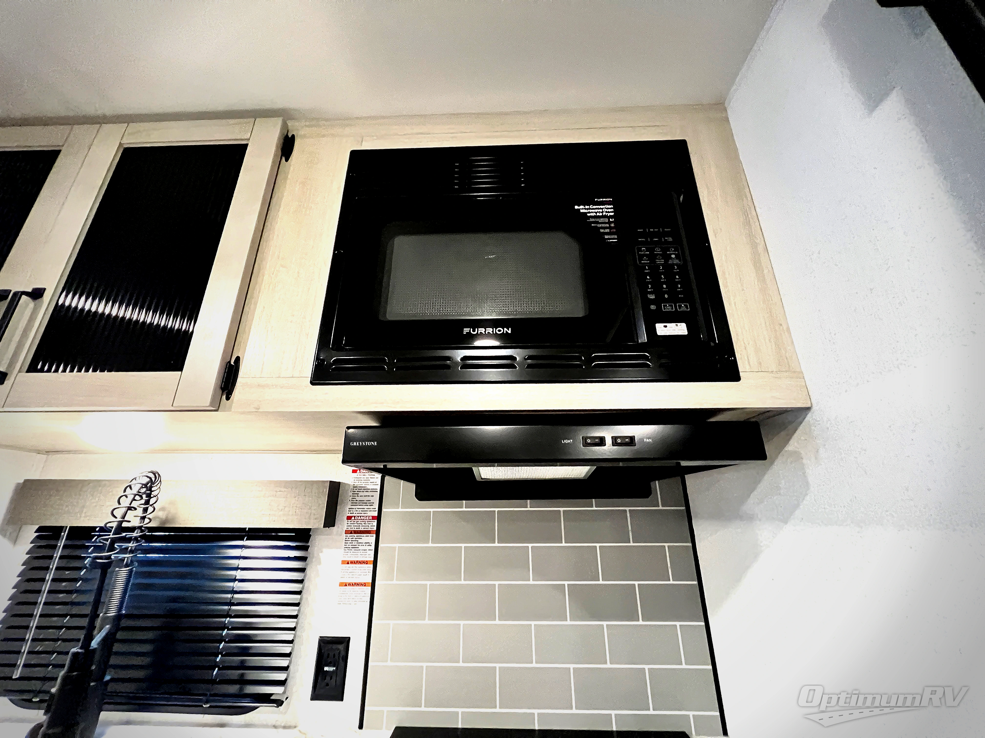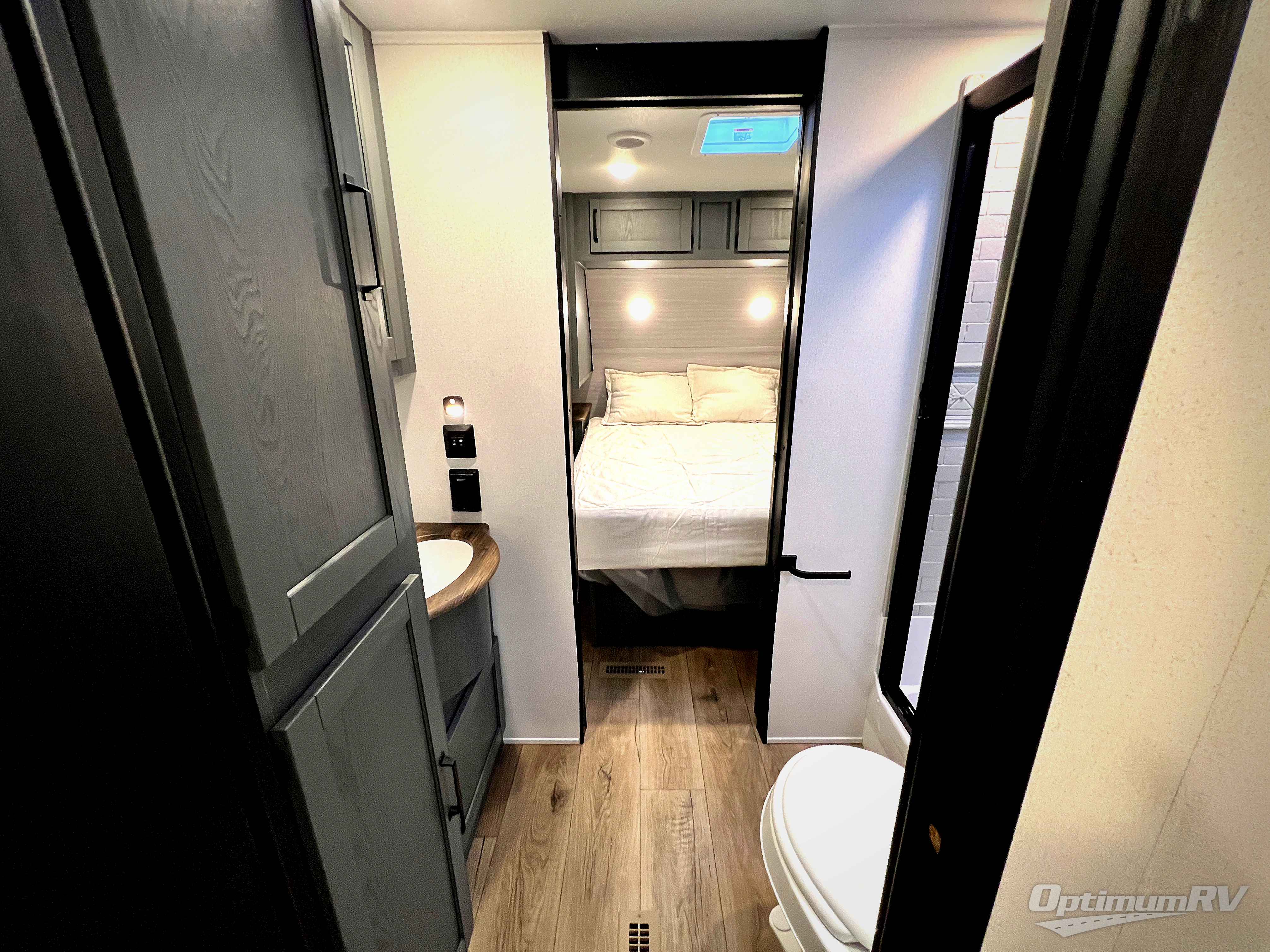 This rear kitchen travel trailer will be perfect for camping trips to the lake or woods! Once you've made breakfast on the stainless steel oven and range, you can dine at the booth dinette or take your plate outdoors to sit under the 18' electric awning. There is also a sofa slide out inside for a comfy place to relax. The walk-thru bath features a shower with a seat for added comfort, and you'll love having your own space in the front master bedroom. Here, you'll find a queen bed plus dual bedside closets to keep your things organized!