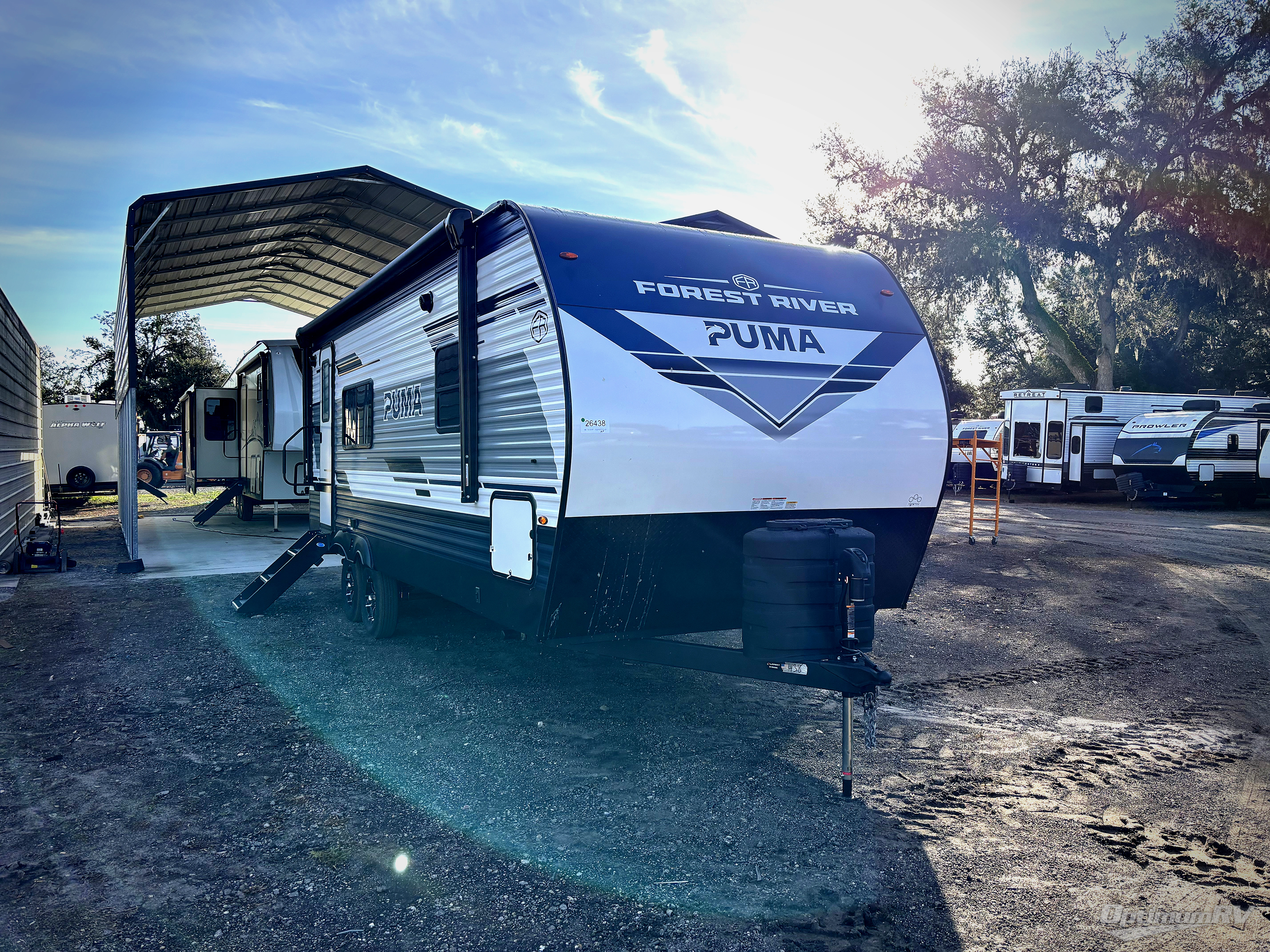 If you're looking for family-fun adventures then you need one of these Palomino Puma fifth wheels or travel trailers! They are built rugged, easy to tow, and jam packed with features. The Darco wrapped underbelly will protect your units vitals and the AlphaPly roofing membrane covers it. They also have new aluminum wheels and a powder coated steel I-beam frame. Inside, the Congoleum linoleum will be easy to keep clean, and the night roller shades will provide privacy when it's time to turn in. You'll also enjoy an electric awning with an LED light strip plus an AM/FM/Bluetooth stereo and two outside speakers to keep the party going!