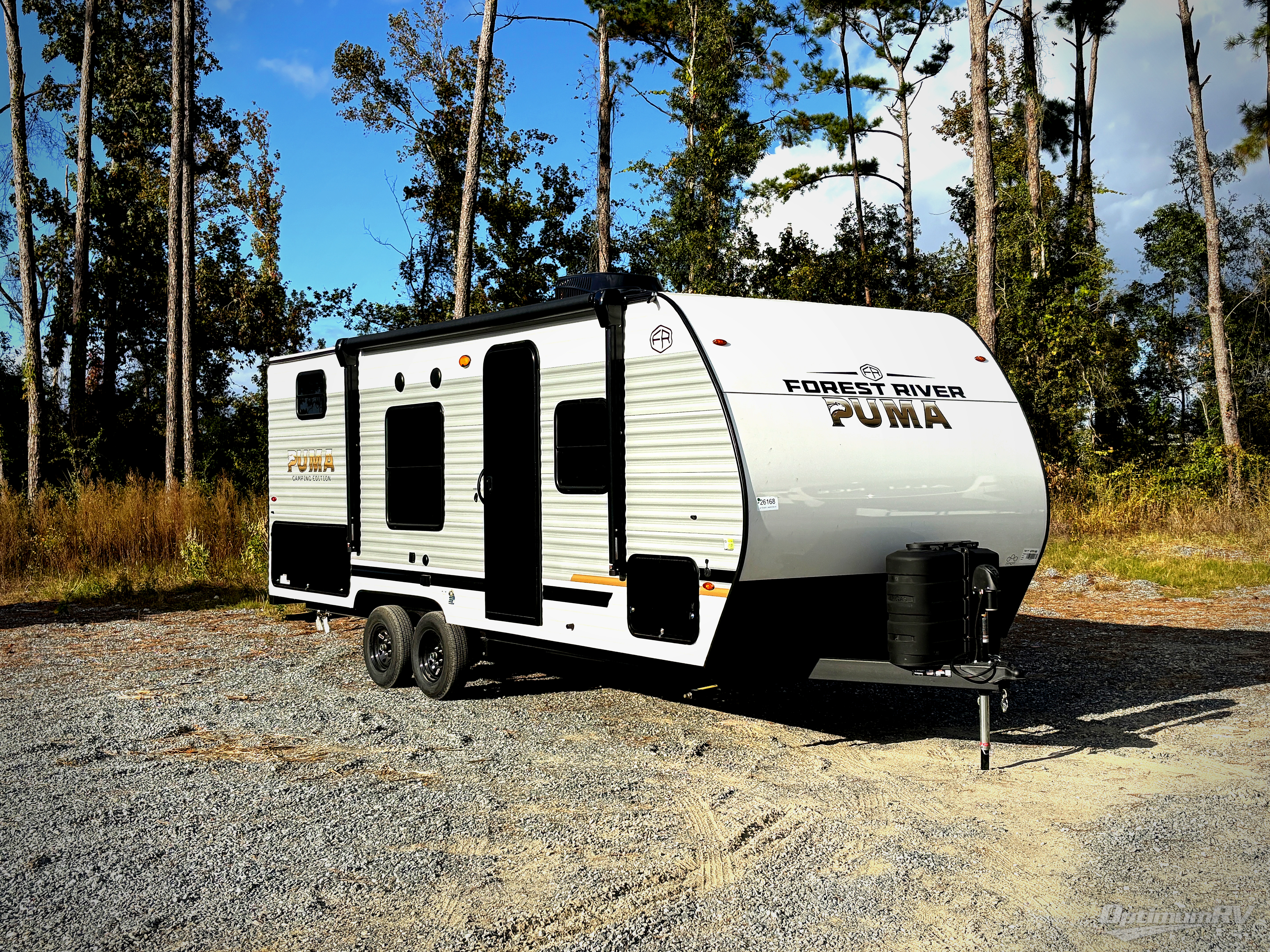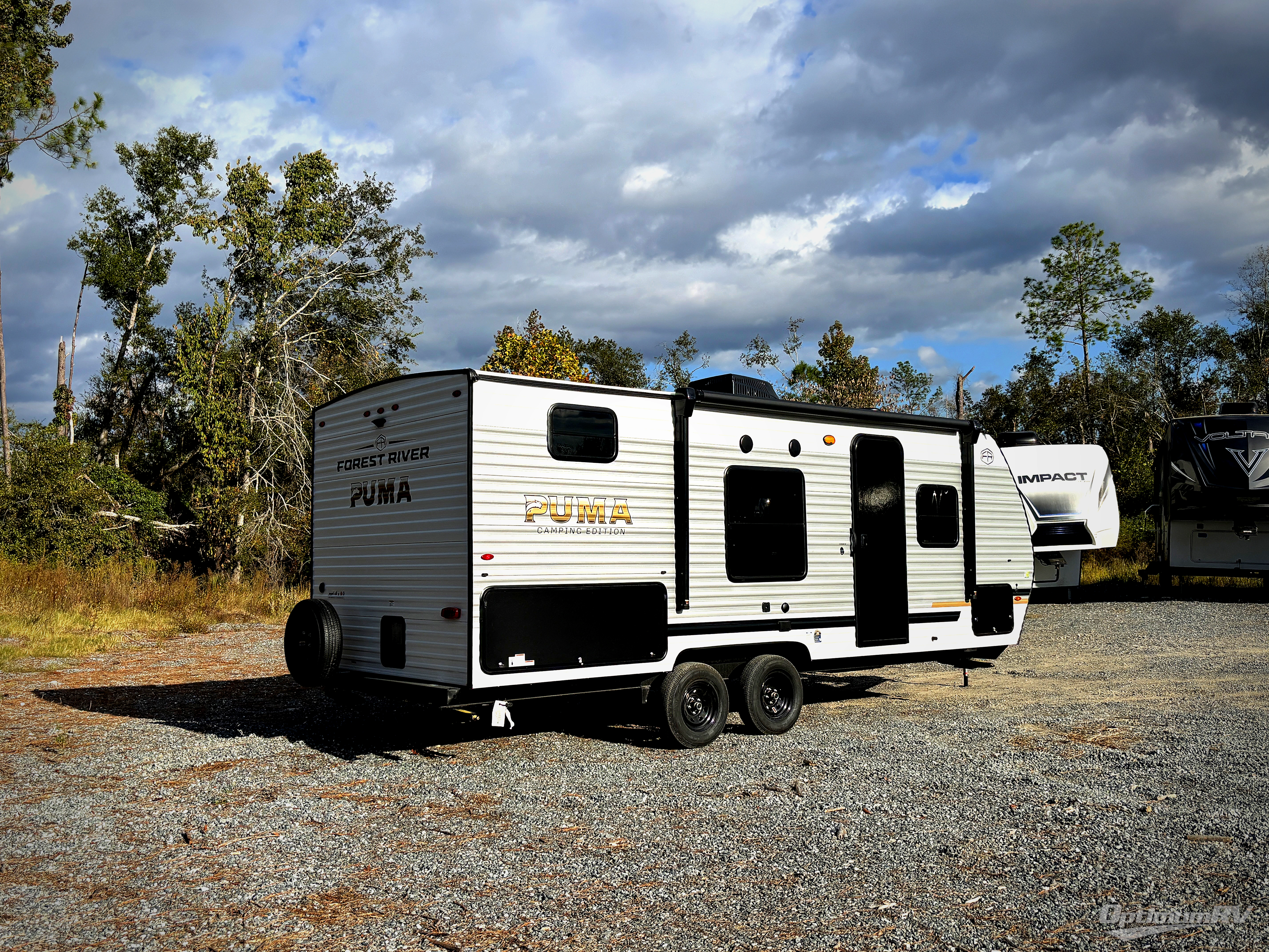 If you're looking for family-fun adventures then you need one of these Palomino Puma fifth wheels or travel trailers! They are built rugged, easy to tow, and jam packed with features. The Darco wrapped underbelly will protect your units vitals and the AlphaPly roofing membrane covers it. They also have new aluminum wheels and a powder coated steel I-beam frame. Inside, the Congoleum linoleum will be easy to keep clean, and the night roller shades will provide privacy when it's time to turn in. You'll also enjoy an electric awning with an LED light strip plus an AM/FM/Bluetooth stereo and two outside speakers to keep the party going!