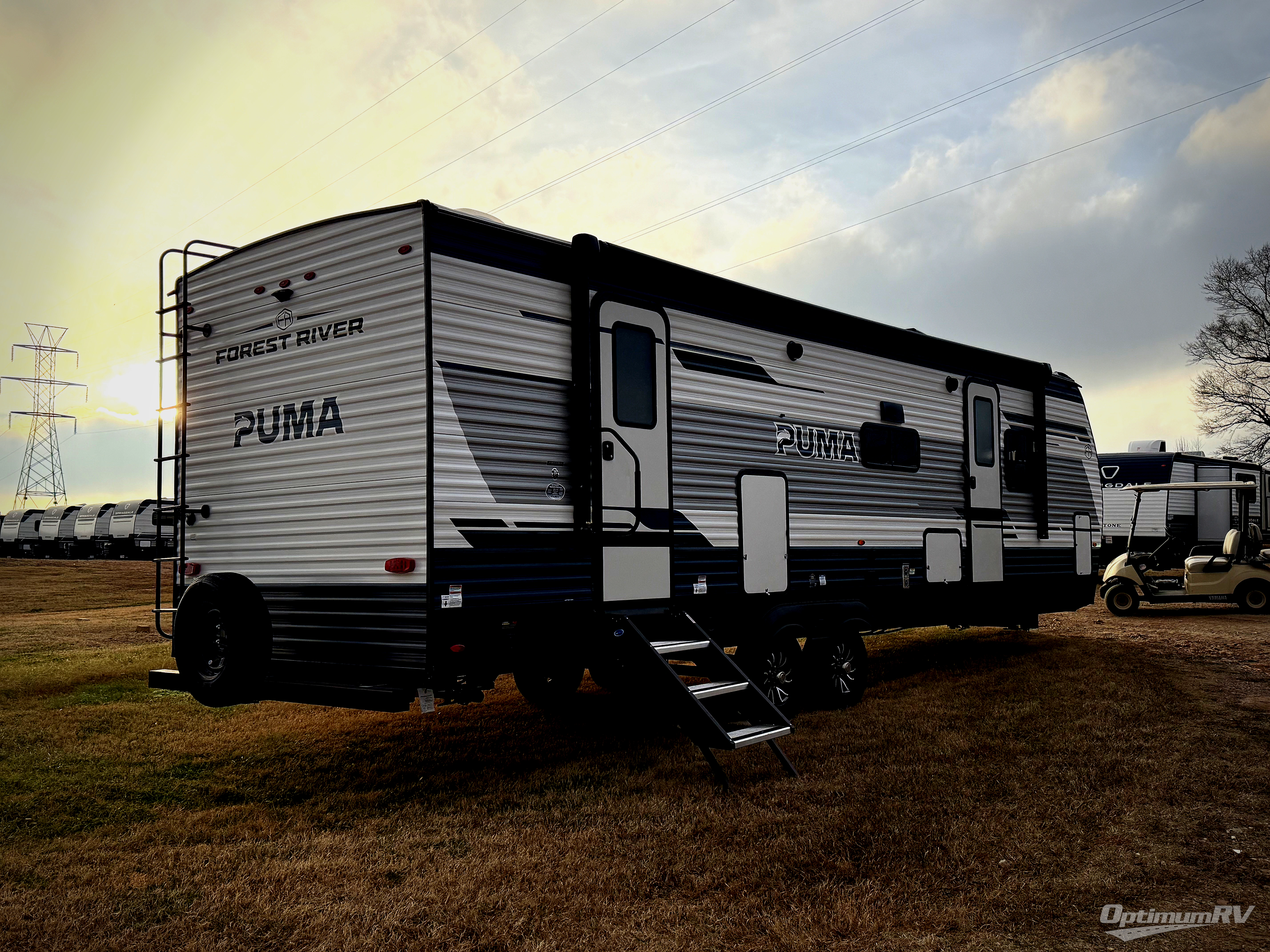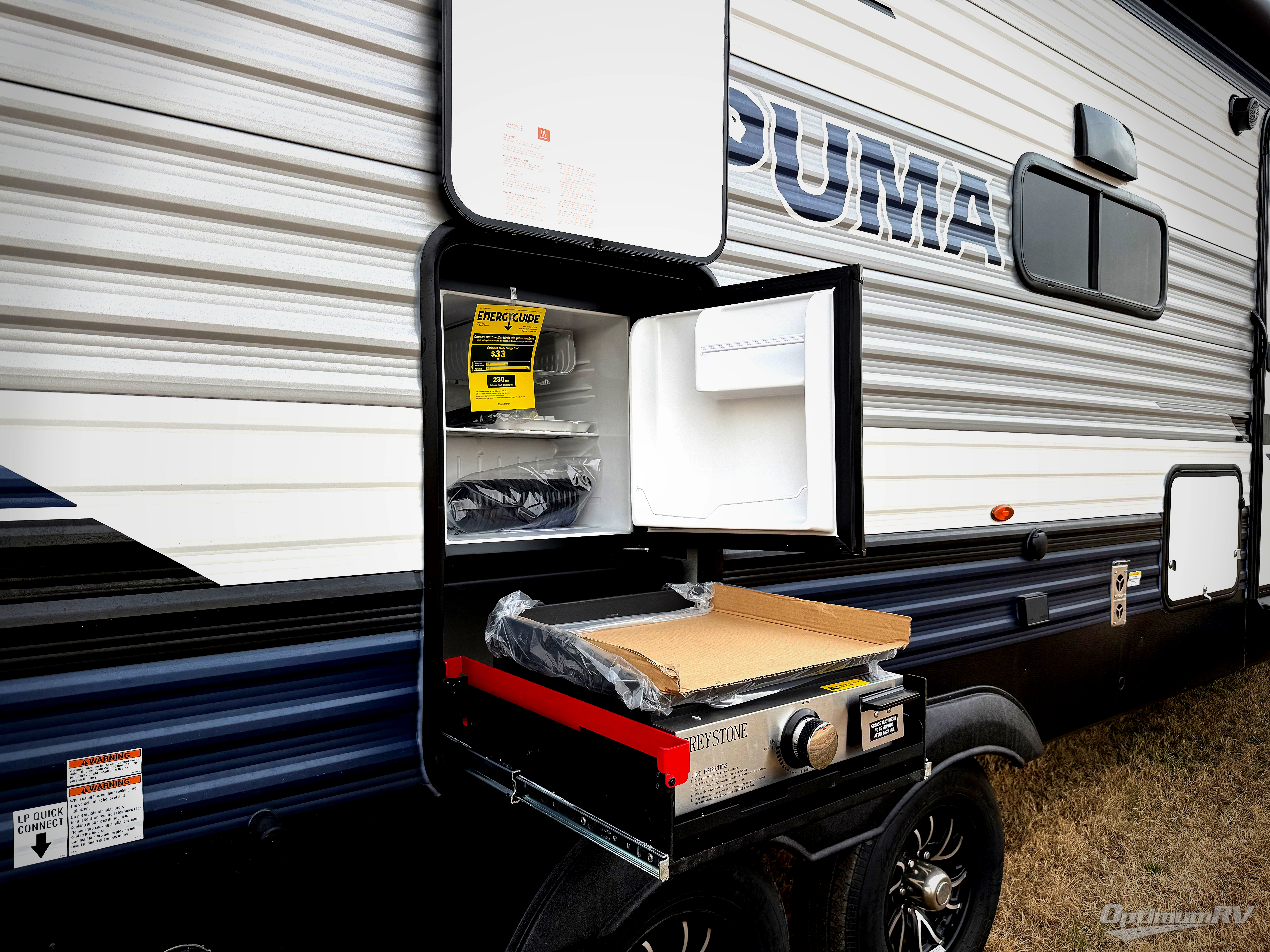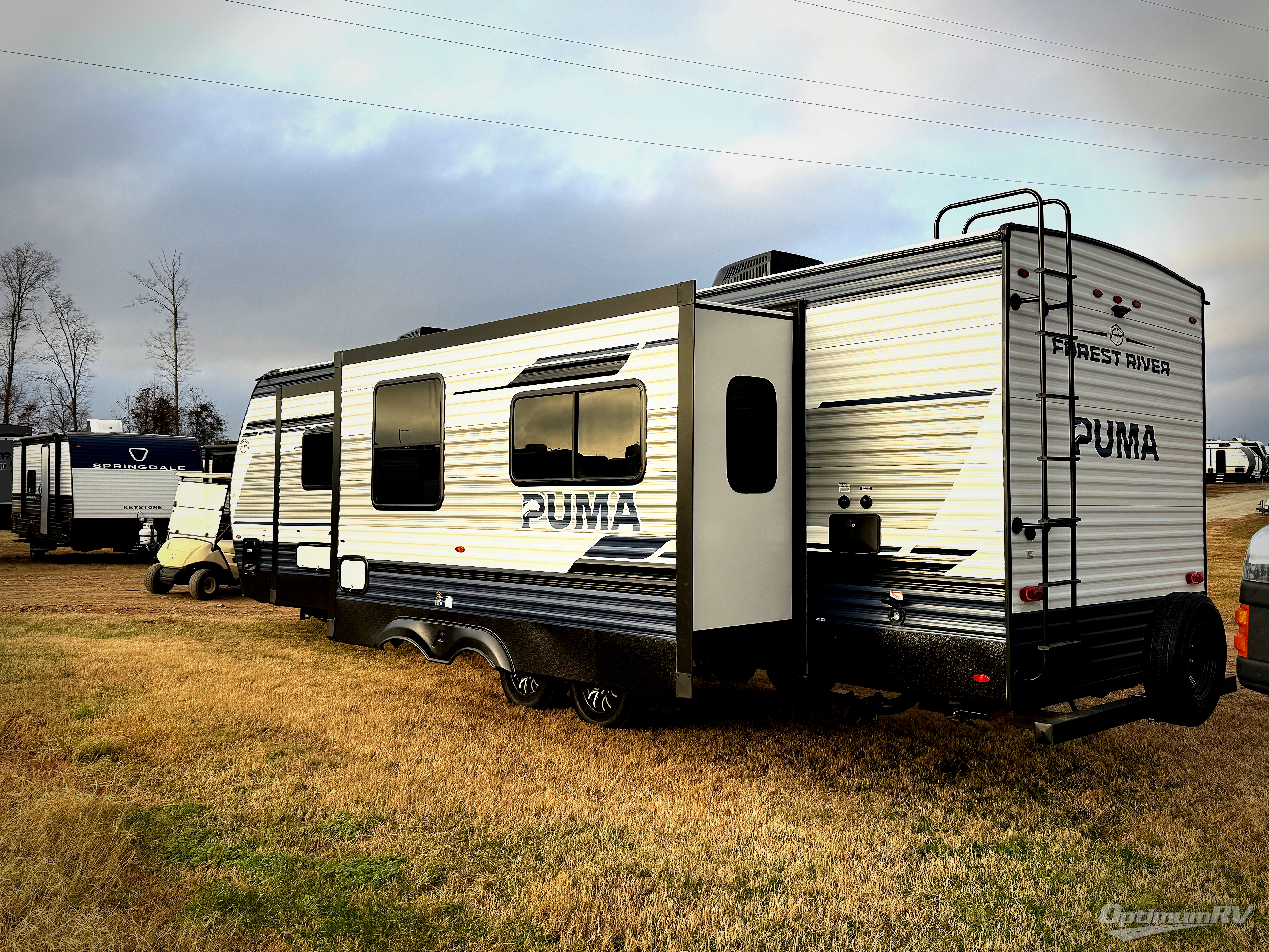 If you're looking for family-fun adventures, then you need one of these Forest River Puma travel trailers! They are built rugged, easy to tow, and jam packed with features. The Darco wrapped underbelly will help protect your unit, and the roof and side mount solar prep gives you the option to add off-grid power. Inside, the Congoleum linoleum will be easy to keep clean, and the night roller shades will provide privacy when it's time to turn in. You'll also enjoy an electric awning with an LED light strip plus an AM/FM/Bluetooth stereo and two outside speakers to keep the party going!