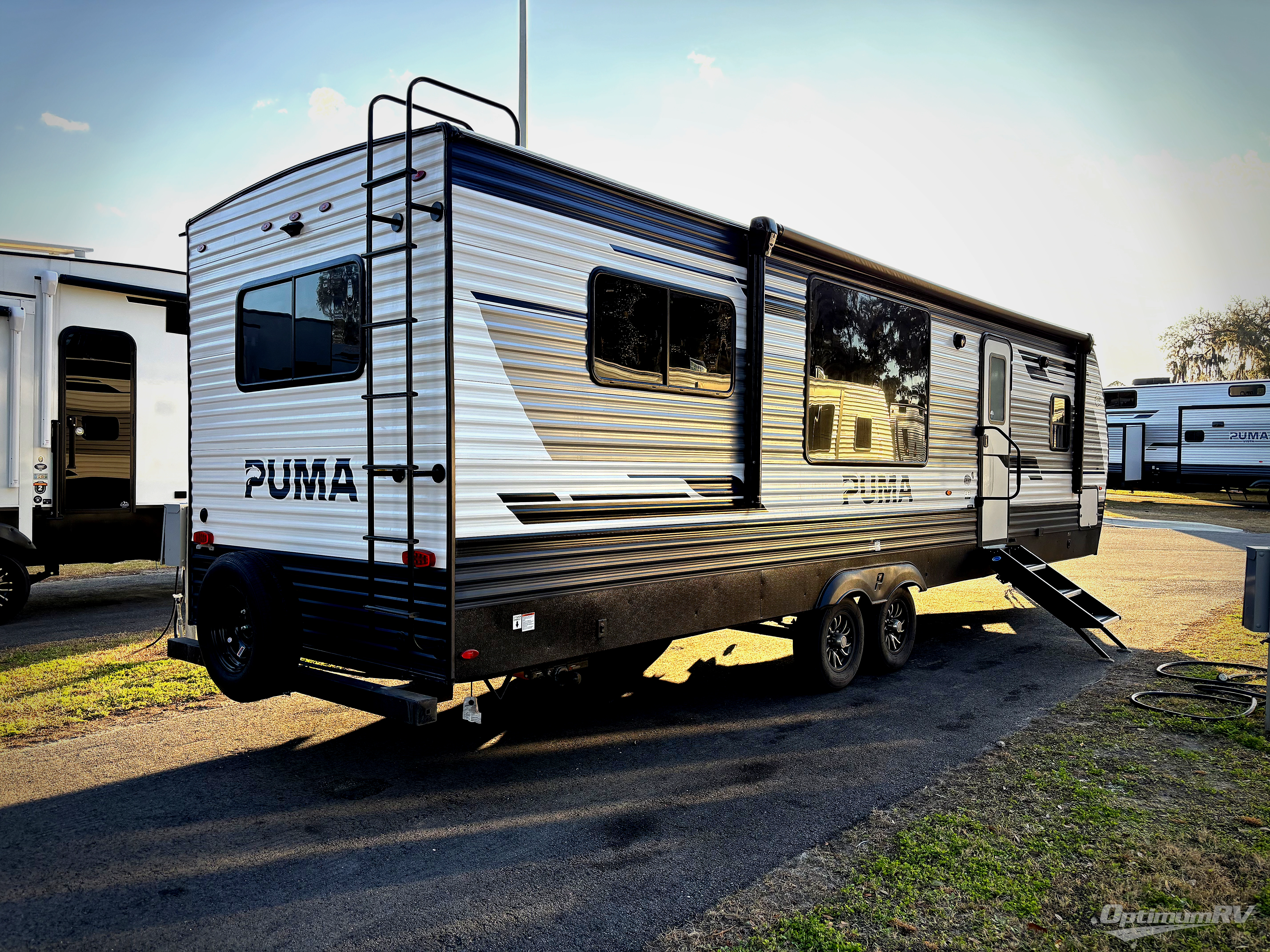 If you're looking for family-fun adventures, then you need one of these Forest River Puma travel trailers! They are built rugged, easy to tow, and jam packed with features. The Darco wrapped underbelly will help protect your unit, and the roof and side mount solar prep gives you the option to add off-grid power. Inside, the Congoleum linoleum will be easy to keep clean, and the night roller shades will provide privacy when it's time to turn in. You'll also enjoy an electric awning with an LED light strip plus an AM/FM/Bluetooth stereo and two outside speakers to keep the party going!