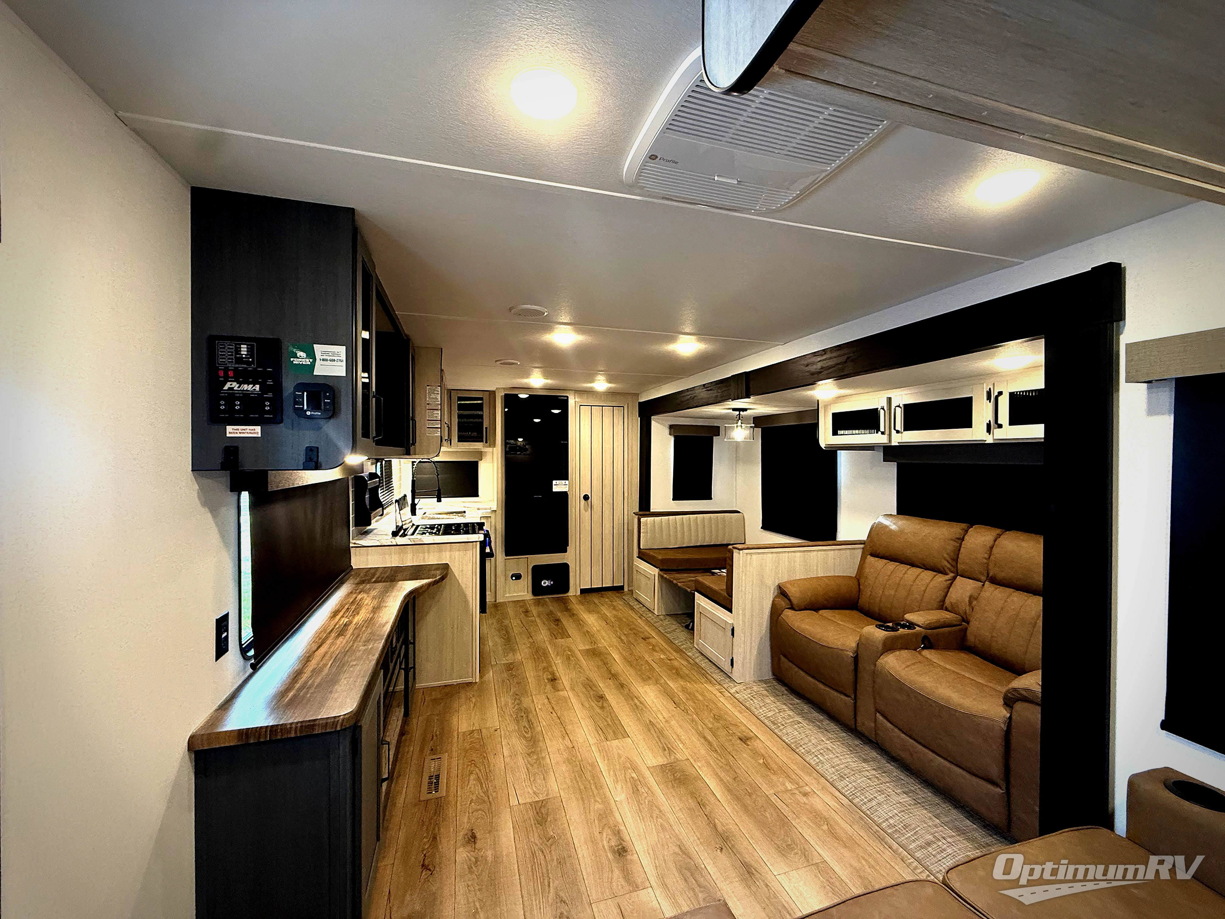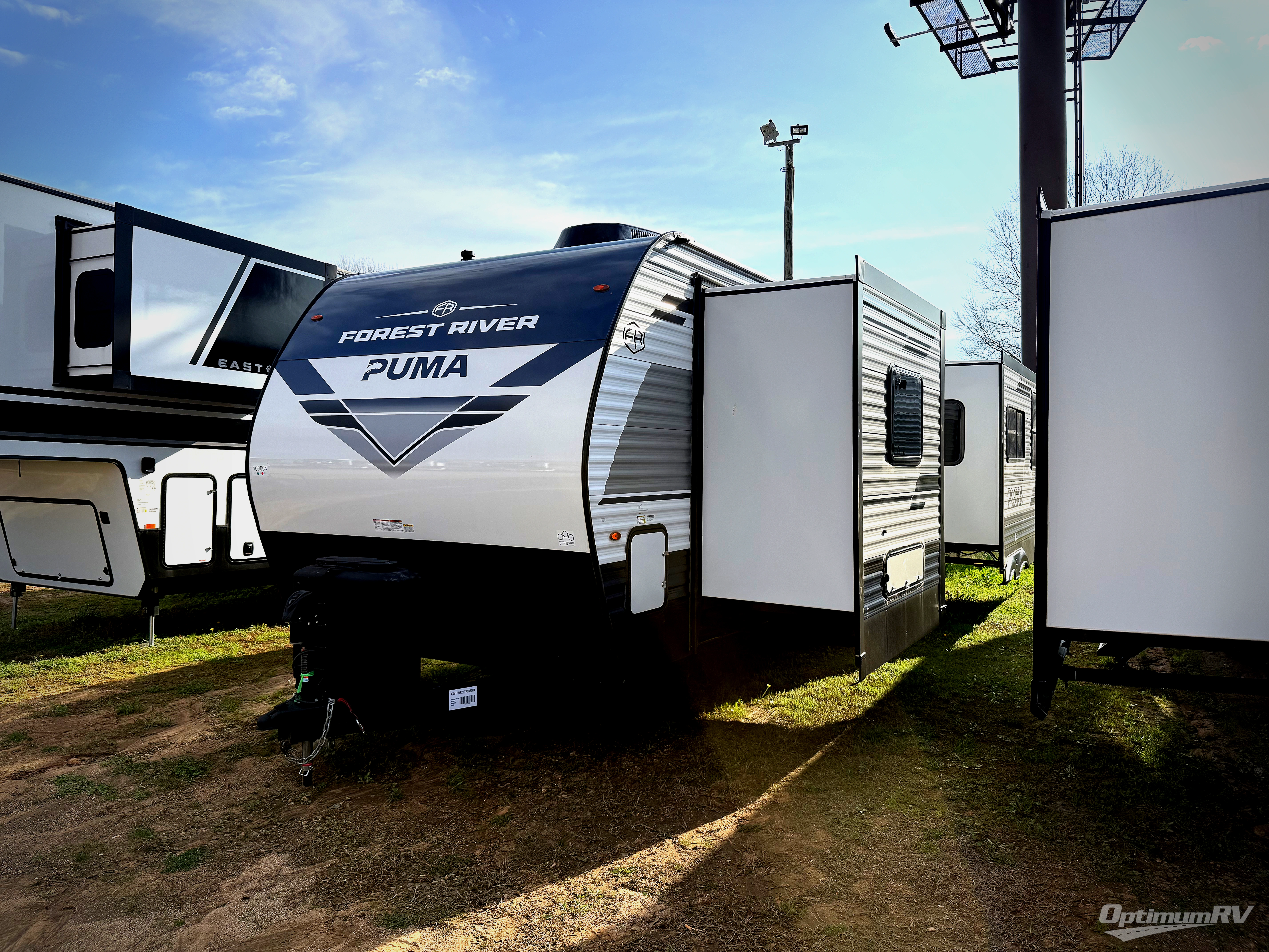 If you're looking for family-fun adventures, then you need one of these Forest River Puma travel trailers! They are built rugged, easy to tow, and jam packed with features. The Darco wrapped underbelly will help protect your unit, and the roof and side mount solar prep gives you the option to add off-grid power. Inside, the Congoleum linoleum will be easy to keep clean, and the night roller shades will provide privacy when it's time to turn in. You'll also enjoy an electric awning with an LED light strip plus an AM/FM/Bluetooth stereo and two outside speakers to keep the party going!