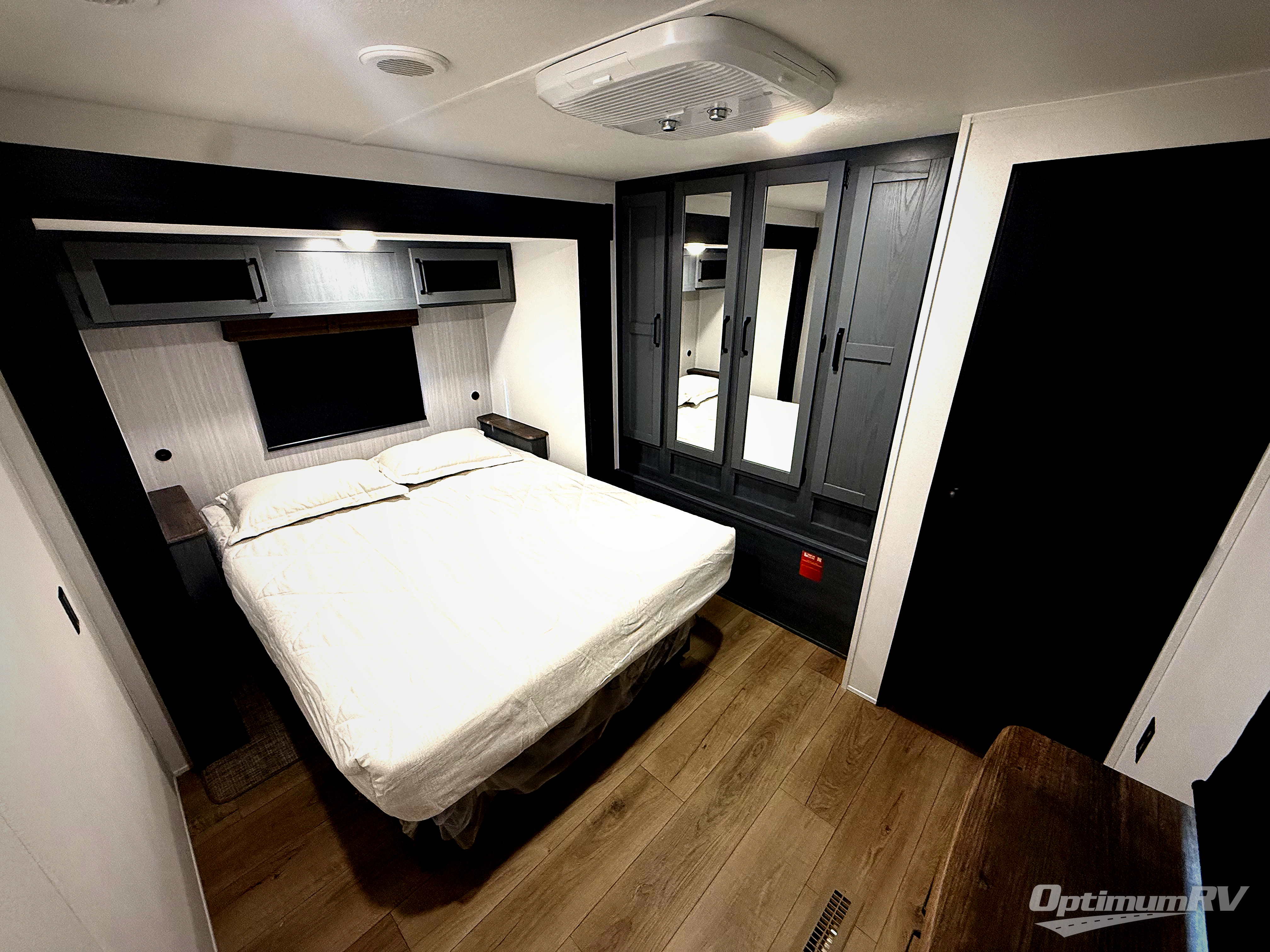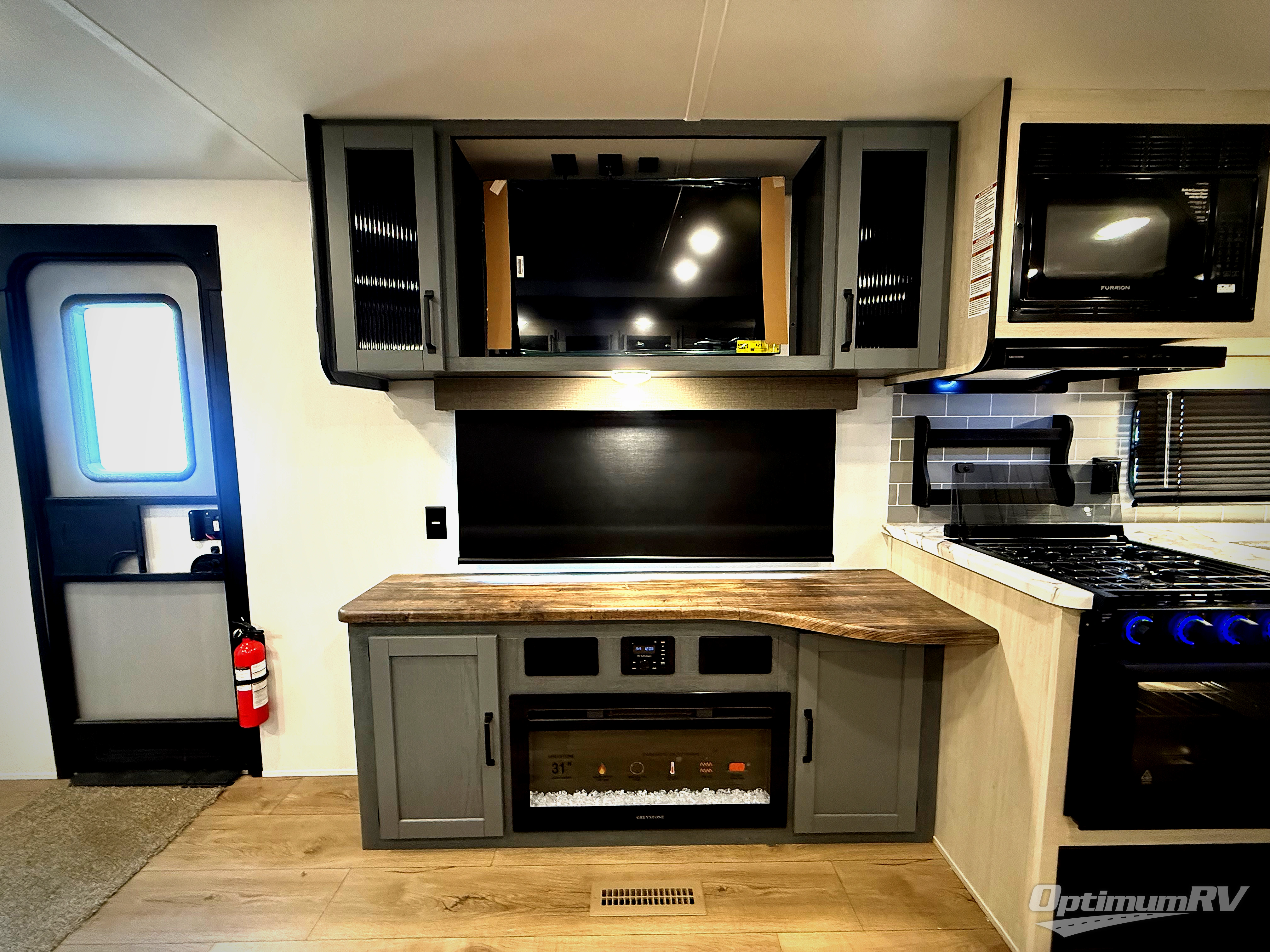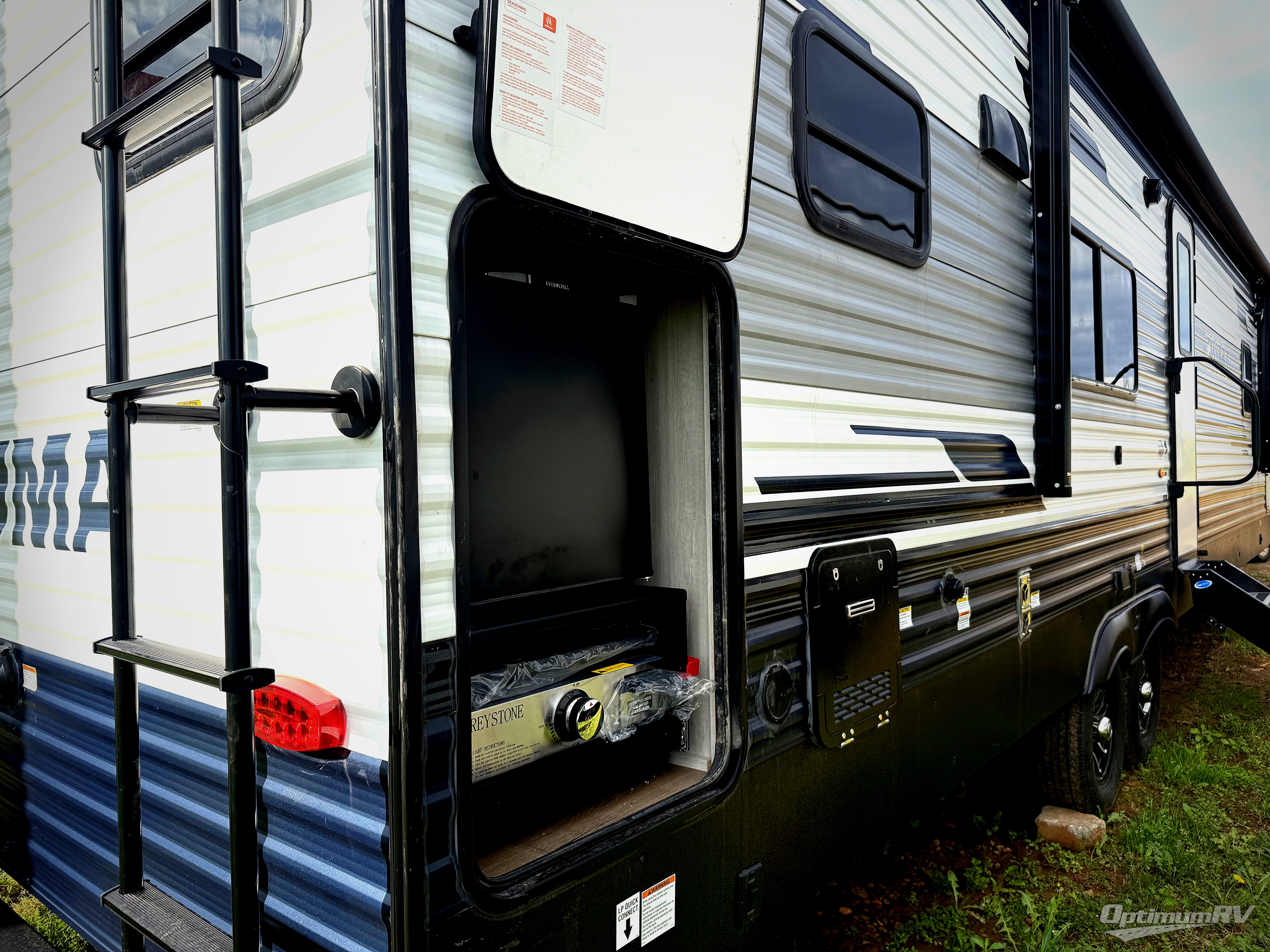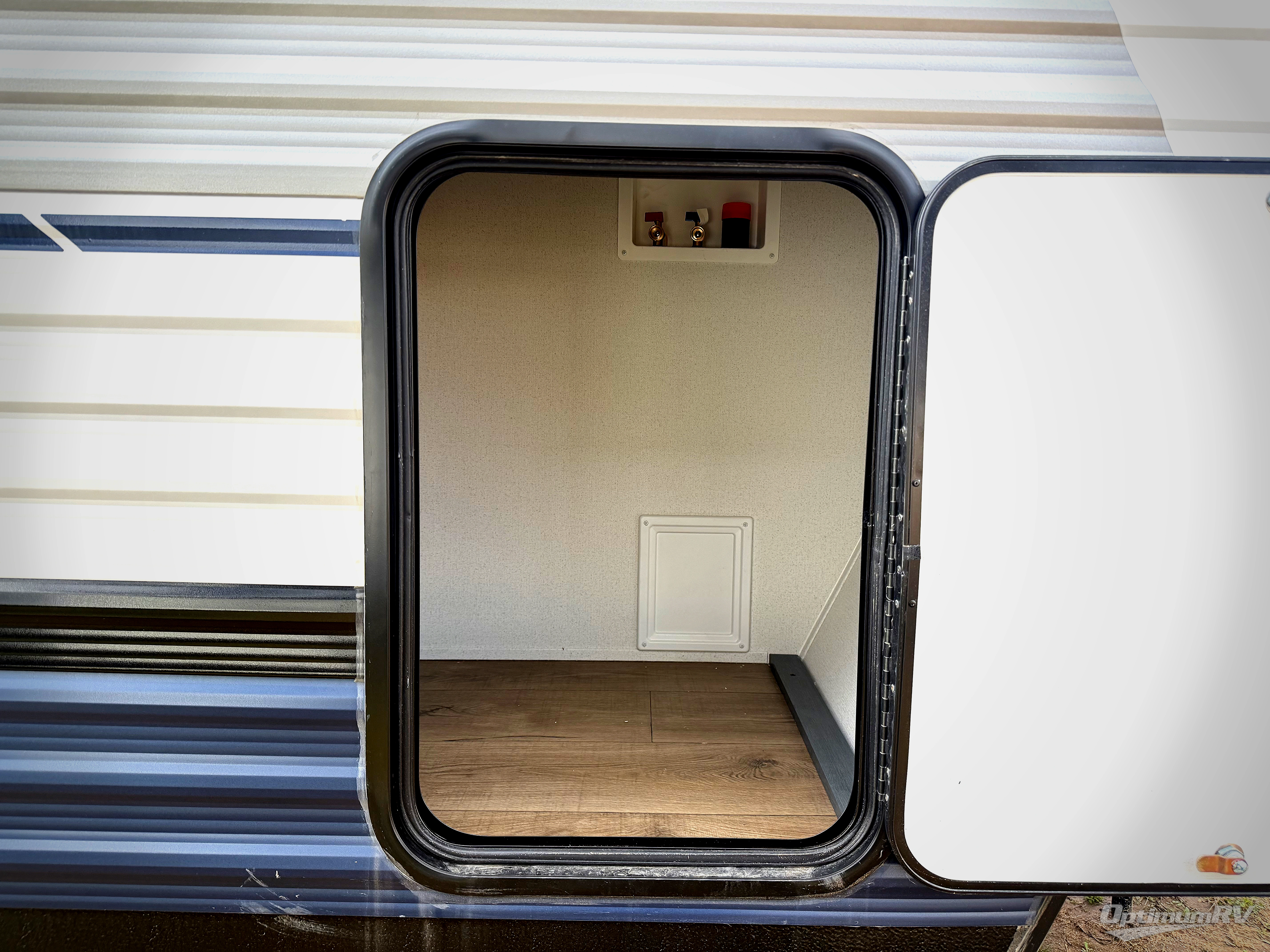 You won't want to camp any other way once you step inside this travel trailer! The rear kitchen has a stainless-steel oven and range to prepare your best meals, a 12V refrigerator to keep your perishables fresh, and a walk-in pantry for your canned goods and snacks for movie night. After a fun day at the beach, you can play a card game at the booth dinette, relax on the theater seating and sofa, or rinse the sand out of your hair in the 32" x 40" shower with a seat in the full bathroom. There is also a front private bedroom with a queen bed slide across from a dresser and a front closet with another closet with washer and dryer prep.