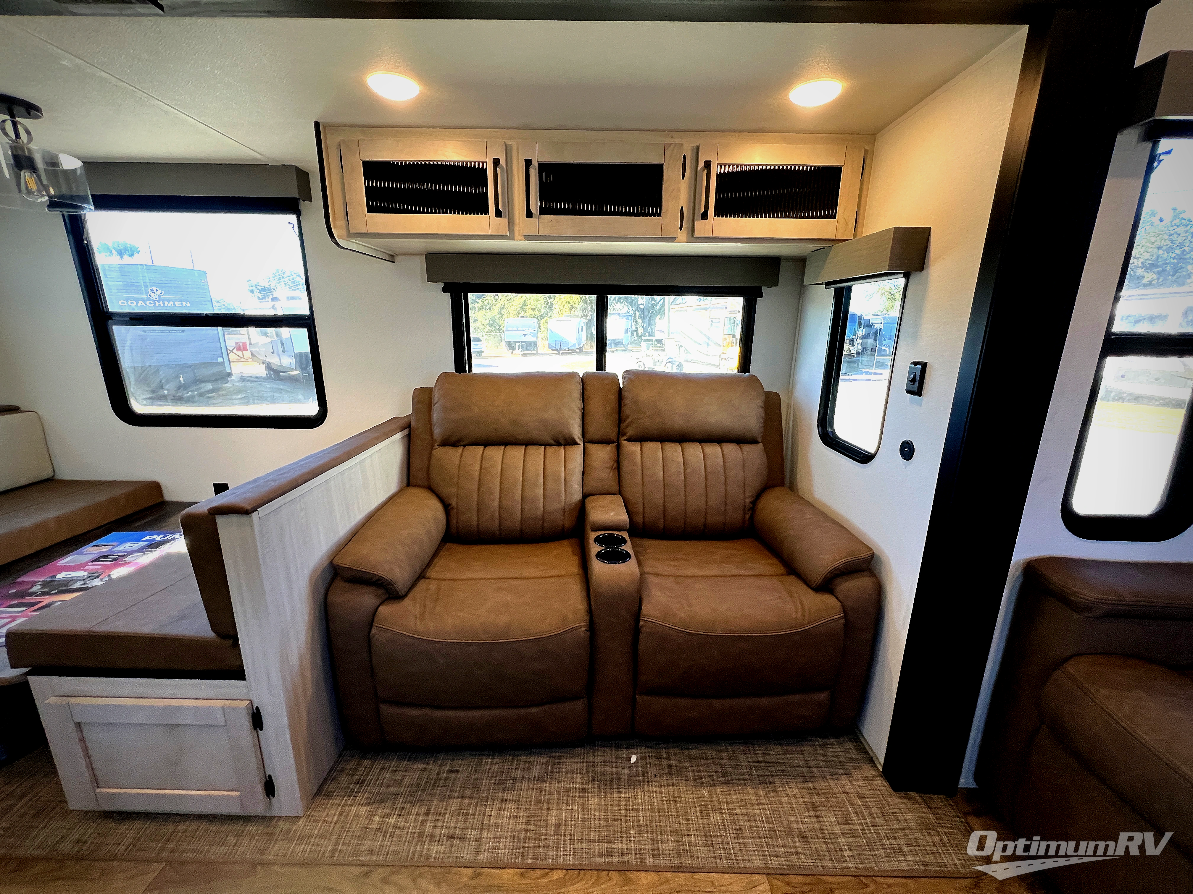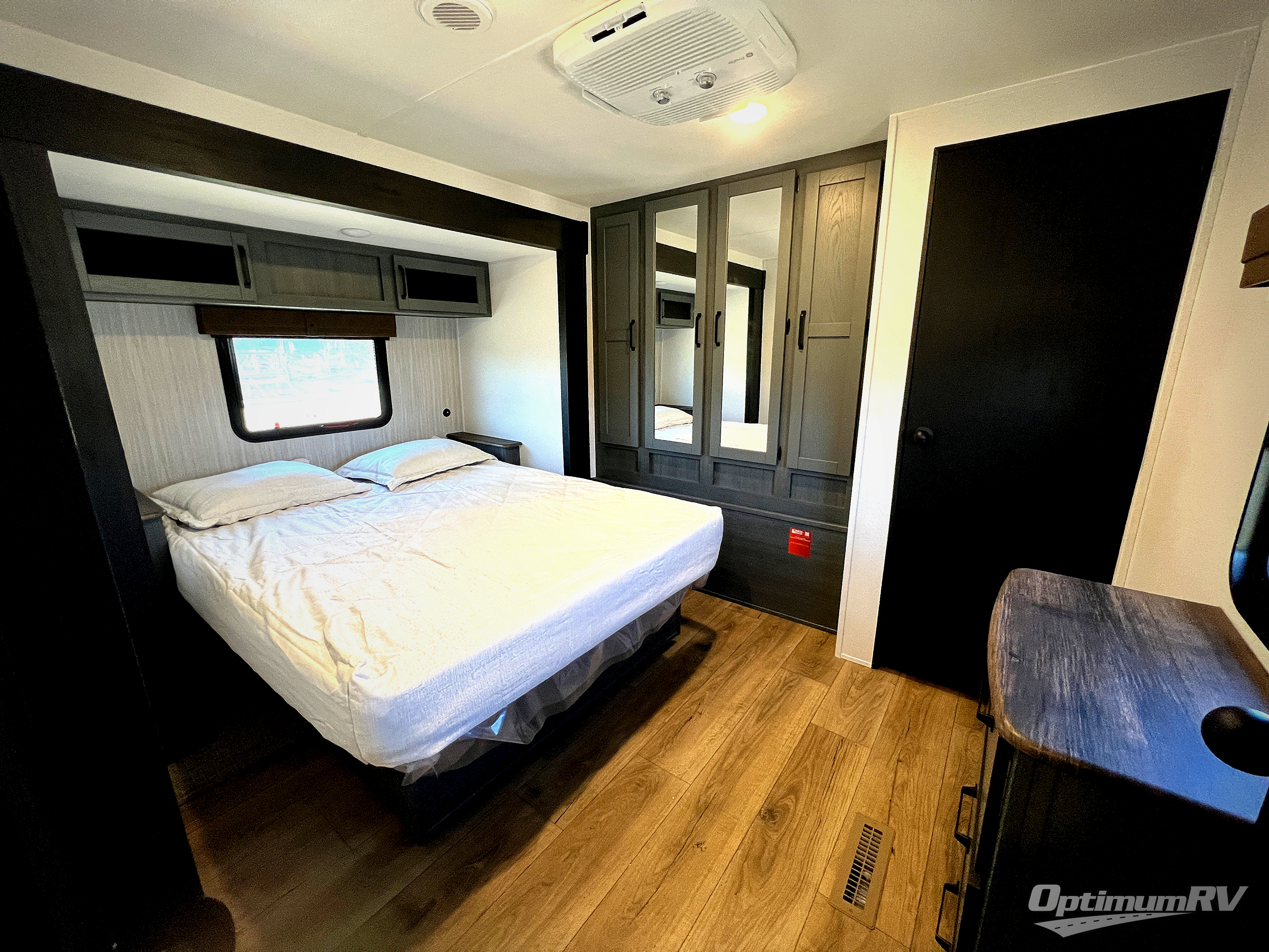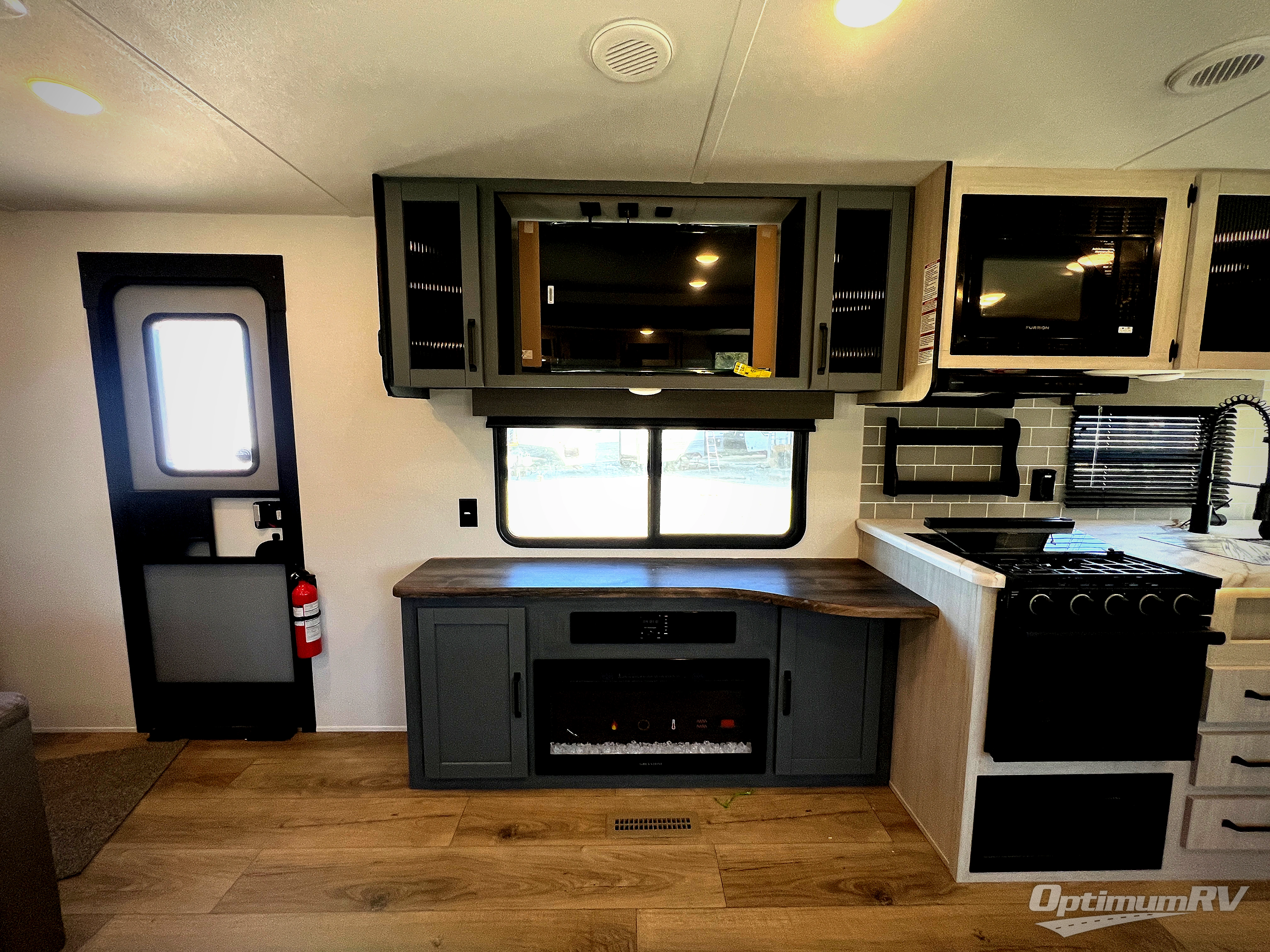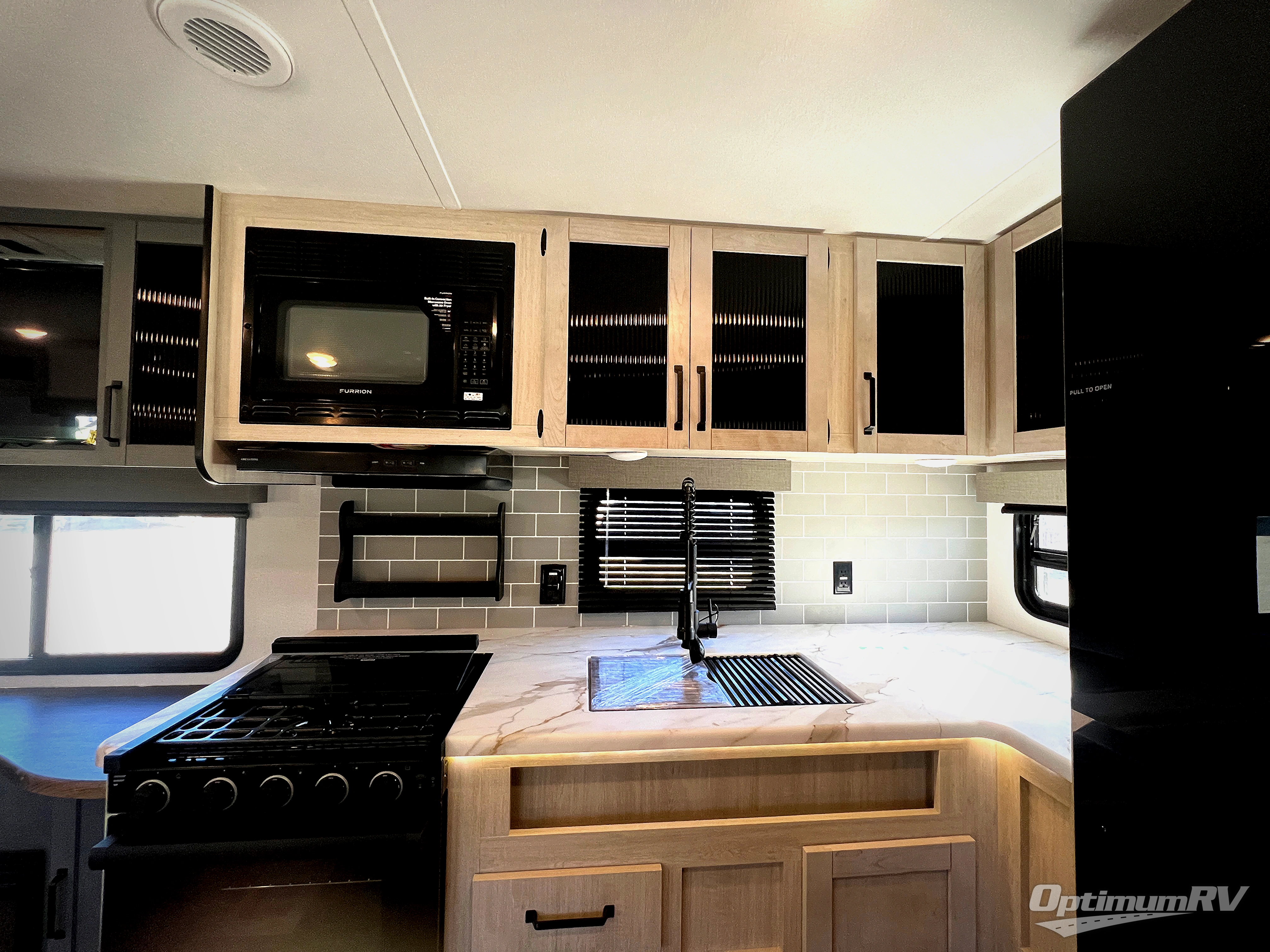 You won't want to camp any other way once you step inside this travel trailer! The rear kitchen has a stainless-steel oven and range to prepare your best meals, a 12V refrigerator to keep your perishables fresh, and a walk-in pantry for your canned goods and snacks for movie night. After a fun day at the beach, you can play a card game at the booth dinette, relax on the theater seating and sofa, or rinse the sand out of your hair in the 32" x 40" shower with a seat in the full bathroom. There is also a front private bedroom with a queen bed slide across from a dresser and a front closet with another closet with washer and dryer prep.