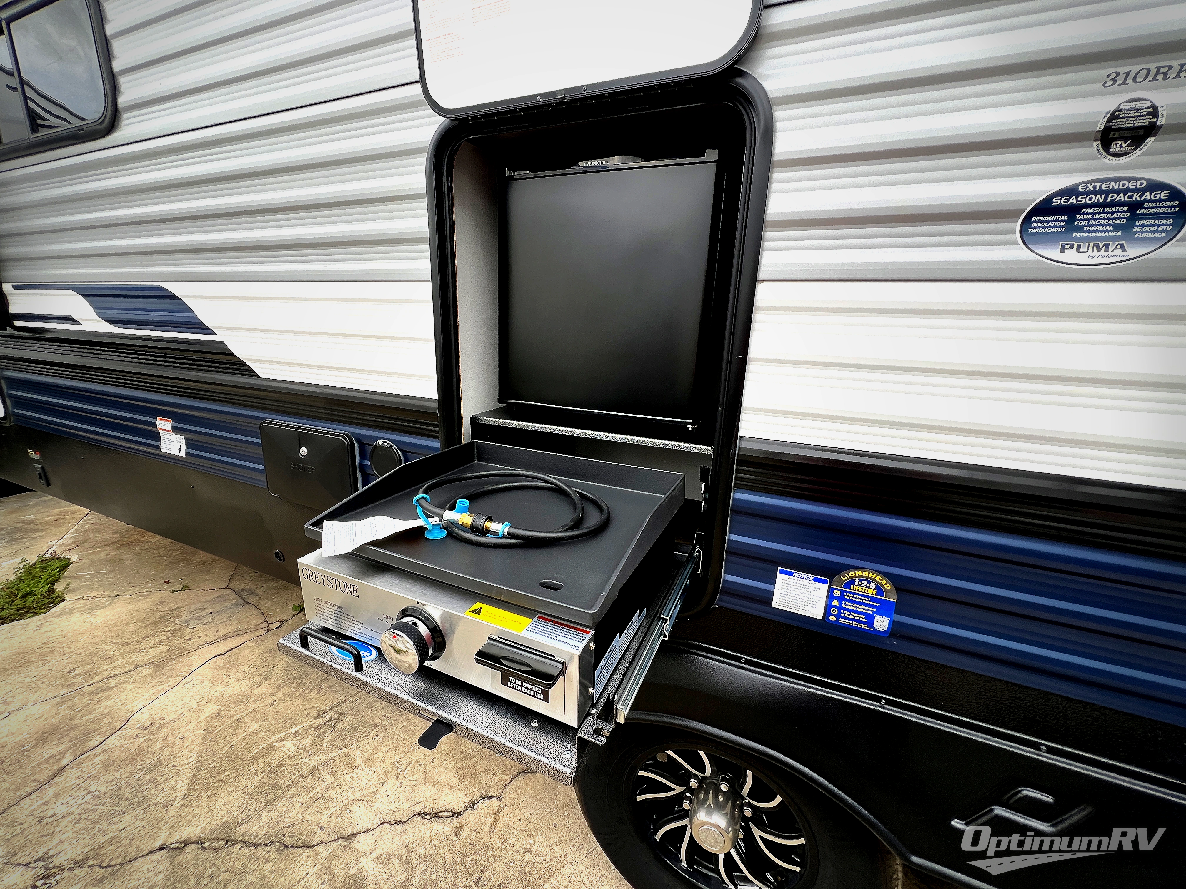 If you're looking for family-fun adventures then you need one of these Palomino Puma fifth wheels or travel trailers! They are built rugged, easy to tow, and jam packed with features. The Darco wrapped underbelly will protect your units vitals and the AlphaPly roofing membrane covers it. They also have new aluminum wheels and a powder coated steel I-beam frame. Inside, the Congoleum linoleum will be easy to keep clean, and the night roller shades will provide privacy when it's time to turn in. You'll also enjoy an electric awning with an LED light strip plus an AM/FM/Bluetooth stereo and two outside speakers to keep the party going!