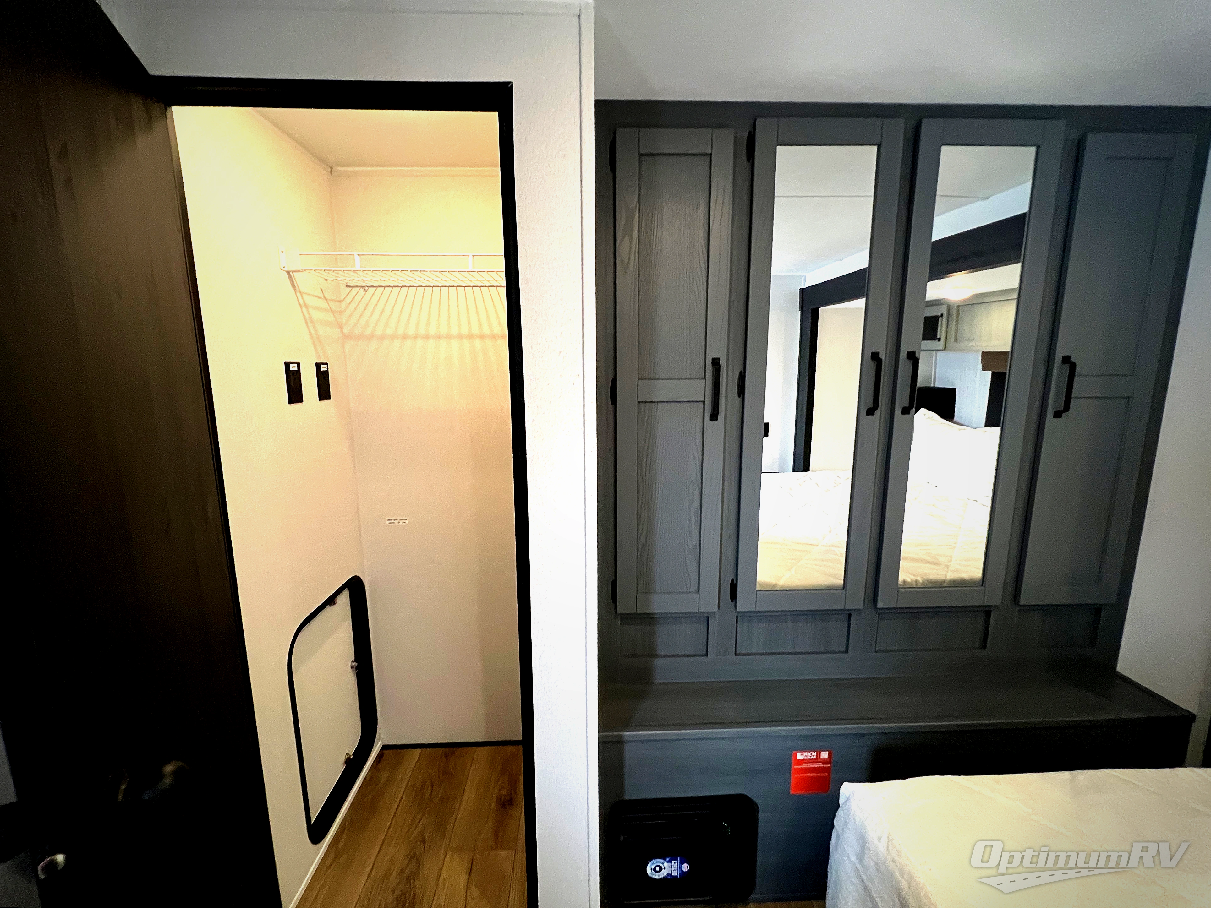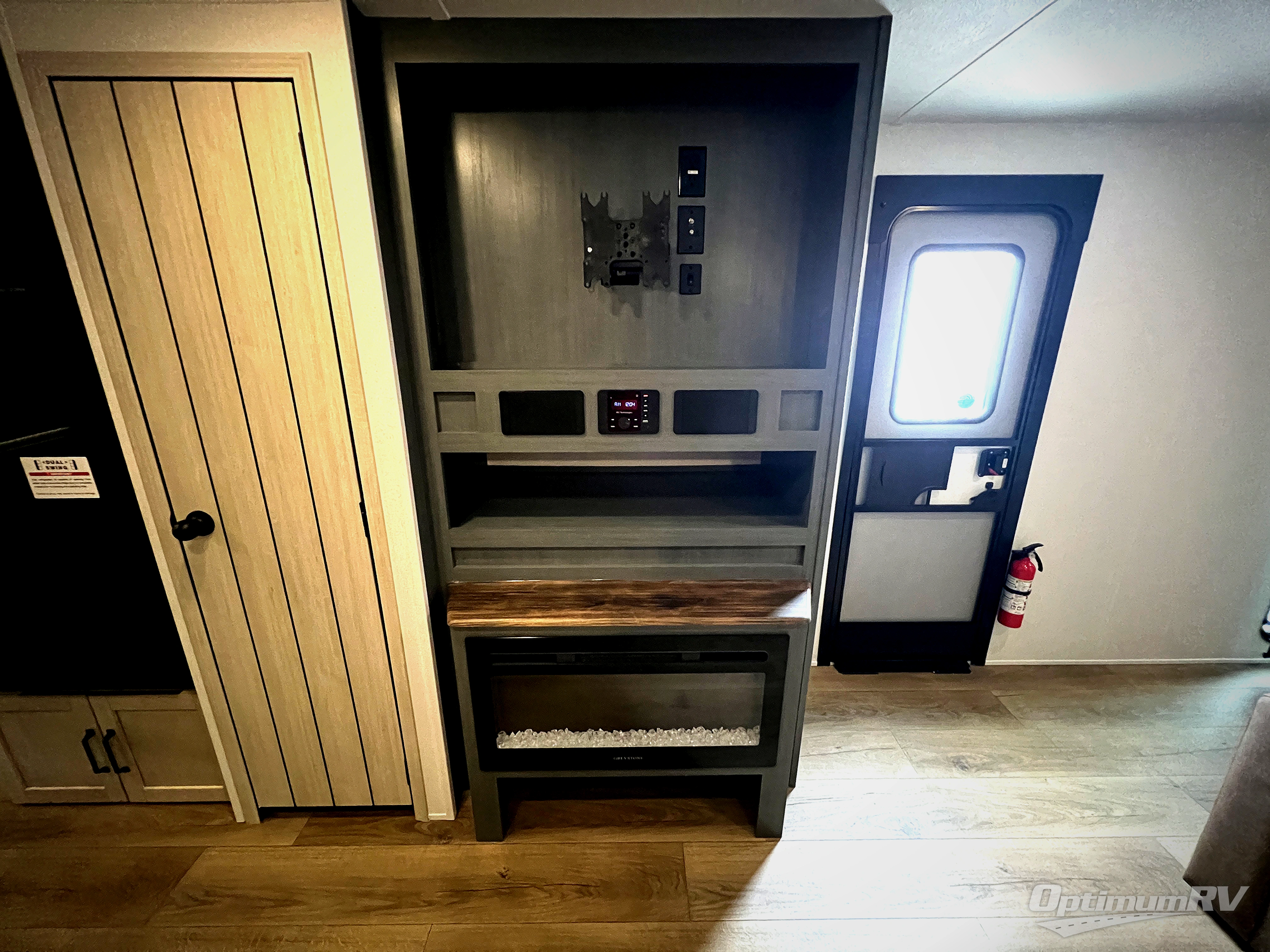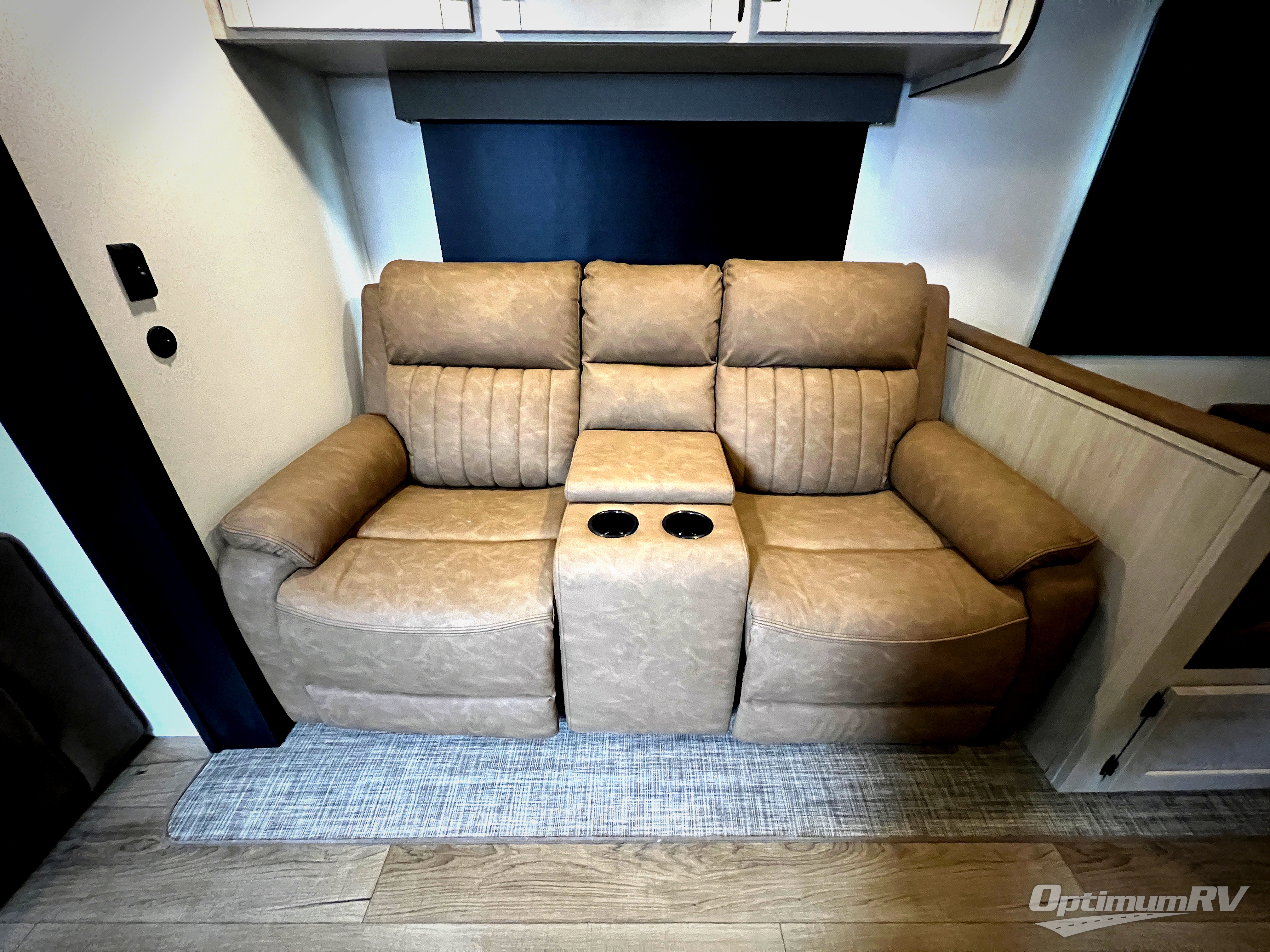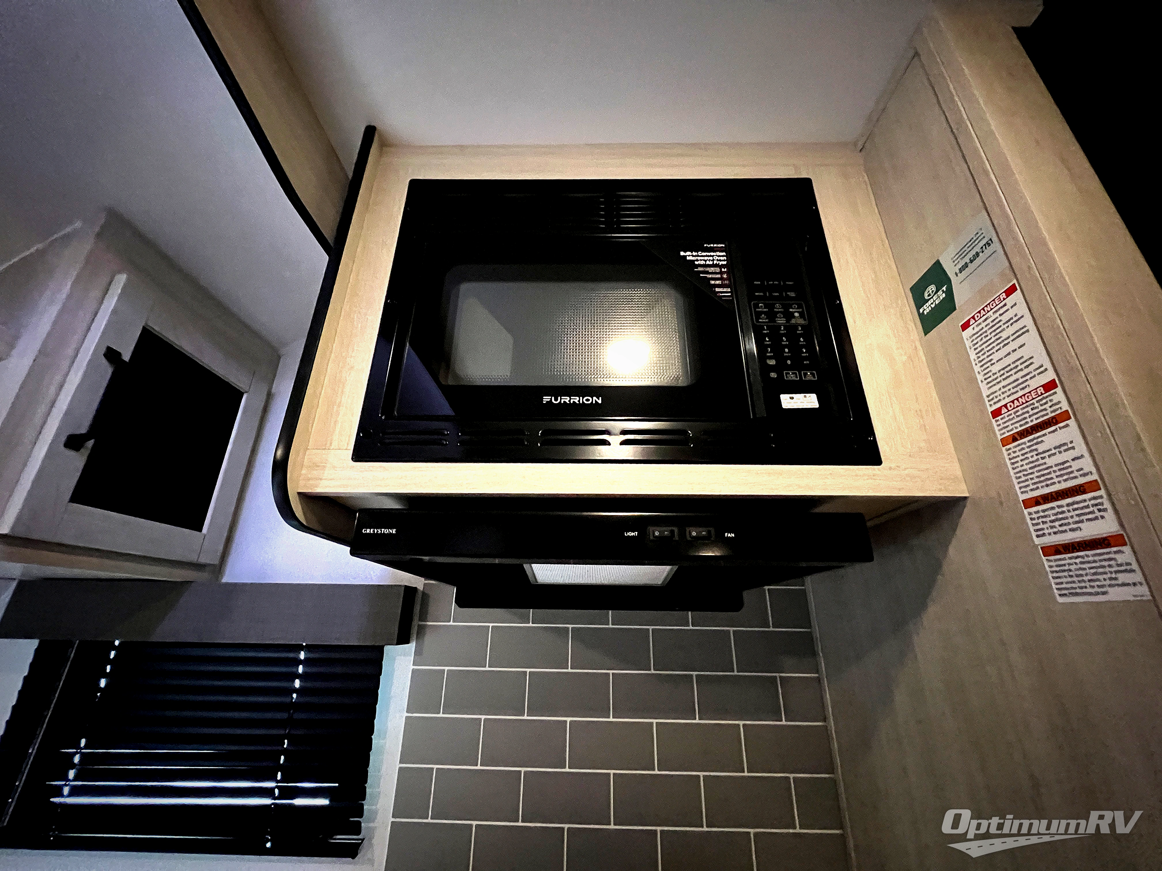 Experience a home away from home with this travel trailer! The front kitchen has everything you will need to prepare your best meals and you can enjoy them at the booth dinette. The rear private bedroom has a 72" x 80" king bed slide across from a dresser, a wardrobe, and a closet with washer and dryer prep. Freshen up in the full bathroom with the 32" x 40" shower and then enjoy a cup of coffee relaxing in one of the two recliners or on the sofa! Choose the optional outside micro kitchen with a griddle for even more convenience!