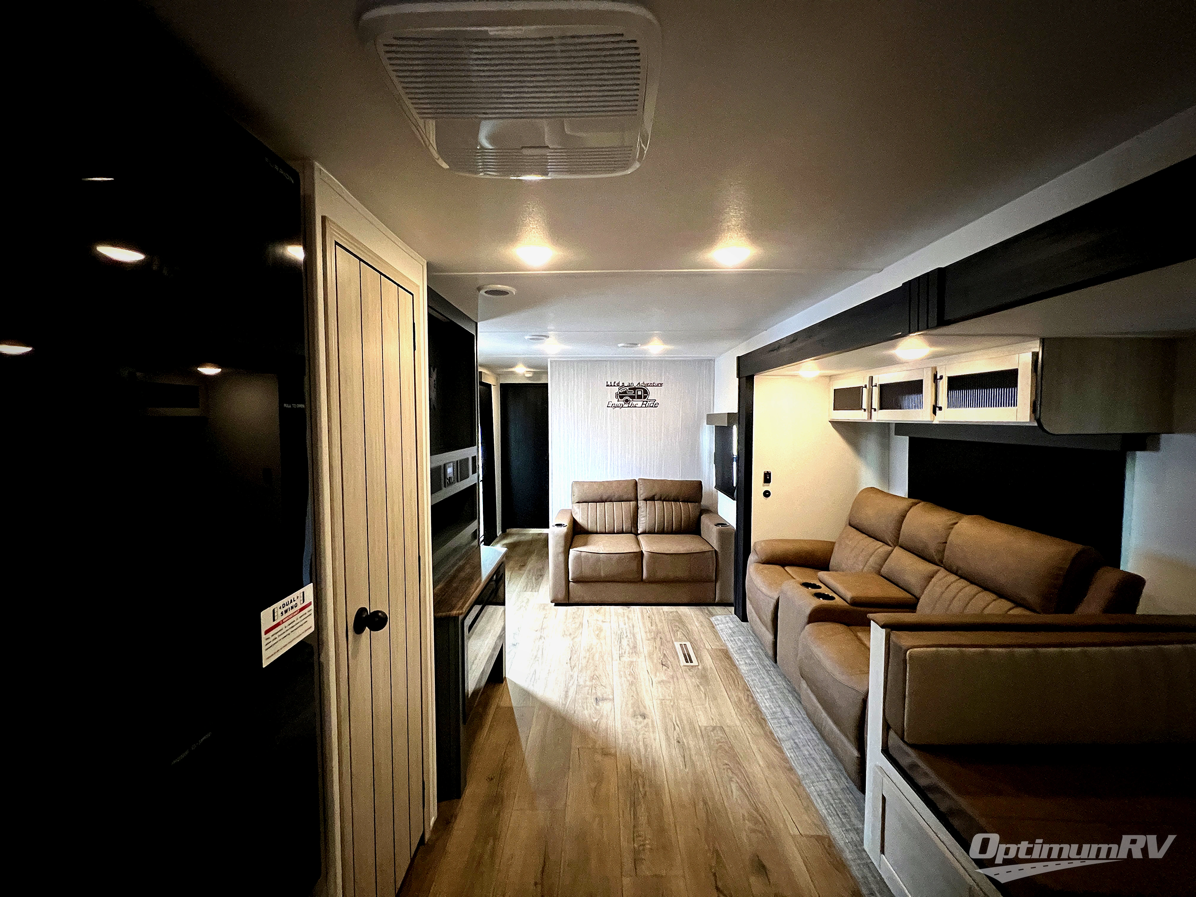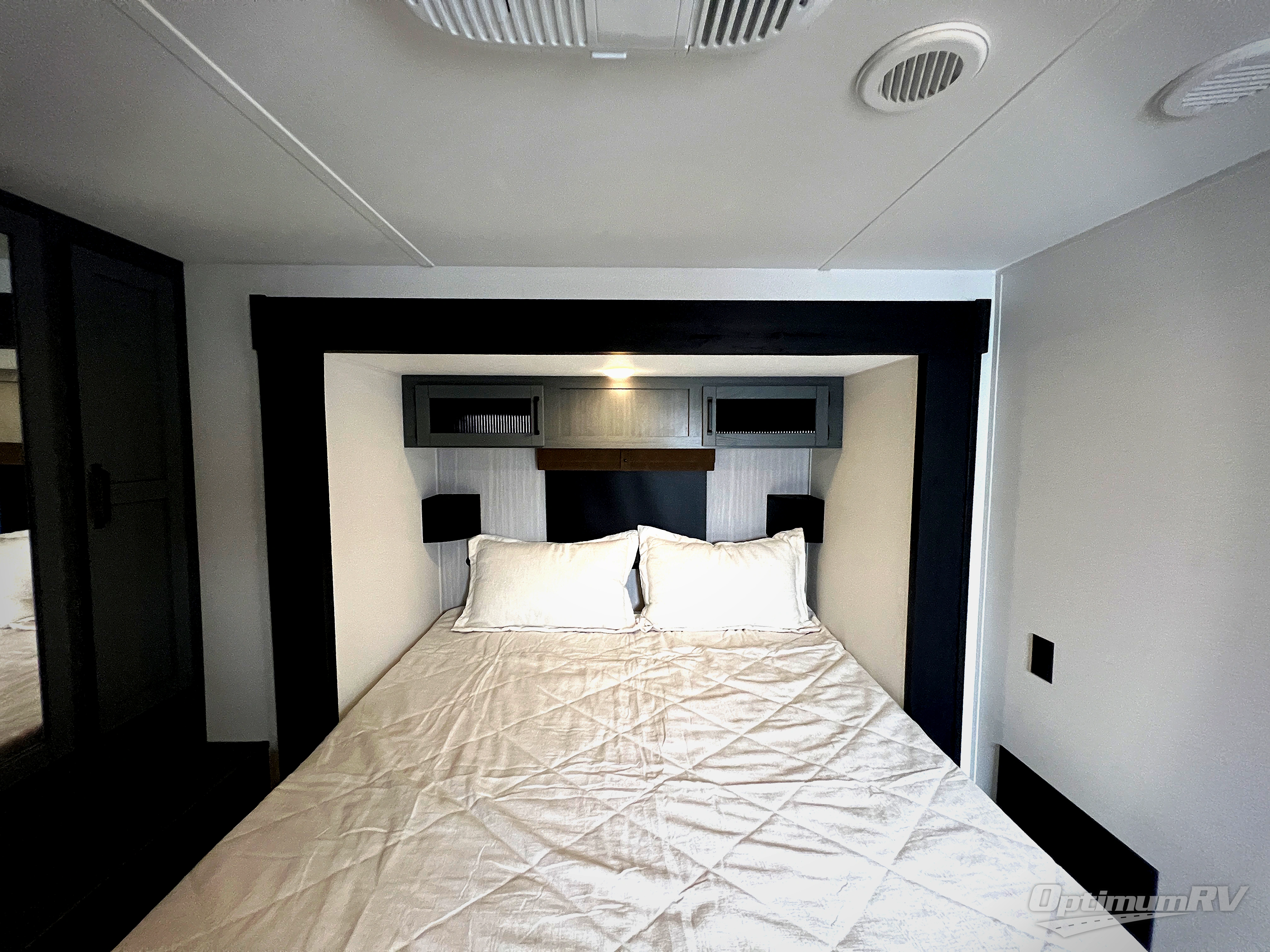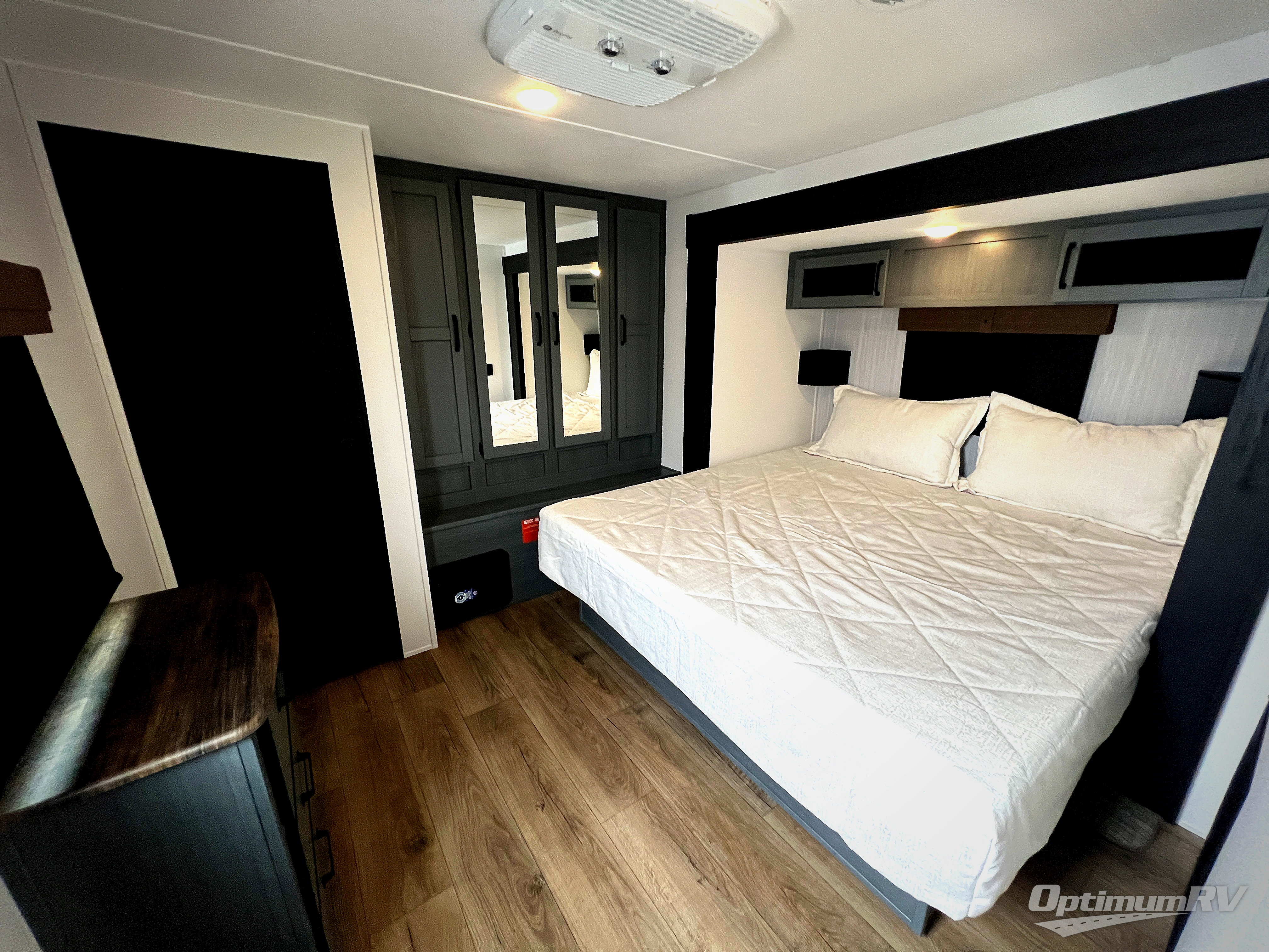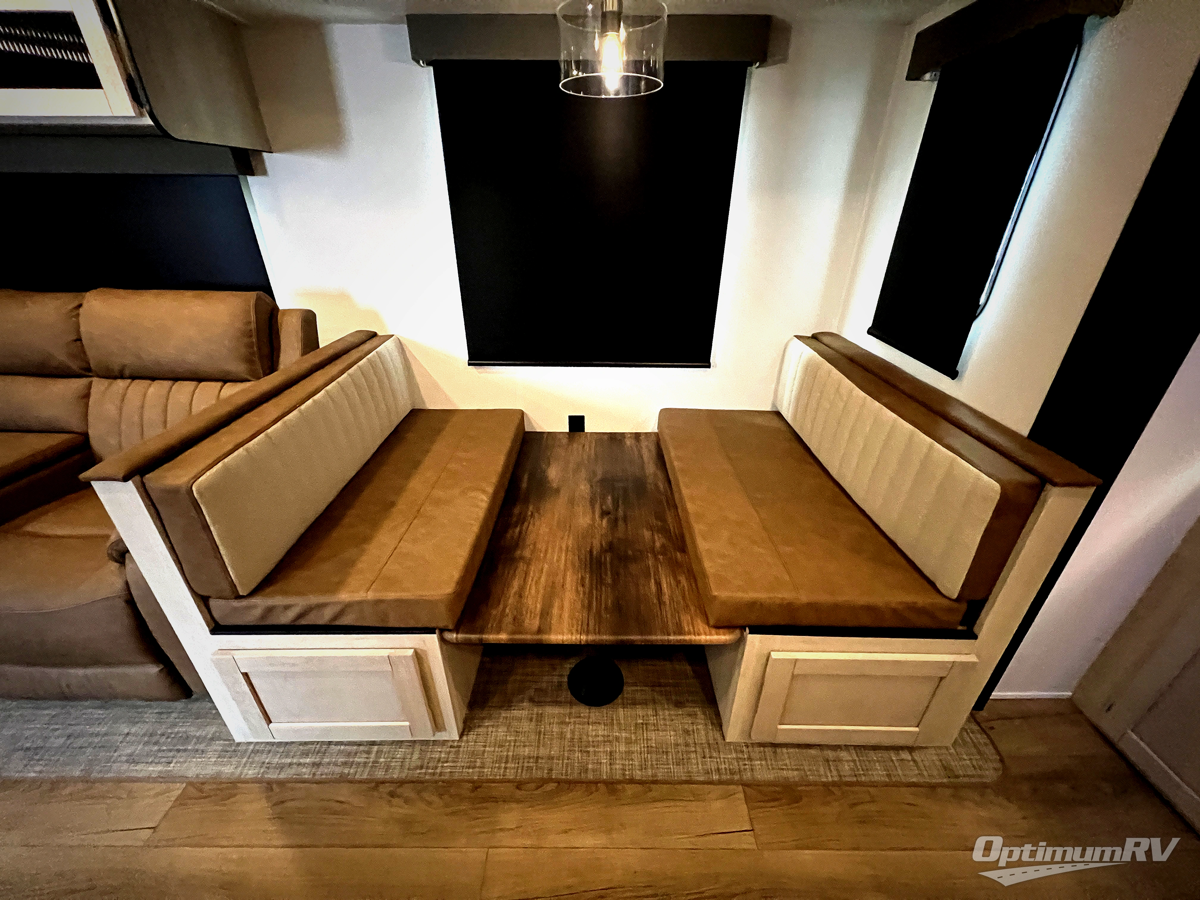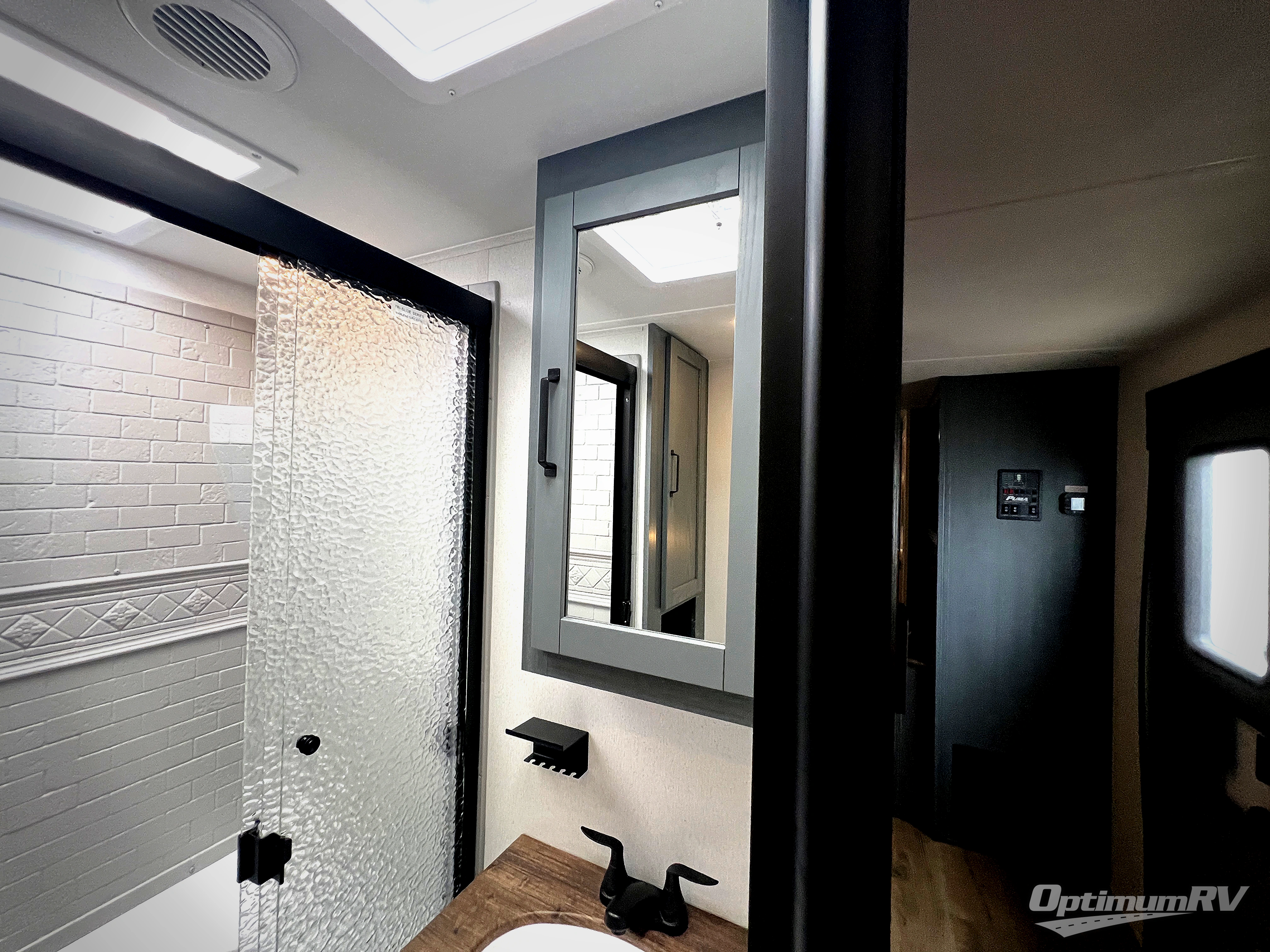 Experience a home away from home with this travel trailer! The front kitchen has everything you will need to prepare your best meals and you can enjoy them at the booth dinette. The rear private bedroom has a 72" x 80" king bed slide across from a dresser, a wardrobe, and a closet with washer and dryer prep. Freshen up in the full bathroom with the 32" x 40" shower and then enjoy a cup of coffee relaxing in one of the two recliners or on the sofa! Choose the optional outside micro kitchen with a griddle for even more convenience!