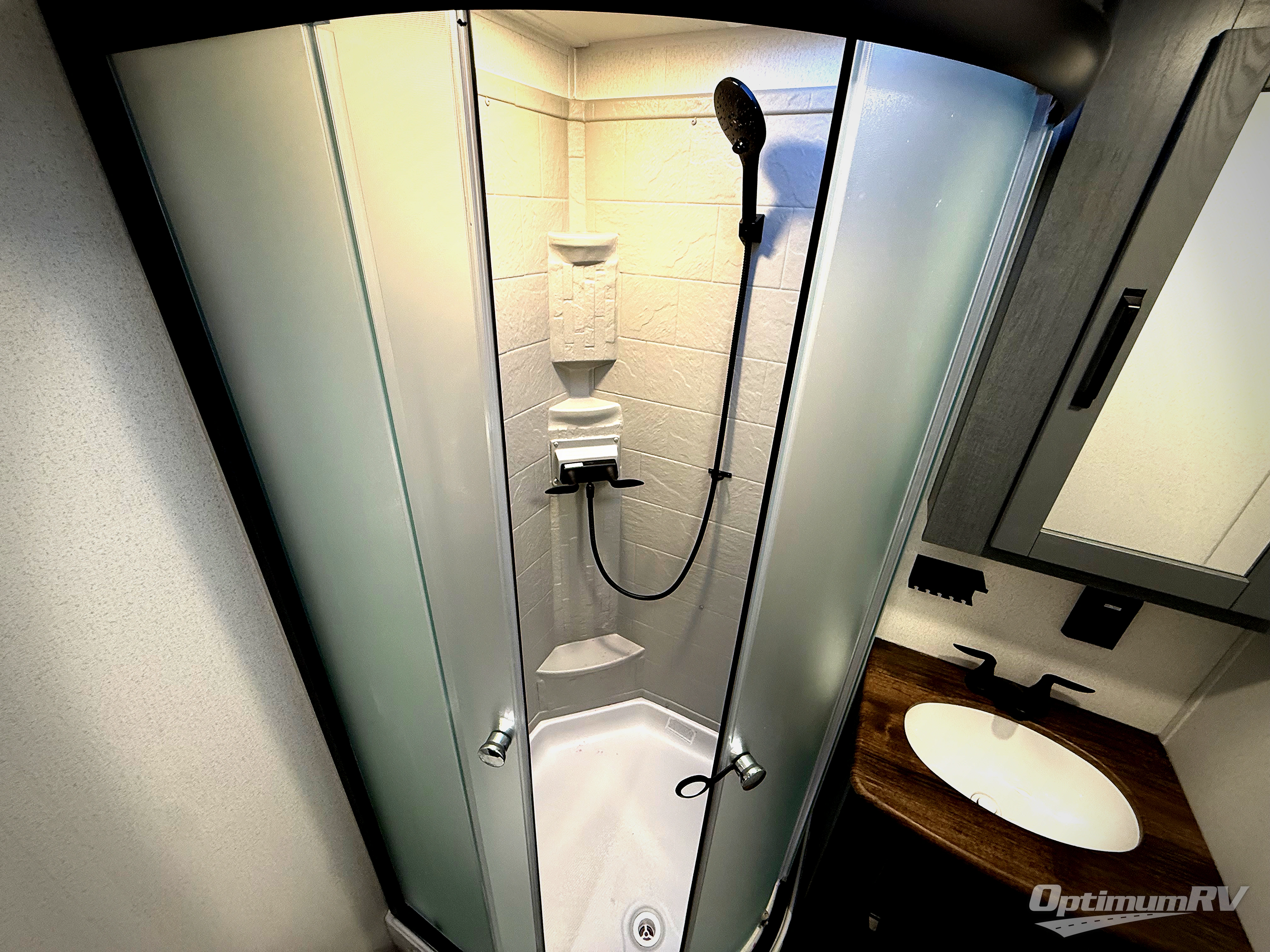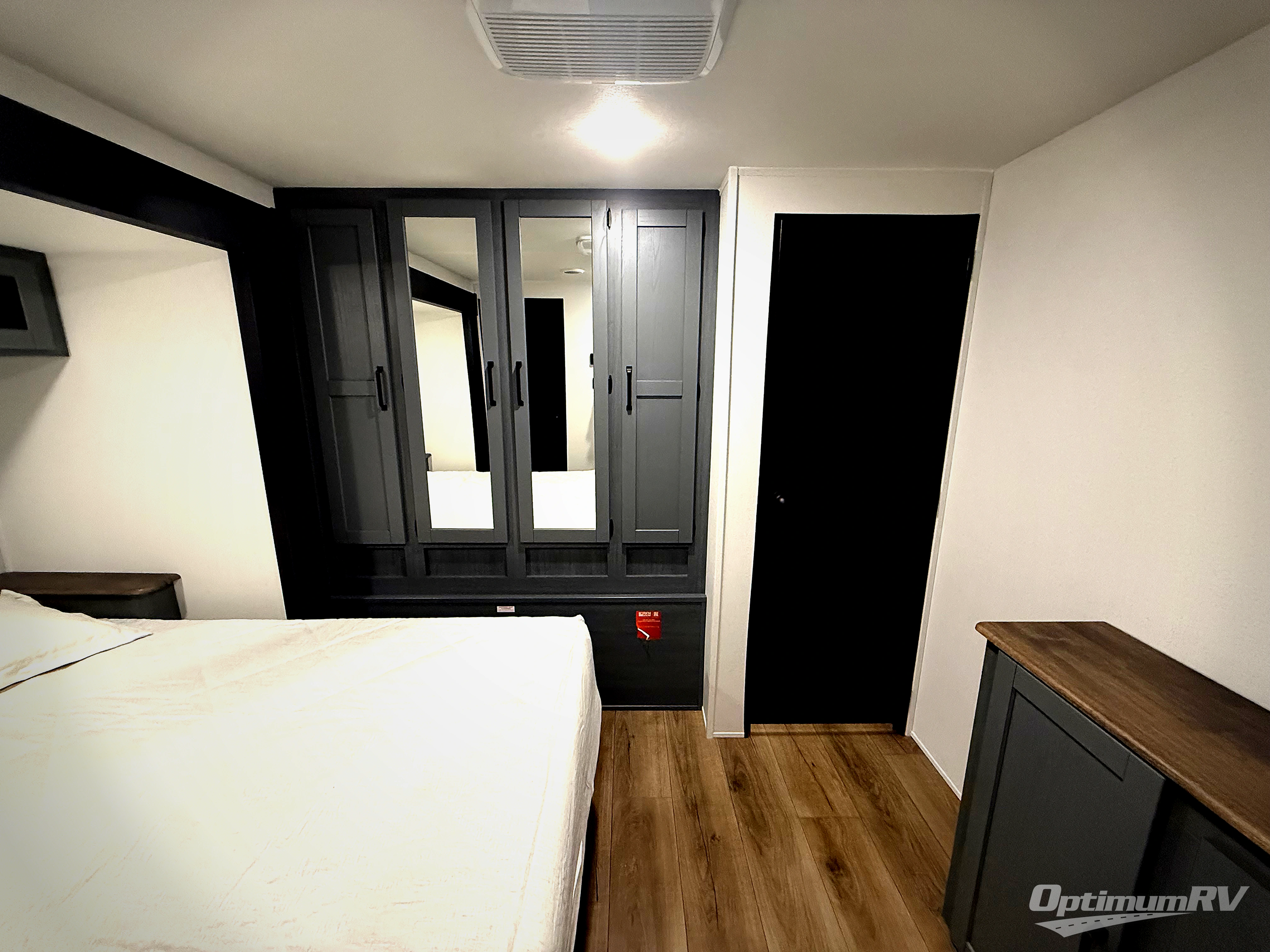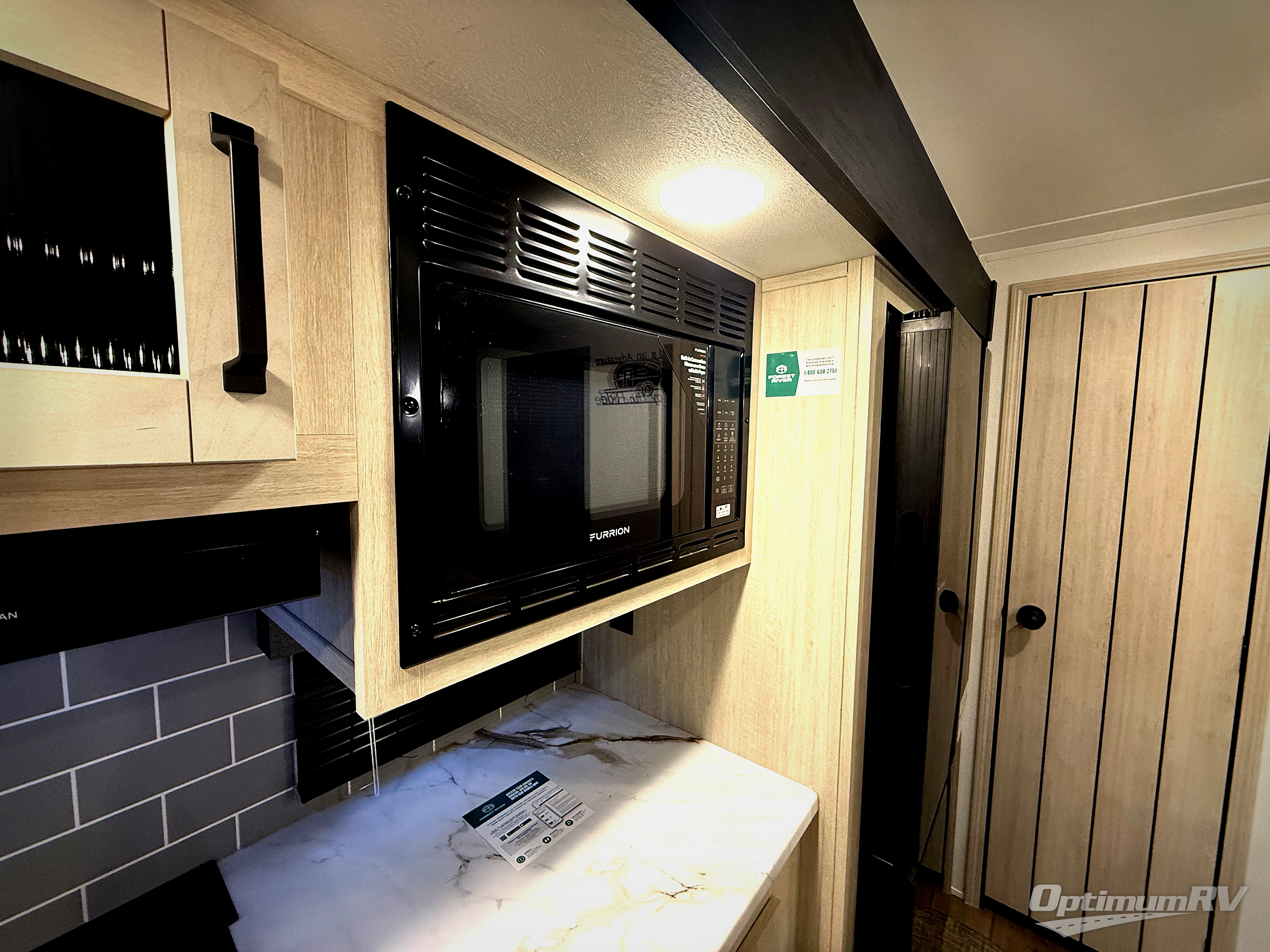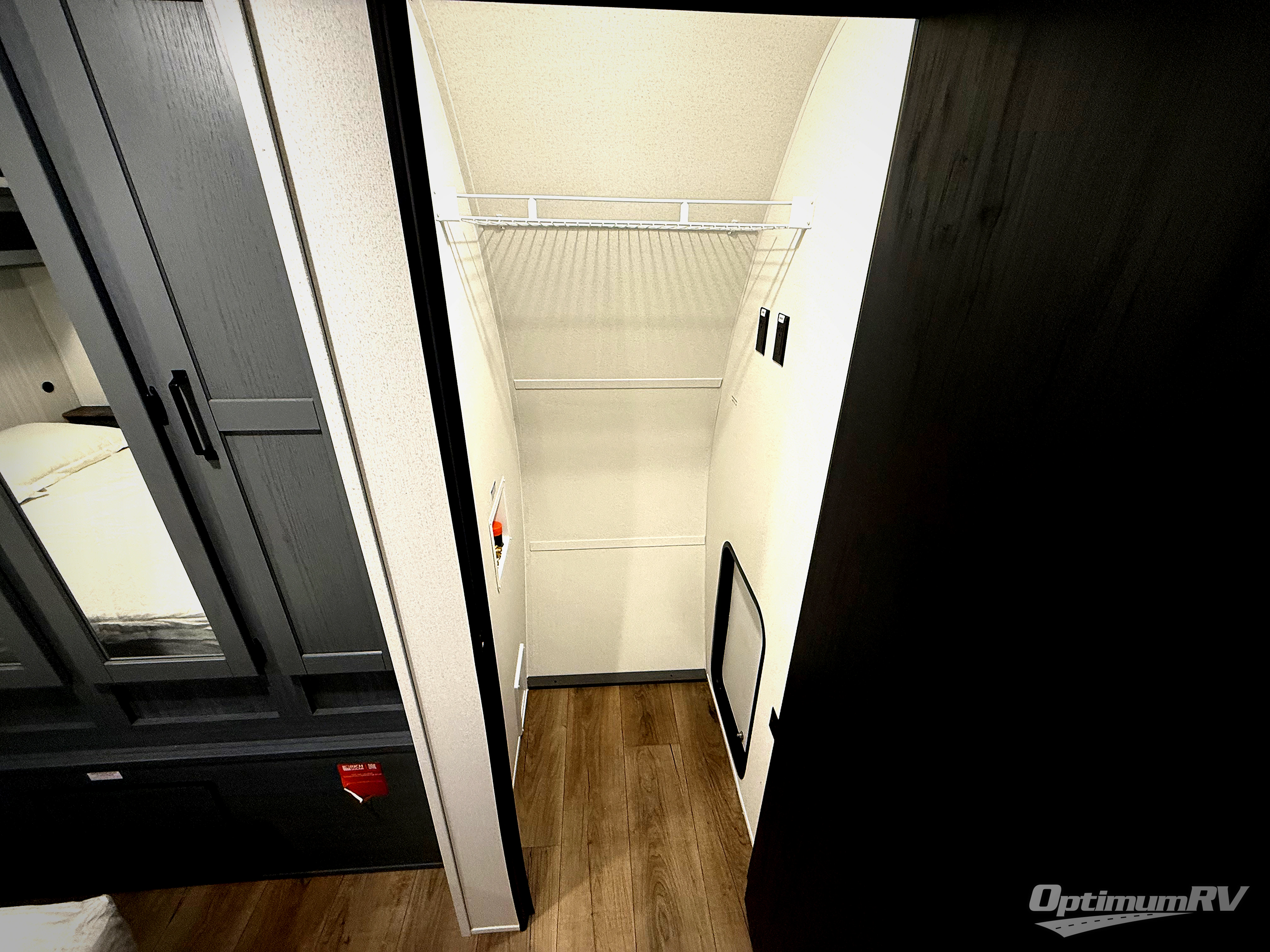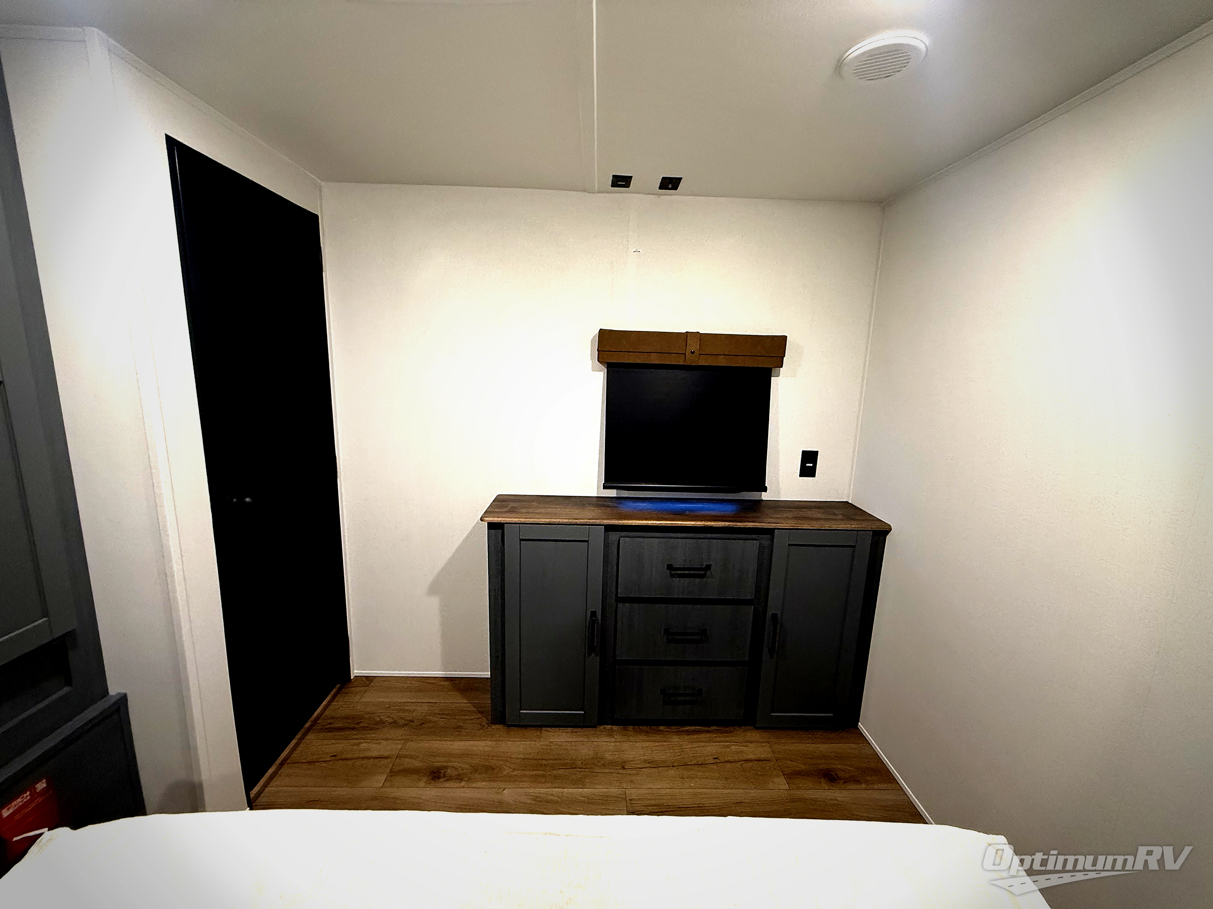 You will be the talk of the campground with this travel trailer! The front private bedroom has a queen bed slide across from a dresser and a front closet plus a second closet with washer and dryer prep. Freshen up each morning in the full bathroom with the 34" x 34" radius shower then head to the kitchen to fry up some eggs with the stainless-steel oven and range. You can enjoy your meals at the booth dinette, and the kitchen island will make your clean up easier with the sink that has a high-rise faucet and sprayer. The rear private bunkhouse has a 32" x 69" bunk above a jiffy sofa slide, a 36" x 69" bunk above a 36" x 71" bunk and a linen closet. Choose one of the outside kitchen options for even more convenience!