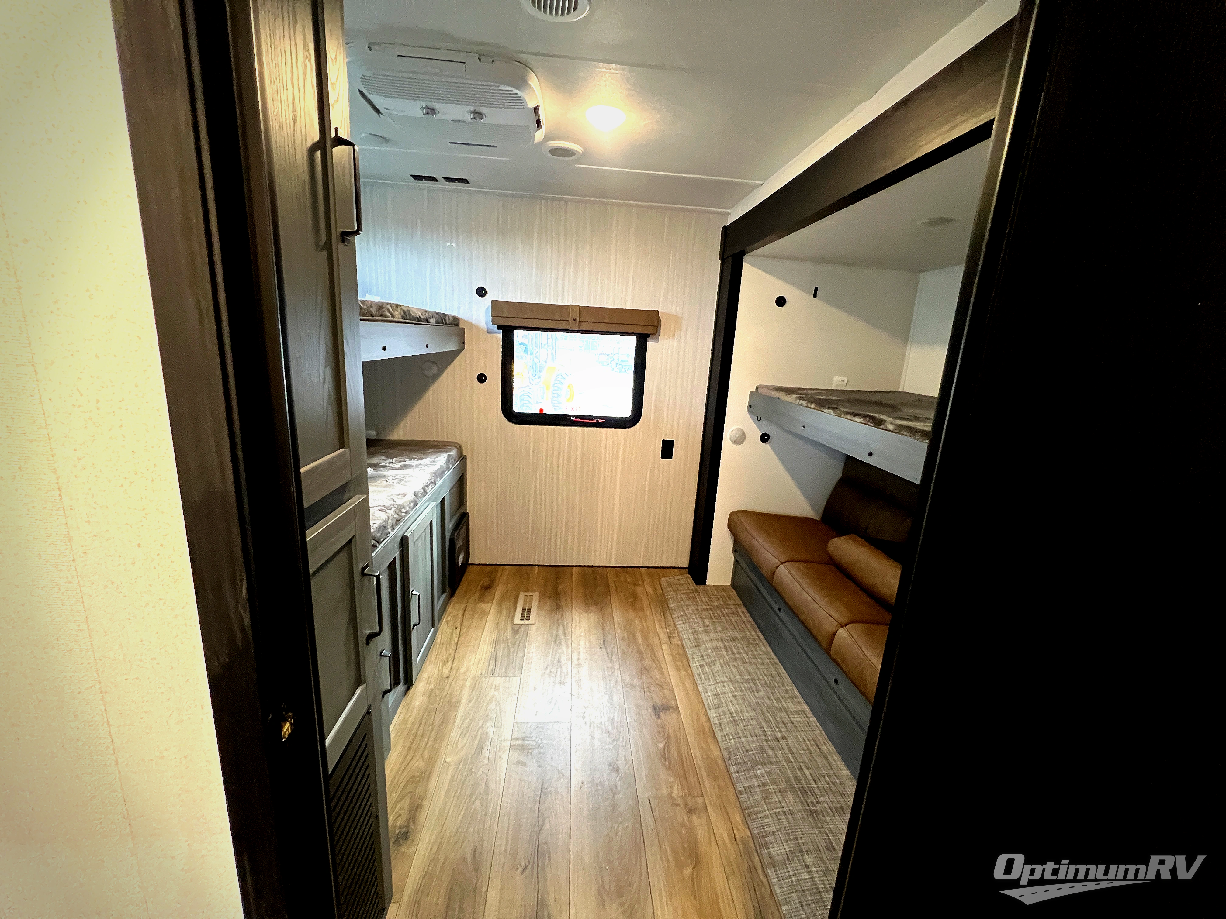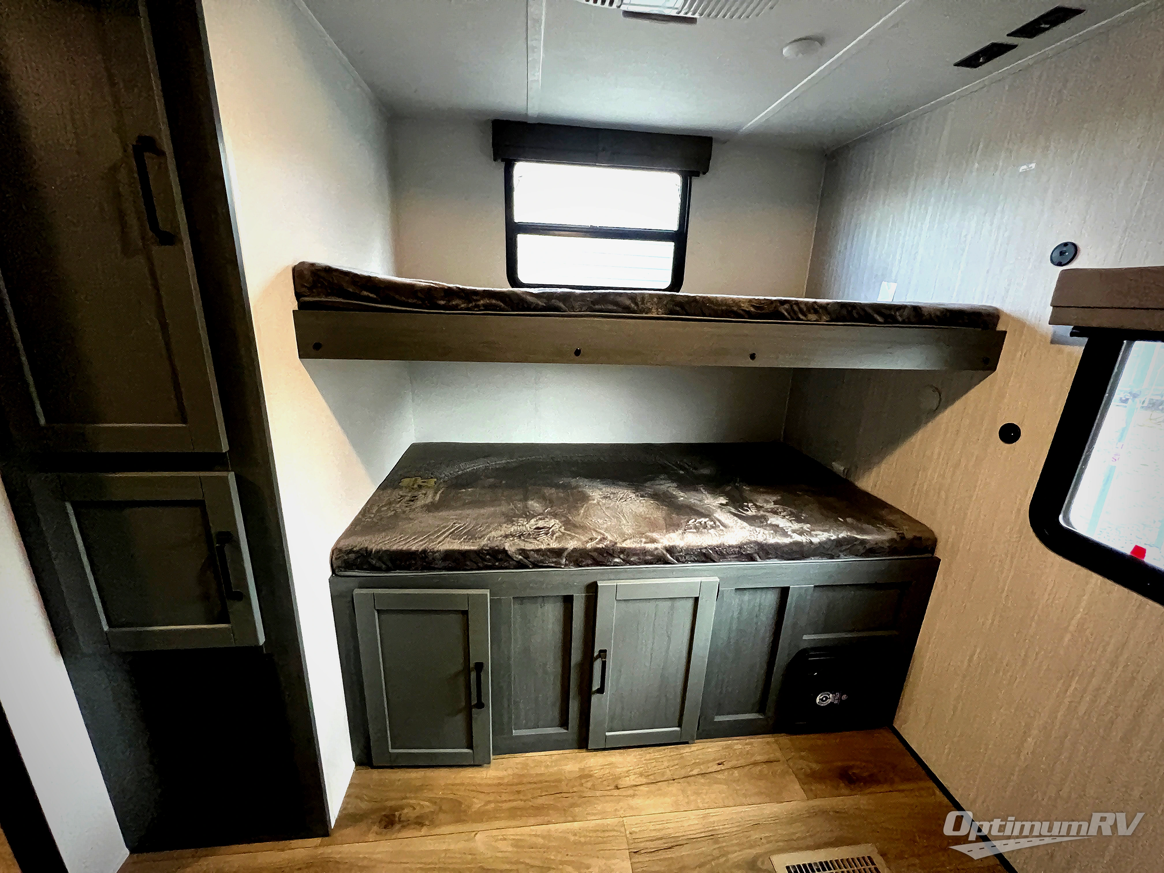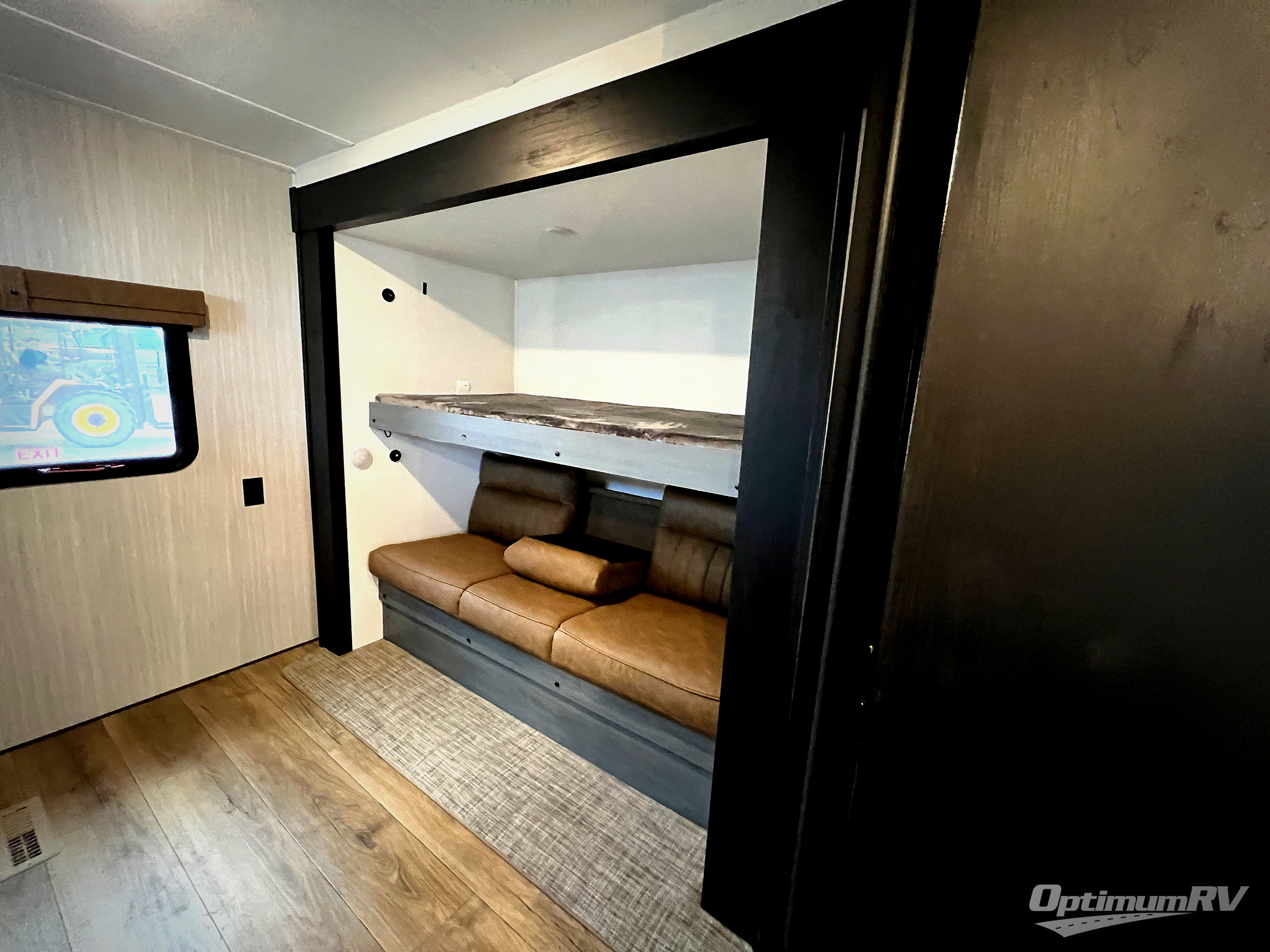 You will be the talk of the campground with this travel trailer! The front private bedroom has a queen bed slide across from a dresser and a front closet plus a second closet with washer and dryer prep. Freshen up each morning in the full bathroom with the 34" x 34" radius shower then head to the kitchen to fry up some eggs with the stainless-steel oven and range. You can enjoy your meals at the booth dinette, and the kitchen island will make your clean up easier with the sink that has a high-rise faucet and sprayer. The rear private bunkhouse has a 32" x 69" bunk above a jiffy sofa slide, a 36" x 69" bunk above a 36" x 71" bunk and a linen closet. Choose one of the outside kitchen options for even more convenience!
