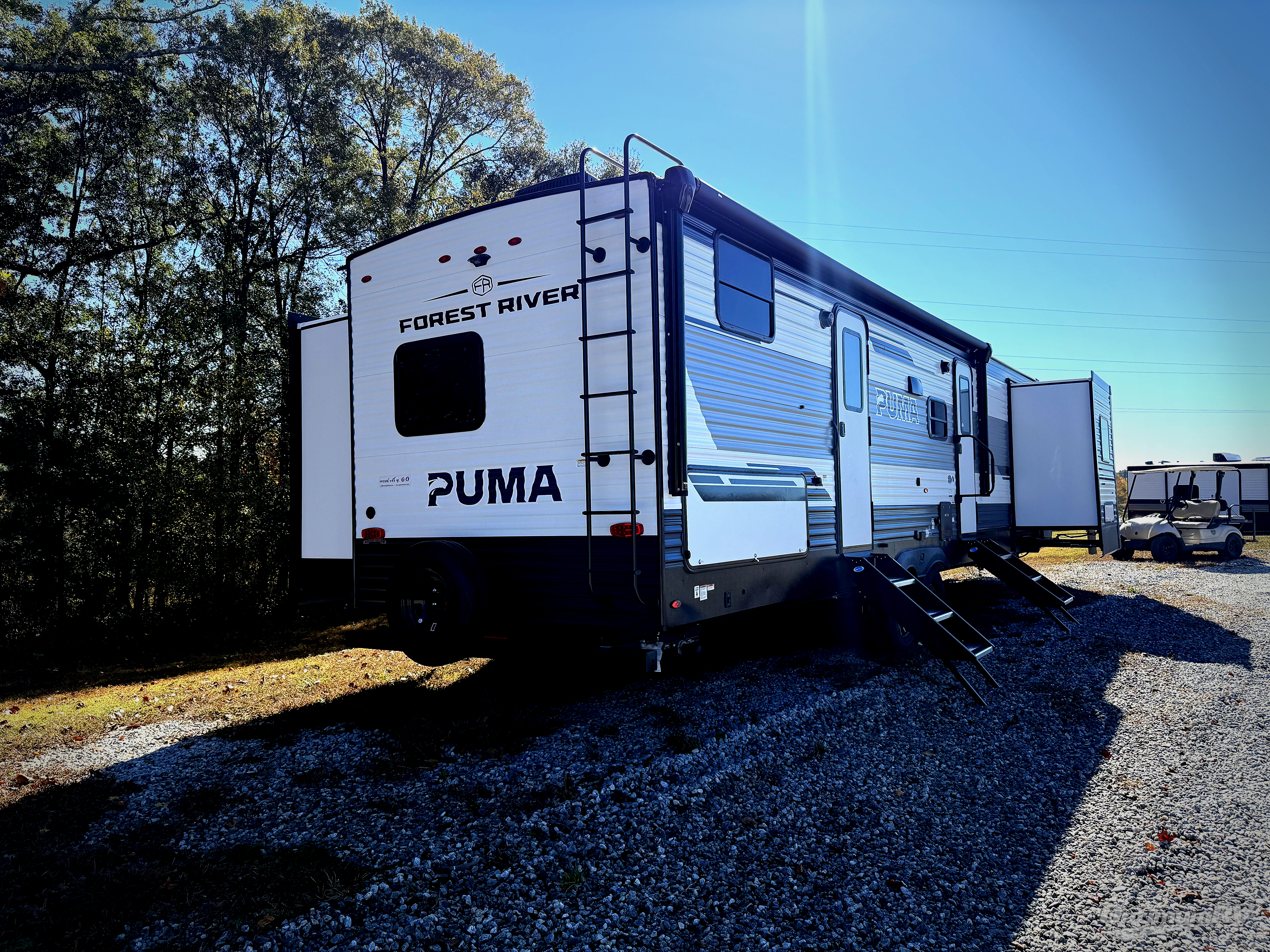 If you're looking for family-fun adventures then you need one of these Palomino Puma fifth wheels or travel trailers! They are built rugged, easy to tow, and jam packed with features. The Darco wrapped underbelly will protect your units vitals and the AlphaPly roofing membrane covers it. They also have new aluminum wheels and a powder coated steel I-beam frame. Inside, the Congoleum linoleum will be easy to keep clean, and the night roller shades will provide privacy when it's time to turn in. You'll also enjoy an electric awning with an LED light strip plus an AM/FM/Bluetooth stereo and two outside speakers to keep the party going!