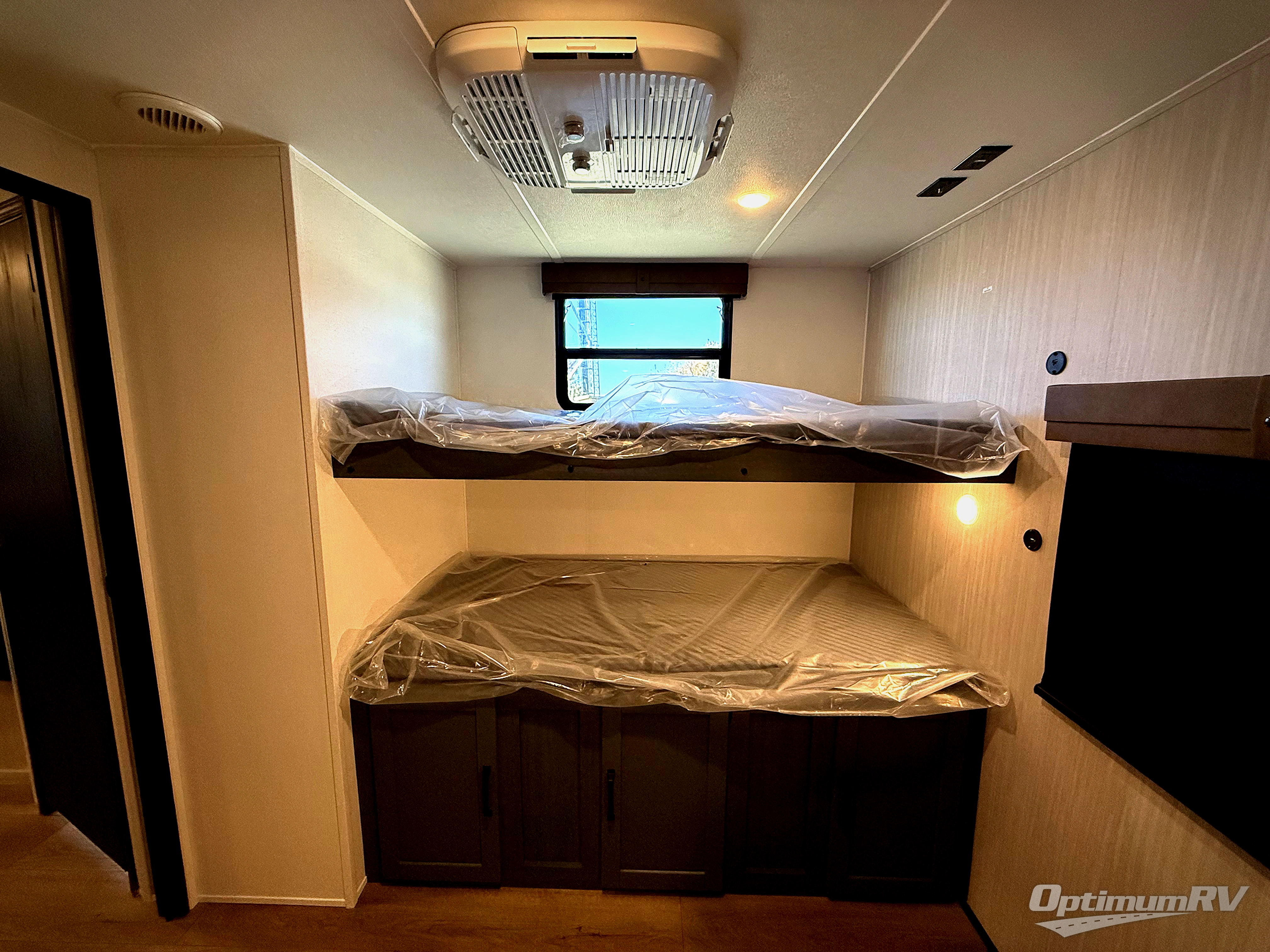 With dual entry doors and a bath and a half, you will have the ultimate in convenience with this travel trailer! The bedroom also has a front closet to keep your clothes looking their best and a queen bed slide for you to sleep your best. Everyone can freshen up in the full bathroom with the 34" x 34" radius shower and fill their bellies with scrambled eggs cooked with the stainless steel oven and range. Enjoy your meals, play games, and even sleep at the booth dinette or relax on the sofa while watching a movie with the entertainment center and fireplace. And your guests will love the rear private bunkhouse with three bunks, a jiffy sofa, and a slide out for more space! This model also includes an optional outside mini kitchen with a griddle!