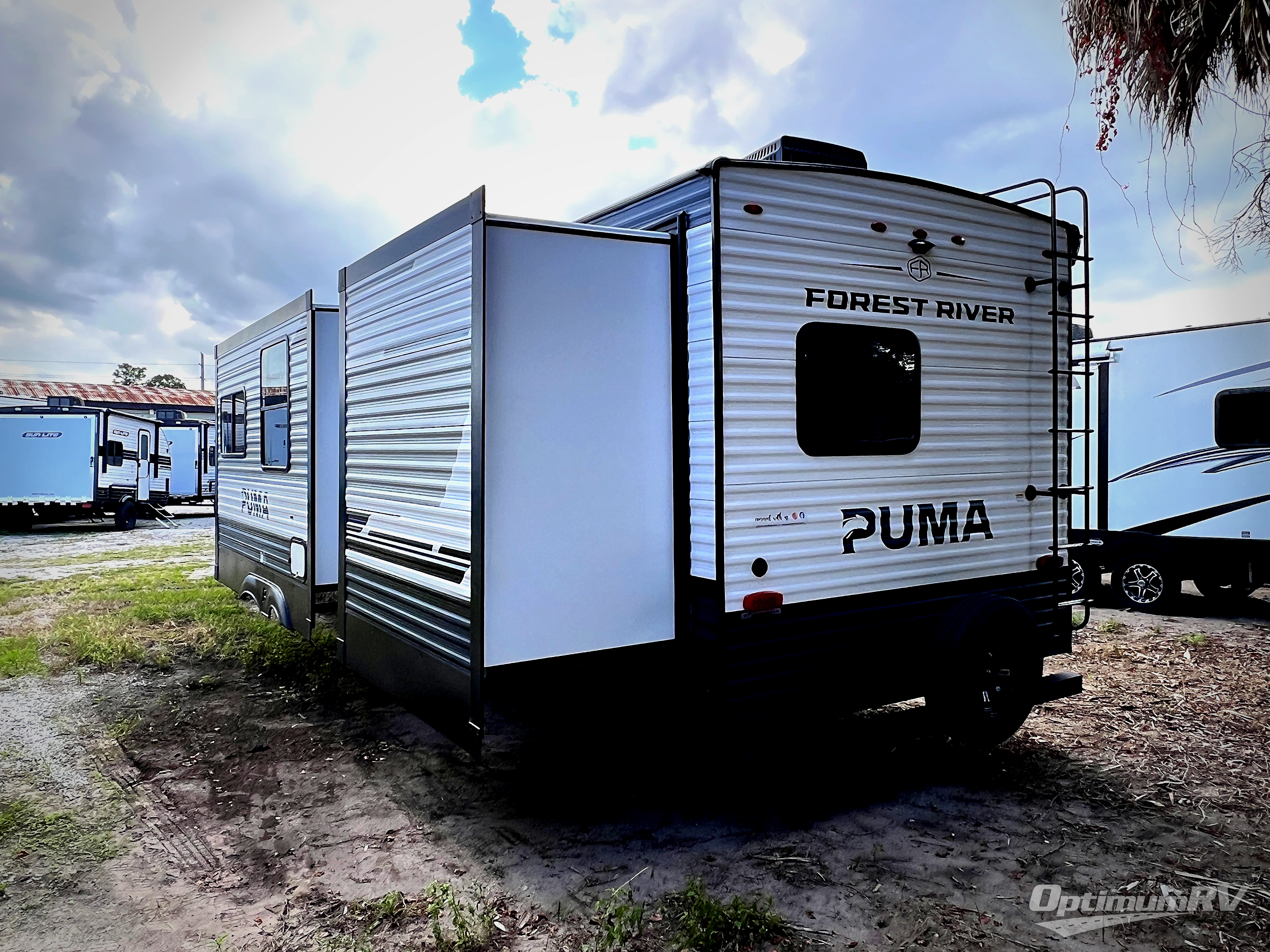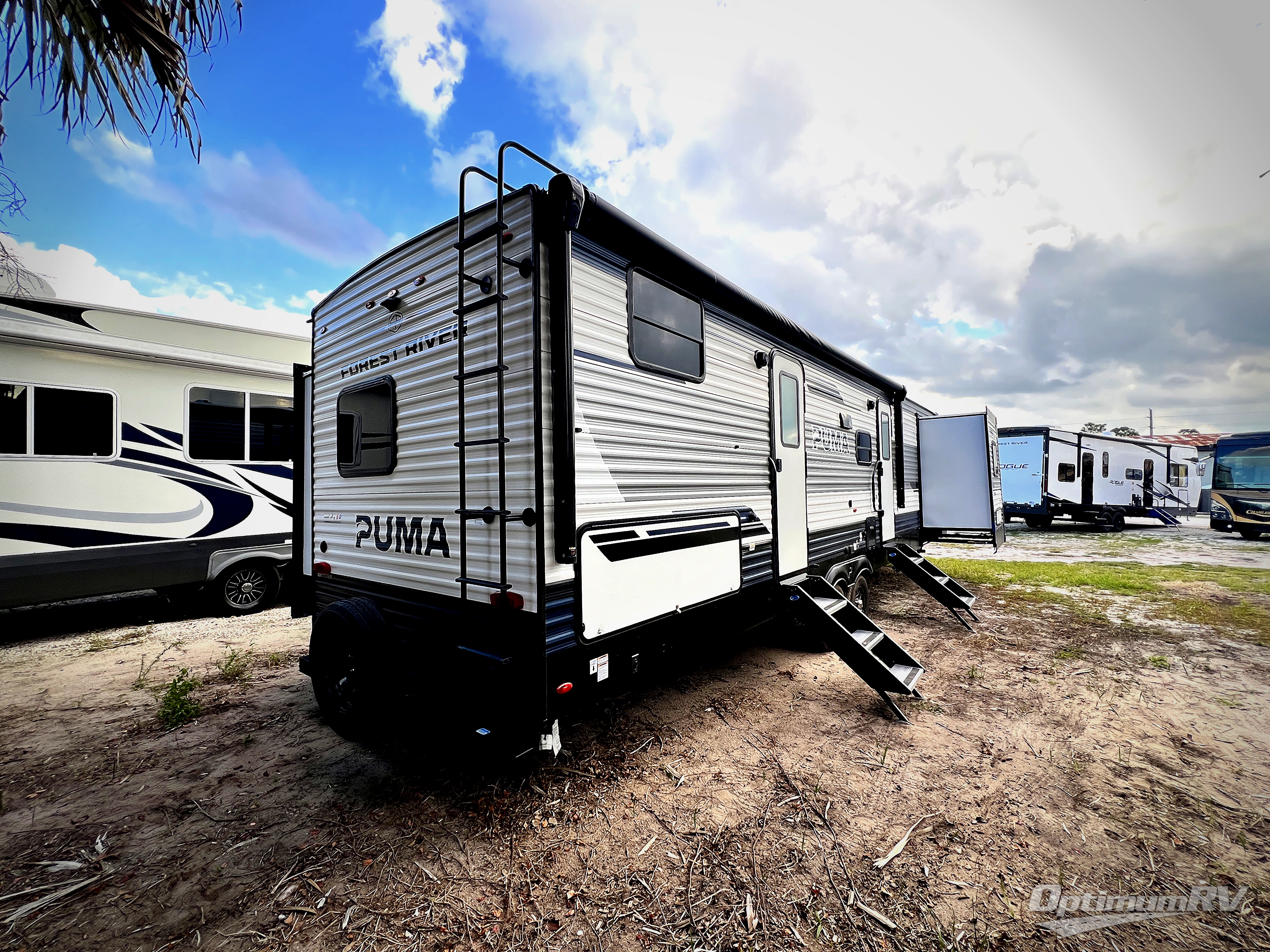 If you're looking for family-fun adventures, then you need one of these Forest River Puma travel trailers! They are built rugged, easy to tow, and jam packed with features. The Darco wrapped underbelly will help protect your unit, and the roof and side mount solar prep gives you the option to add off-grid power. Inside, the Congoleum linoleum will be easy to keep clean, and the night roller shades will provide privacy when it's time to turn in. You'll also enjoy an electric awning with an LED light strip plus an AM/FM/Bluetooth stereo and two outside speakers to keep the party going!