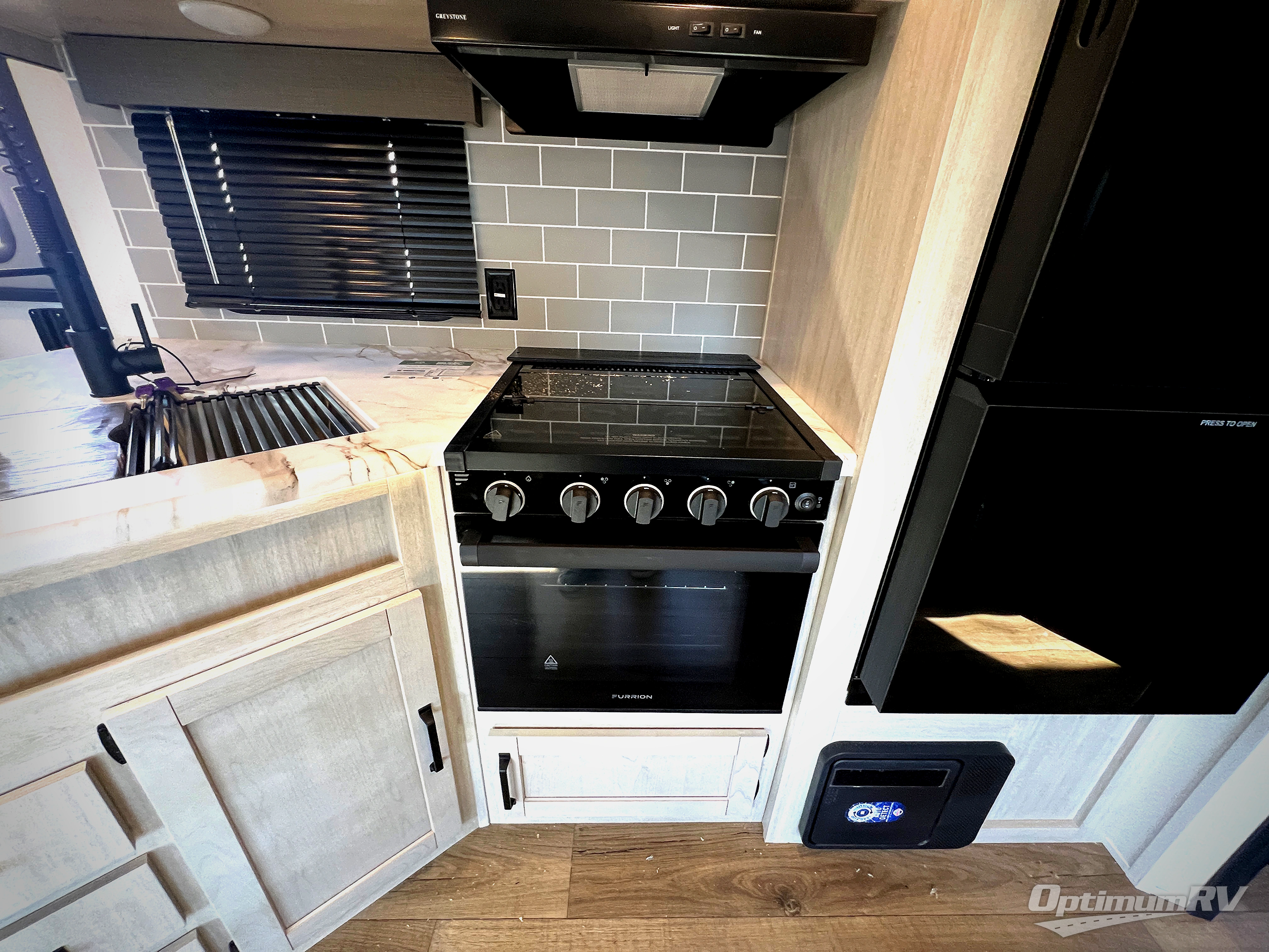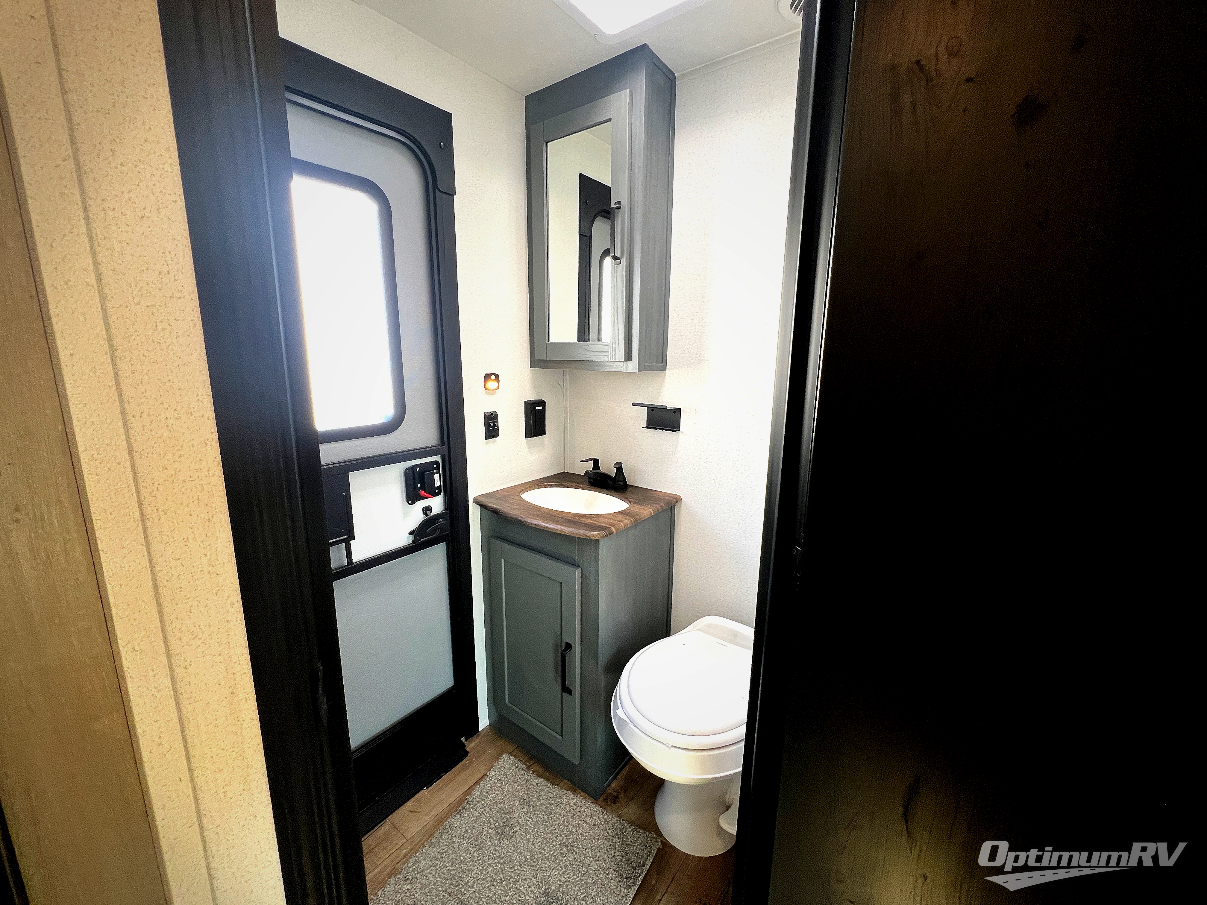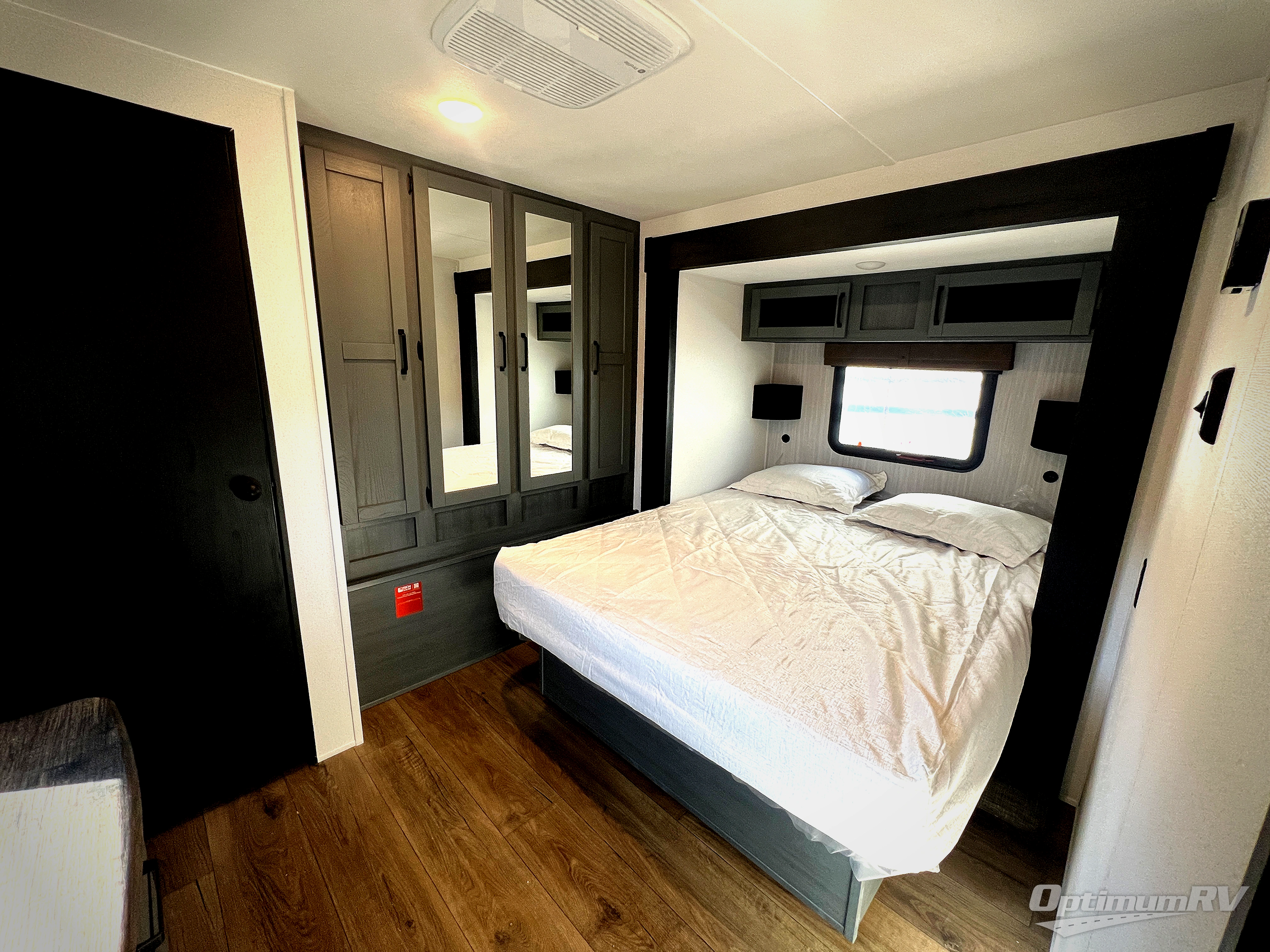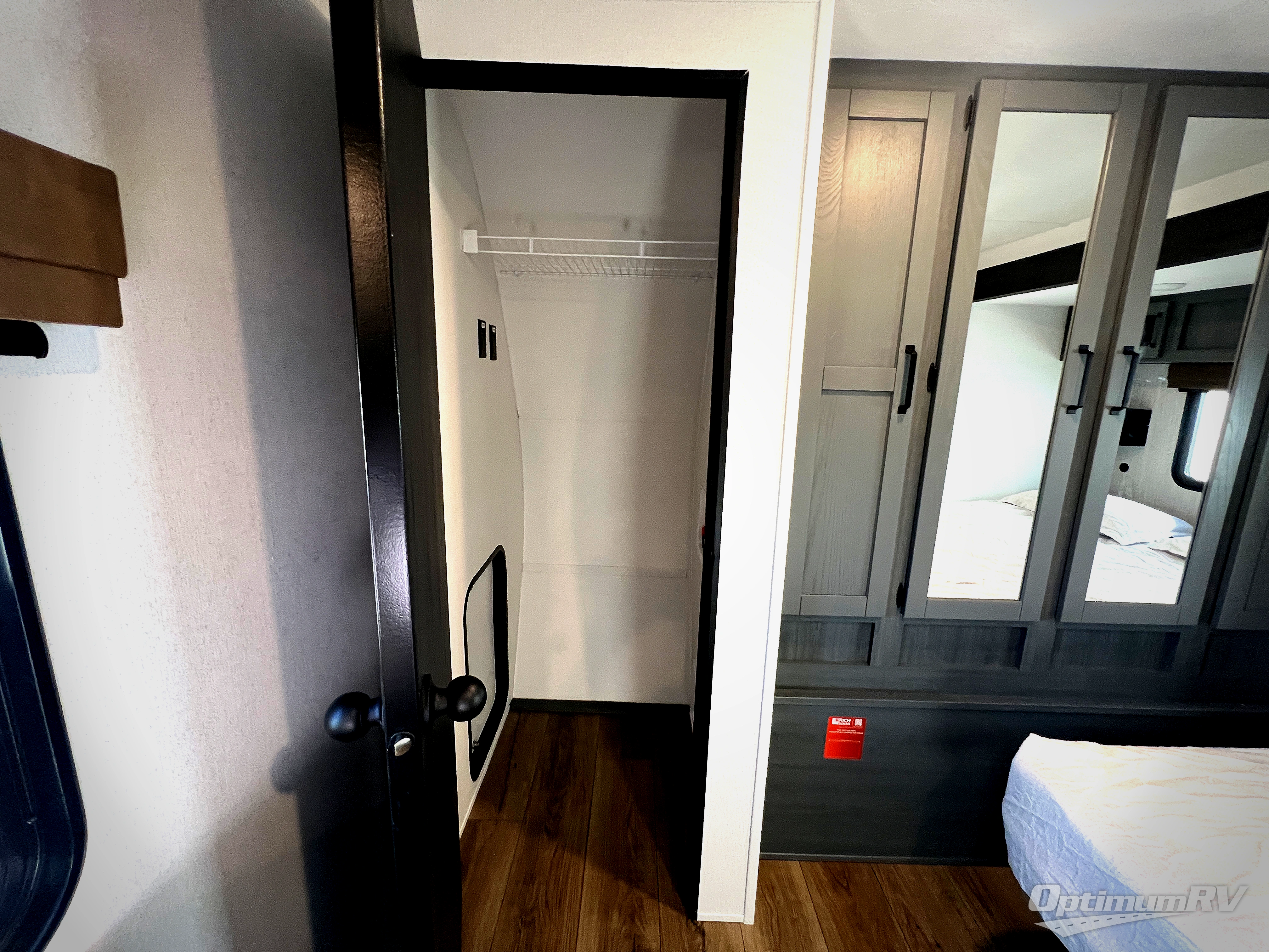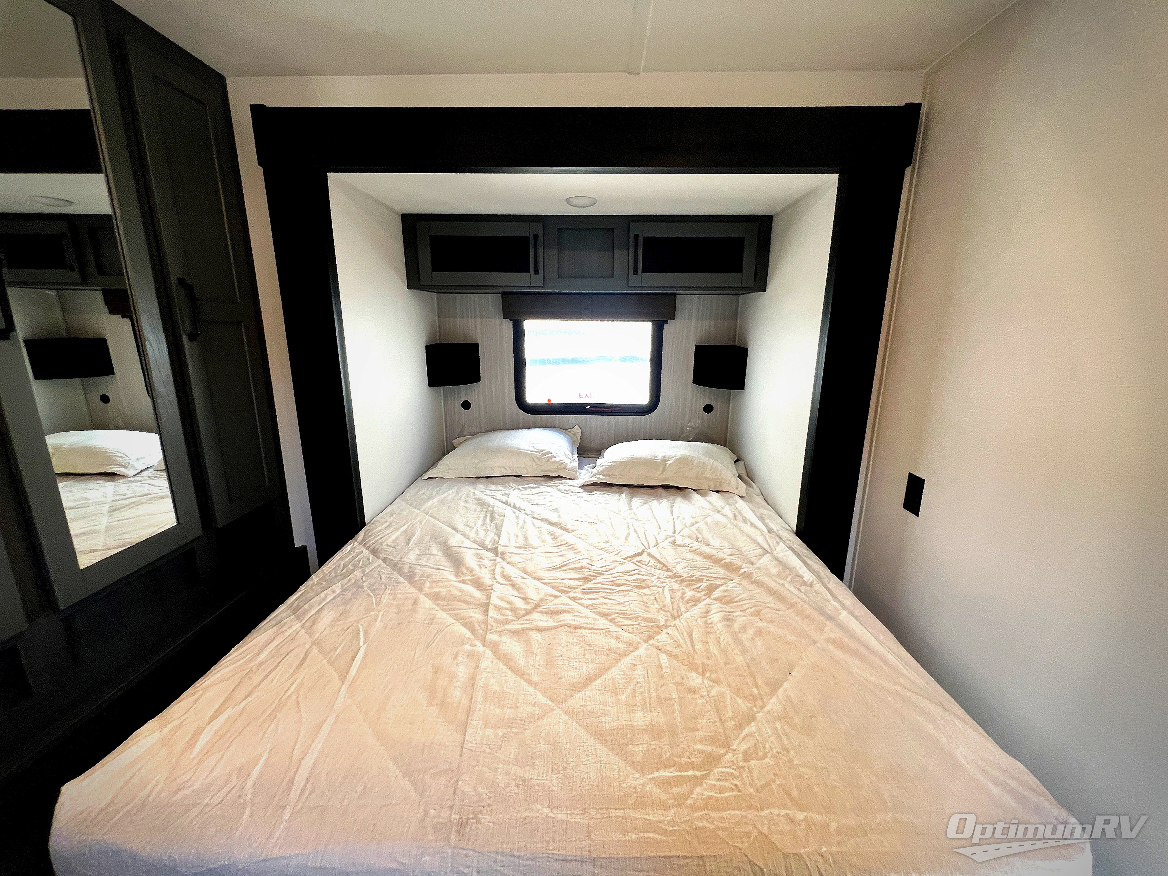 With dual entry doors and a bath and a half, you will have the ultimate in convenience with this travel trailer! The bedroom also has a front closet to keep your clothes looking their best and a queen bed slide for you to sleep your best. Everyone can freshen up in the full bathroom with the 34" x 34" radius shower and fill their bellies with scrambled eggs cooked with the stainless steel oven and range. Enjoy your meals, play games, and even sleep at the booth dinette or relax on the sofa while watching a movie with the entertainment center and fireplace. And your guests will love the rear private bunkhouse with three bunks, a jiffy sofa, and a slide out for more space! This model also includes an optional outside mini kitchen with a griddle!
