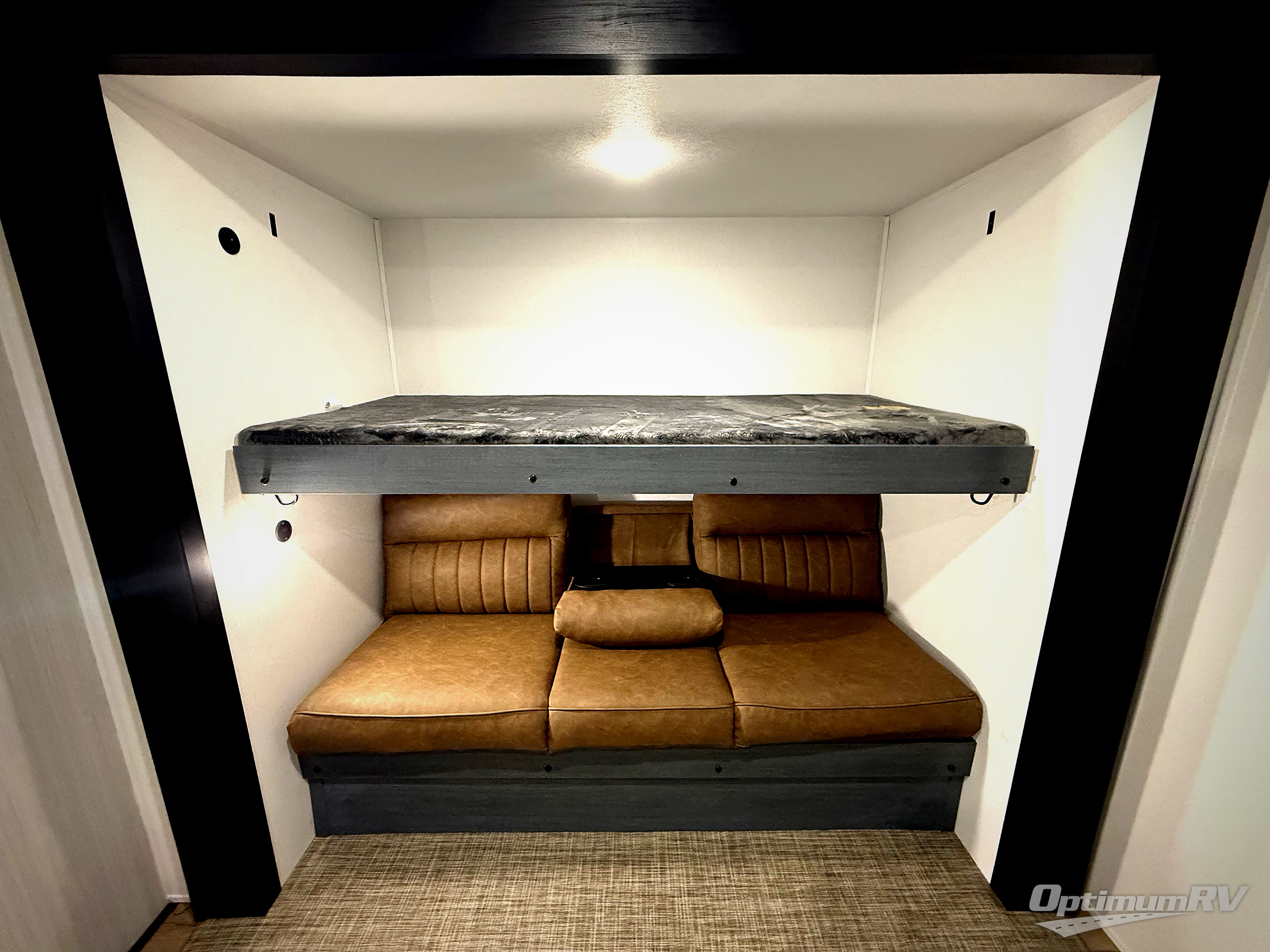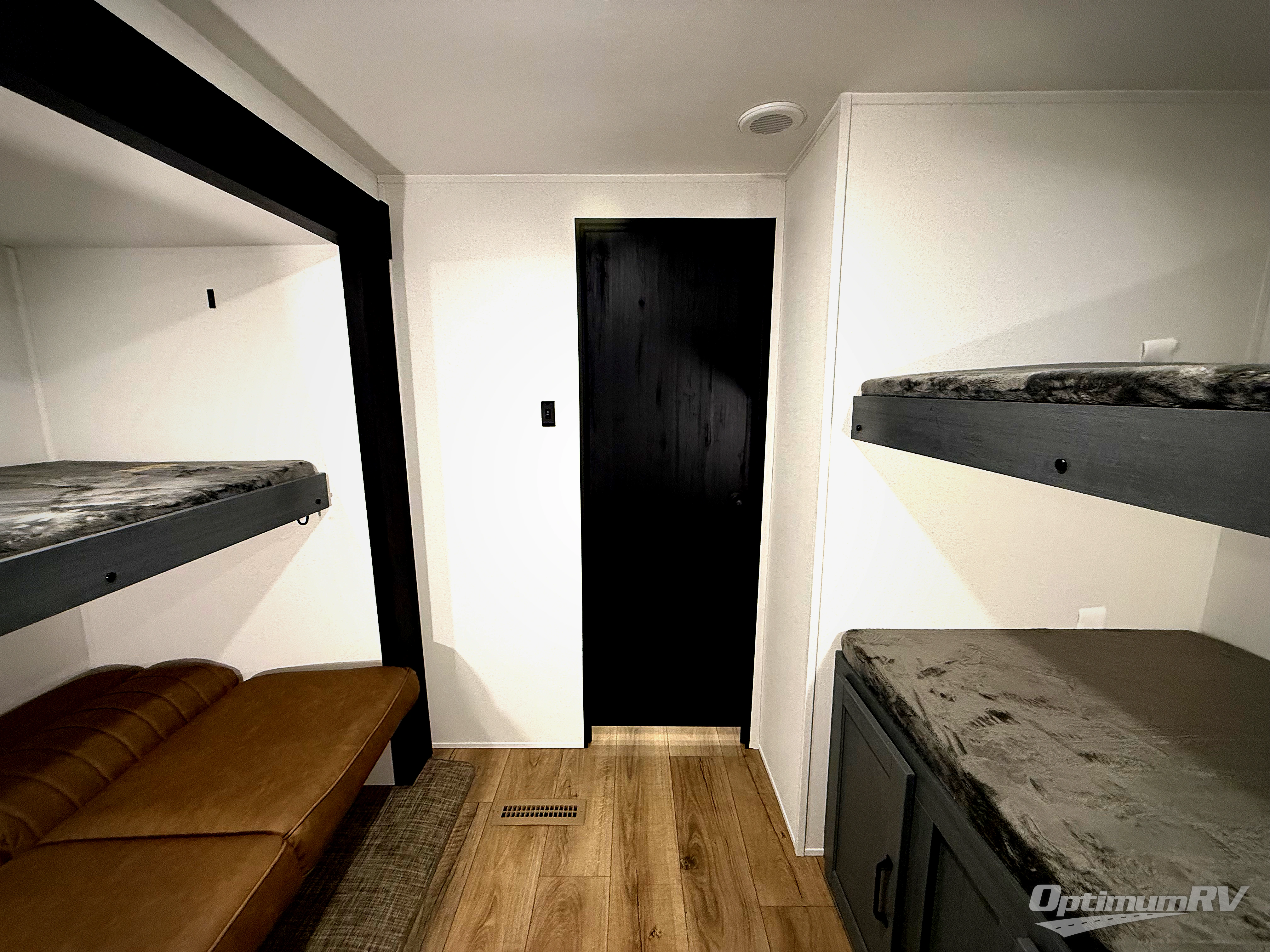 With dual entry doors and a bath and a half, you will have the ultimate in convenience with this travel trailer! The bedroom also has a front closet to keep your clothes looking their best and a queen bed slide for you to sleep your best. Everyone can freshen up in the full bathroom with the 34" x 34" radius shower and fill their bellies with scrambled eggs cooked with the stainless steel oven and range. Enjoy your meals, play games, and even sleep at the booth dinette or relax on the sofa while watching a movie with the entertainment center and fireplace. And your guests will love the rear private bunkhouse with three bunks, a jiffy sofa, and a slide out for more space! This model also includes an optional outside mini kitchen with a griddle!