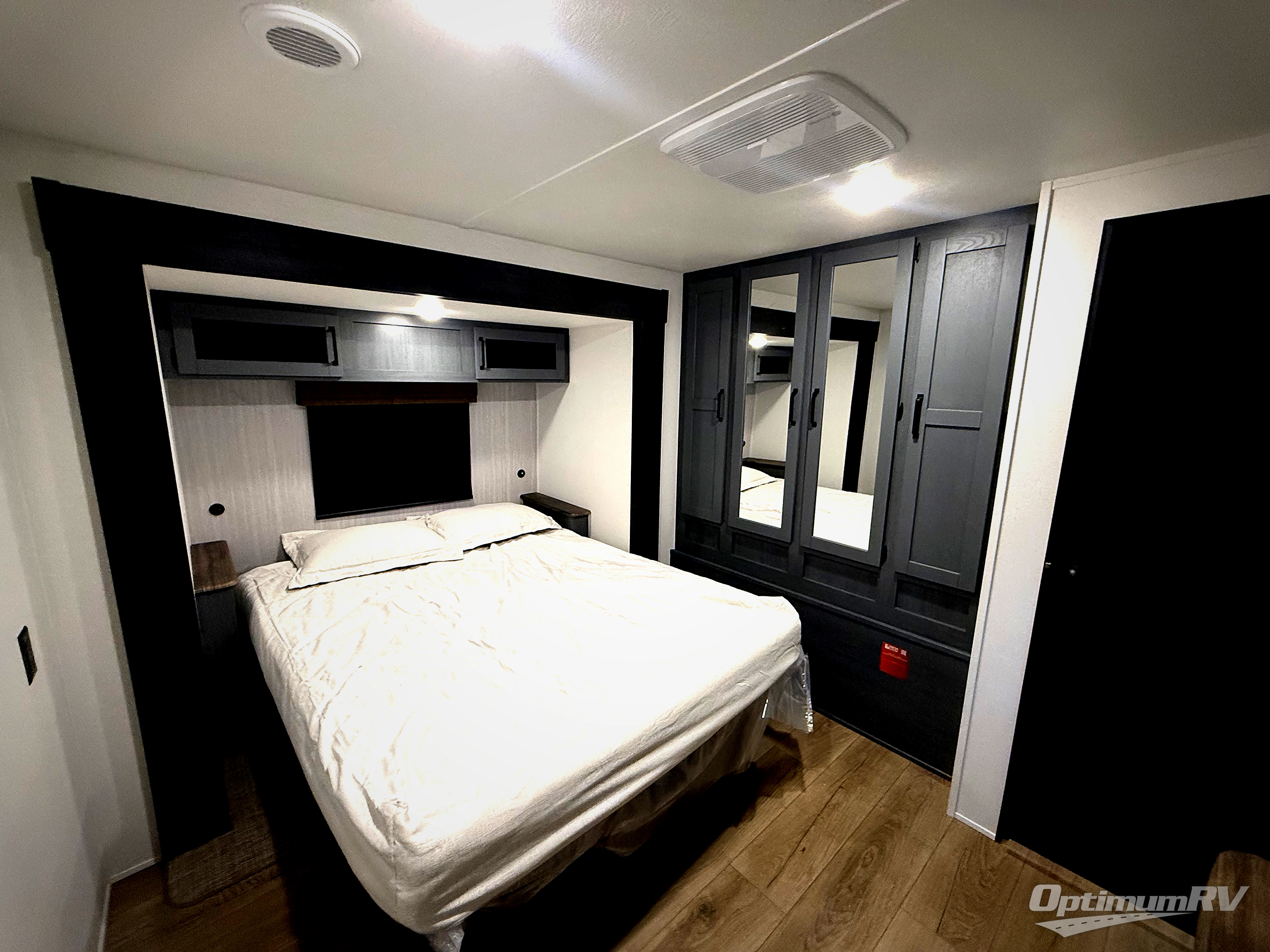 The whole family will love camping in this travel trailer! The kids will have their own privacy with the rear private bunkhouse which has a 32" x 69" bunk above a jiffy sofa slide and a 38" x 76" bunk above an entertainment center to keep them occupied on those rainy days. And you will have your own privacy with the front private bedroom that has a queen bed slide across from a dresser and a front closet. There is even a second closet with washer and dryer prep if you choose to add those appliances. Everyone can stay clean in the full bathroom with the 34" x 34" radius shower and their bellies full with the full kitchen. And you can choose between two outside kitchen options for even more convenience!