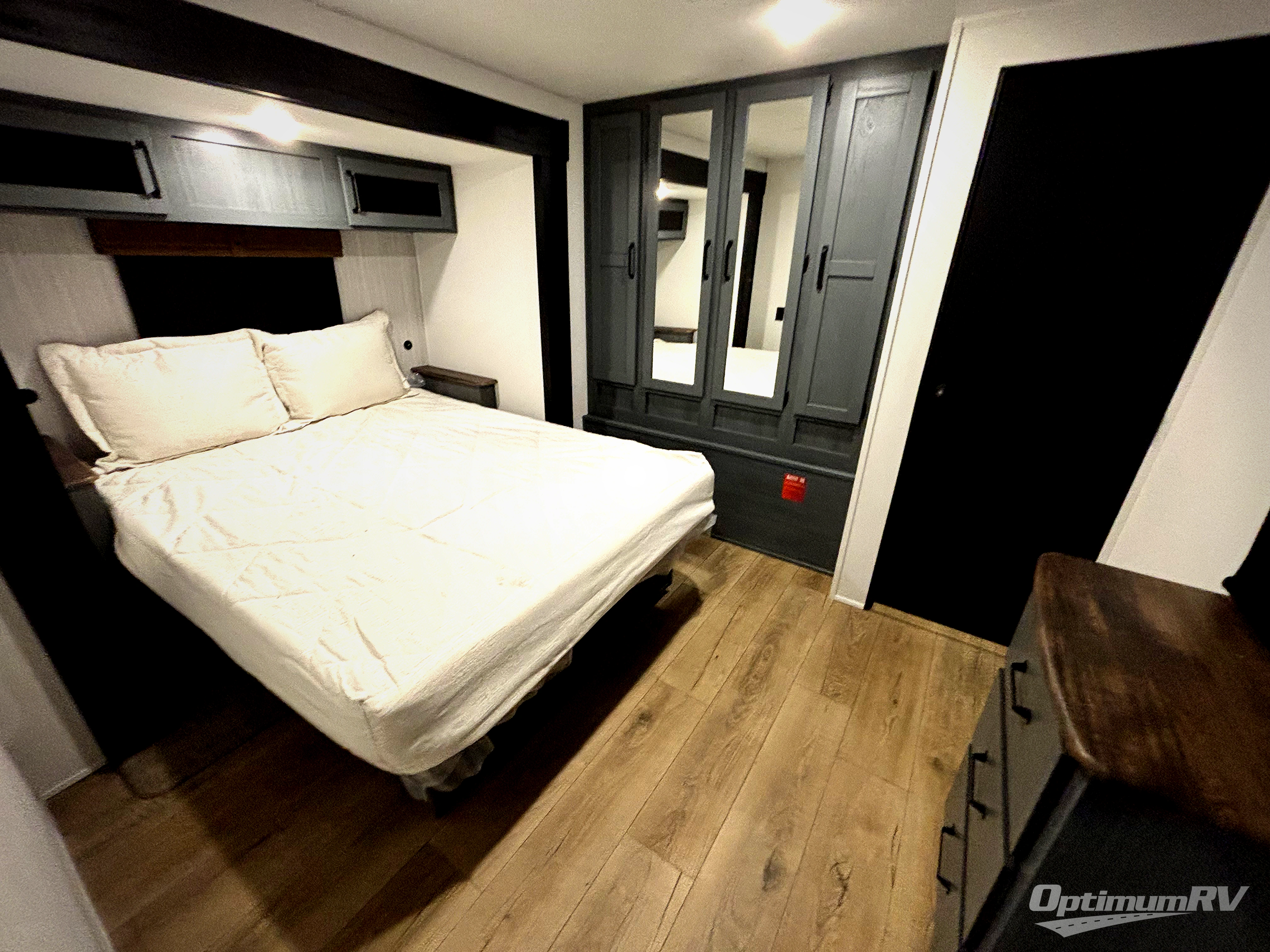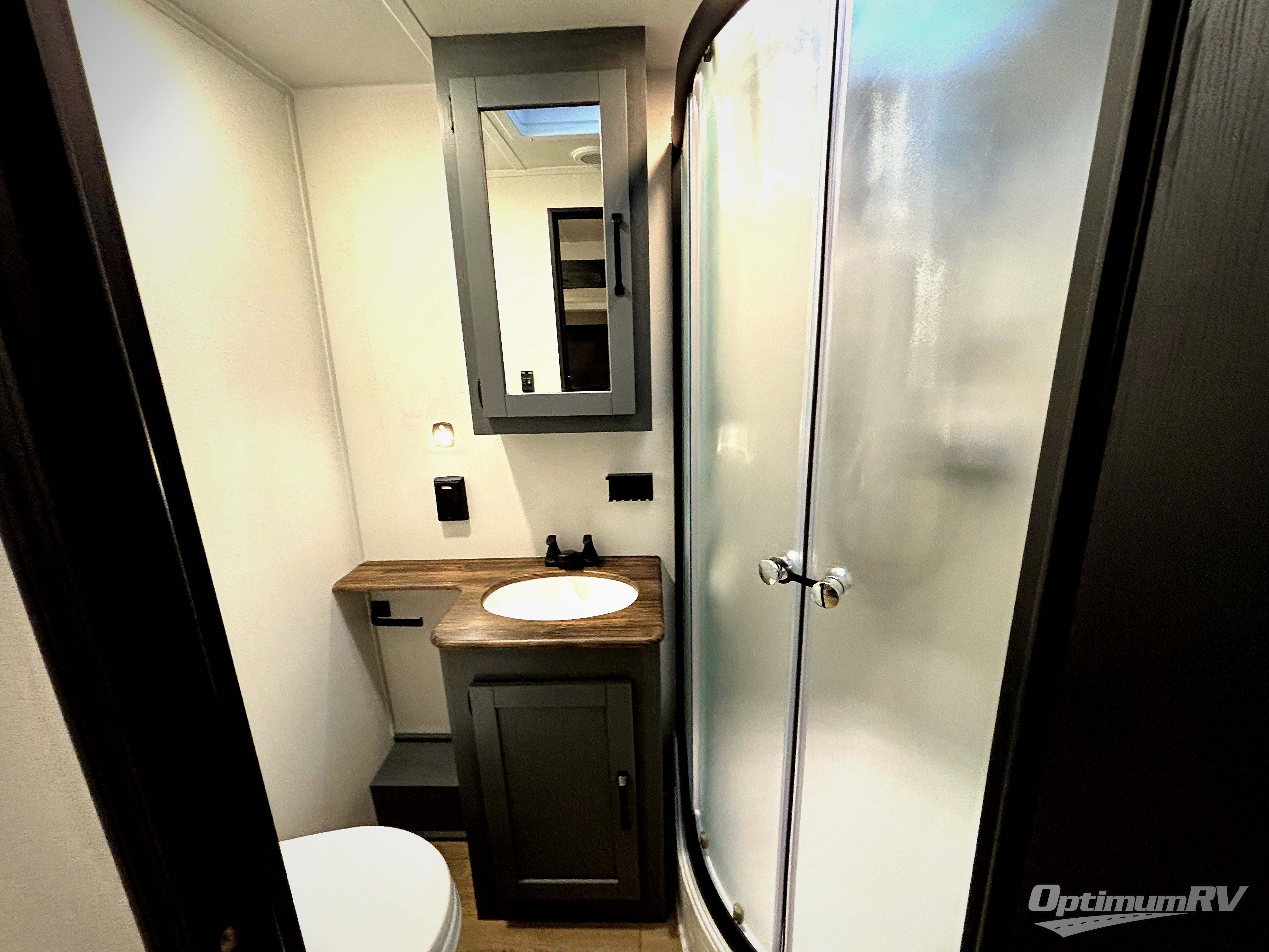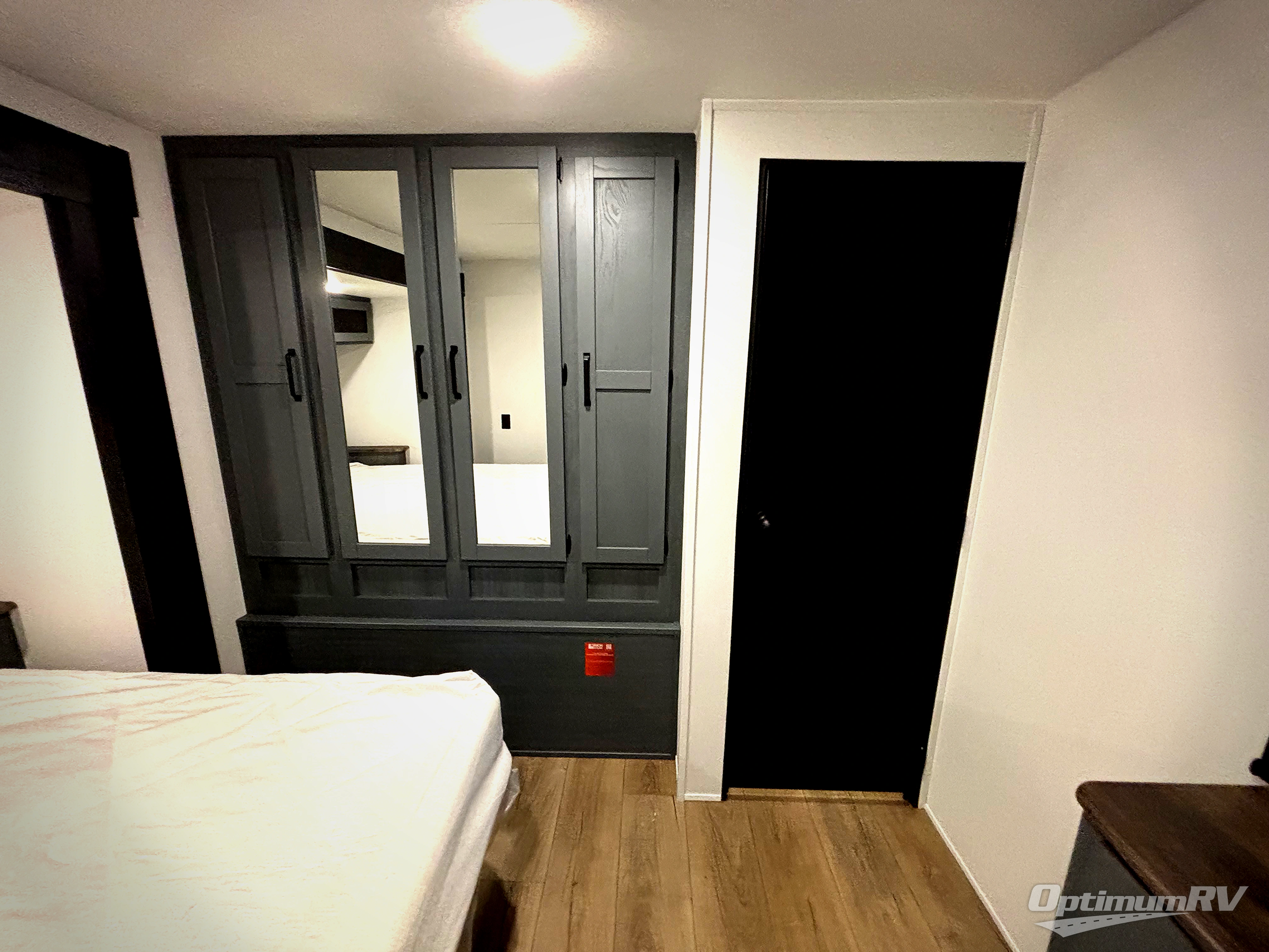 The whole family will love camping in this travel trailer! The kids will have their own privacy with the rear private bunkhouse which has a 32" x 69" bunk above a jiffy sofa slide and a 38" x 76" bunk above an entertainment center to keep them occupied on those rainy days. And you will have your own privacy with the front private bedroom that has a queen bed slide across from a dresser and a front closet. There is even a second closet with washer and dryer prep if you choose to add those appliances. Everyone can stay clean in the full bathroom with the 34" x 34" radius shower and their bellies full with the full kitchen. And you can choose between two outside kitchen options for even more convenience!
