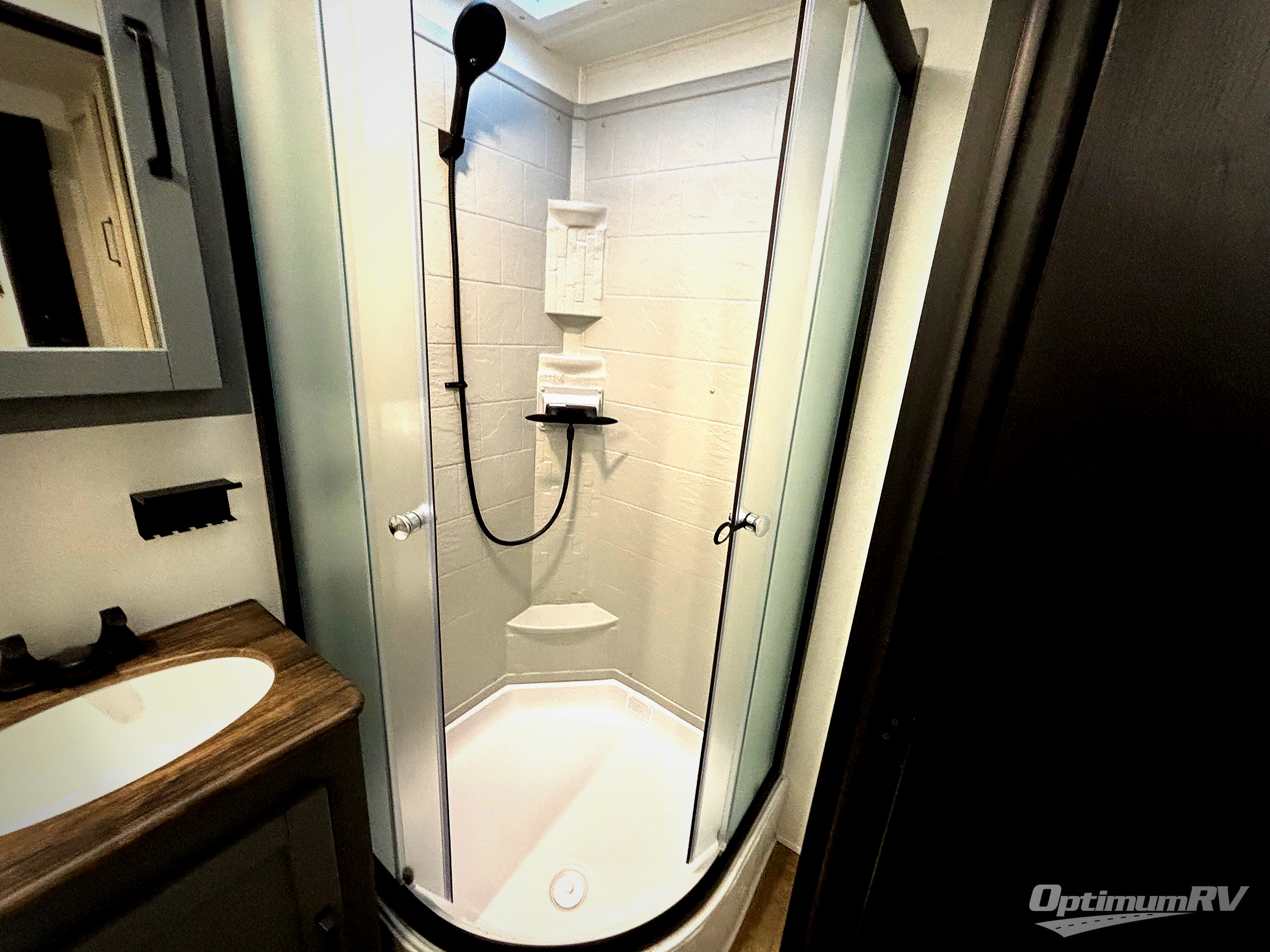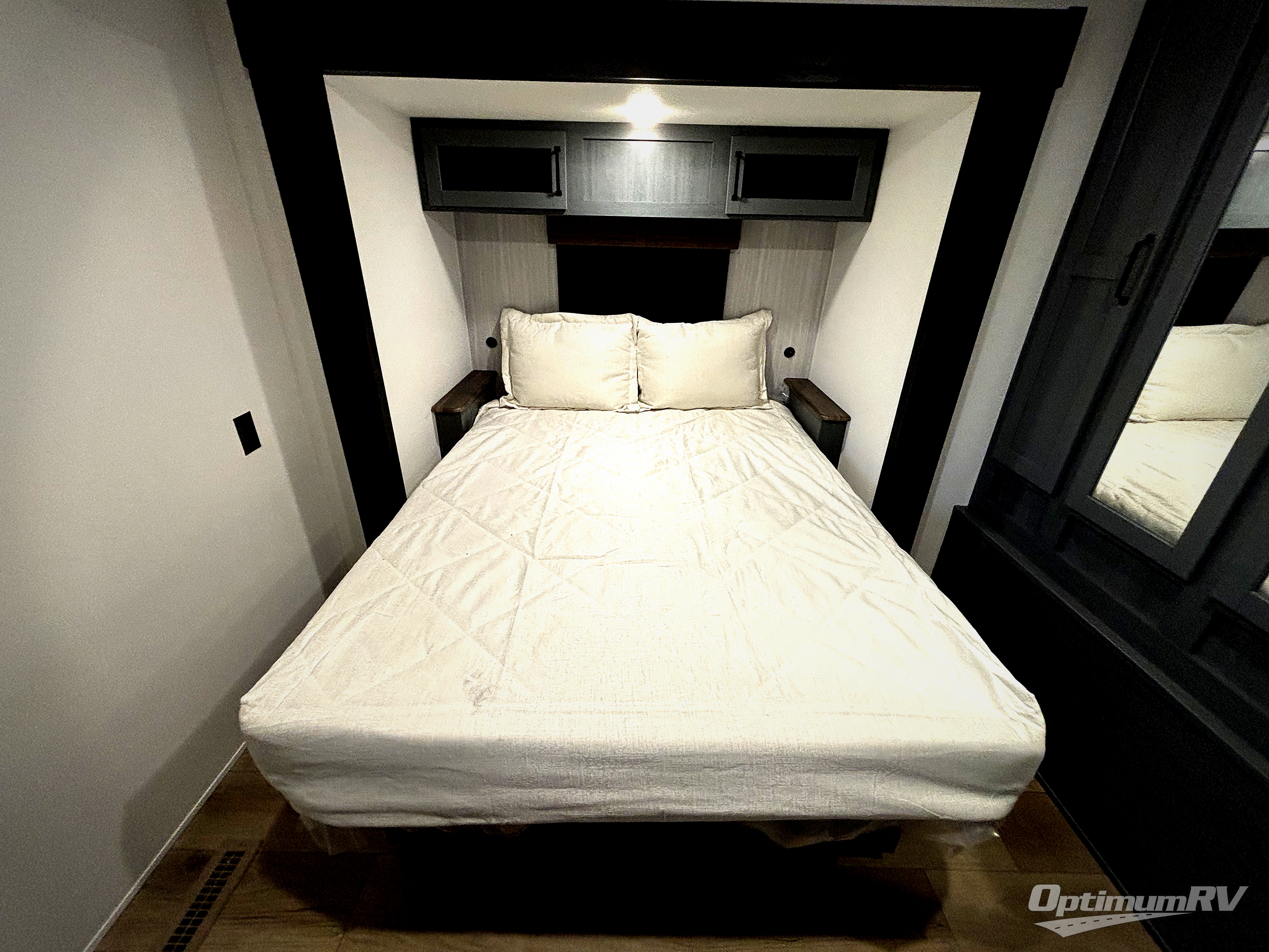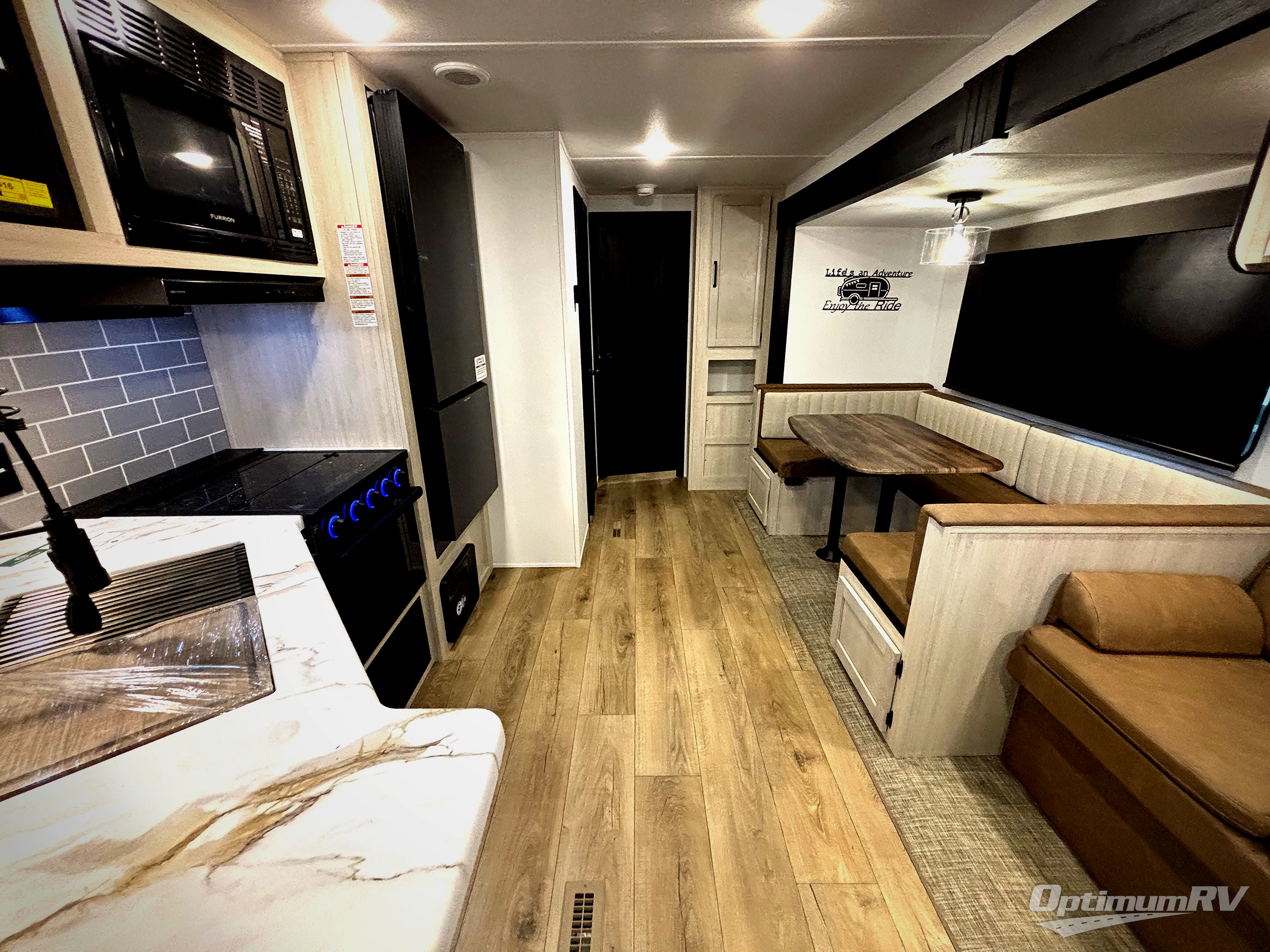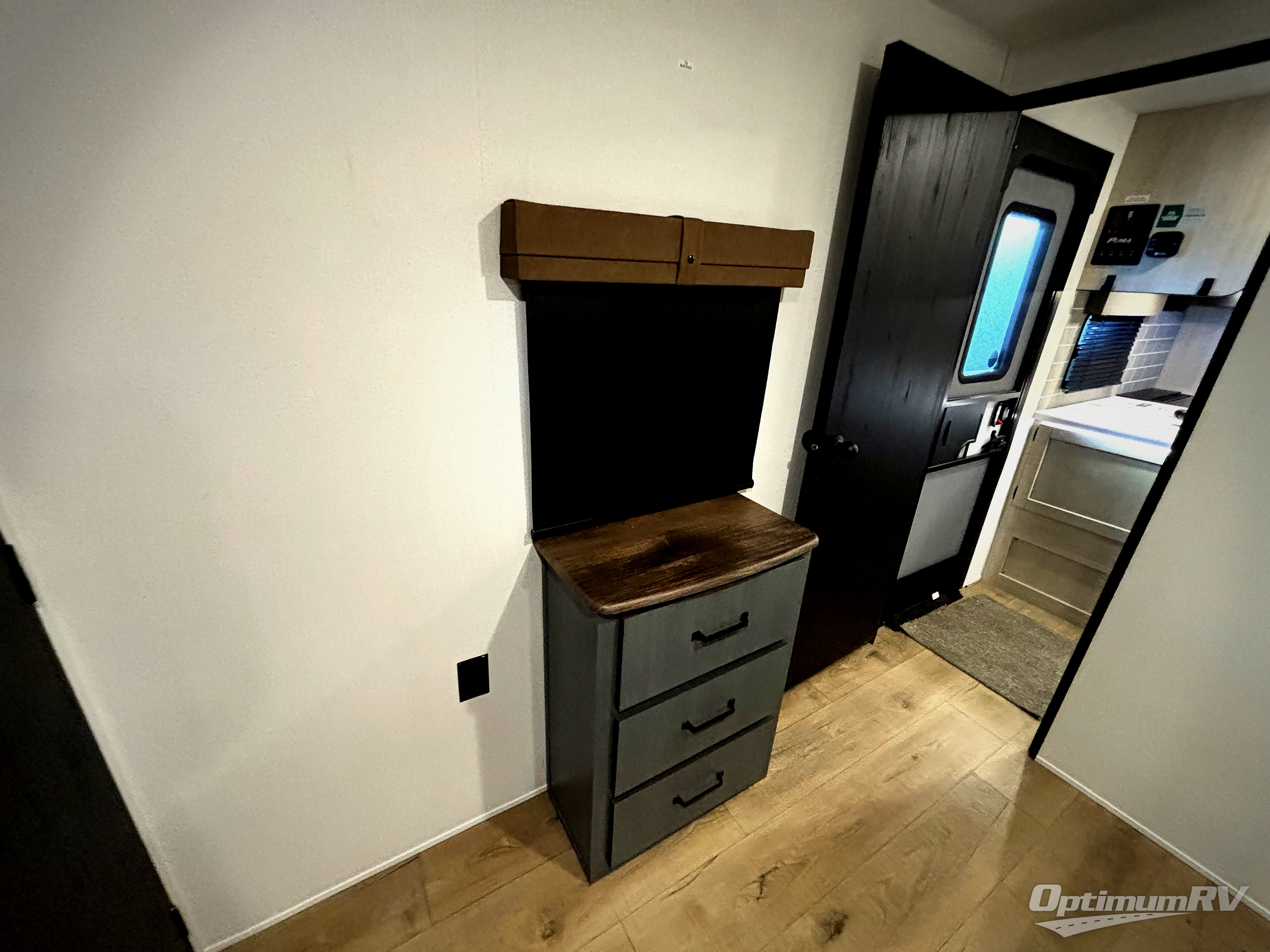 The whole family will love camping in this travel trailer! The kids will have their own privacy with the rear private bunkhouse which has a 32" x 69" bunk above a jiffy sofa slide and a 38" x 76" bunk above an entertainment center to keep them occupied on those rainy days. And you will have your own privacy with the front private bedroom that has a queen bed slide across from a dresser and a front closet. There is even a second closet with washer and dryer prep if you choose to add those appliances. Everyone can stay clean in the full bathroom with the 34" x 34" radius shower and their bellies full with the full kitchen. And you can choose between two outside kitchen options for even more convenience!