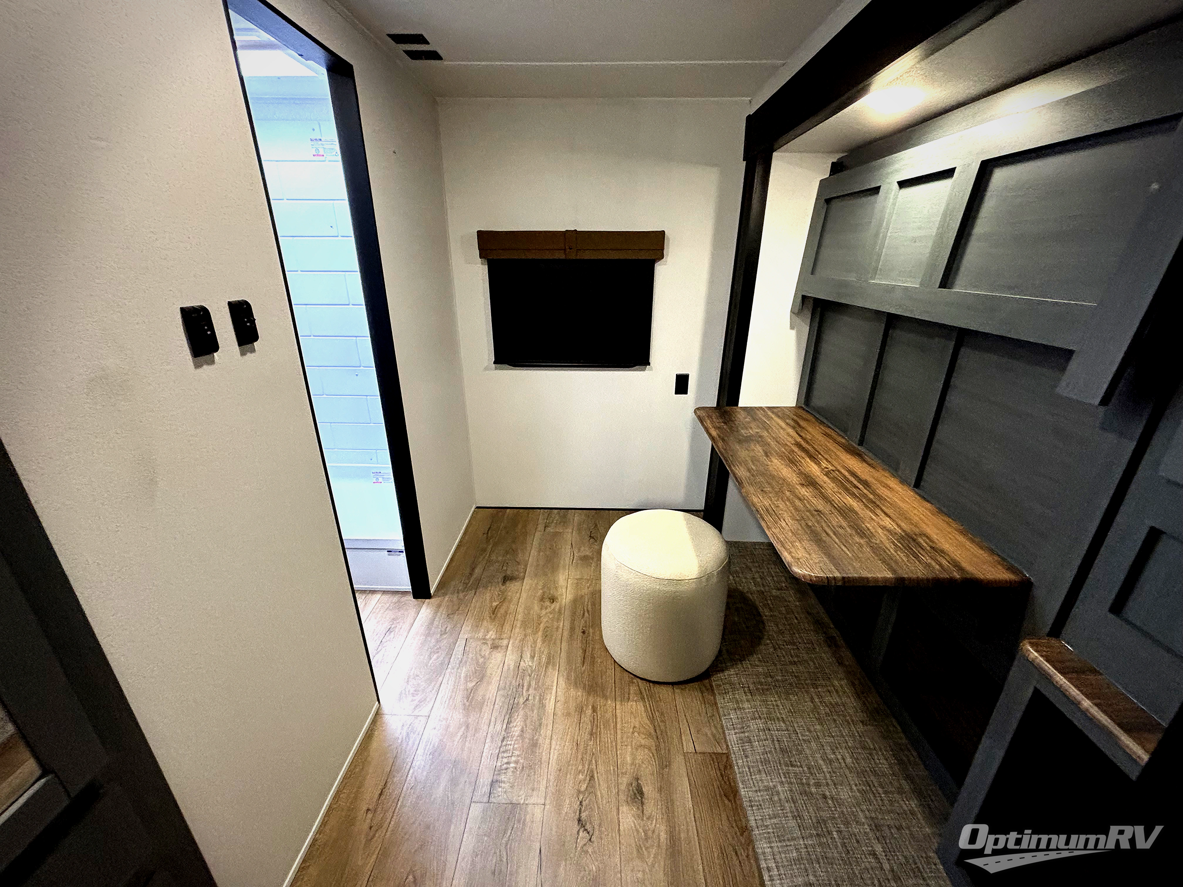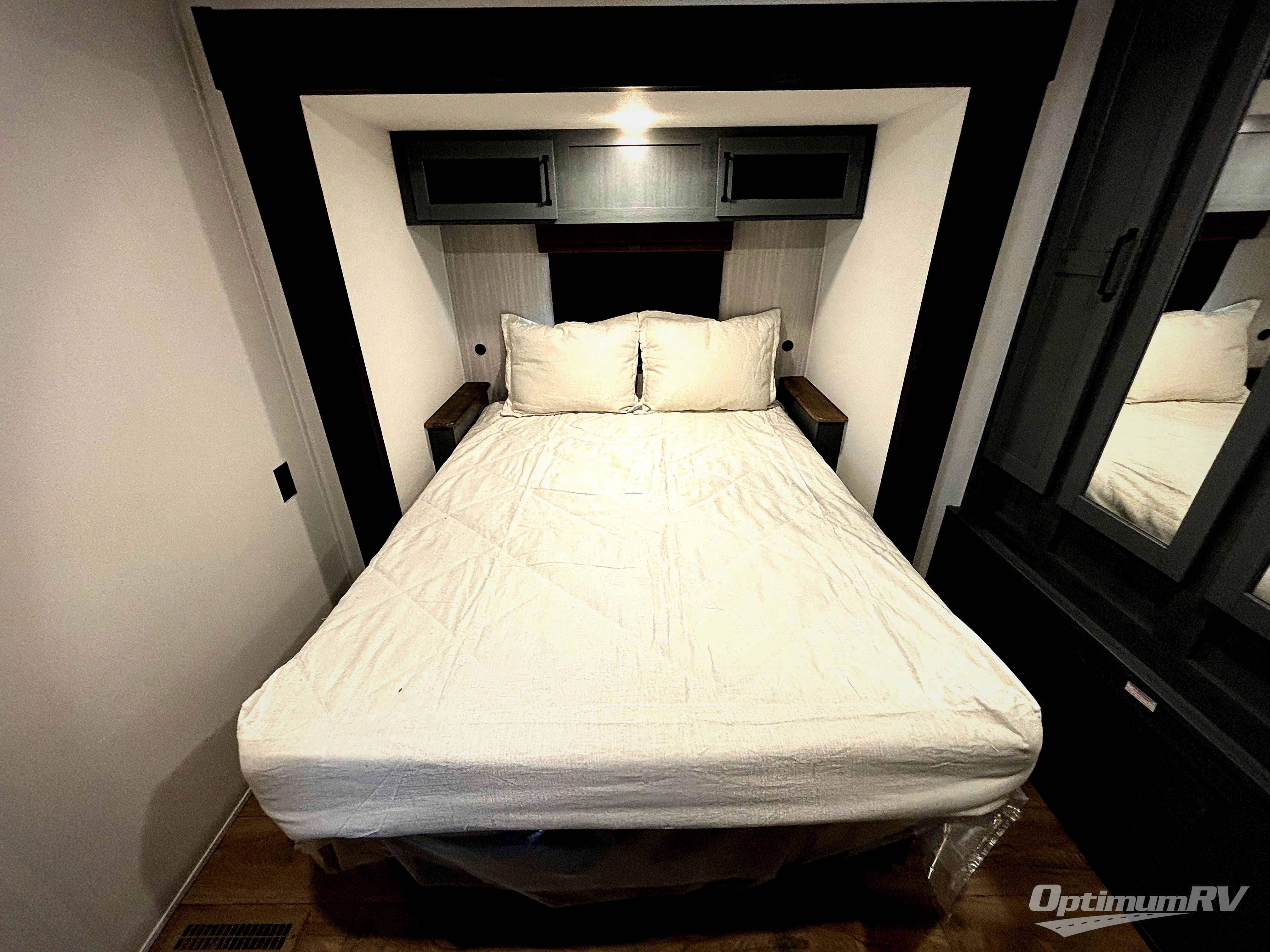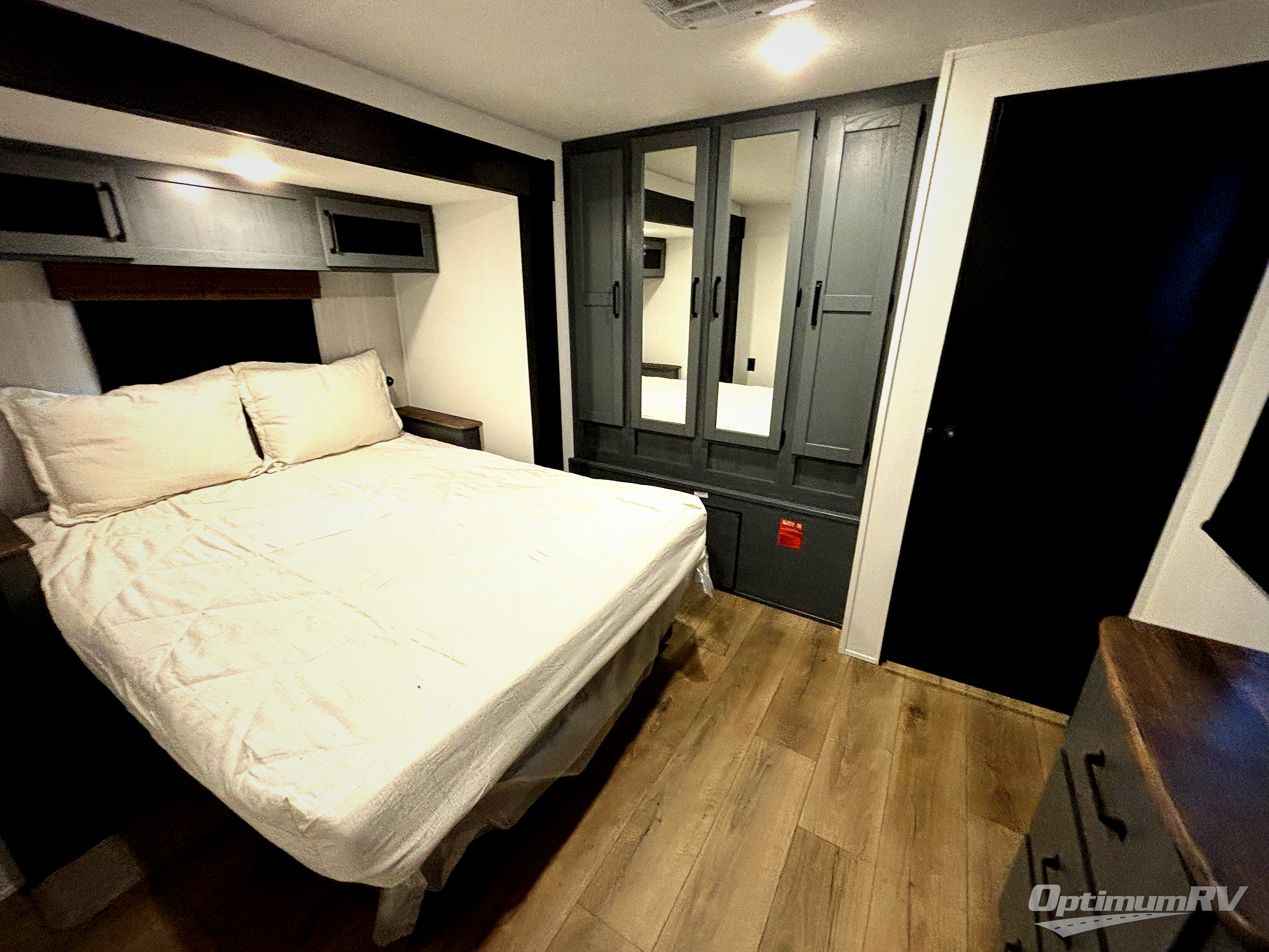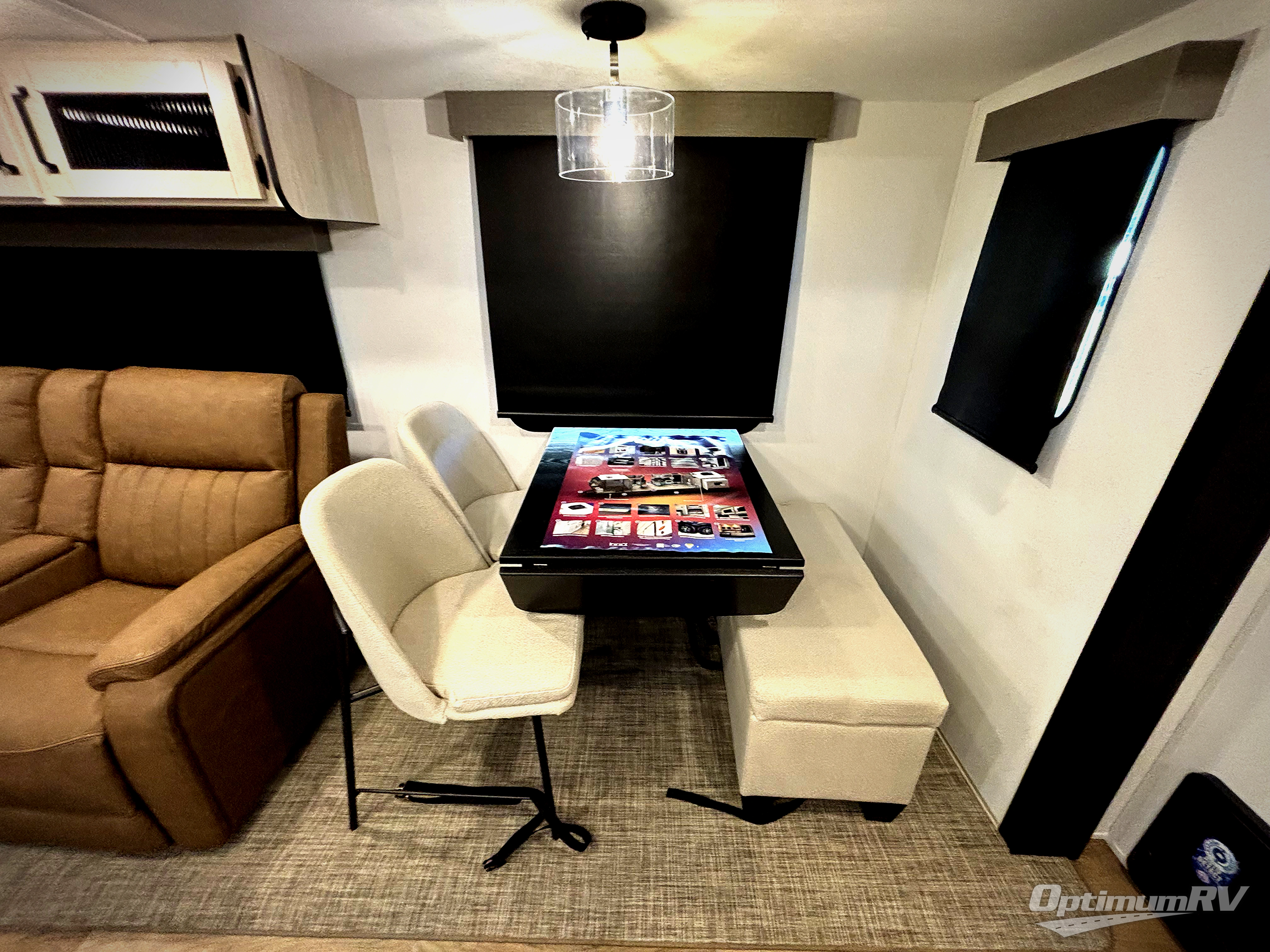 If you enjoy camping with friends or family, this travel trailer will be perfect for you! There are two bedrooms with queen bed slide outs and storage space, plus the rear bedroom includes its own full bath for added comfort. A bunkhouse suite option is also available if you choose the jiffy sofa with a bunk in place of the queen bed in the rear bedroom. Everyone can meet in the combined kitchen and living area that includes a counter peninsula, a spacious pantry, all the kitchen appliances to cook meals, plus a table with chairs and bench seating. There is also a sofa with overhead storage for more seating and sleeping space. Don't let this impressive travel trailer slip away!
