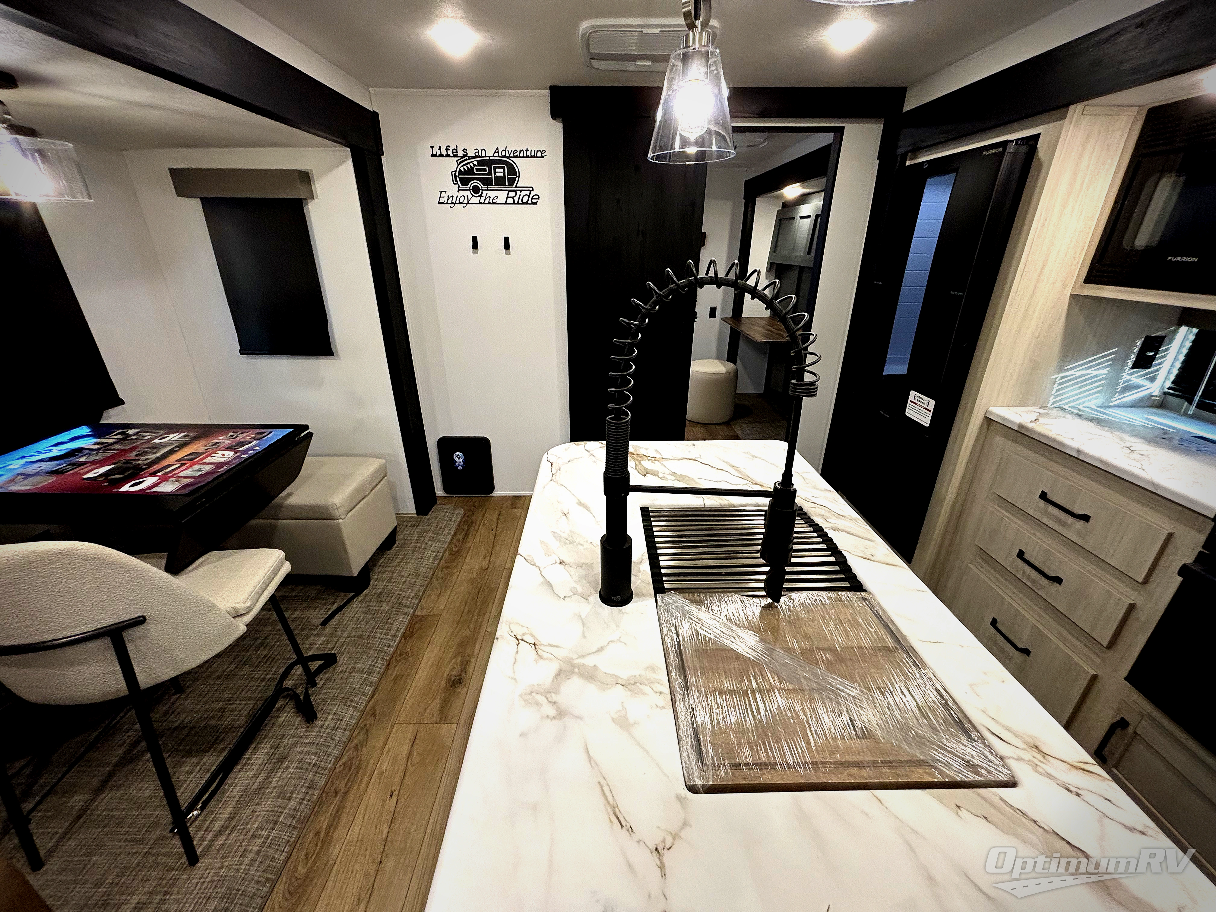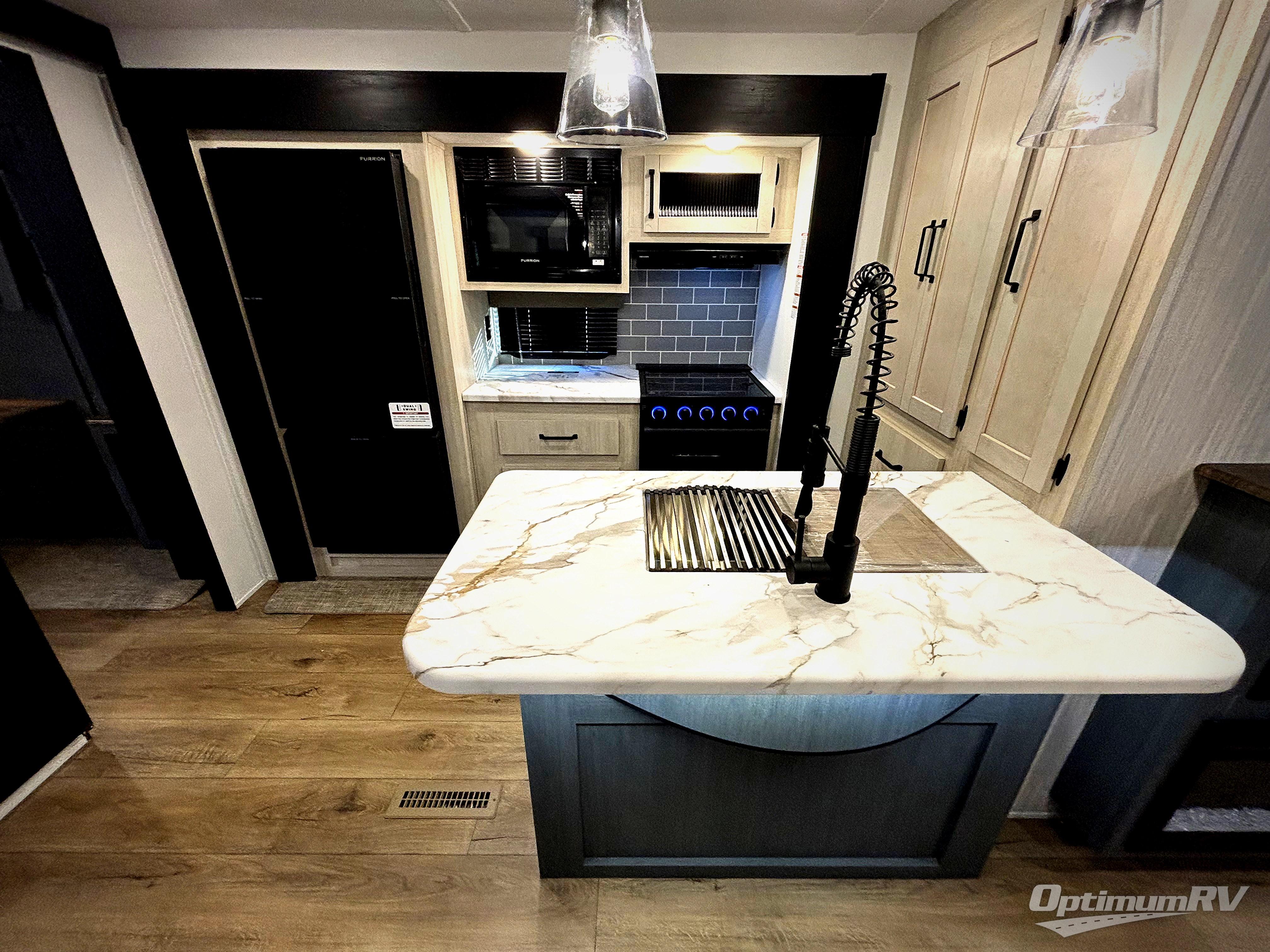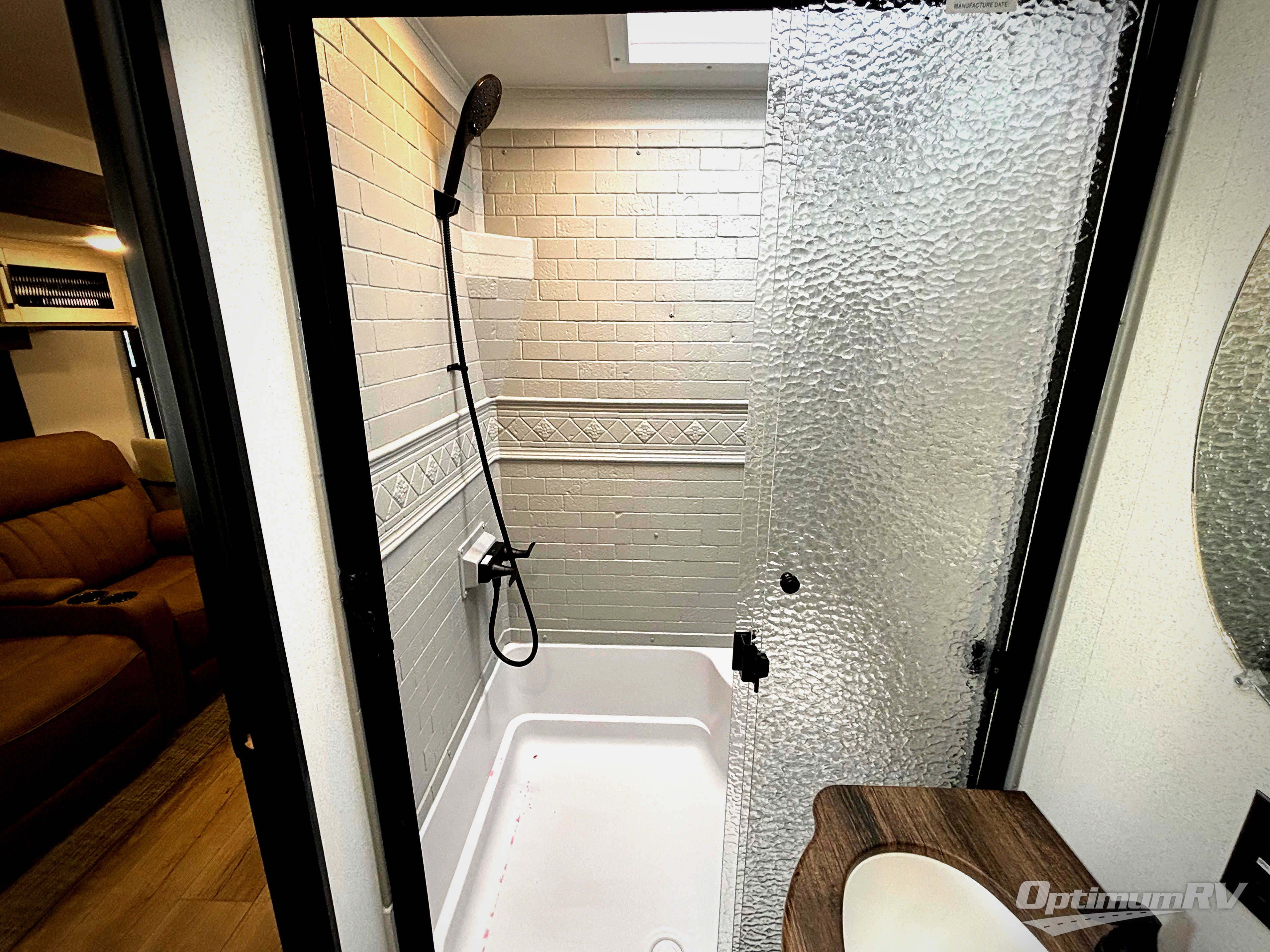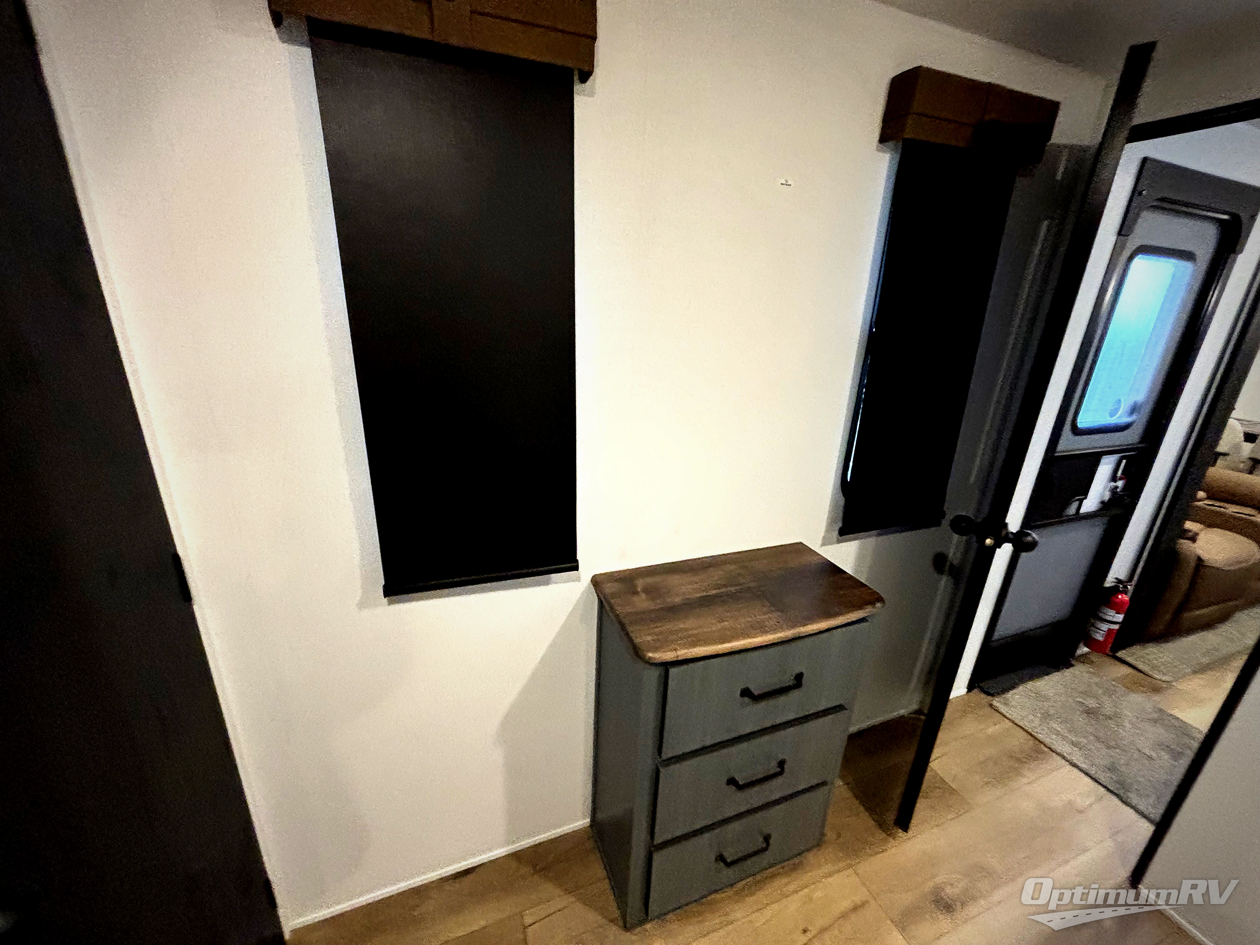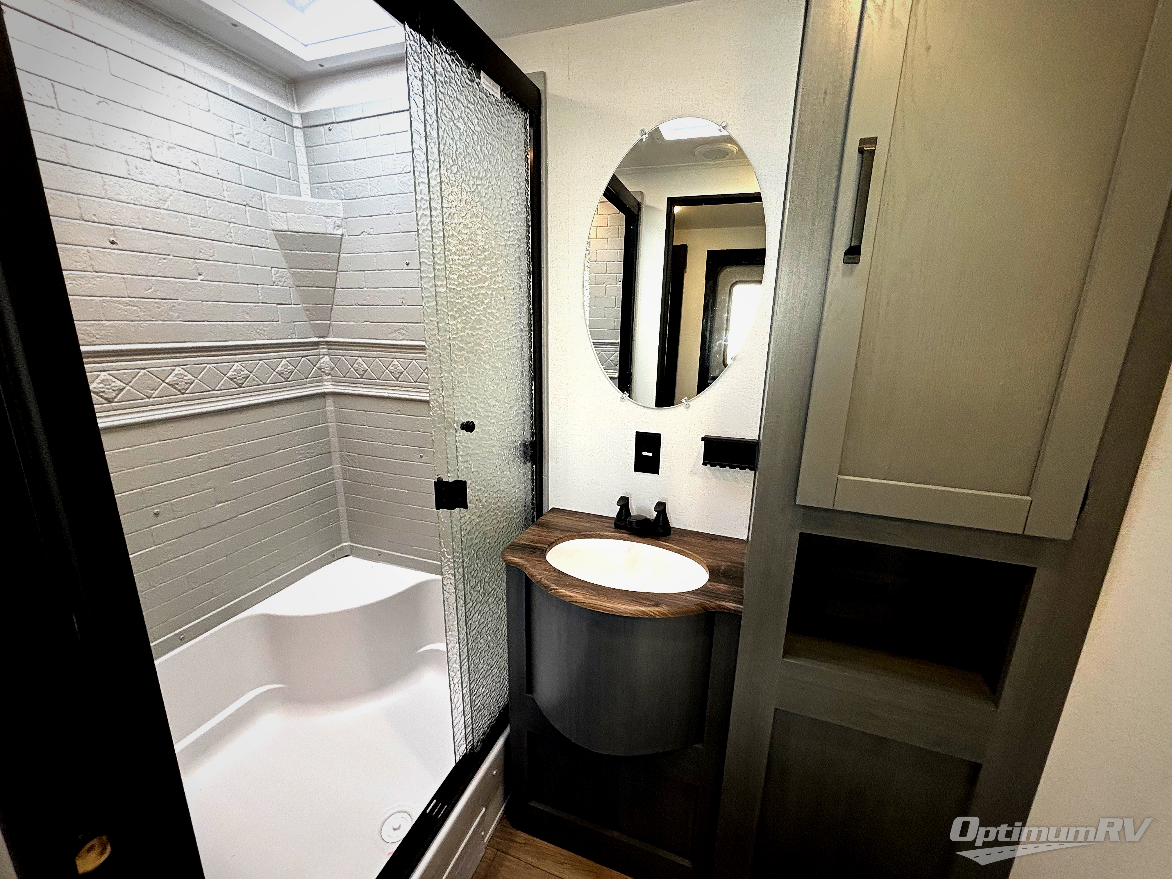 If you enjoy camping with friends or family, this travel trailer will be perfect for you! There are two bedrooms with queen bed slide outs and storage space, plus the rear bedroom includes its own full bath for added comfort. A bunkhouse suite option is also available if you choose the jiffy sofa with a bunk in place of the queen bed in the rear bedroom. Everyone can meet in the combined kitchen and living area that includes a counter peninsula, a spacious pantry, all the kitchen appliances to cook meals, plus a table with chairs and bench seating. There is also a sofa with overhead storage for more seating and sleeping space. Don't let this impressive travel trailer slip away!