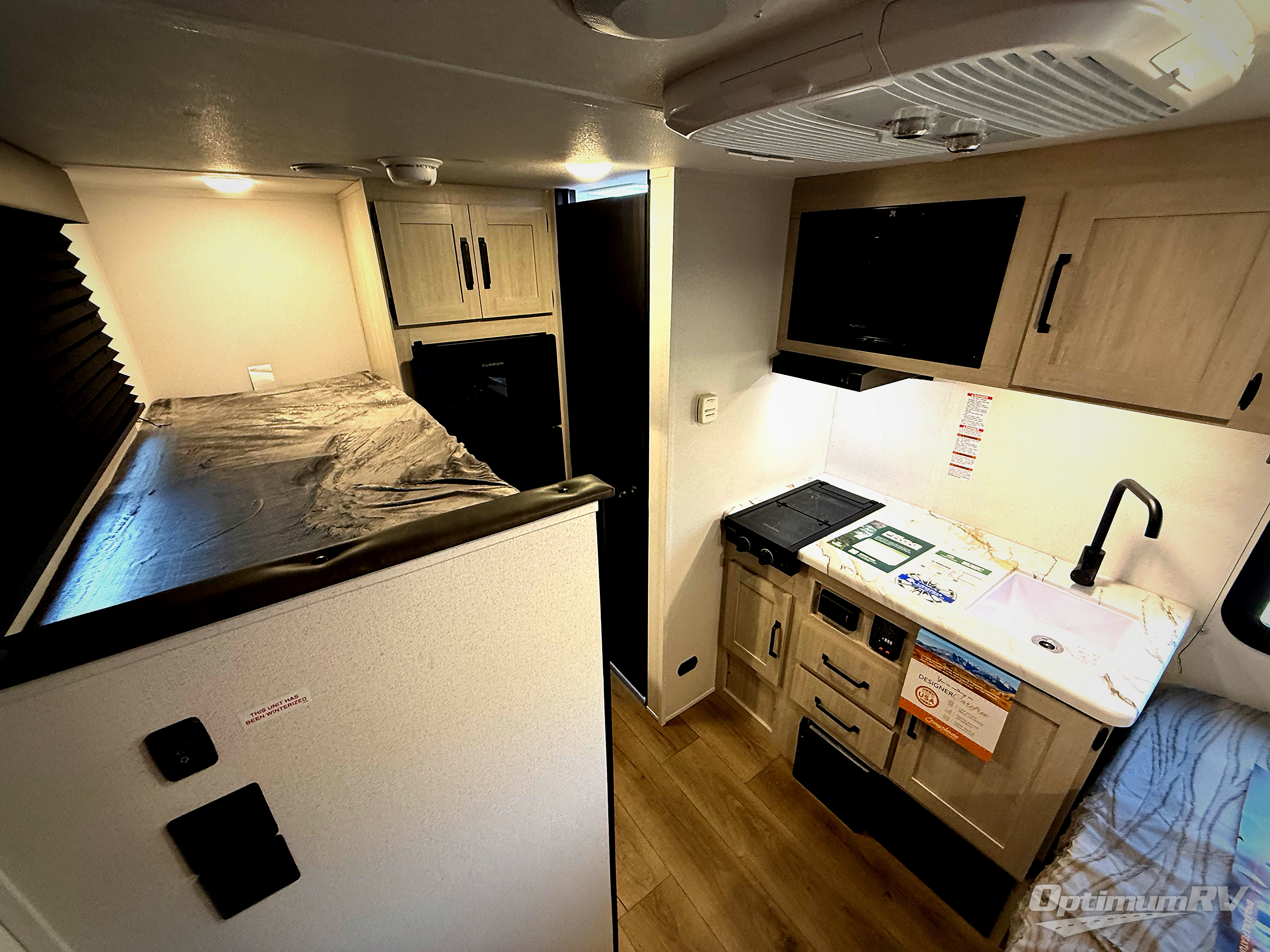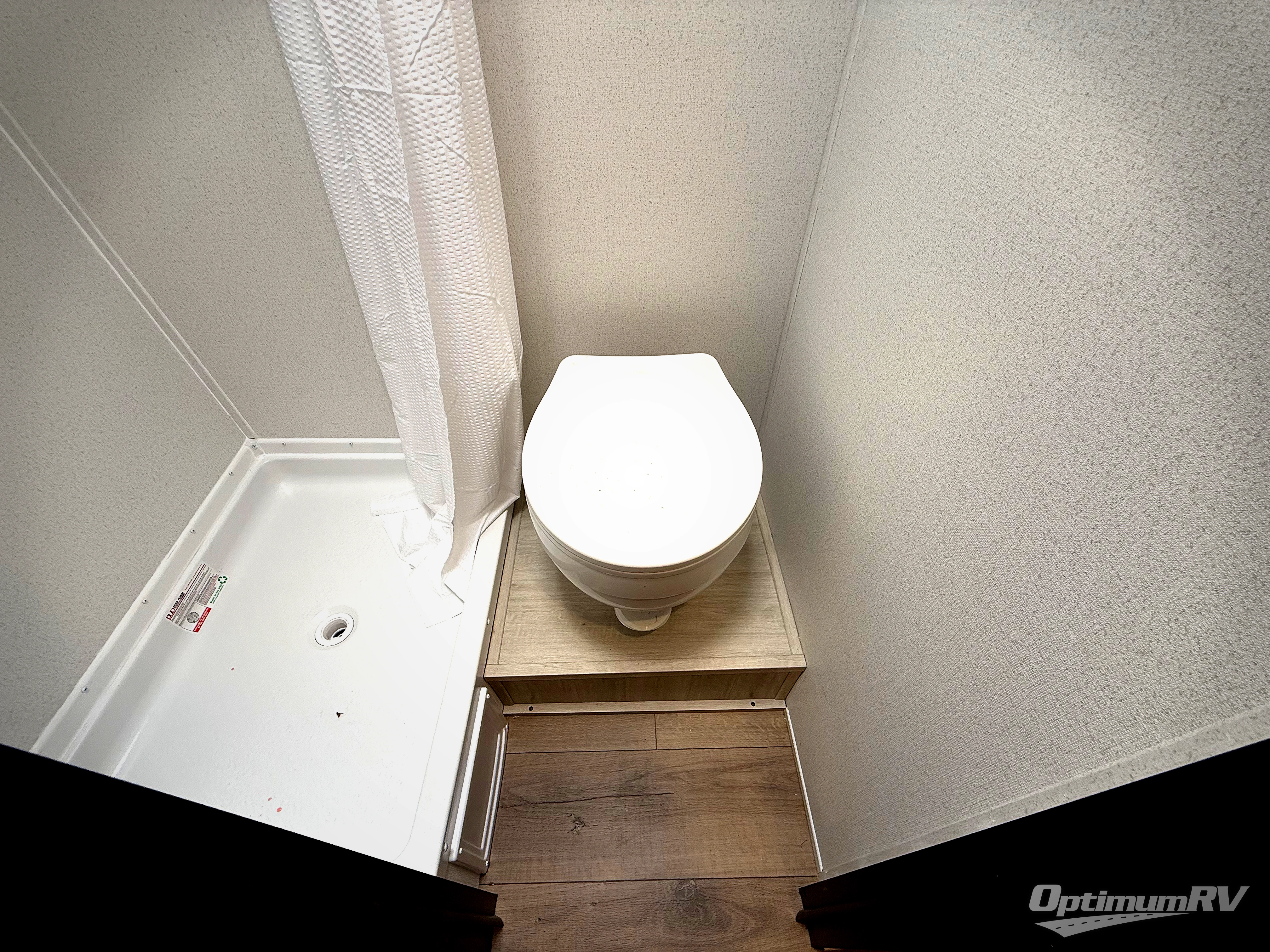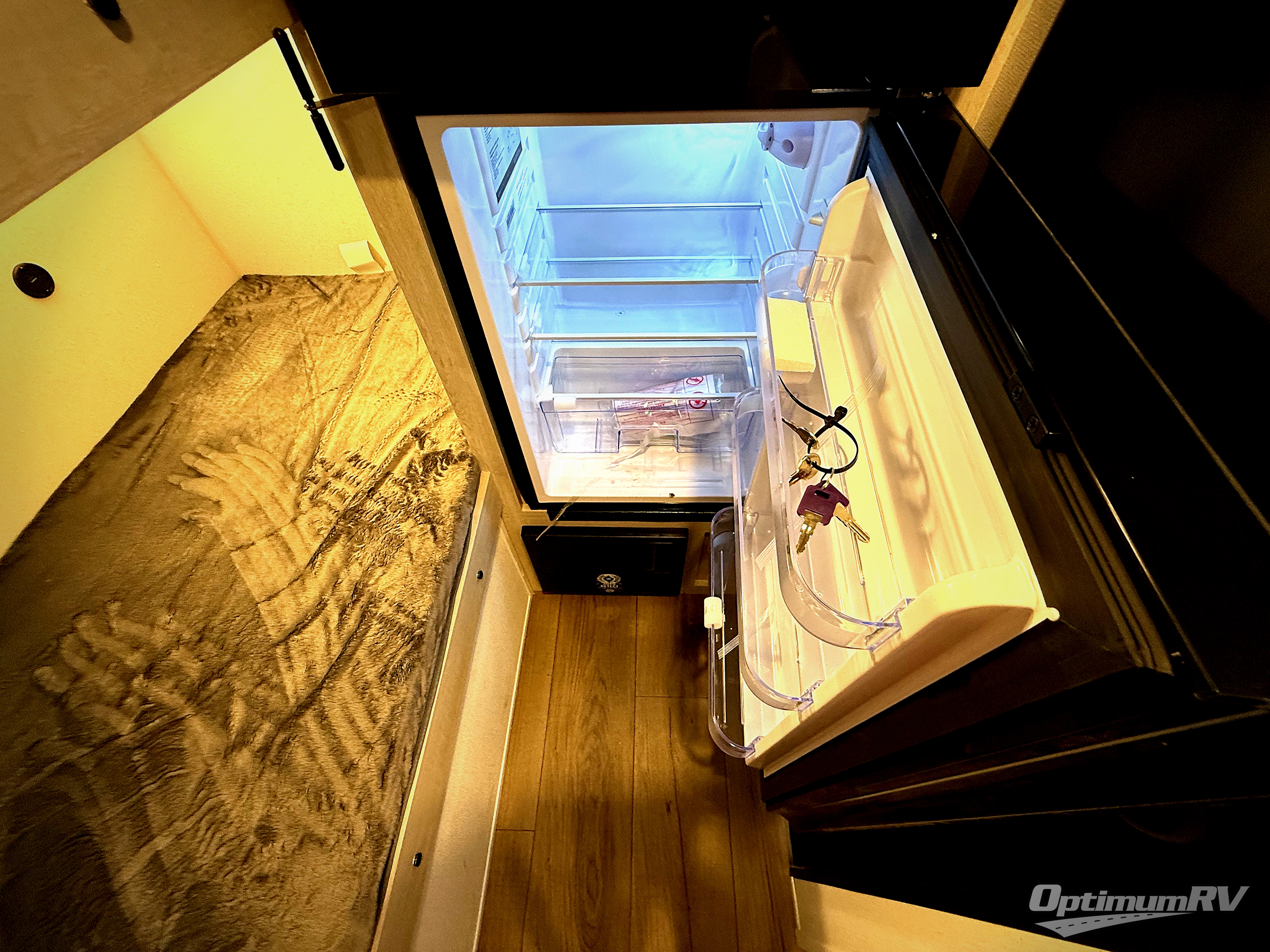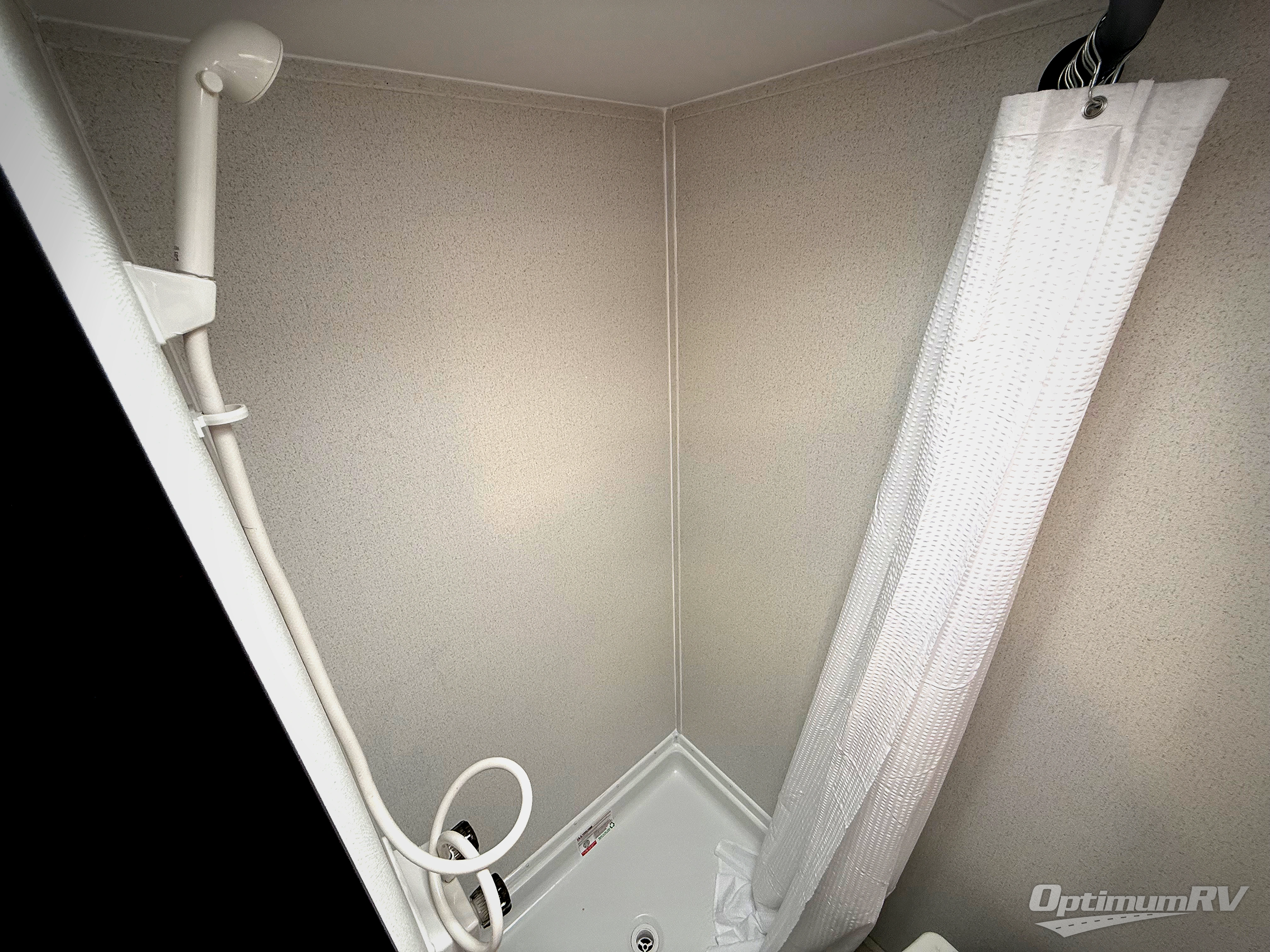 It will be so easy to enjoy camping trips in this single axle travel trailer! There is a front RV queen bed with flip-up storage at the foot of the bed for your belongings, and any additional guests can sleep on the 29" x 70" bunk beds. A full kitchen includes a stainless two burner cooktop and stainless microwave to cook meals each day, and the 4.3 cu. ft. 12V black glass refrigerator will keep your food fresh. And a private bath with a toilet and shower will let you freshen up without having to use the camp's facilities!