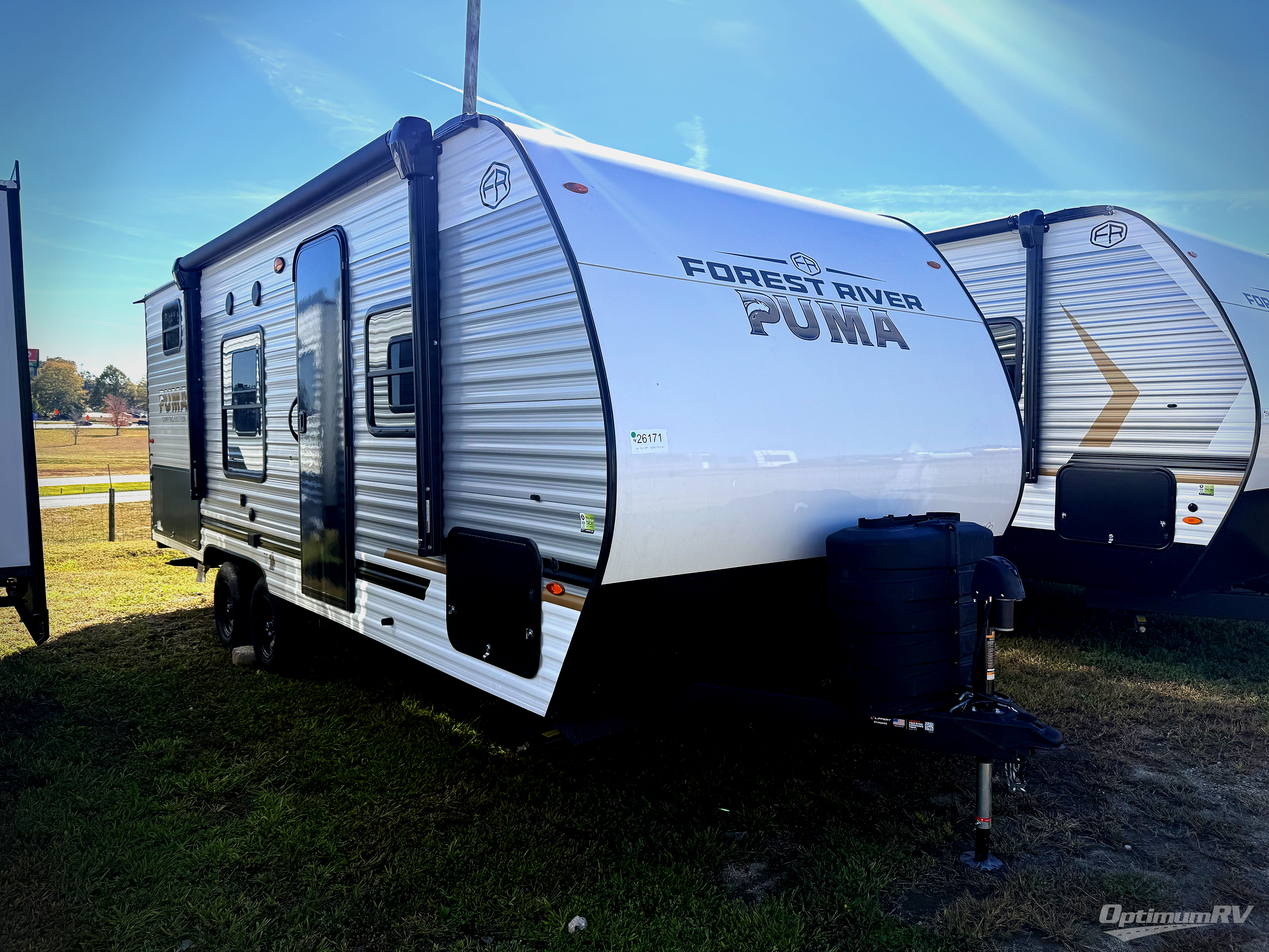 The Puma Camping Edition by Palomino offer an affordable travel trailer for rookie campers or seasoned RVers! They are built with 5/8" tongue and groove plywood flooring and a front diamond plate for added protection. There are also exterior clamp style door latches, back up camera prep, and 20 lb. LP bottles. Head inside to find Thermofoil countertops with a smooth drop edge, bedroom USB ports and outlets, and a GE appliance and kitchen package.