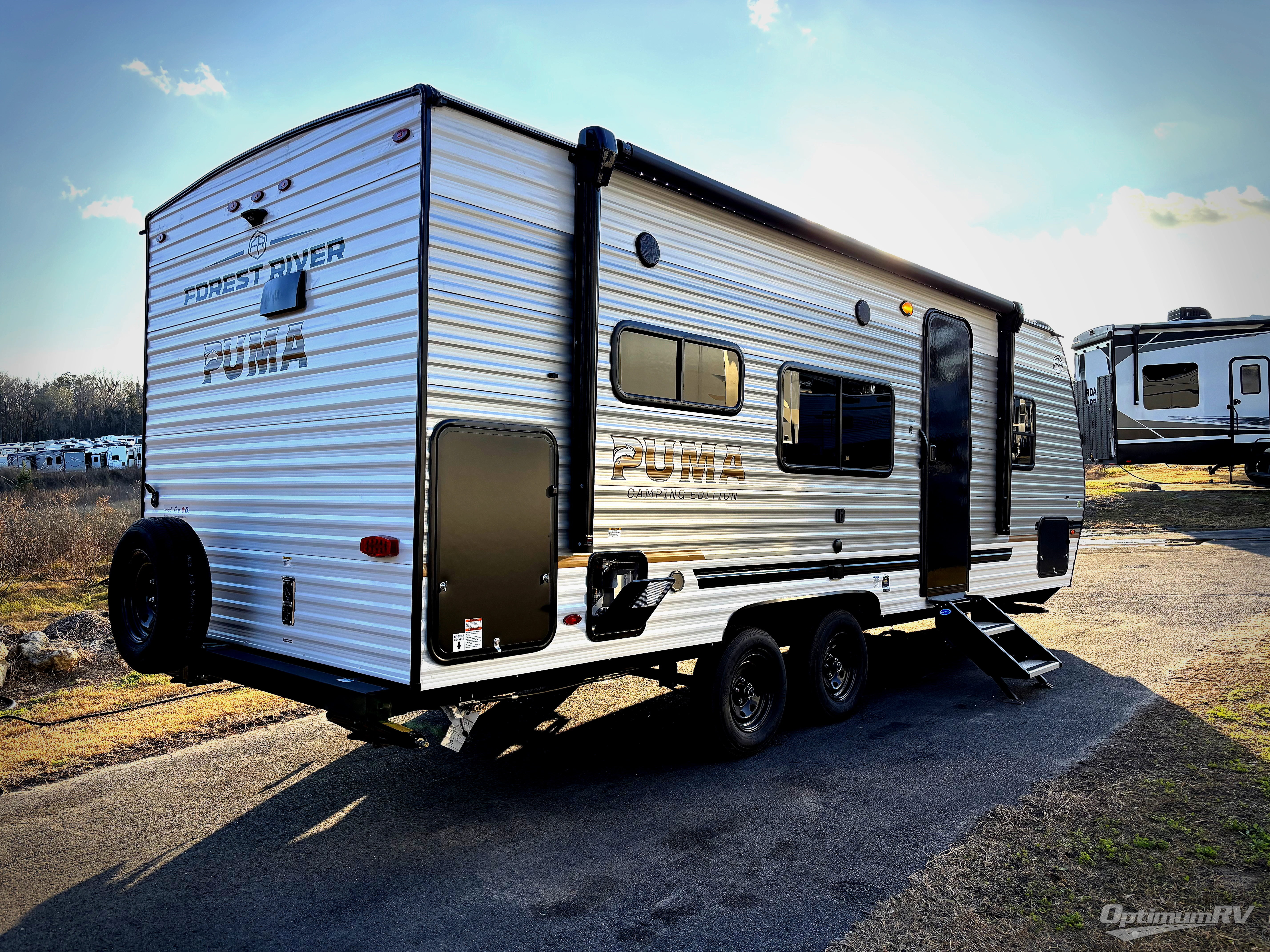 The Puma Camping Edition by Forest River offer an affordable travel trailer for rookie campers or seasoned RVers! They are built with 5/8" tongue and groove plywood flooring and a front diamond plate for added protection. There are also exterior magnetic baggage door latches, back up camera prep, a battery disconnect. Head inside to find Thermofoil countertops with a smooth drop edge, bedroom USB ports and outlets, and pleated shades in the living room.