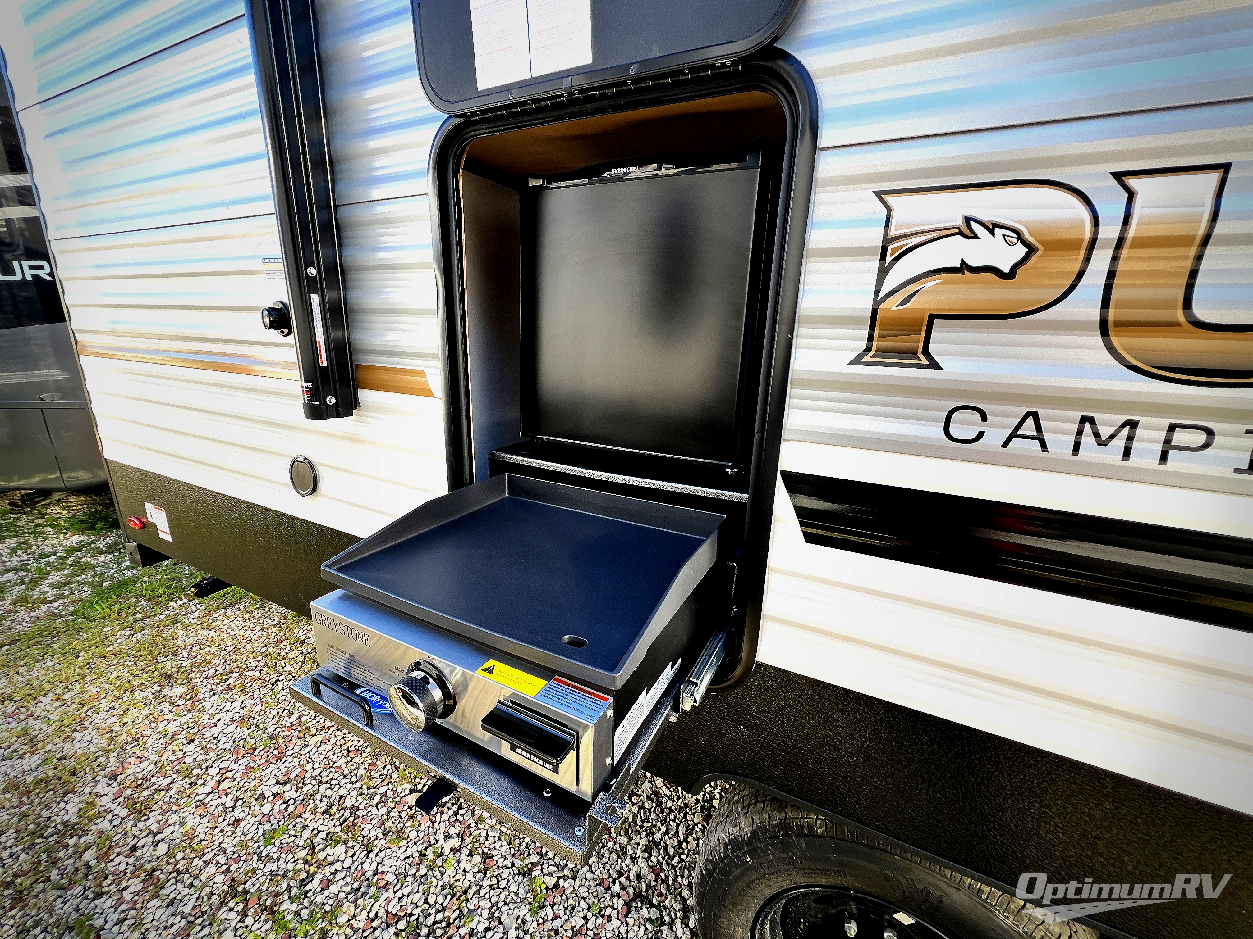 The Puma Camping Edition by Palomino offer an affordable travel trailer for rookie campers or seasoned RVers! They are built with 5/8" tongue and groove plywood flooring and a front diamond plate for added protection. There are also exterior clamp style door latches, back up camera prep, and 20 lb. LP bottles. Head inside to find Thermofoil countertops with a smooth drop edge, bedroom USB ports and outlets, and a GE appliance and kitchen package.