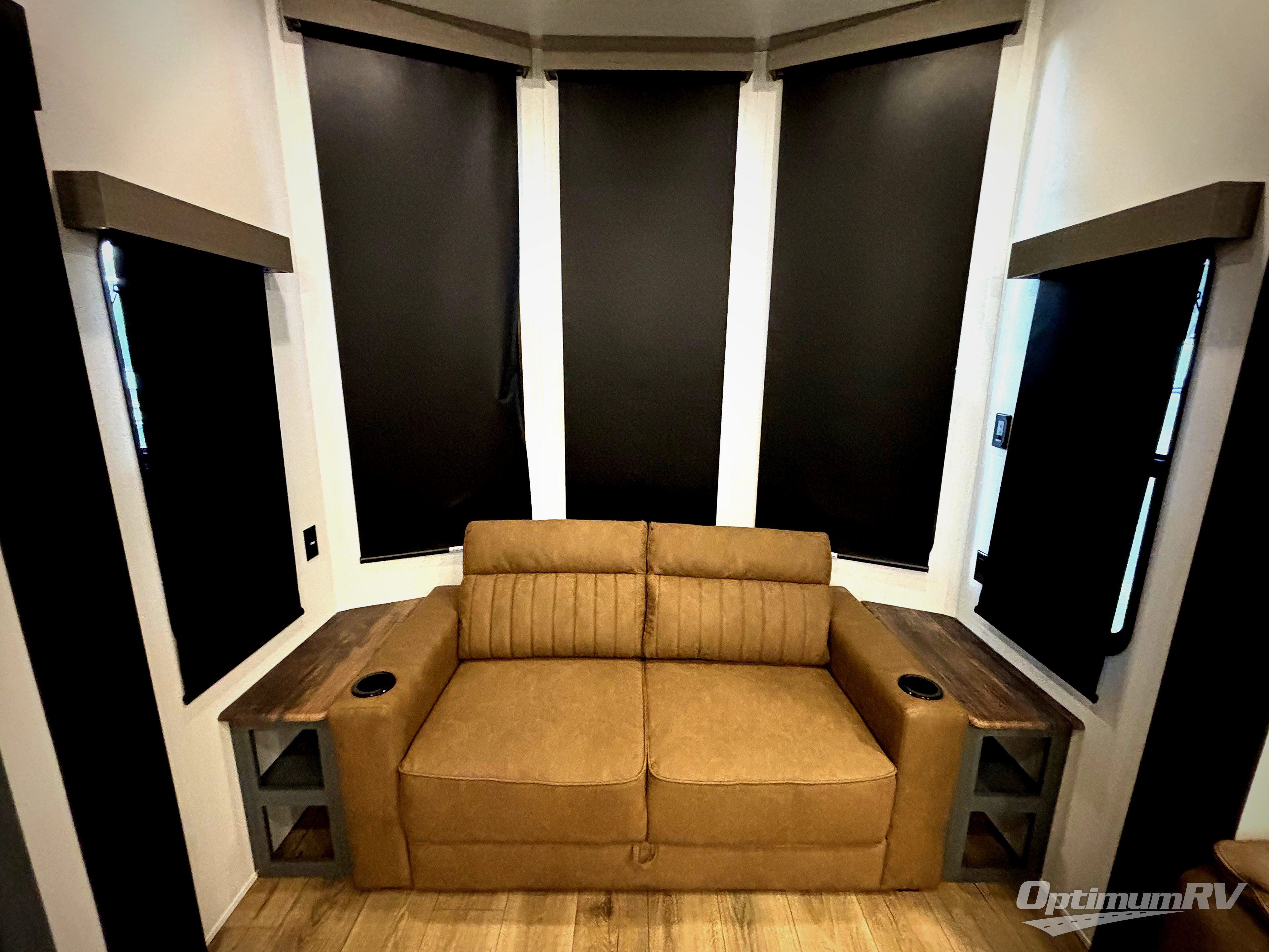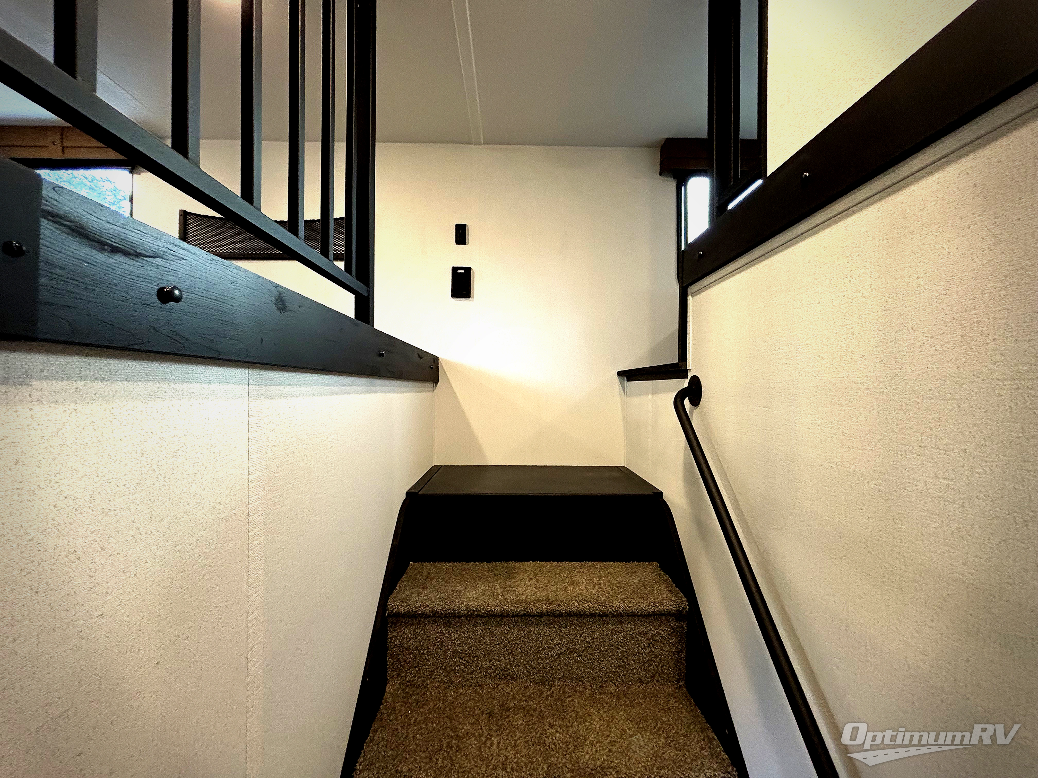 Wherever your destination may be, you can be sure to enjoy it to the fullest with this trailer in tow! With two entry doors, you can enter in through the rear private bedroom or the main living area. The bedroom includes a king bed slide out, a wardrobe/closet to keep your clothes organized, plus a closet with washer and dryer prep. Just outside this room are steps that lead to the large loft area with a 58" x 58" bunk mat and a cabinet on one side, plus two 32" x 69" bunk mats on the other. There is also a cabinet and a wardrobe/closet for plenty of storage space. Once you've headed back downstairs, you can relax on the theater seating, front sofa, or table and chairs with a bench seating. And the chef of your group will love the kitchen with its residential style refrigerator and pantry, kitchen island, and four burner cooktop!
