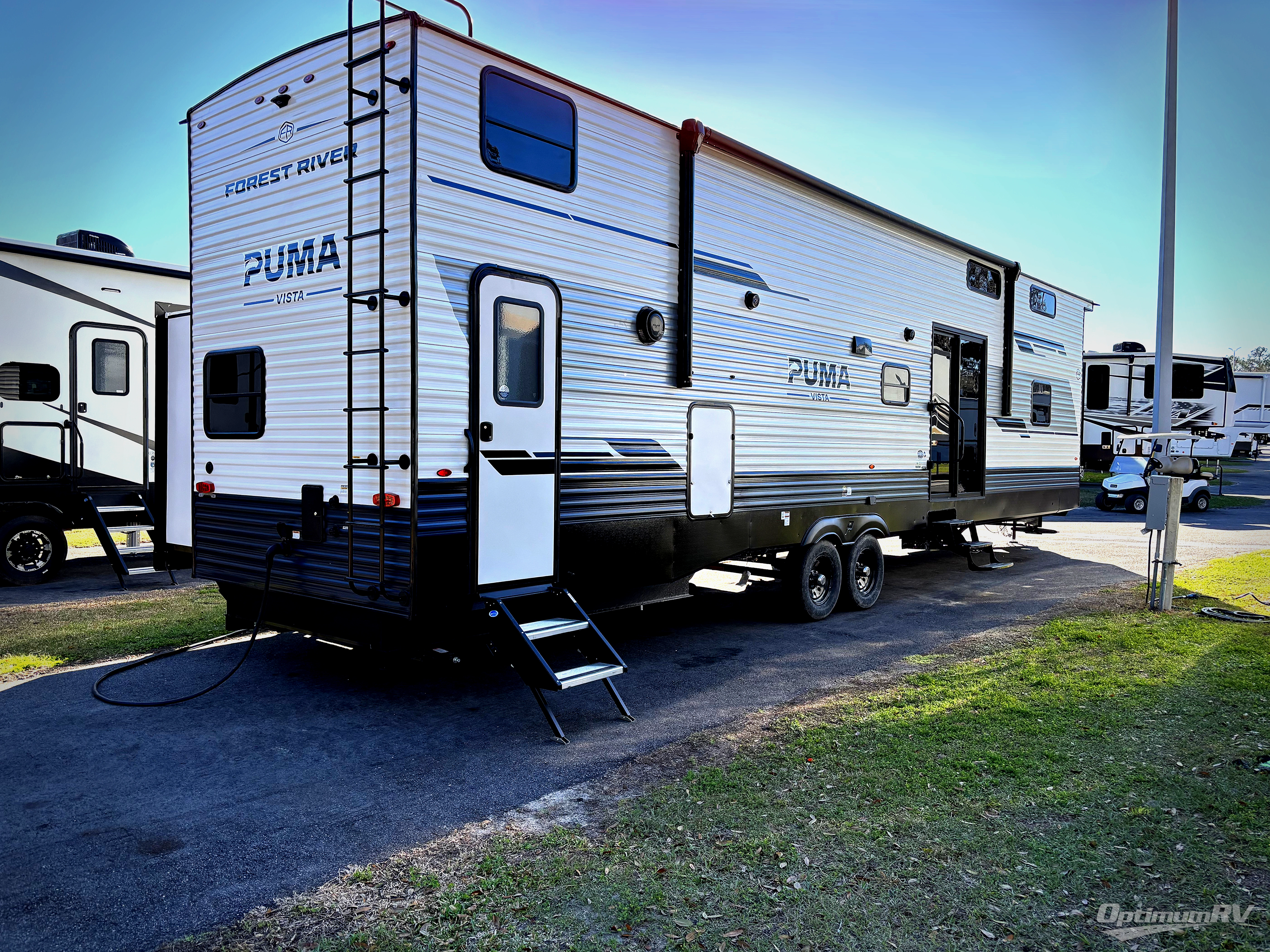 Each Puma Vista destination trailer by Forest River is designed to give you unforgettable getaways to the destination of your choice! The Value Shopper Package features Congoleum linoleum, LED lighting, an AM/FM/Bluetooth stereo, and a tankless water heater to name a few comforts. There are also solid surface countertops, a 12V ceiling fan in the living room, an outside shower, two exterior speakers, and more amenities found within the Vista Marquis and Vista LFT Loft Packages!