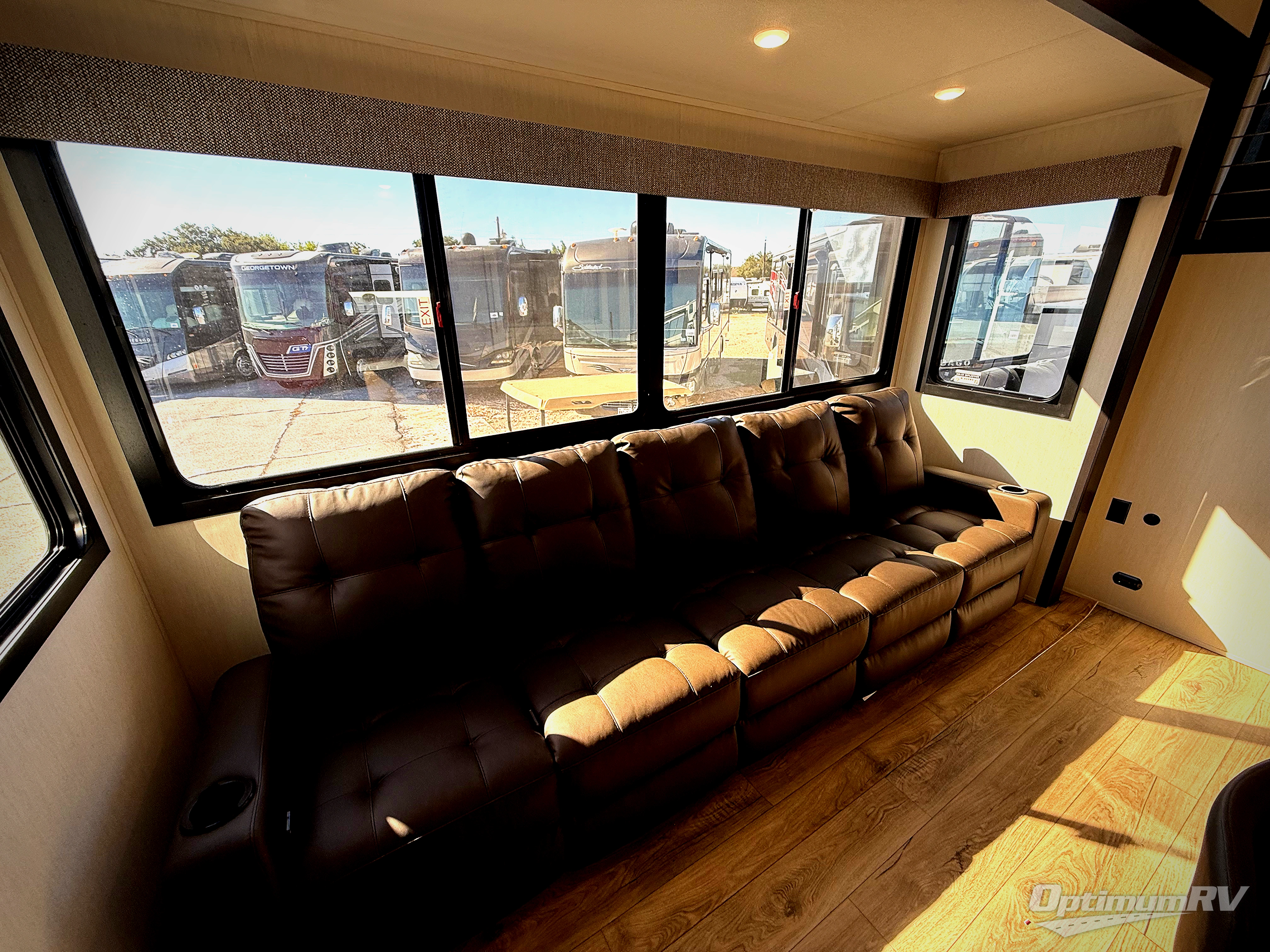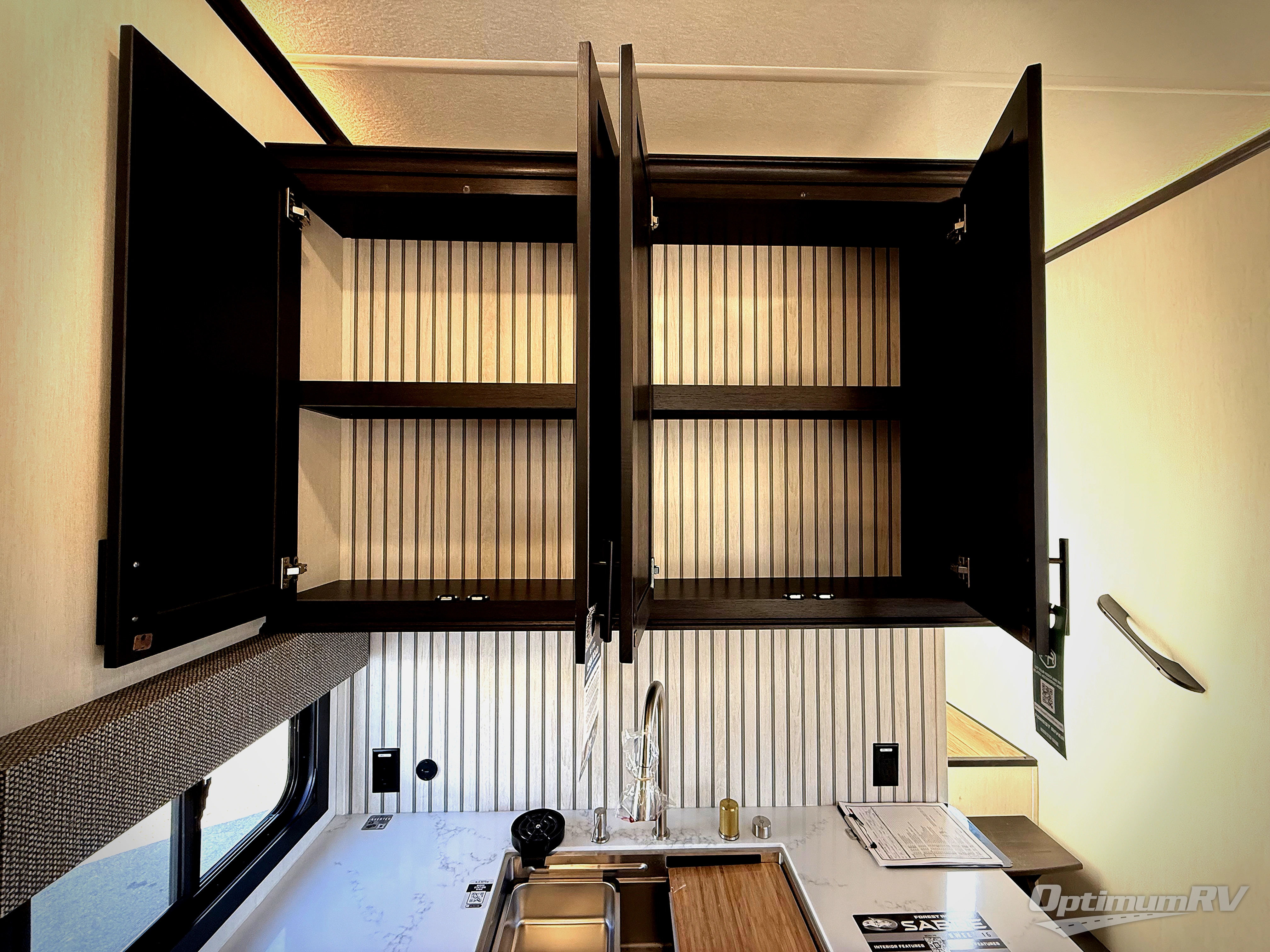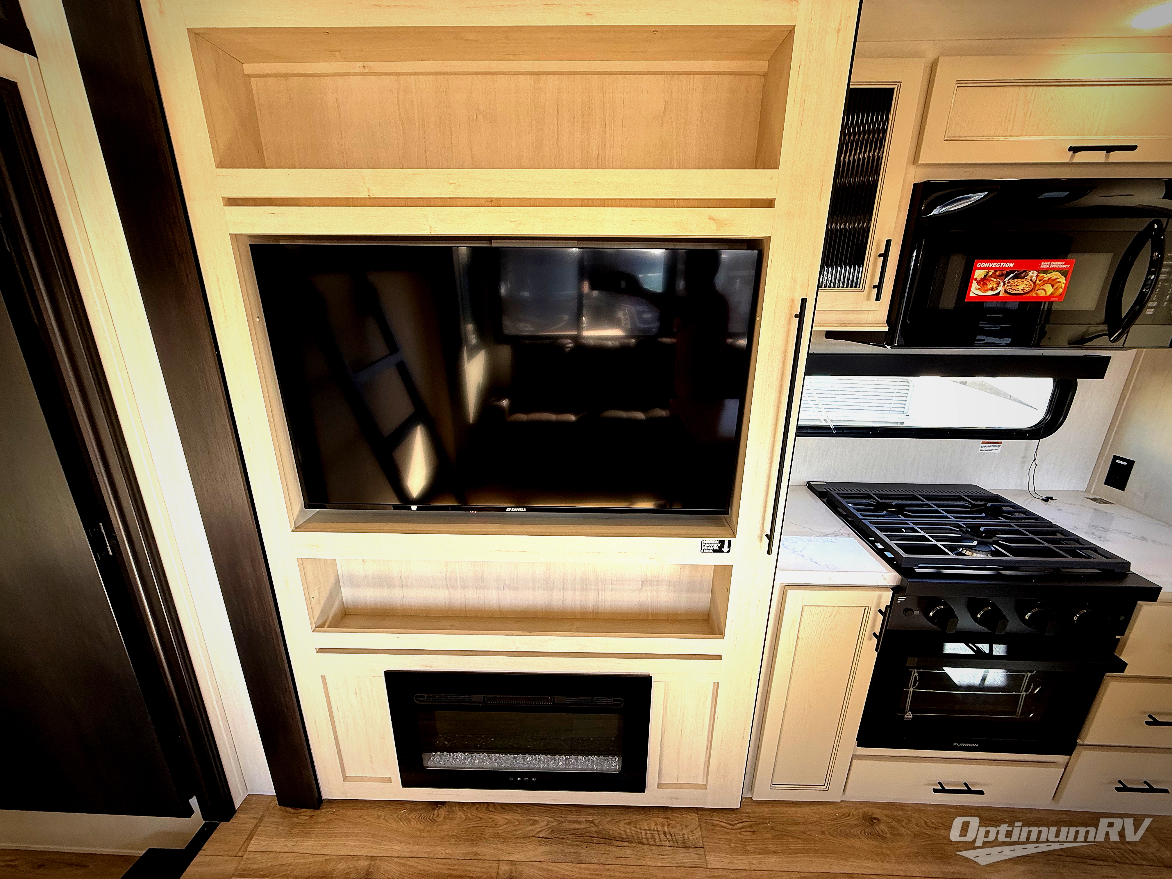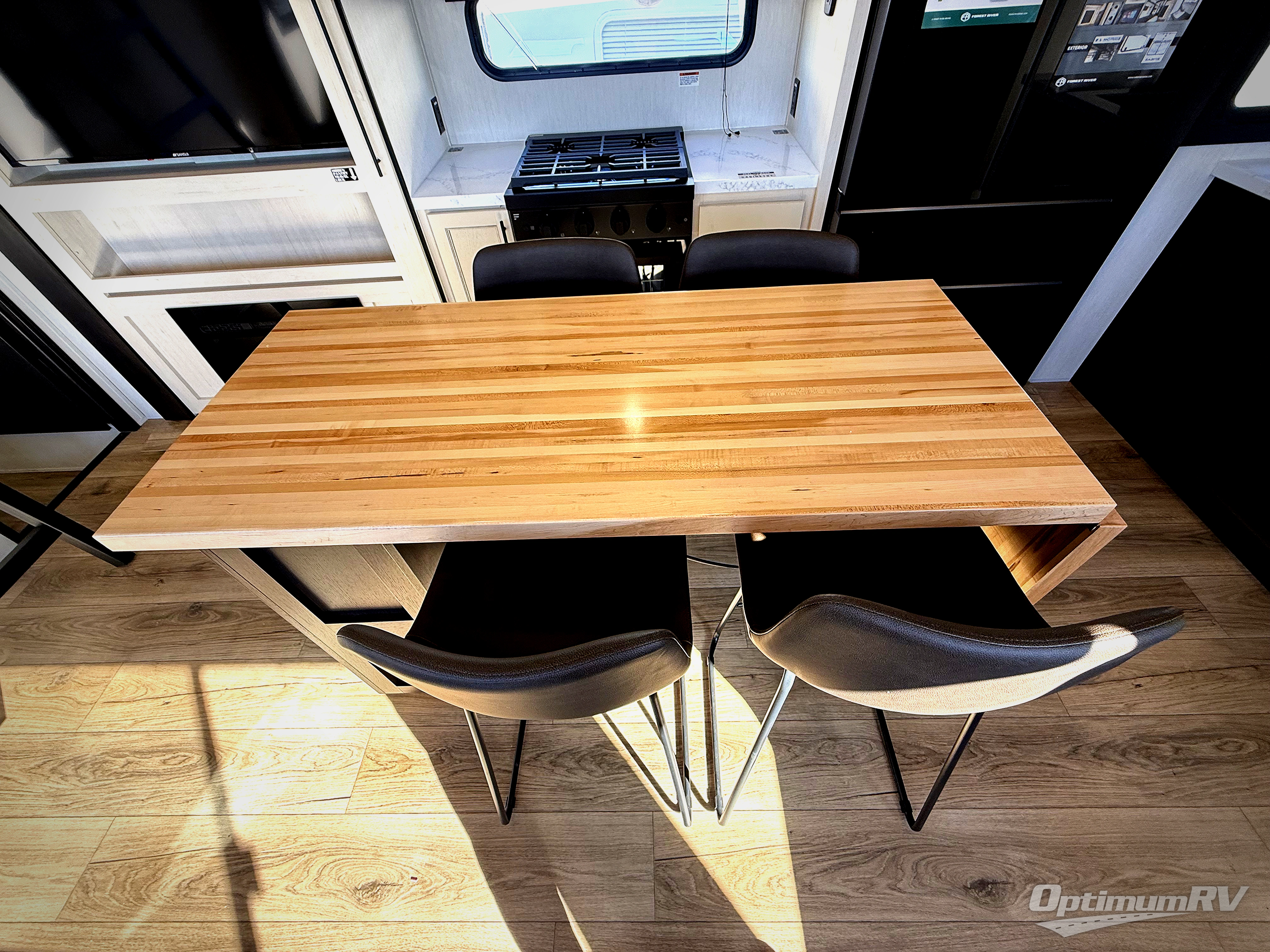 You will experience luxurious camping trips at an affordable price with any one of these Forest River Sabre fifth wheels! These models are durable and ready to travel anytime of the year thanks to features like the high-gloss gel-coat front cap with LED lighting, the PVC roof membrane, and the forced air underbelly with enclosed gate valves. The electric auto-leveling system makes setting up easy and safe, and the adjustable power awning with LED lighting will create an inviting outdoor living space. Each model includes a universal docking station which includes a black tank flush and an outside shower, and adjustable stable steps for you to enter and exit the unit safely. Inside, you will love the design of the ambient accent lighting in the living area, the real wood lumbercore cabinetry, and the linoleum flooring!