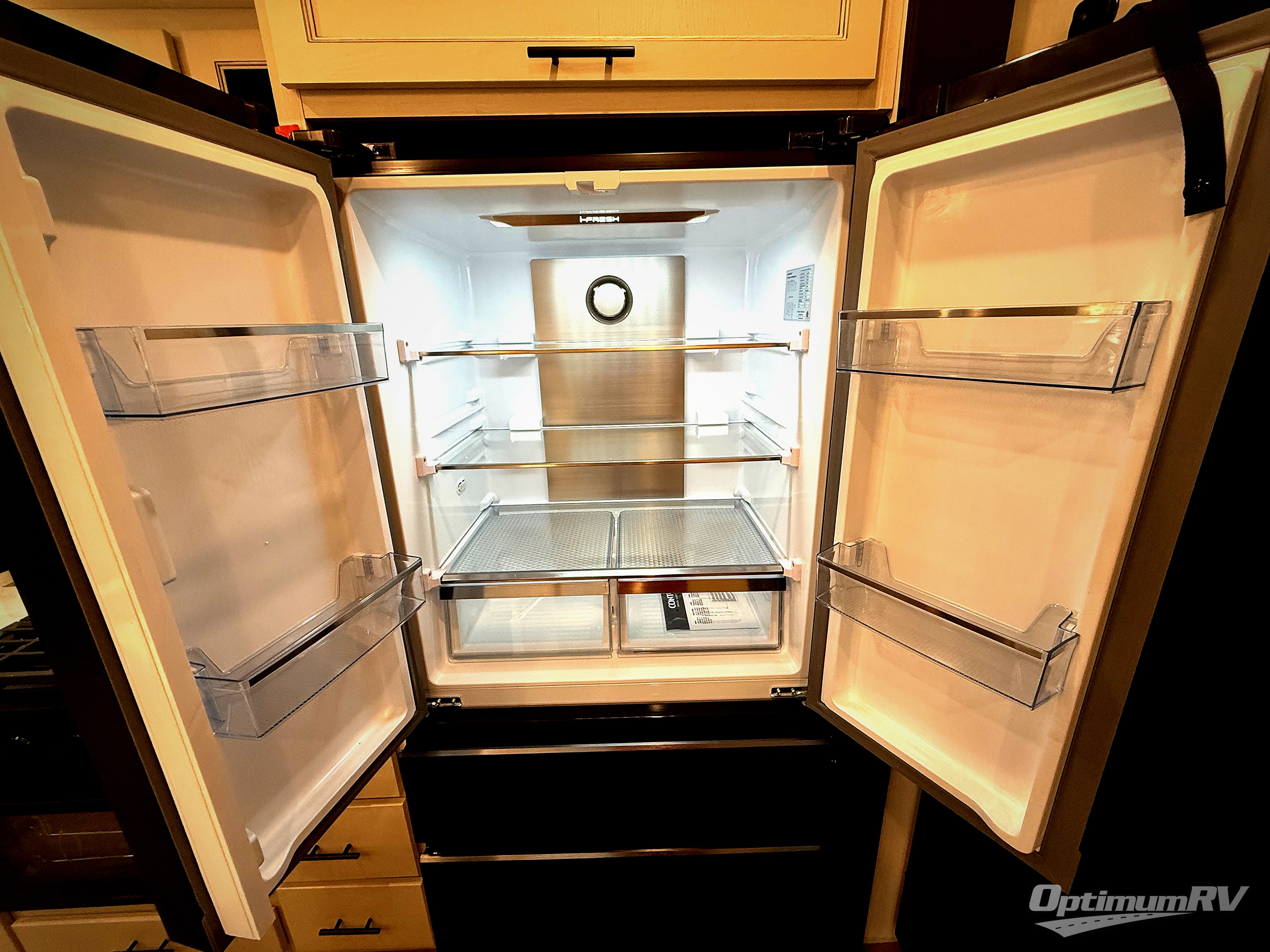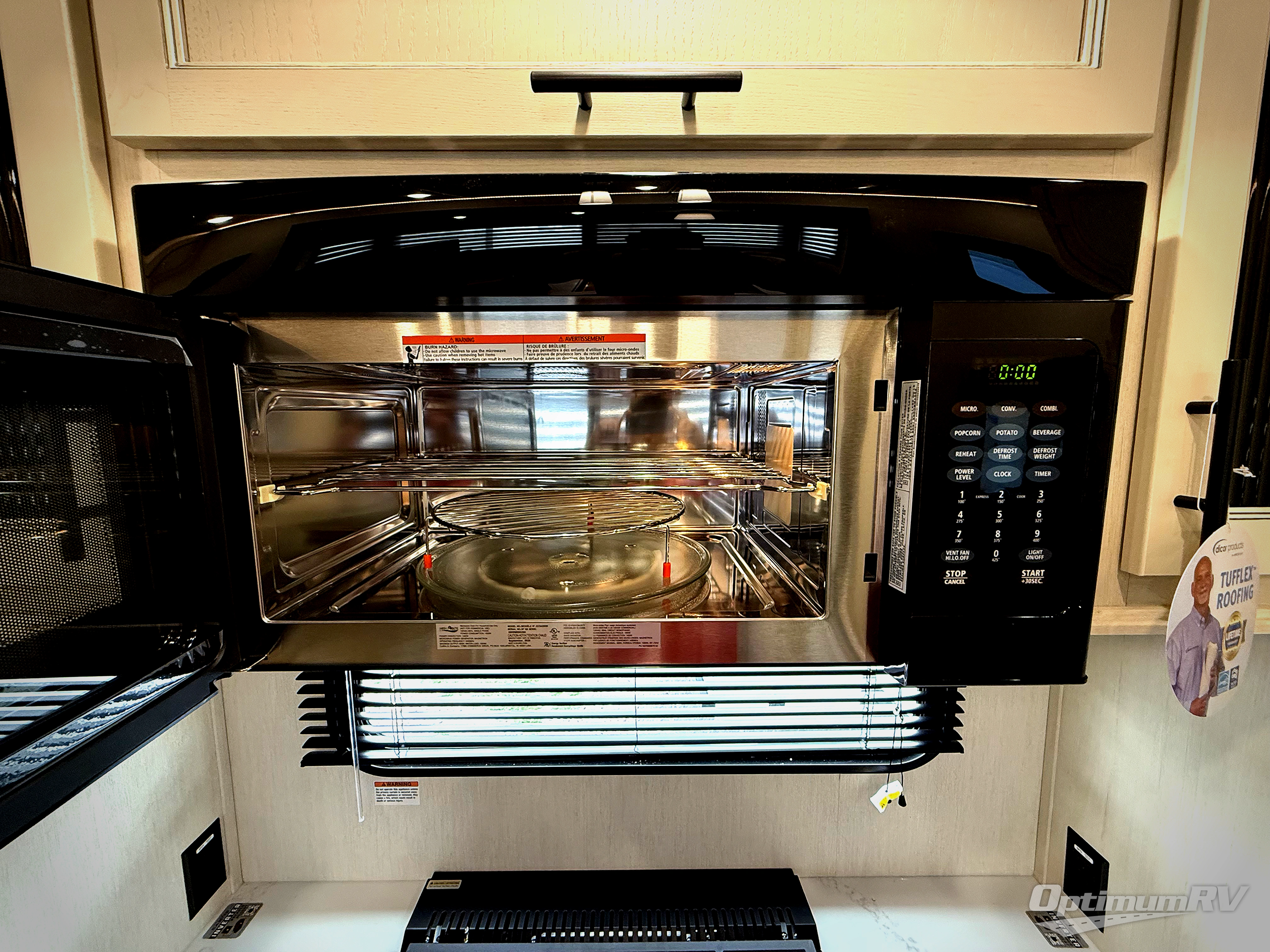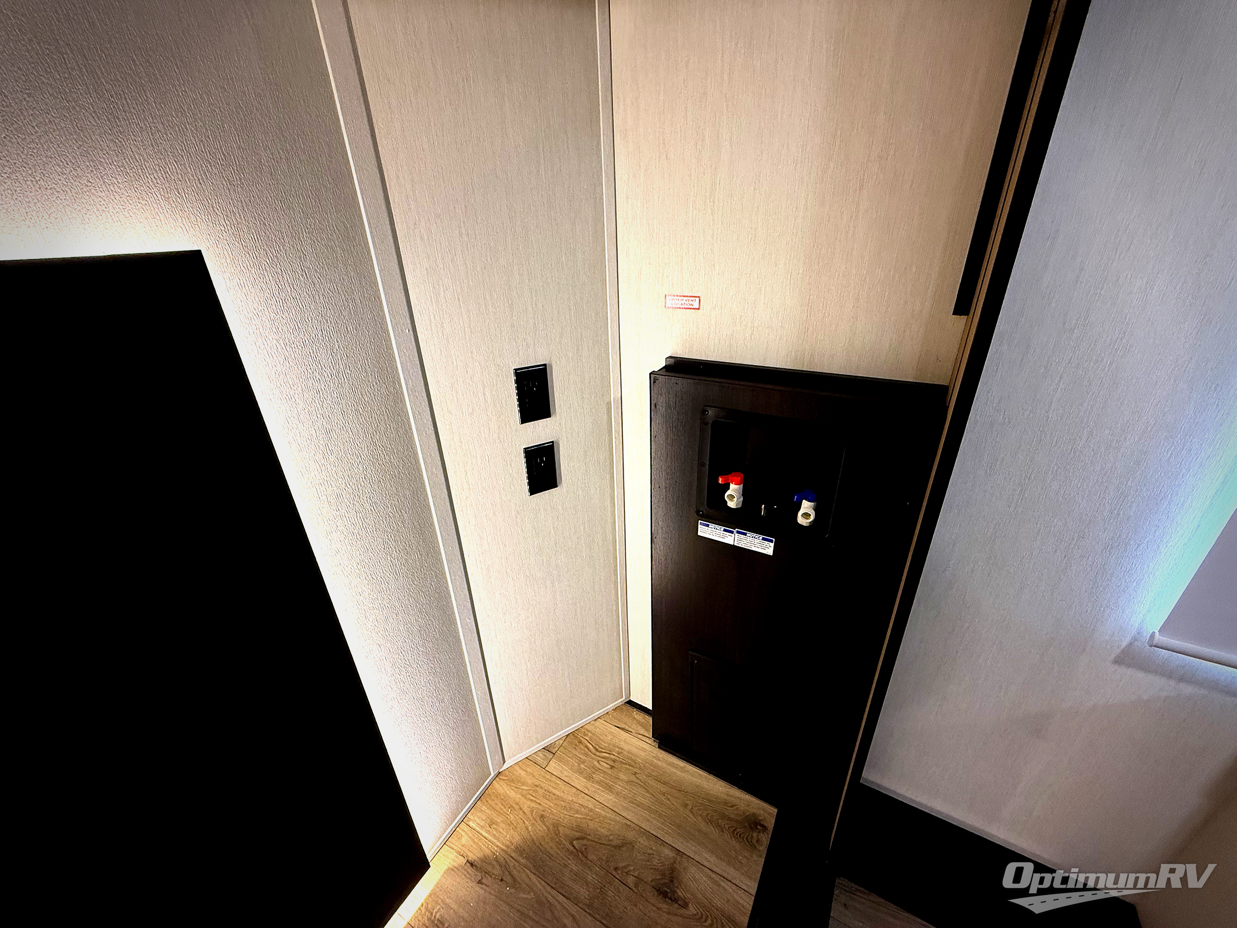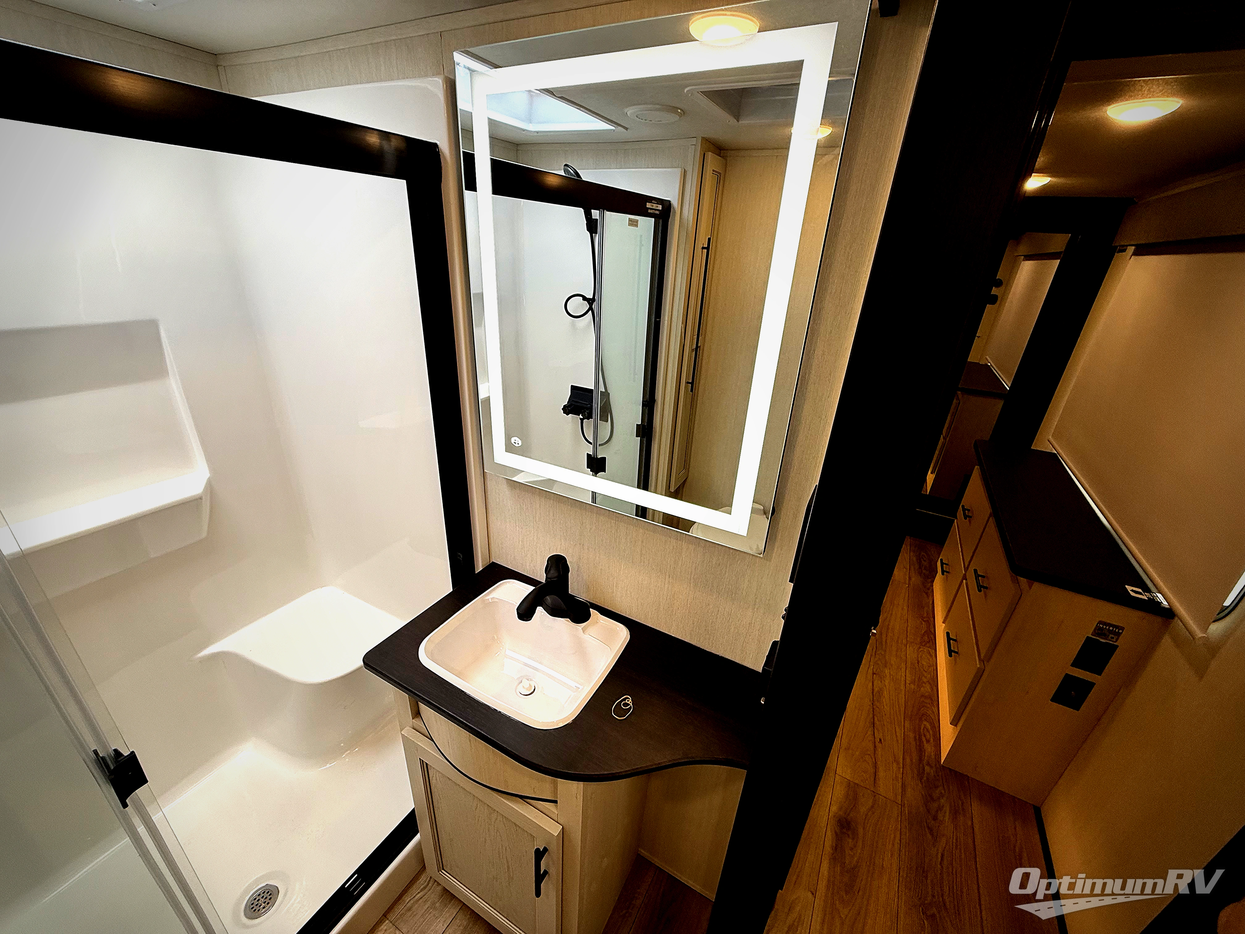 There is much to love in this fifth wheel! Starting with the second bedroom which has a slide that houses a flip-up bunk above a tri-fold sofa across from a desk with drawers, a drop zone, and a wardrobe, plus above all of that is a storage/bunk loft. The rear living area includes a tri-fold sofa, a TV with a hidden pantry behind, and theater seating for two making this space another area at night for guests. In the morning, you can prepare breakfast on the kitchen island, then dine together at the versatile dinette/desk. The full bath will allow you to stay clean throughout your trip, and you'll feel right at home in the front private bedroom with a camper king bed, a dresser, and front wardrobe. Outside, a kitchen and two power awnings create an inviting space!
