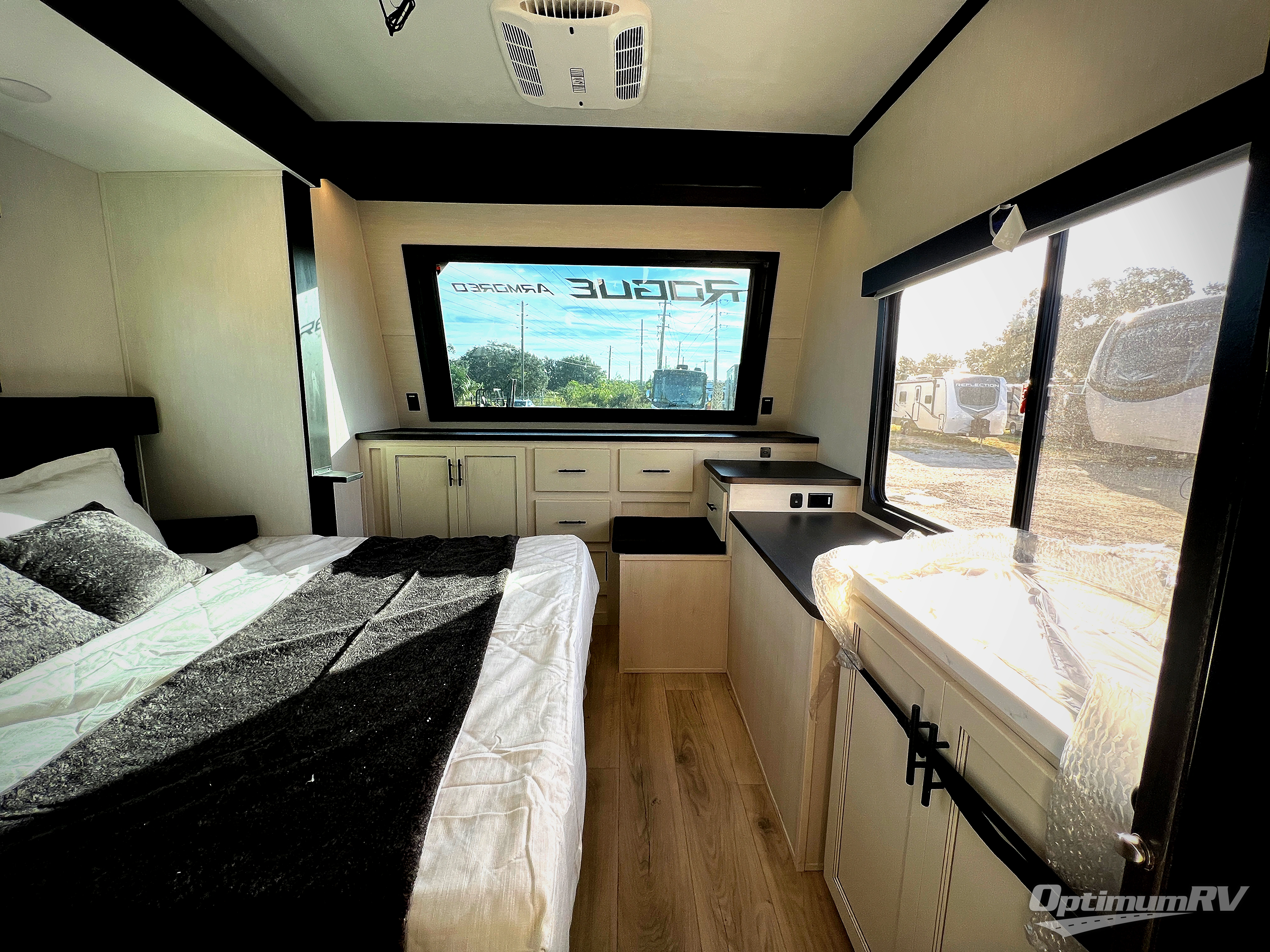 Every one of these Forest River Vengeance Rogue Armored travel trailer toy haulers come with the features you want most at an affordable price tag! The DuraPoxy gas/oil resistant floor has 5,000 lb. tie downs to ensure your toys will arrive safely without damaging the flooring, plus the 3,000 lb. rated ramp door makes it easy to load them. A 15,000 BTU A/C will keep you cool even on the hottest summer days, and there are heated enclosed holding tanks with 12V heat pads on every tank for added protection. Each model includes a fuel station with a digital readout, a ramp door patio system, a tire pressure monitoring system, and many more stand-out features. Inside, you'll find zebra shades in the living room, multiple USB charging stations, a multi-functional kitchen sink, glass shower doors, and many more comforts!