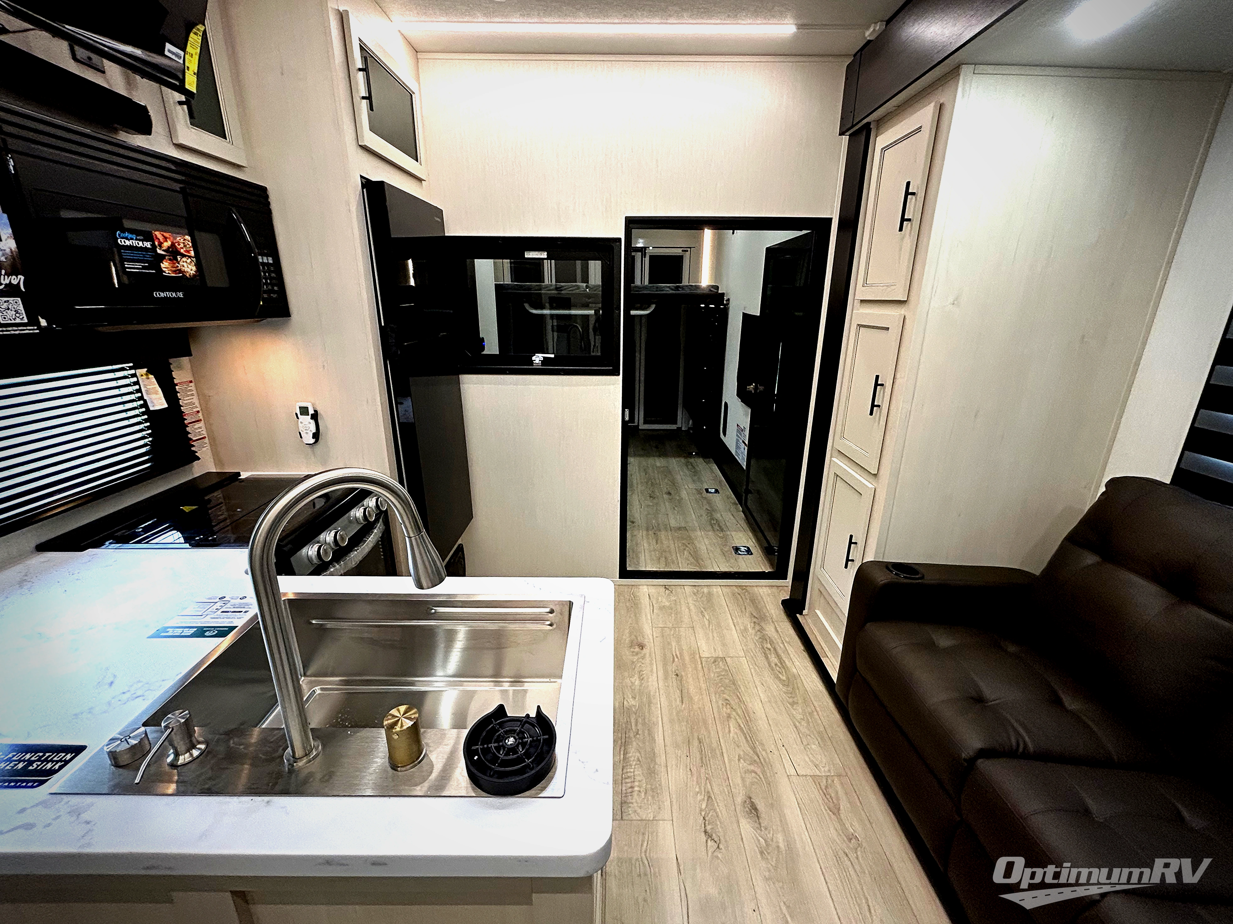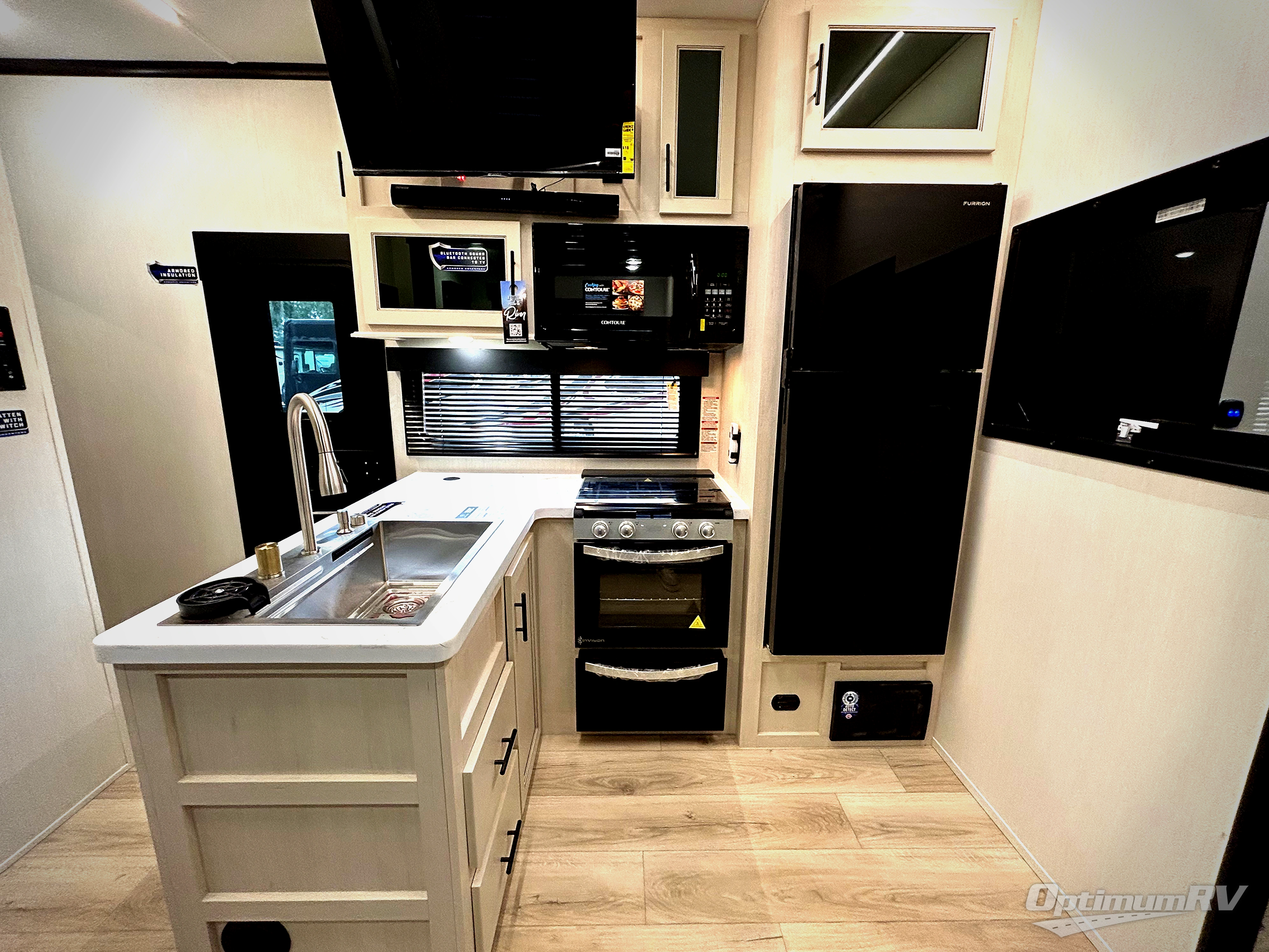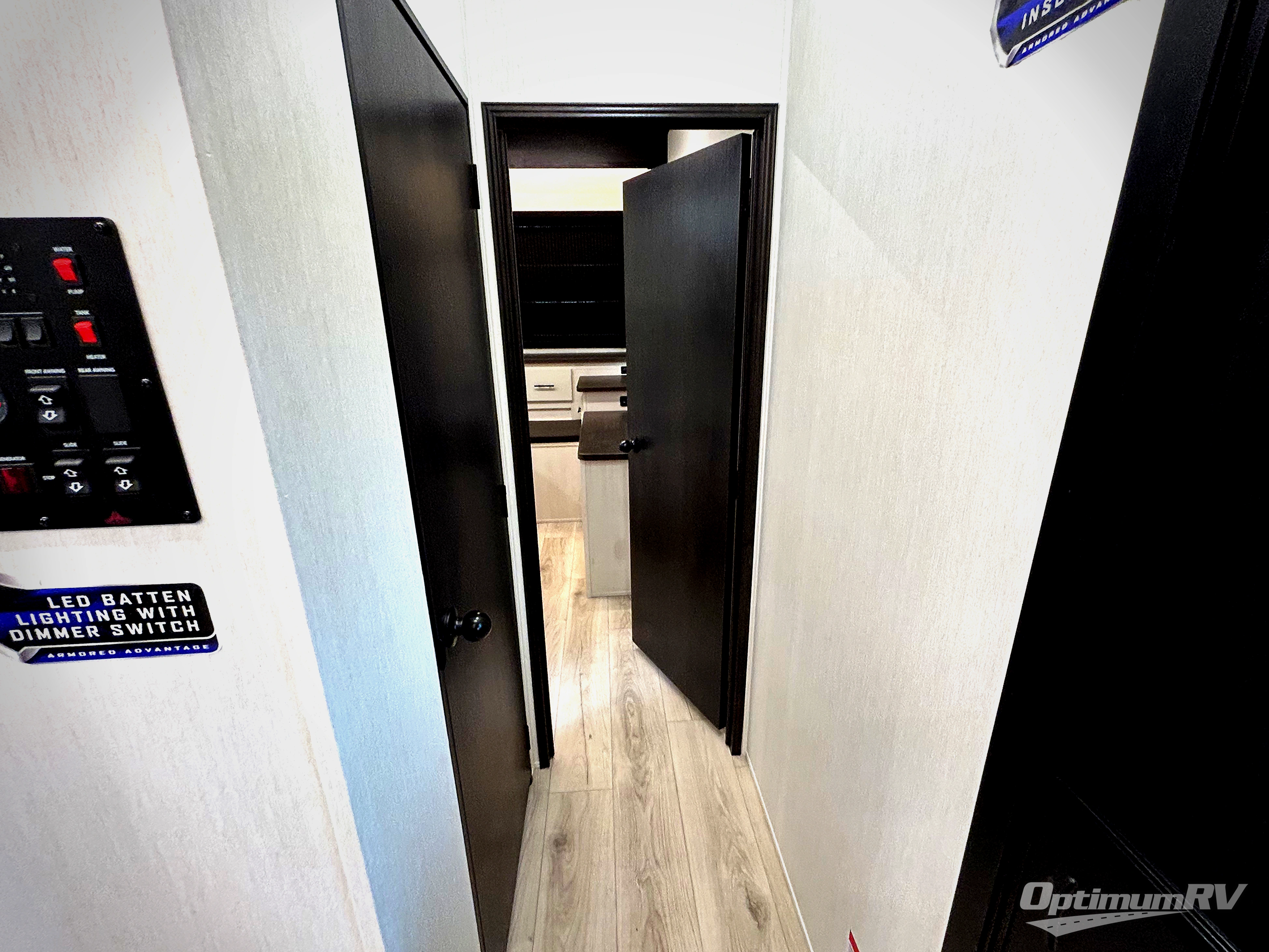 Every one of these Forest River Vengeance Rogue Armored travel trailer toy haulers come with the features you want most at an affordable price tag! The DuraPoxy gas/oil resistant floor has 5,000 lb. tie downs to ensure your toys will arrive safely without damaging the flooring, plus the 3,000 lb. rated ramp door makes it easy to load them. A 15,000 BTU A/C will keep you cool even on the hottest summer days, and there are heated enclosed holding tanks with 12V heat pads on every tank for added protection. Each model includes a fuel station with a digital readout, a ramp door patio system, a tire pressure monitoring system, and many more stand-out features. Inside, you'll find zebra shades in the living room, multiple USB charging stations, a multi-functional kitchen sink, glass shower doors, and many more comforts!