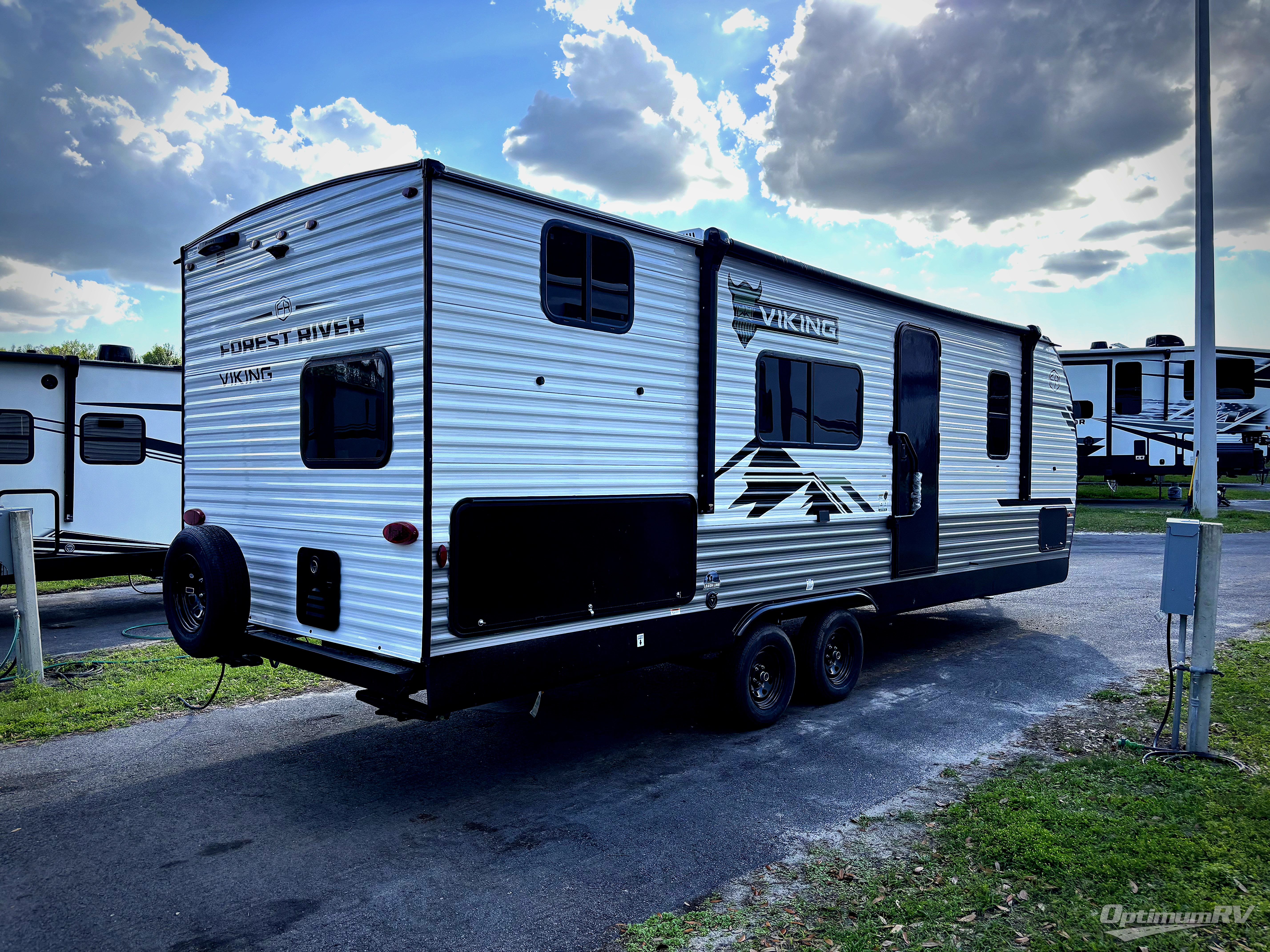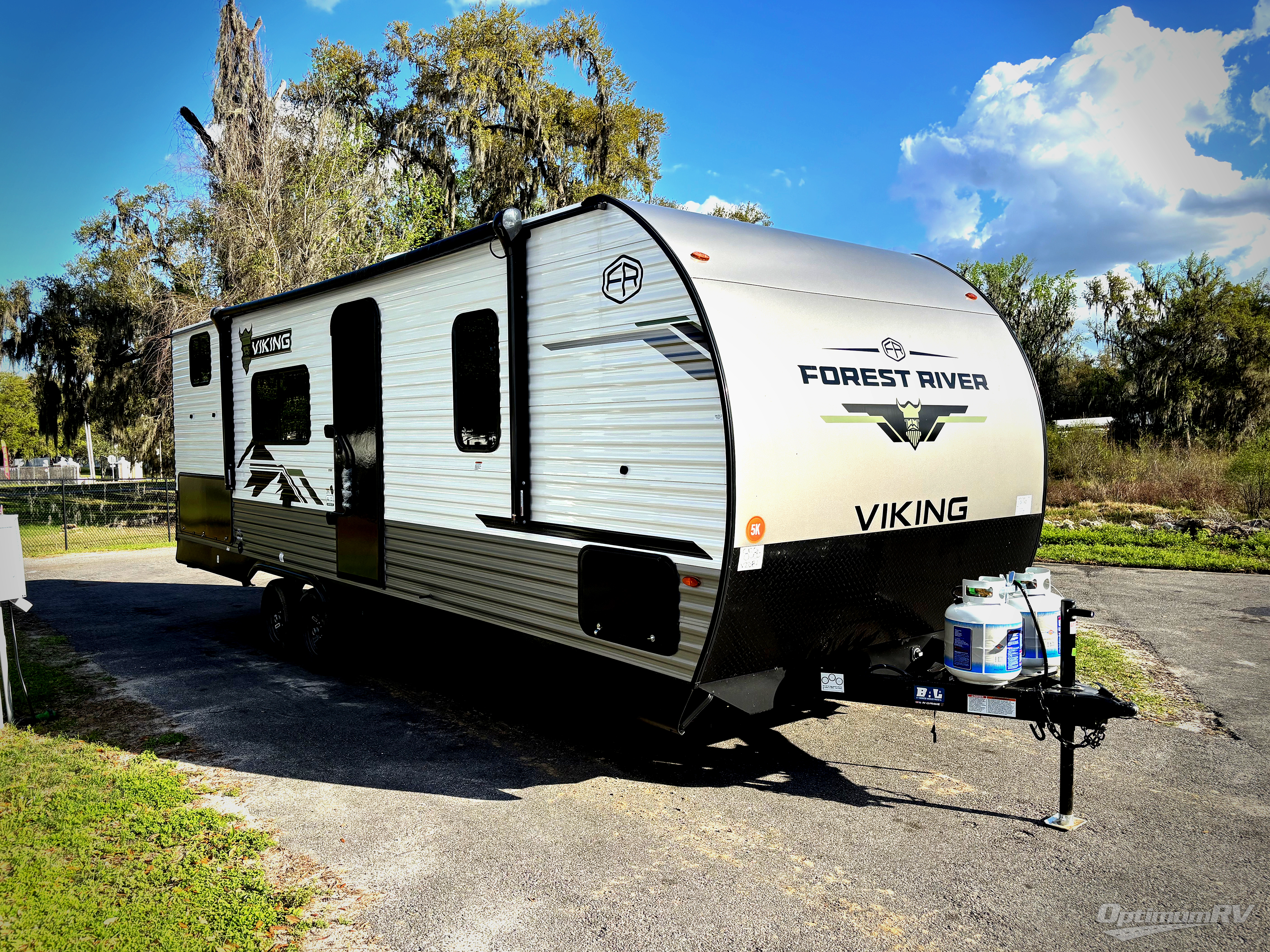 With any Forest River Viking 5K Series travel trailer, you can experience affordable camping with your family with the same comforts and quality as the bigger trailers. Each is built on a BAL NXG frame, with supreme powder coating and HUCK bolt assembly for added structural integrity and longevity along with a seamless one-piece TPO roof membrane. There are USB charging ports to keep your electronics charged up, and you'll love the look of the drop edge thermofoil countertops inside as well. Head outside to find a power awning with an LED light strip and adjustable legs, back-up camera prep, solid entry steps, and an outside shower so you can wash off hiking gear.
