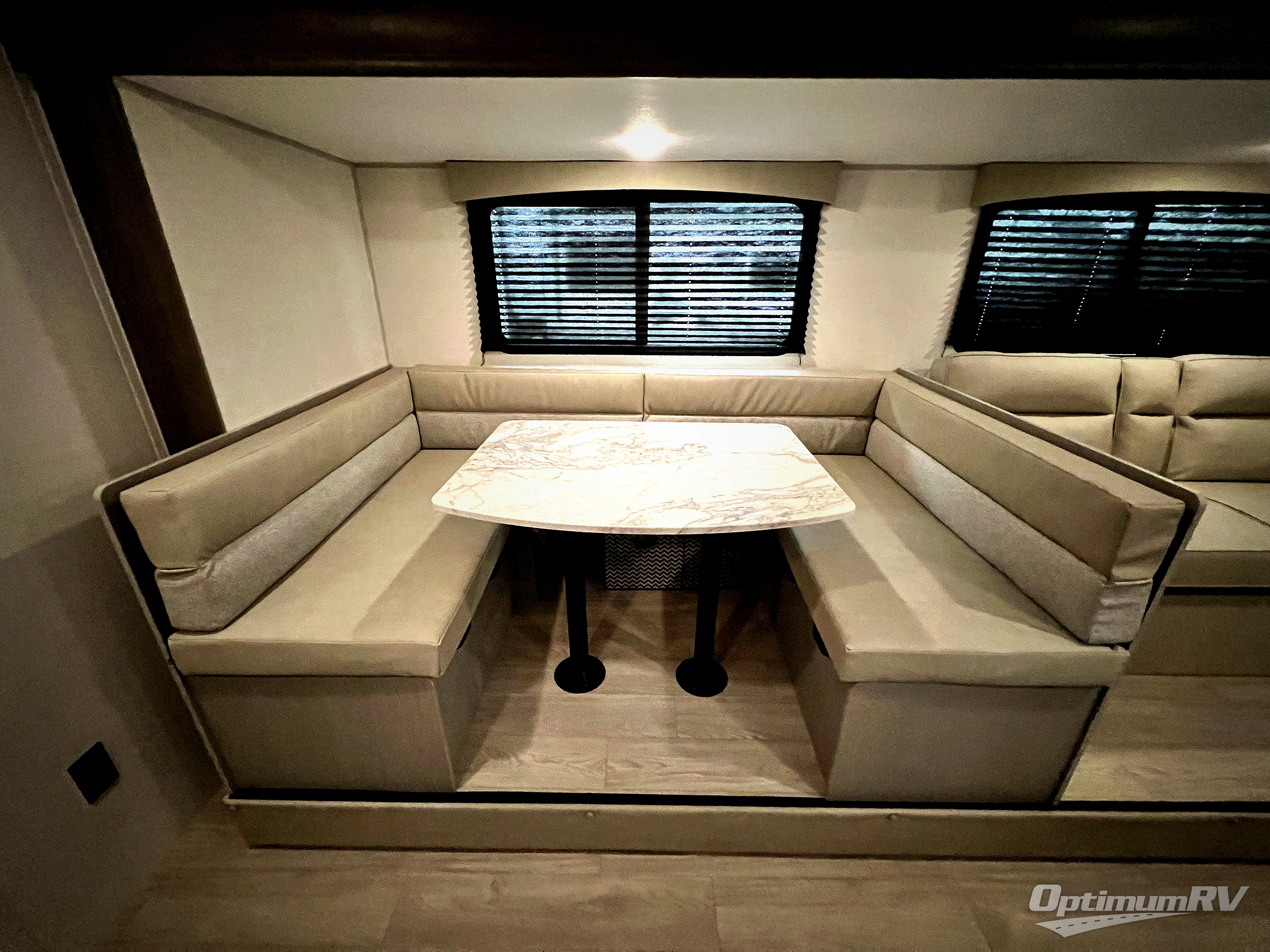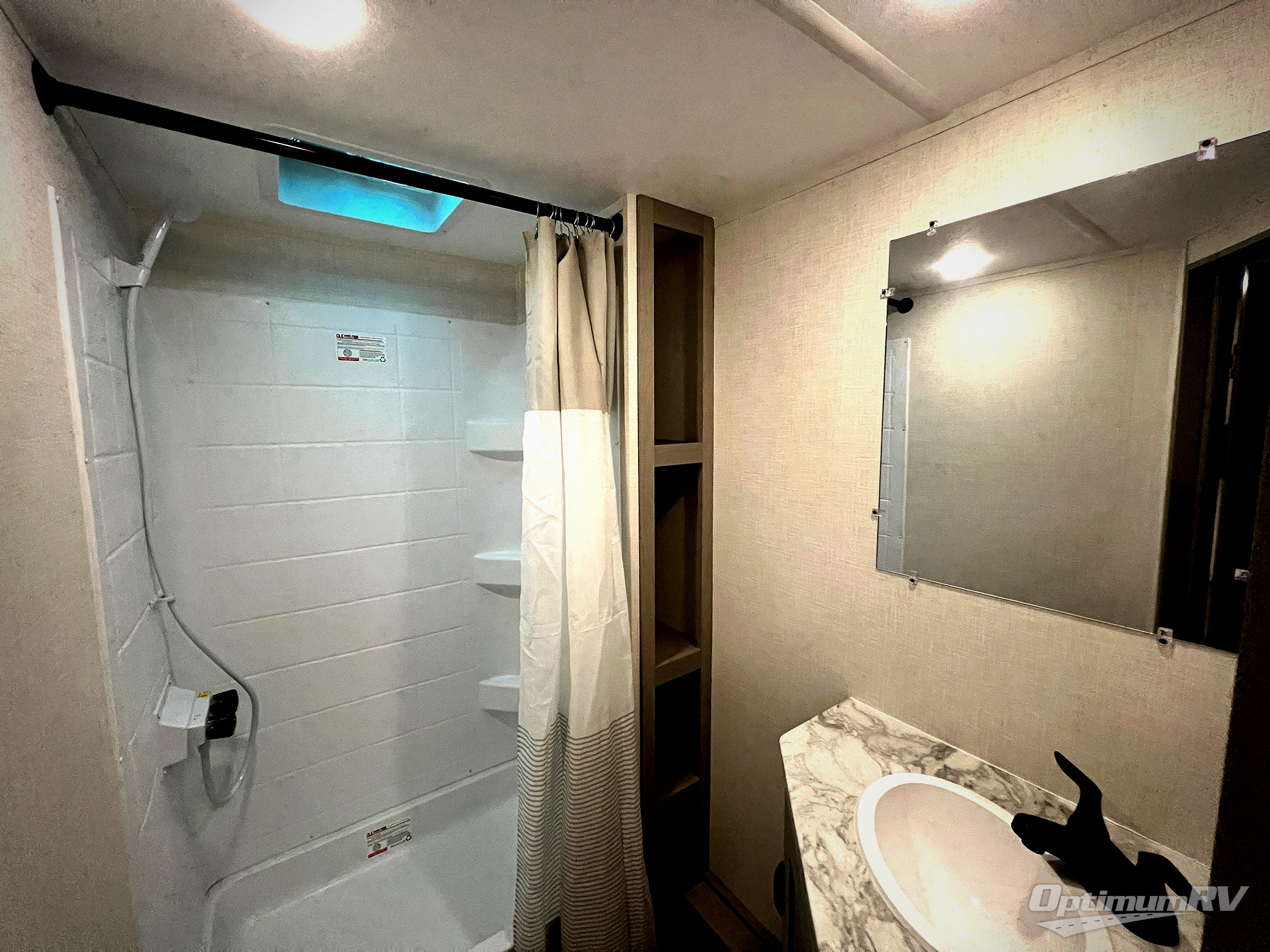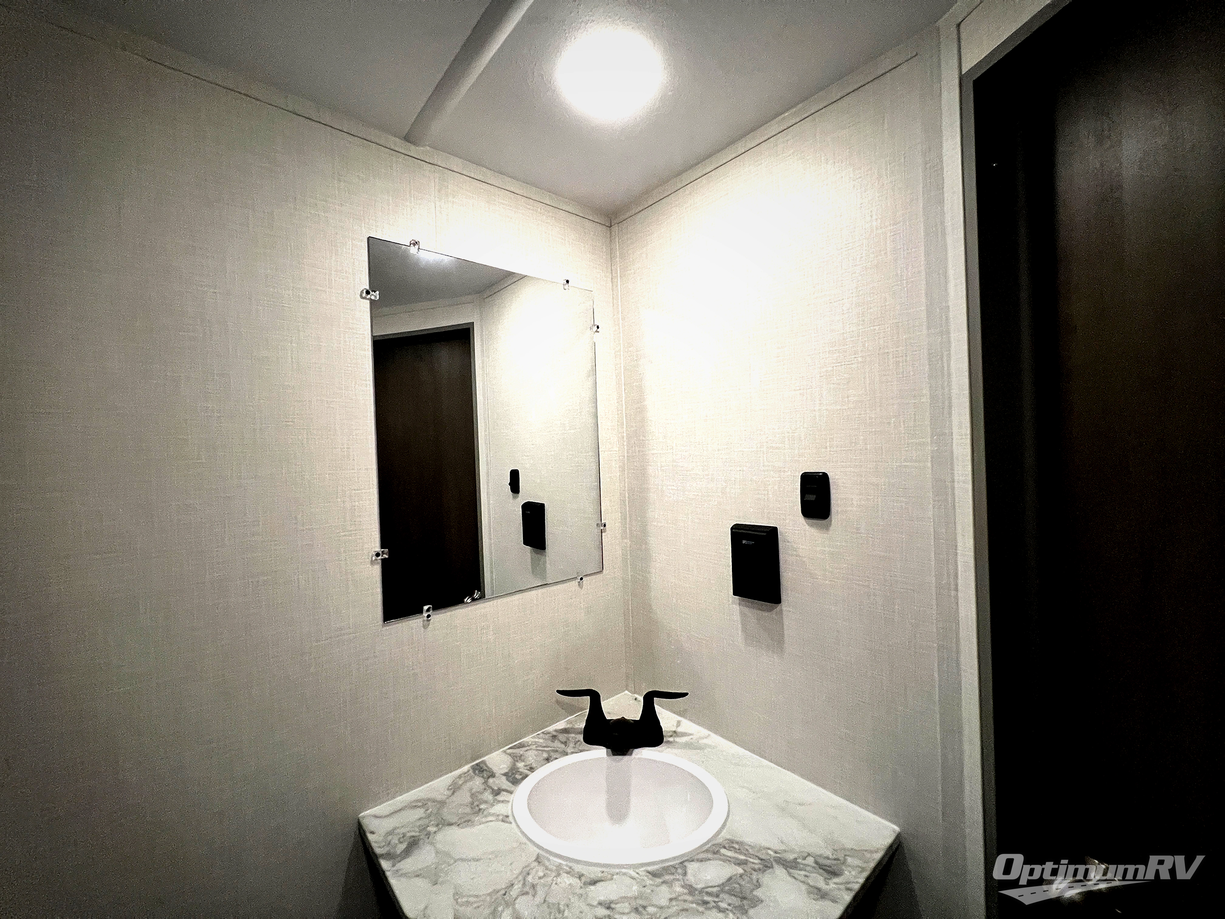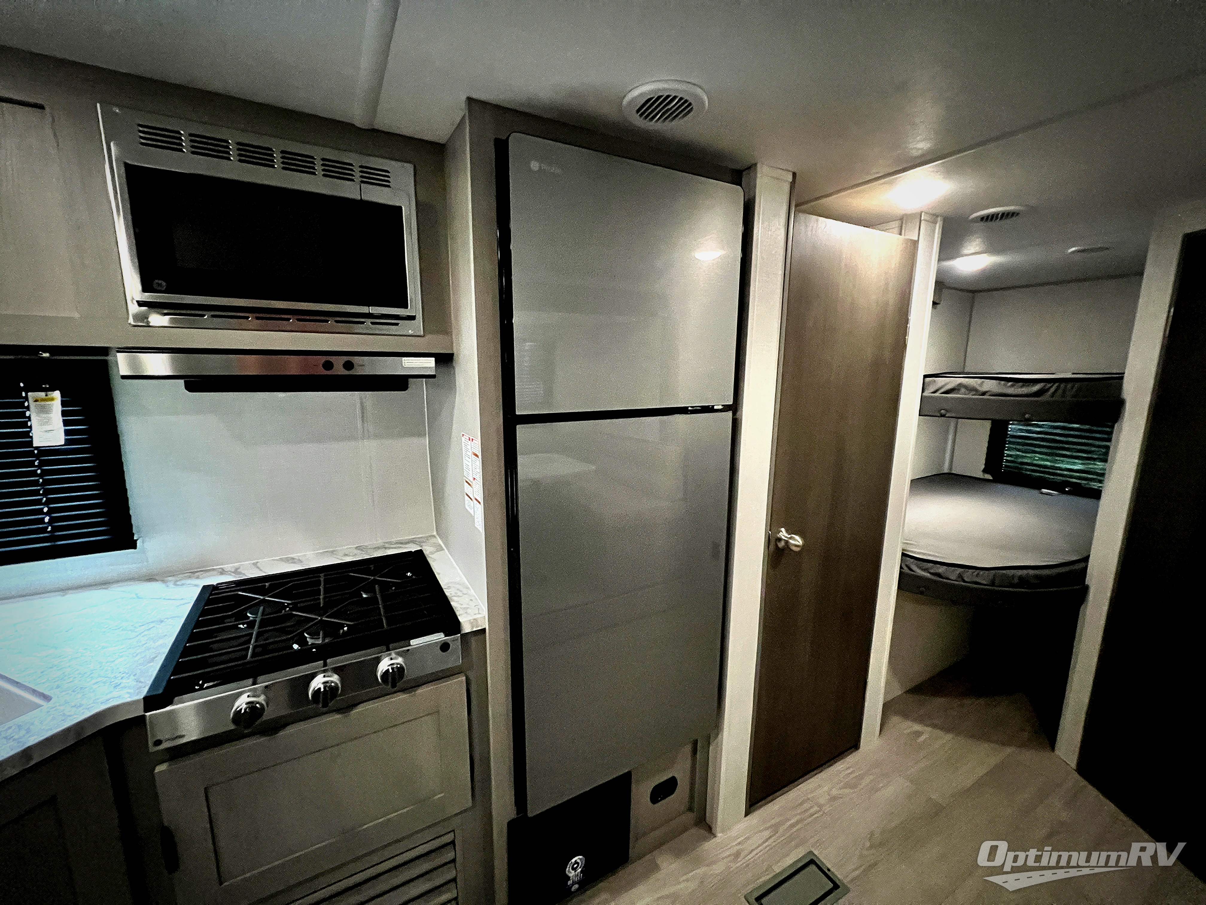 Pack your bags and head to the campground in this spacious travel trailer for the whole gang! The owners will love having their own space in the front private bedroom, complete with an RV queen bed and dual wardrobes and shelves. There are double-size bunks in the rear corner, with the full bath in the other rear corner for easy nighttime use. Everyone can meet in the combined living area and kitchen while the cook makes breakfast. There is a sofa and dinette within the large slide out and an entertainment center with an optional fireplace if you want to make this space more cozy. This unit also includes a large pantry with washer and dryer prep, giving you the option to add these appliances, and an optional camp kitchen can be added for the cook who loves being outdoors!