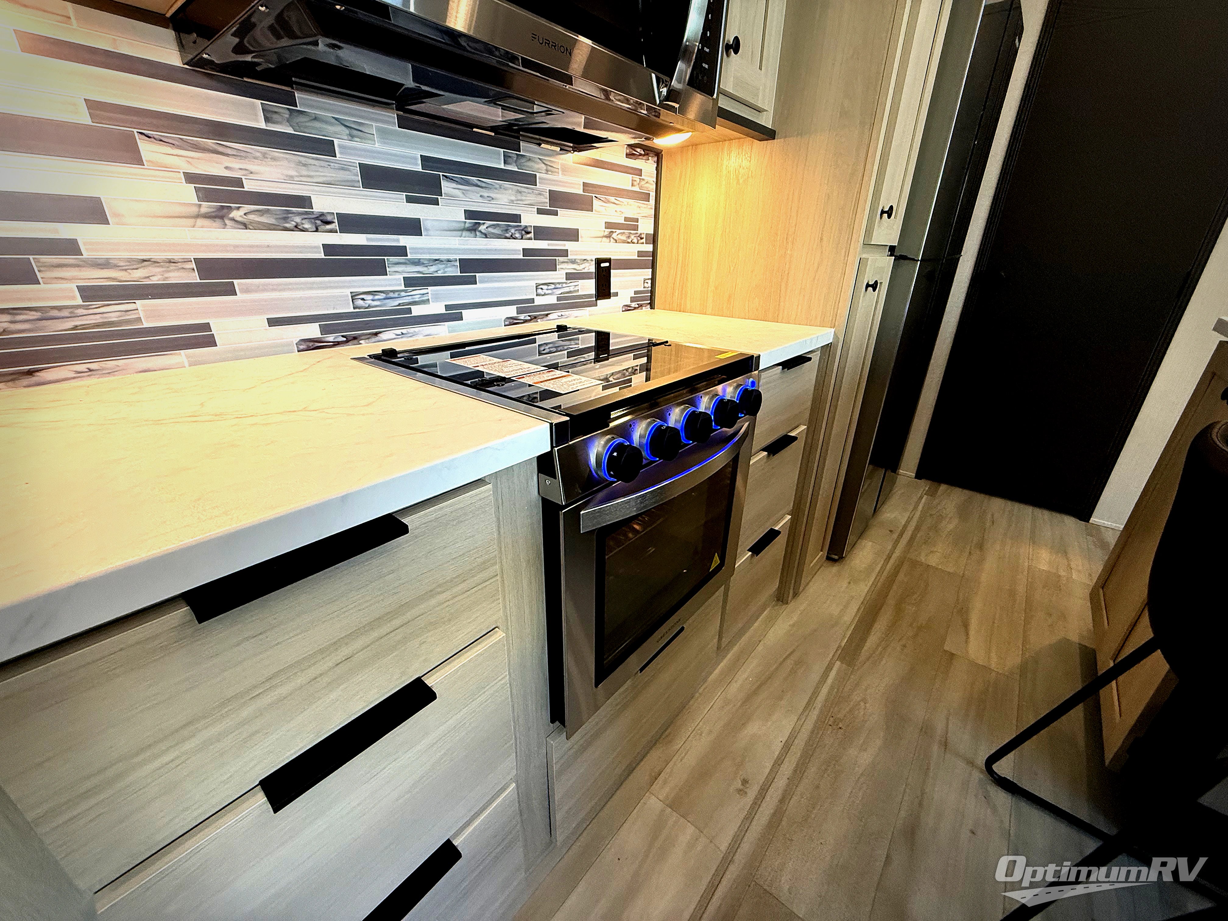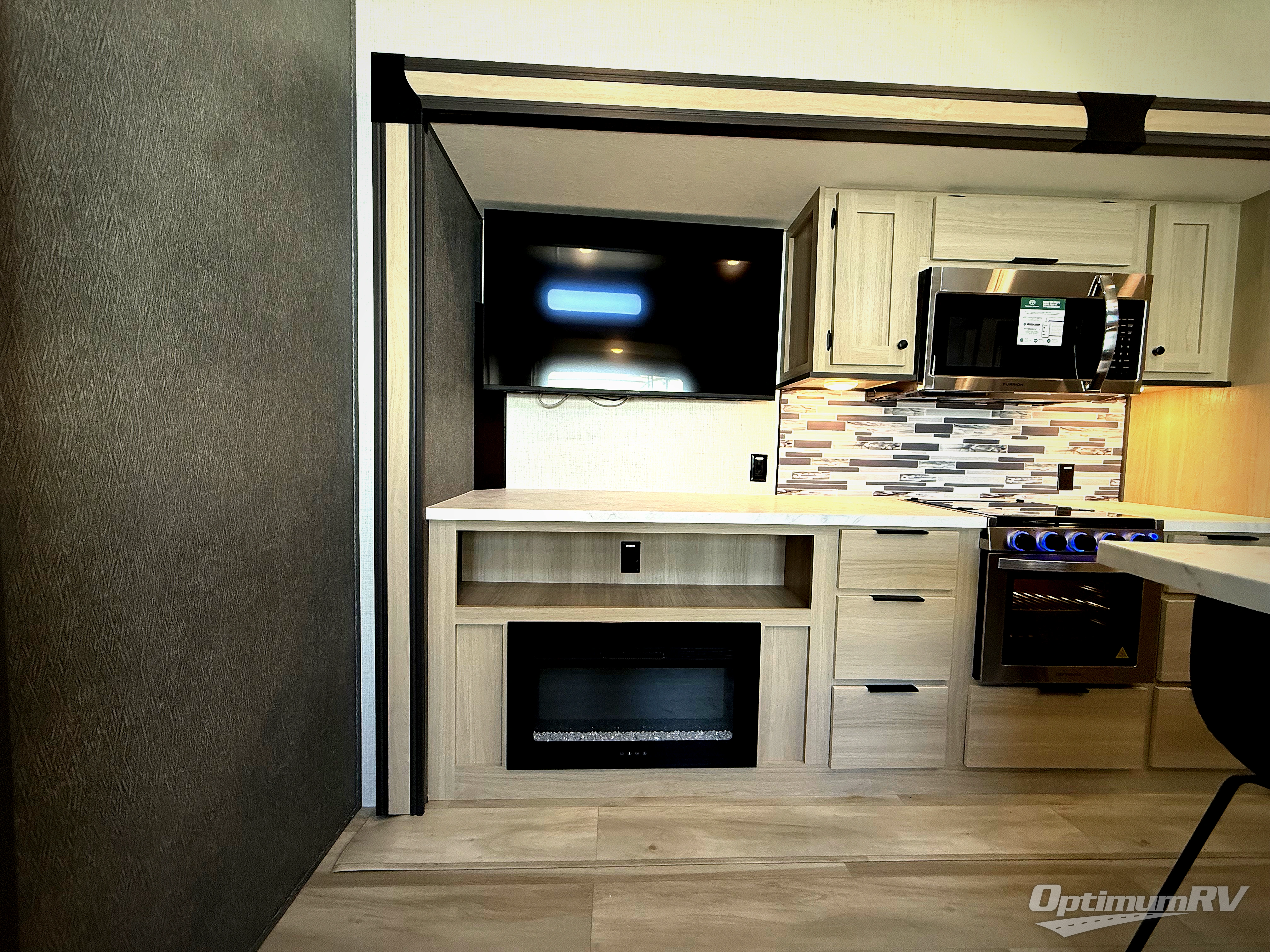 With any Wildcat fifth wheel by Forest River, you will enjoy affordable luxury at every turn. These models are constructed with residential fiberglass insulation in the roof and floor, a 4'x6' sectioned underbelly armor, and a vacuum bonded, welded aluminum structure for added strength and durability. You will also find seamless roto-cast holding tanks, an outdoor shower, and 4-point auto leveling for quick and easy setup. Each model includes a best-in-class, high-efficiency 35,000 BTU furnace, along with an electric fireplace with thermostat control and remote, plus a 60,000 BTU tankless water heater for added convenience. There are carpet-free living spaces, residential backsplash, motion lighting throughout, and many more comforts!