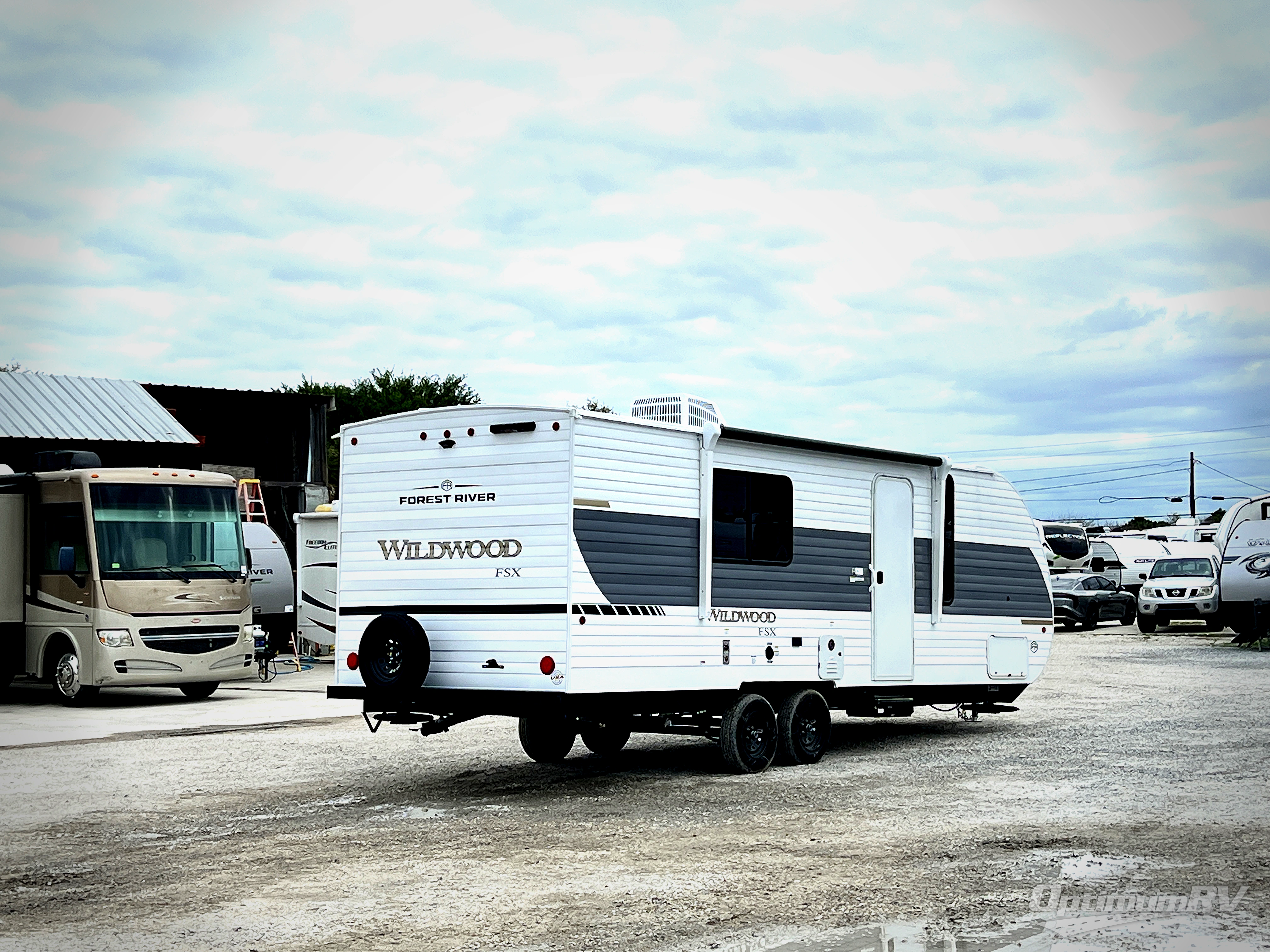 The Forest River Wildwood FSX Limited Edition travel trailer is easy to tow and easy to love, so come take a look! You'll appreciate the aerodynamic front profile, diamond plate front rock guard, and seamless holding tanks. The 26" entry doors are easy to access. Nitrogen filled tires offer a smooth ride, but there's a full-size spare tire if you happen to need it. A dedicated cable TV hookup is located on the exterior, so you can settle in under the power awning and watch some TV.
