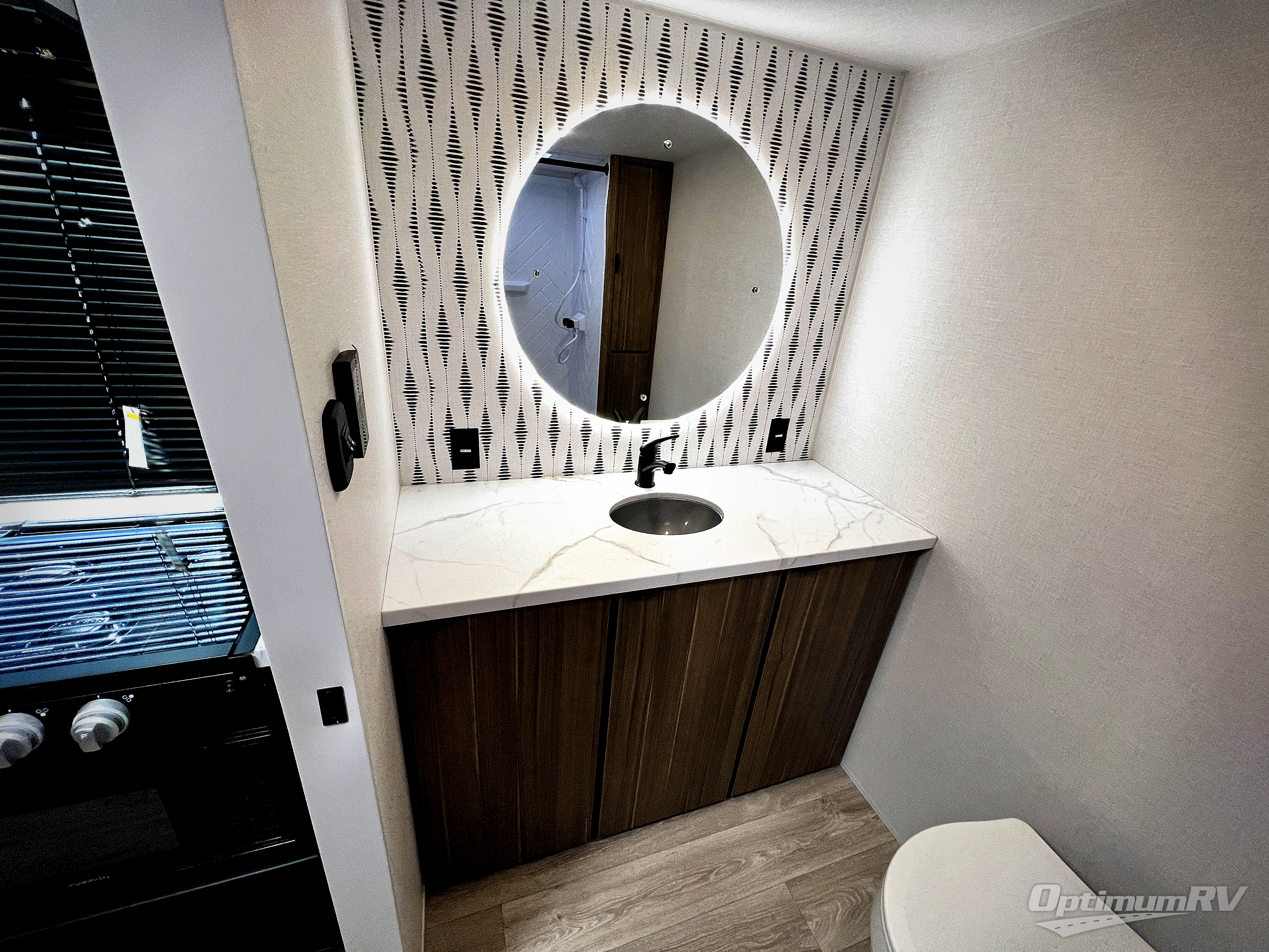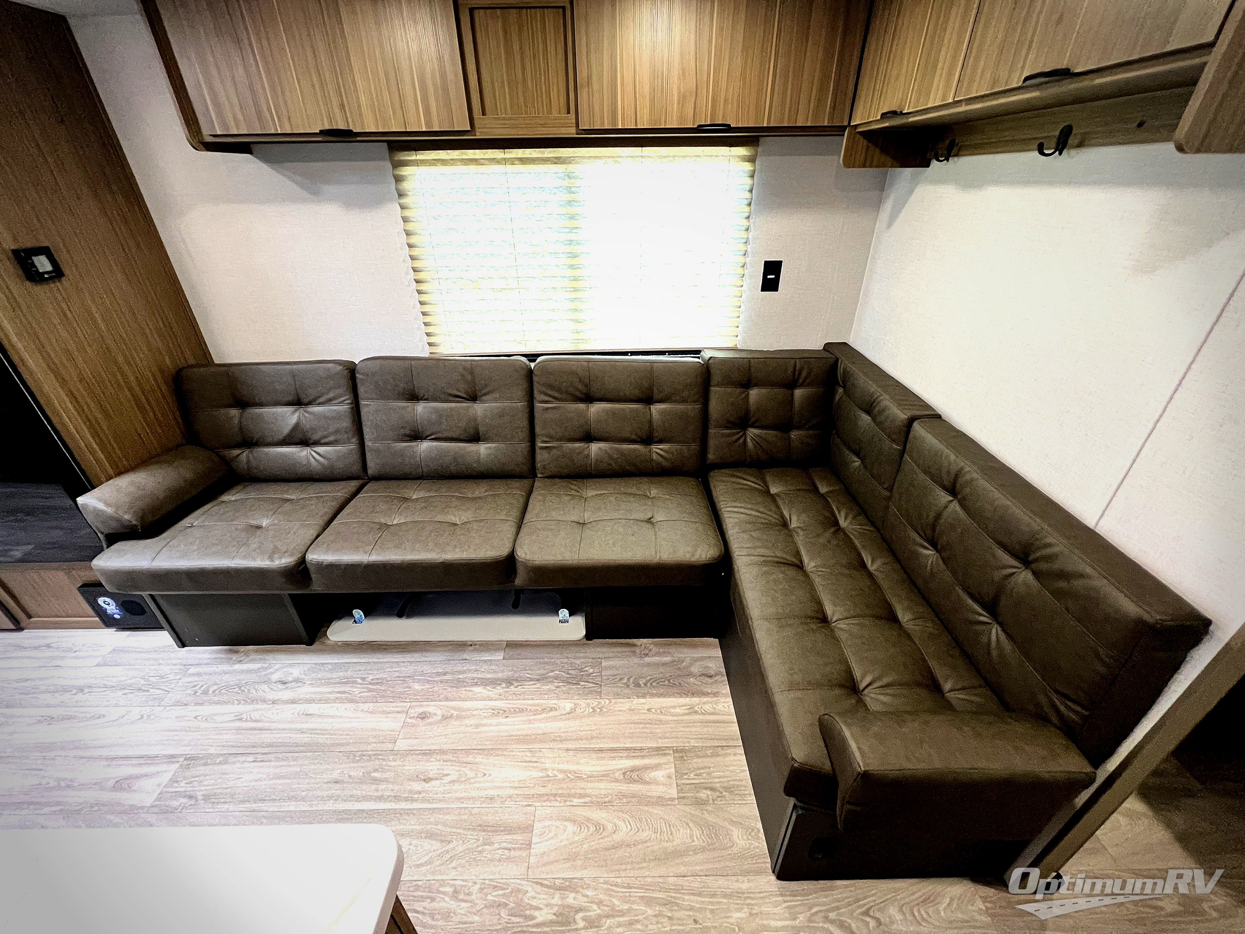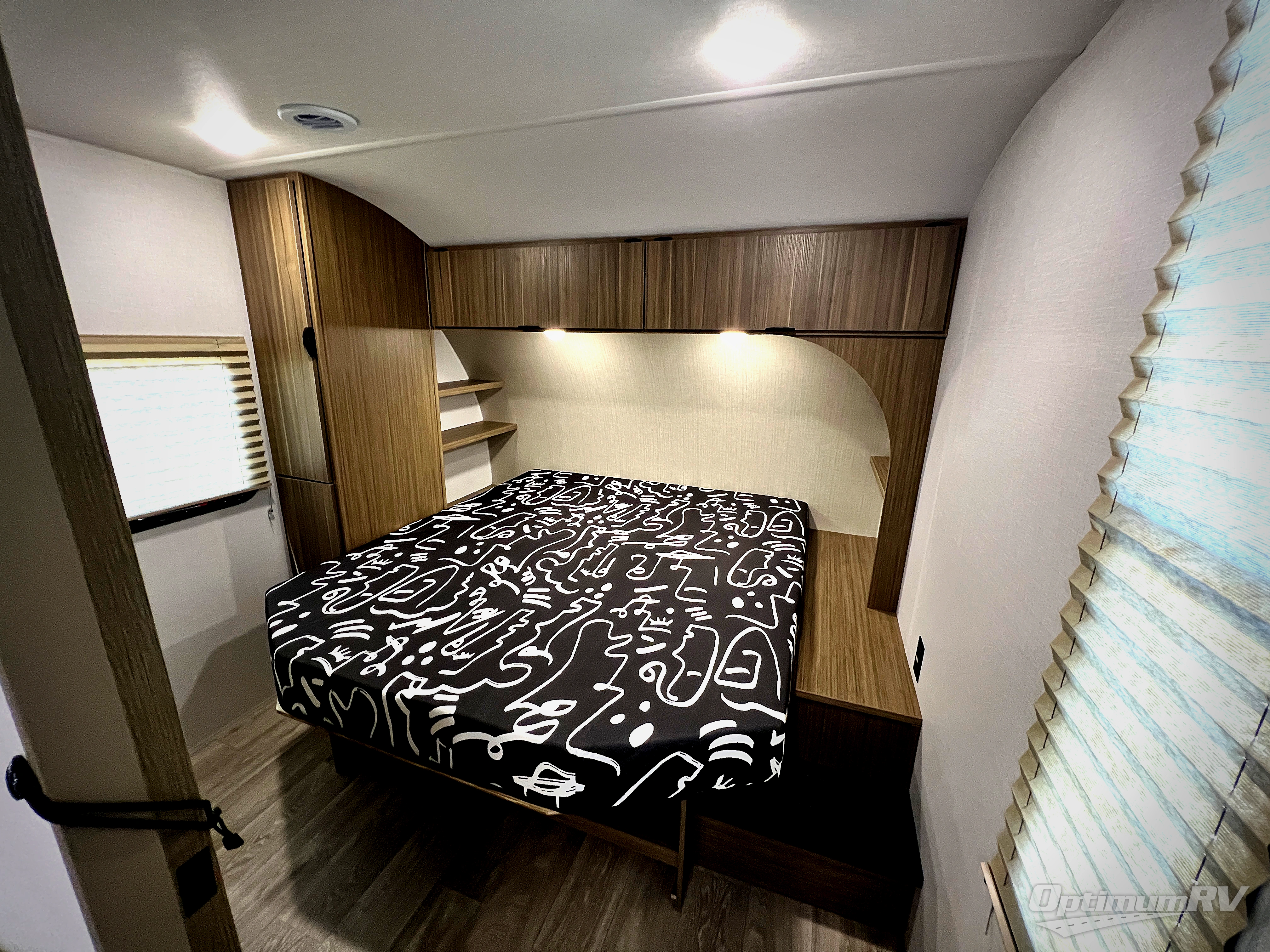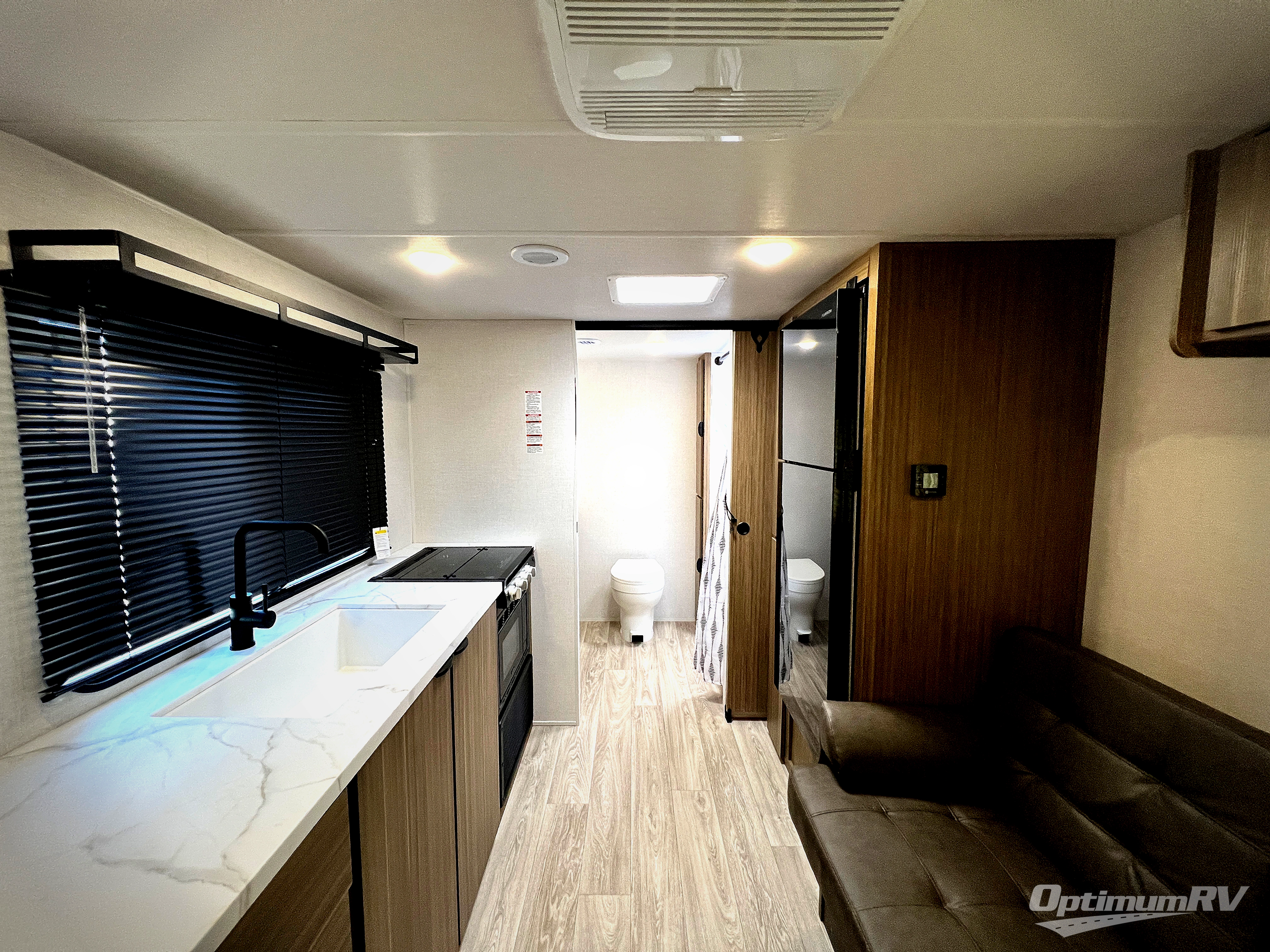 Camping is made easy in this travel trailer with a front private bedroom and a full rear bath with dual bath sink! There are dual bedroom wardrobes to keep your space neat and clean along with a king bed for more space to stretch out. Everyone can meet in the combined kitchen and living room to relax on the super U-lounge with a removable table while the chef of your group makes breakfast on the two-burner cooktop. There is also a microwave oven for quick meals, plus a pantry and large under counter refrigerator for food storage!