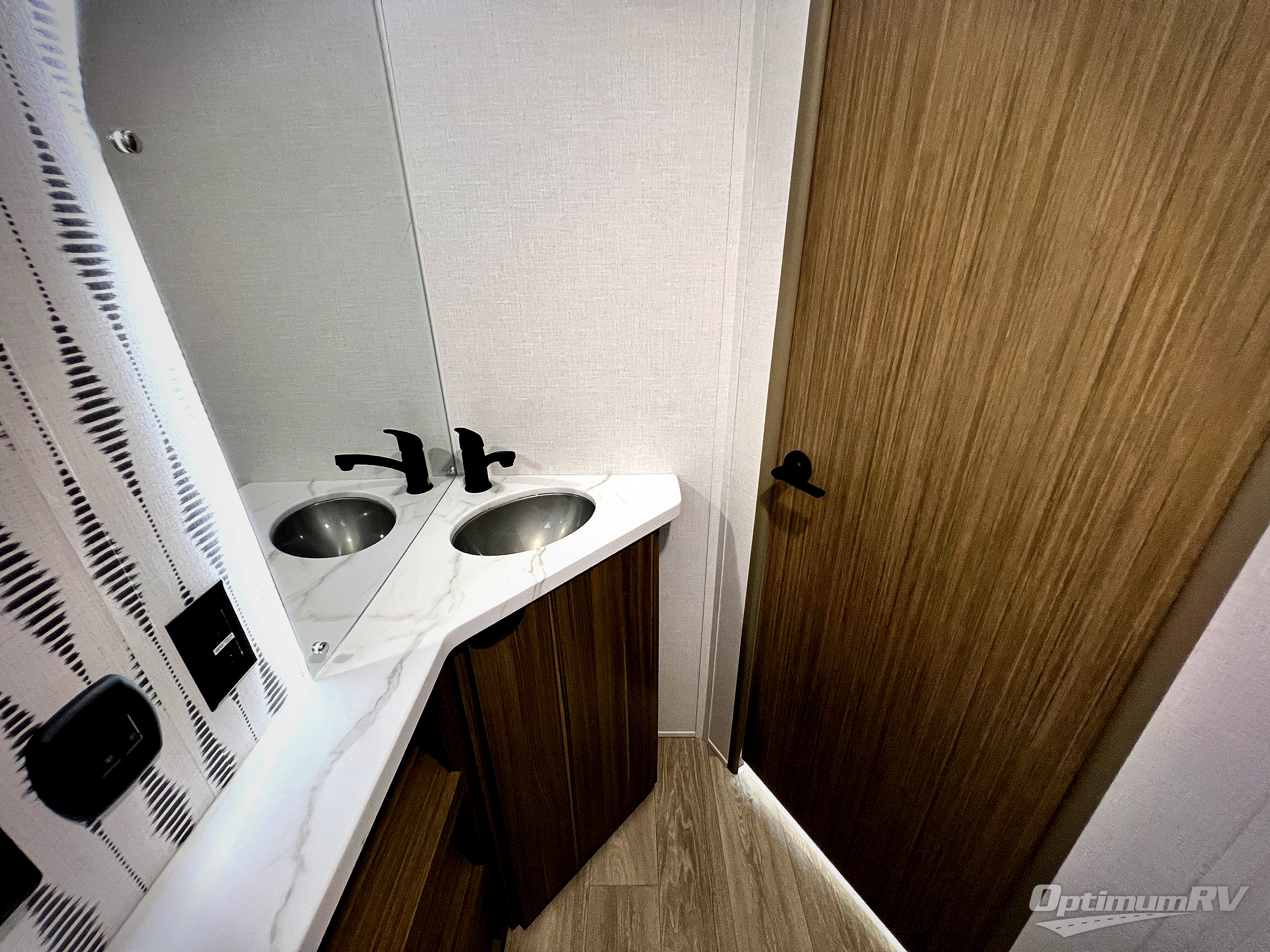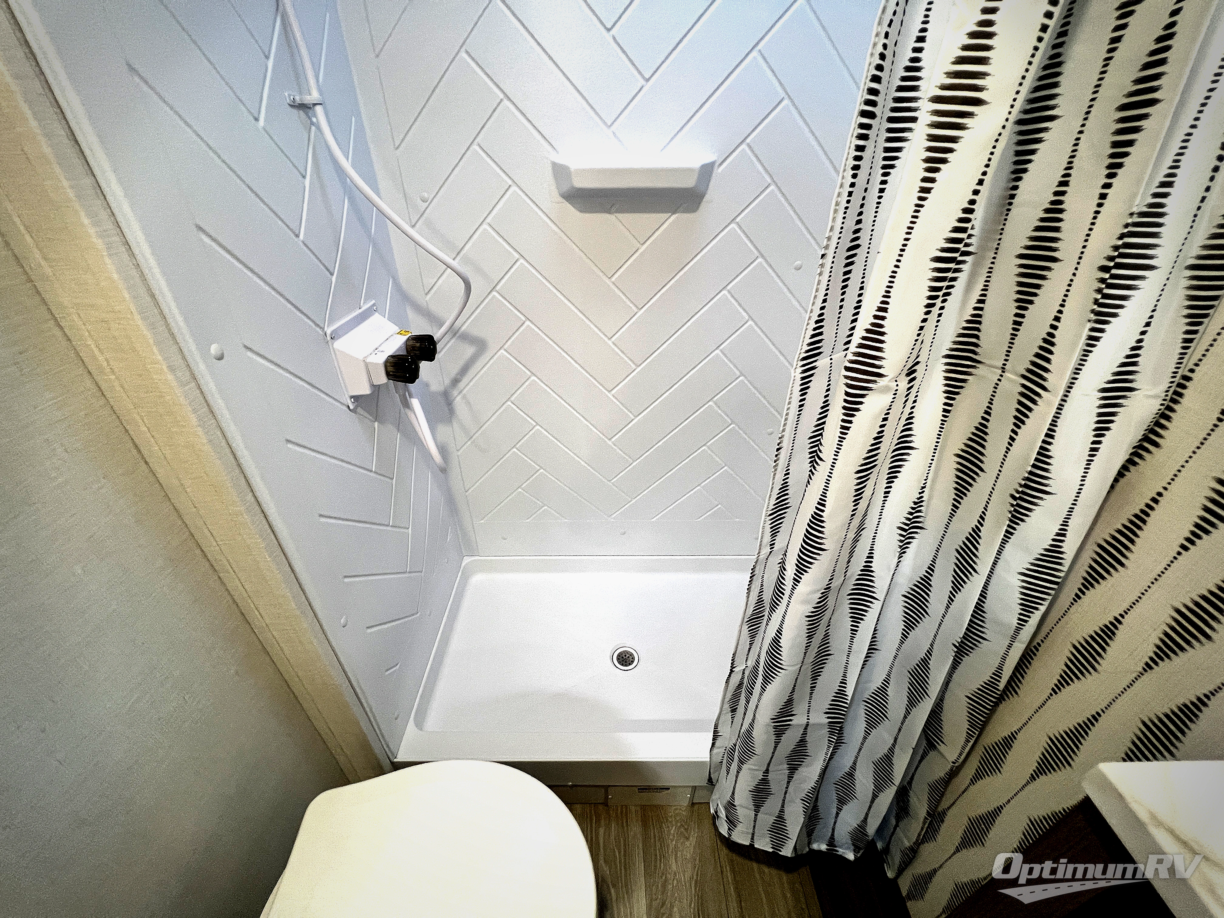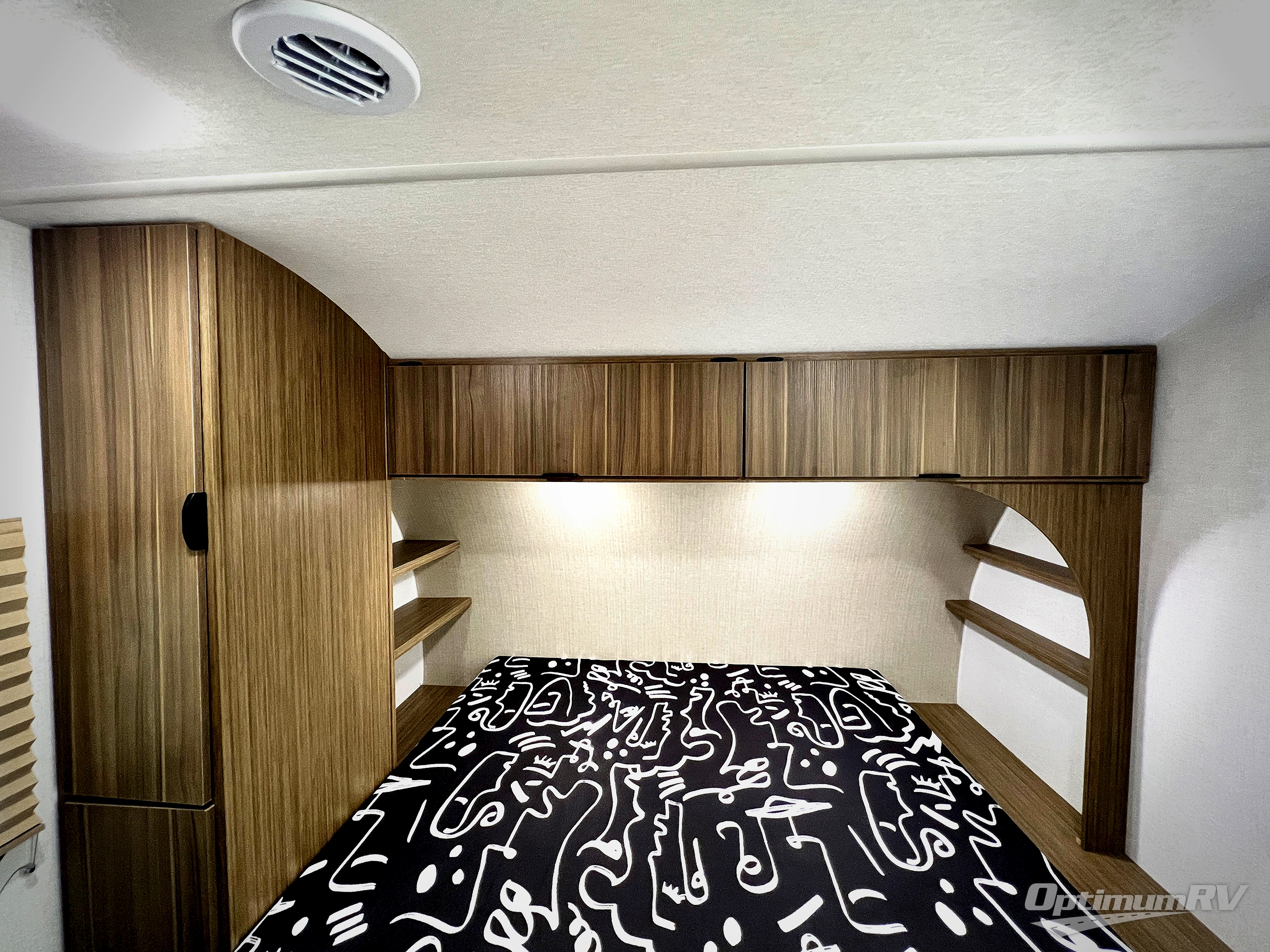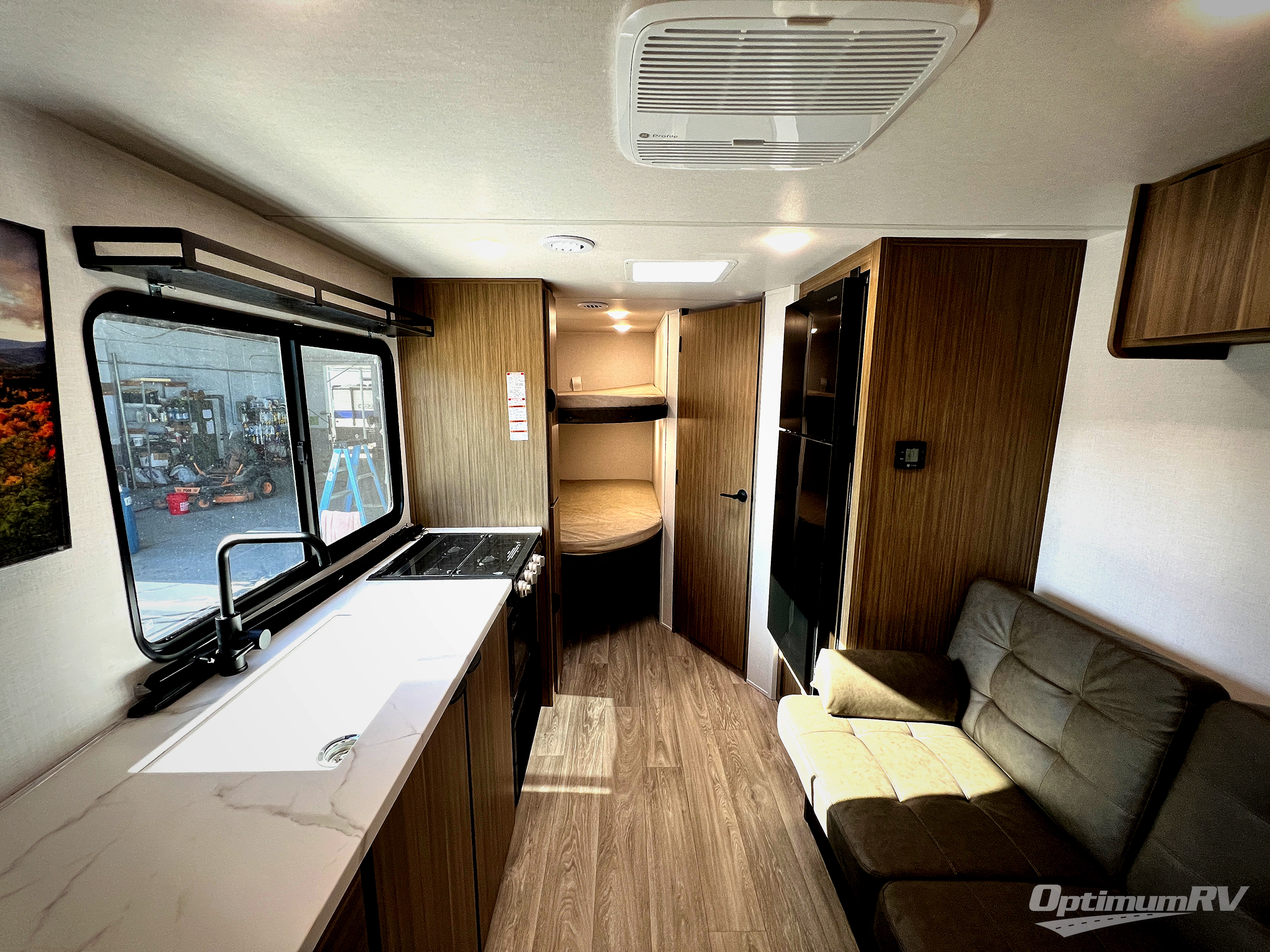 Camping is made easy in this travel trailer with more sleeping space and lots of comforts! The kids or your guests will enjoy the double-size bunks in the back, along with the full bath close by for easy nighttime use. You'll have the front private bedroom with a king bed all to yourselves, and there are dual bedroom wardrobes to keep your space neat and clean. Everyone can meet in the combined kitchen and living room to relax on the super U-lounge with a removable table while the chef of your group makes breakfast on the two-burner cooktop. There is also a microwave oven for quick meals, plus a pantry and large under counter refrigerator for food storage!