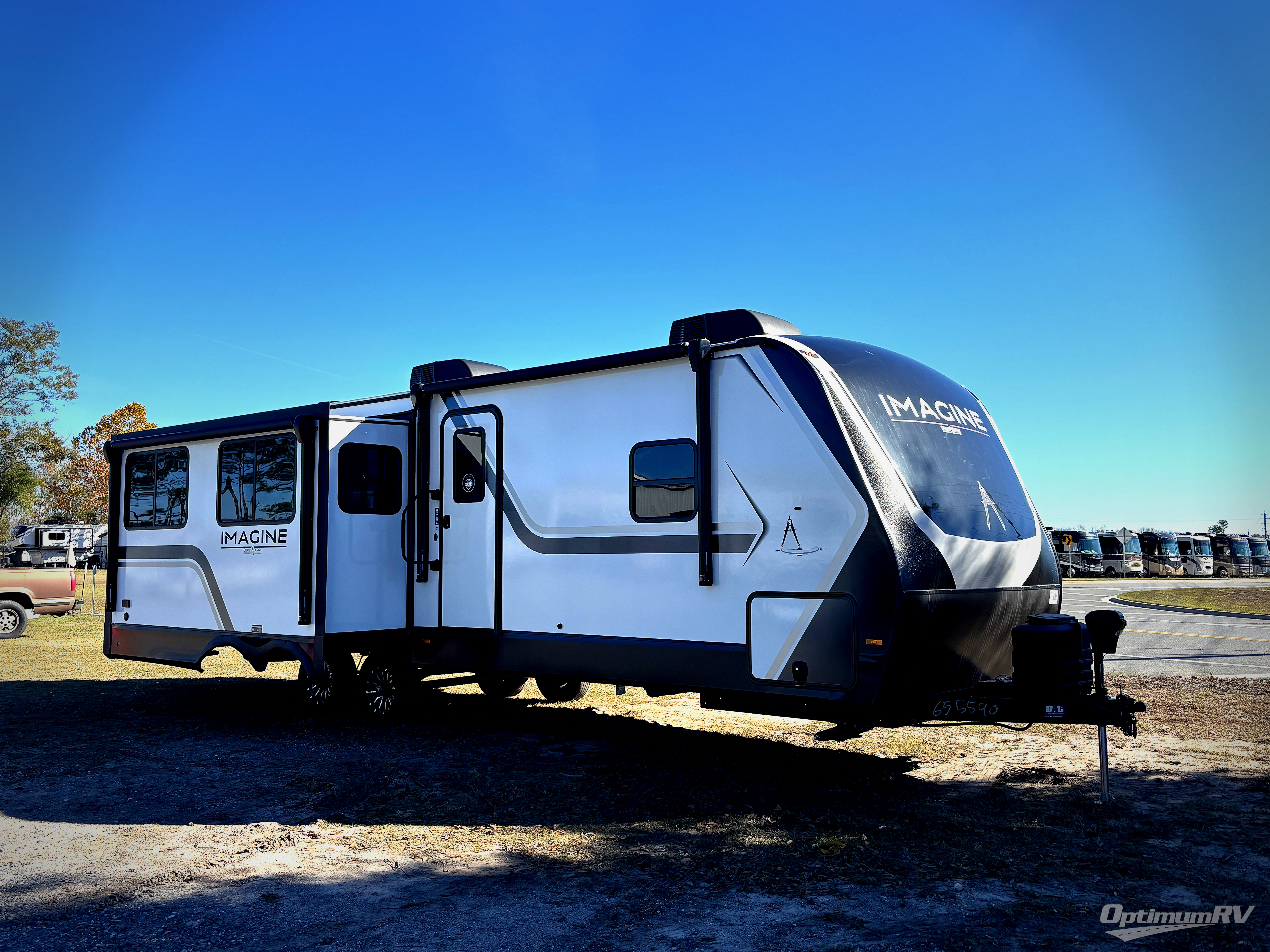 Just imagine leaving the world behind and secluding yourself away with your favorite people in your Grand Design Imagine travel trailer! The Imagine has been designed to enjoy extended season camping and includes a high-capacity furnace, a heated and enclosed underbelly with suspended tanks, a designated heat duct to the subfloor, and a high-density roof insulation with attic vent. You'll have maximum head room on the interior with 81" radius ceilings, and large panoramic windows to let in natural lighting. The exclusive drop-frame pass-through storage compartment is going to allow you to bring along lots of equipment, and the universal docking station is an all-in-one location for utilities and hook-ups. You'll also have oversized tank capacities so that you can fill and empty your tanks less often.