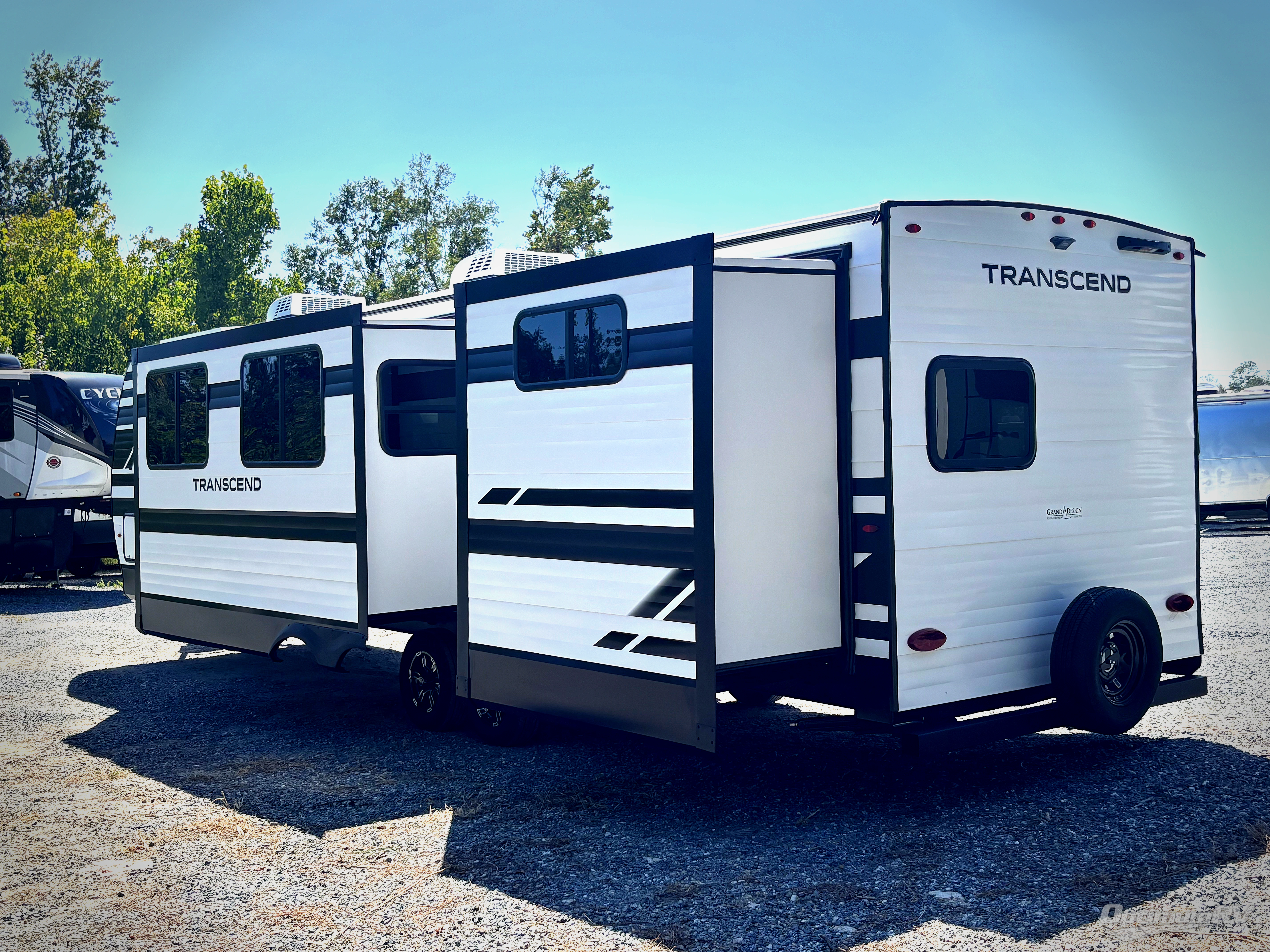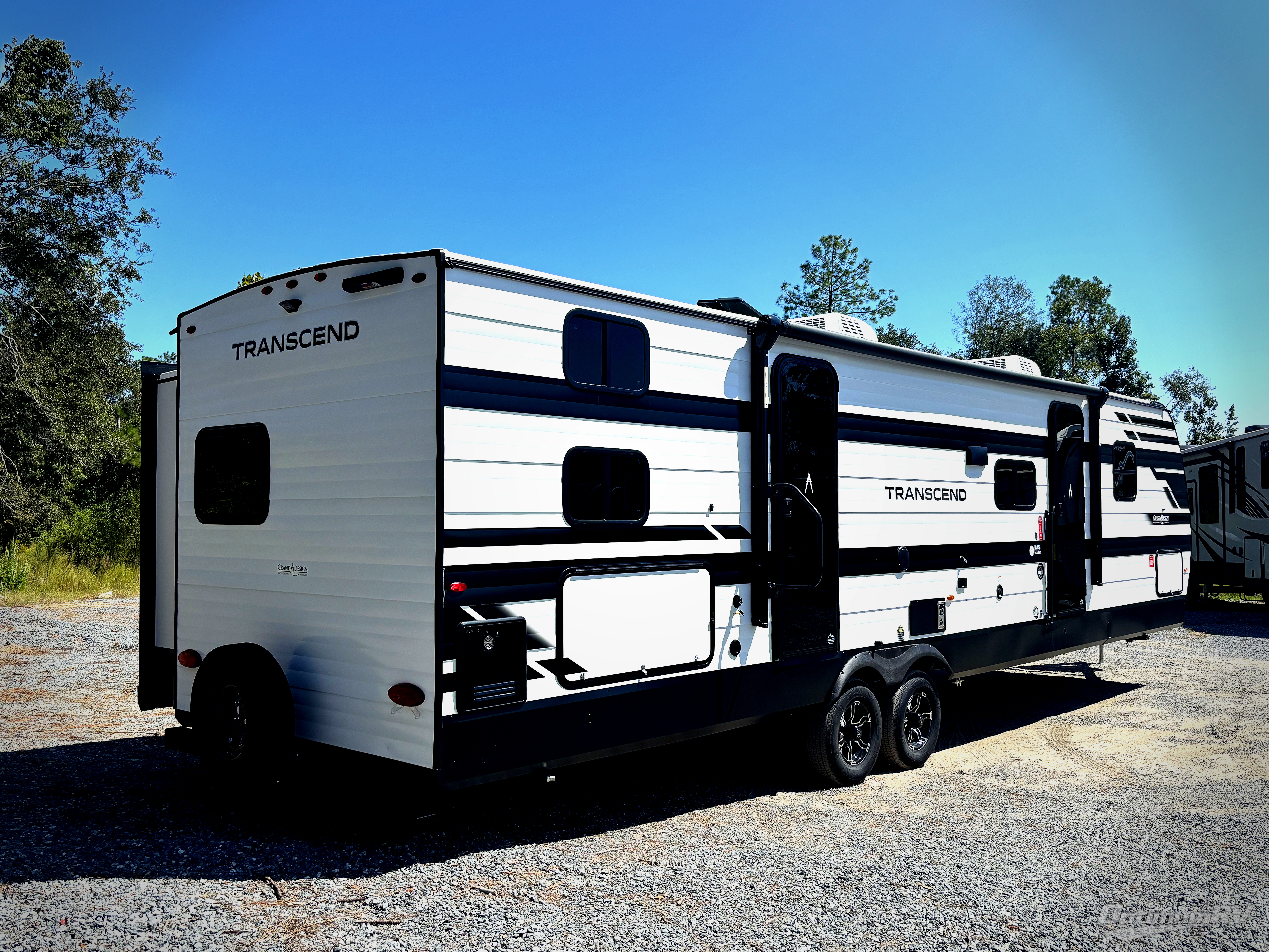 With any Transcend travel trailer by Grand Design, you will enjoy upscale appointments and convenient amenities to make each camping experience one to remember! The Quad Seal technology, residential insulated walls, plus heated and enclosed underbelly with suspended tanks make these units solid and durable. There is a black automotive glass door outside, along with a Safe-T-Rail assist on the main entry door, backup camera prep, and a universal docking station. JBL interior and exterior speakers plus a JBL head unit will let you listen to your favorite tunes as you visit under the power awning with LED strip lights. Inside, you'll enjoy multiple outlets to keep your gadgets charged, thermoformed and seamless countertops, and a 6' 6" interior height so you won't feel closed in. The Solar Prep Package will allow you to enjoy off-grid capabilities with a 200W solar panel, which is wired for up to 600W, a 30 AMP Bluetooth solar controller, a 2000W inverter prep, and more!