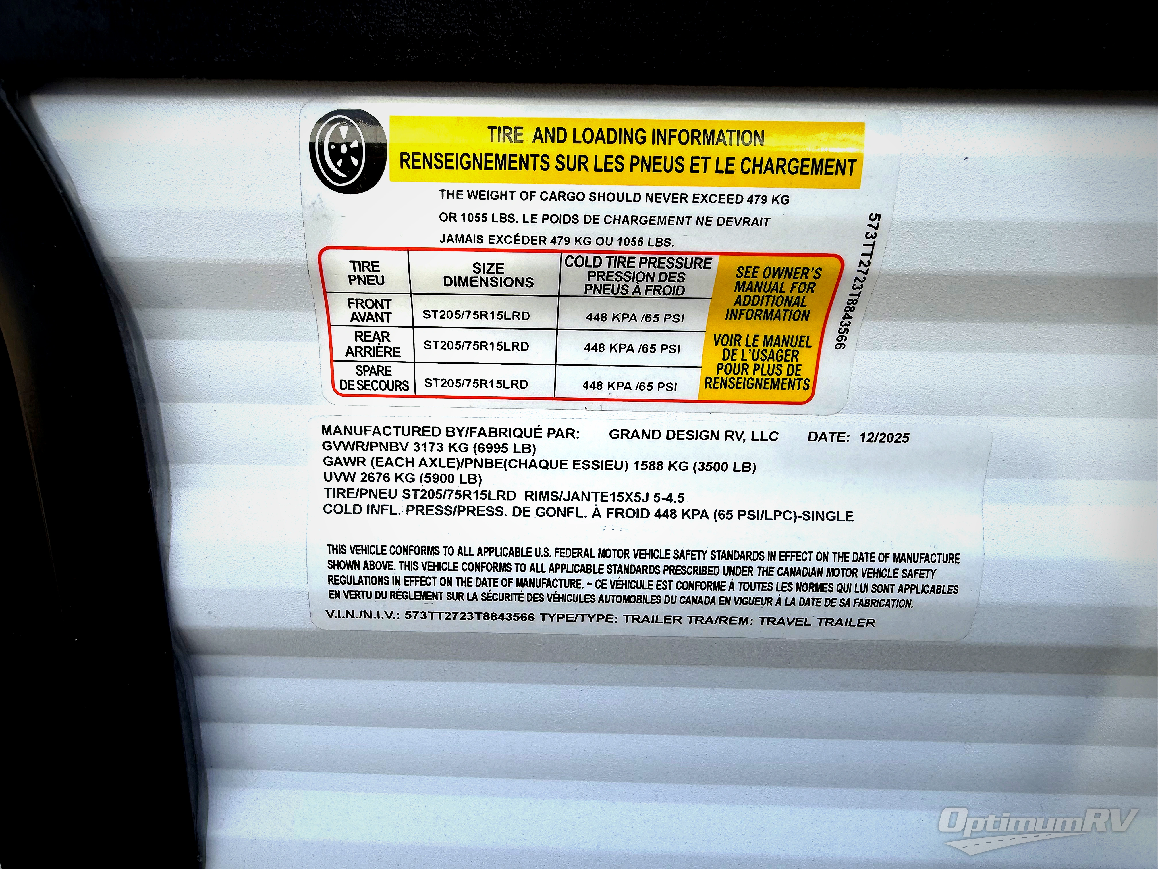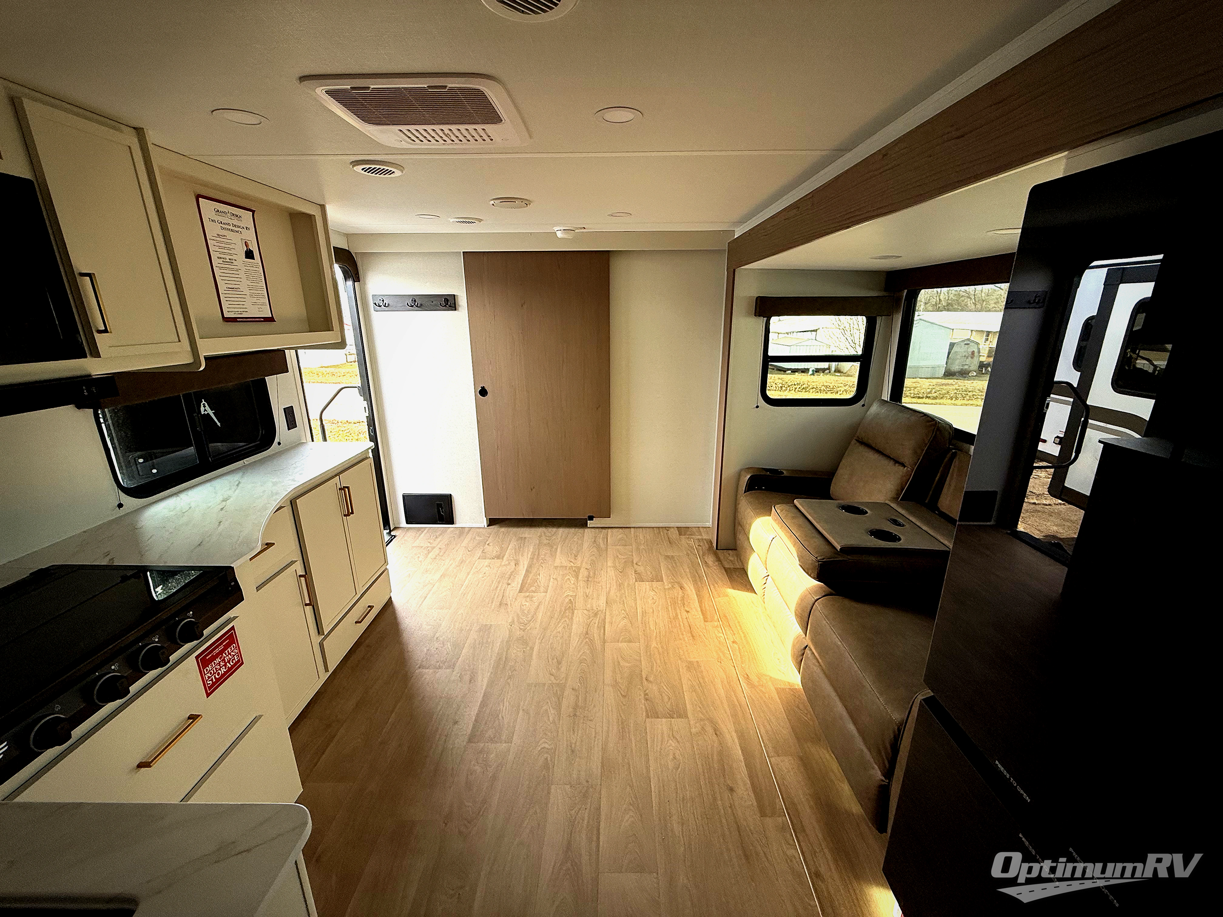 Pack your bags and head for the campground in this spacious travel trailer! Once you arrive, you can unload the pass-thru storage, then make lunch on the exterior griddle with a 1.7 cu. ft. exterior refrigerator. The U-shaped dinette slide will provide a place to dine if you decide not to stay outside under the 16' power awning. Optional theater seats can be chosen in place of the dinette for even more comfort! You'll sleep soundly on the queen bed in the front bedroom, and the full rear bath lets you freshen up each day.