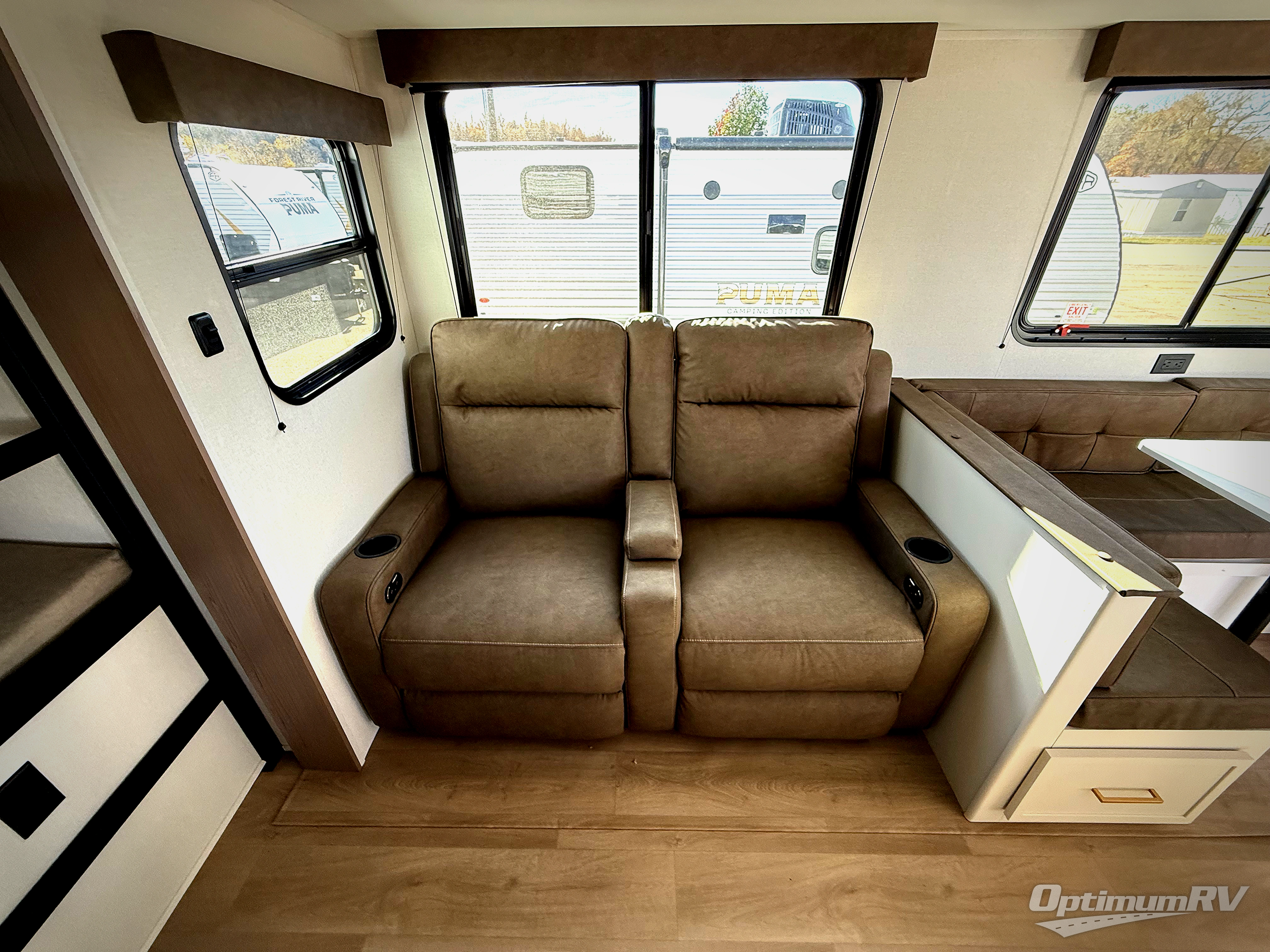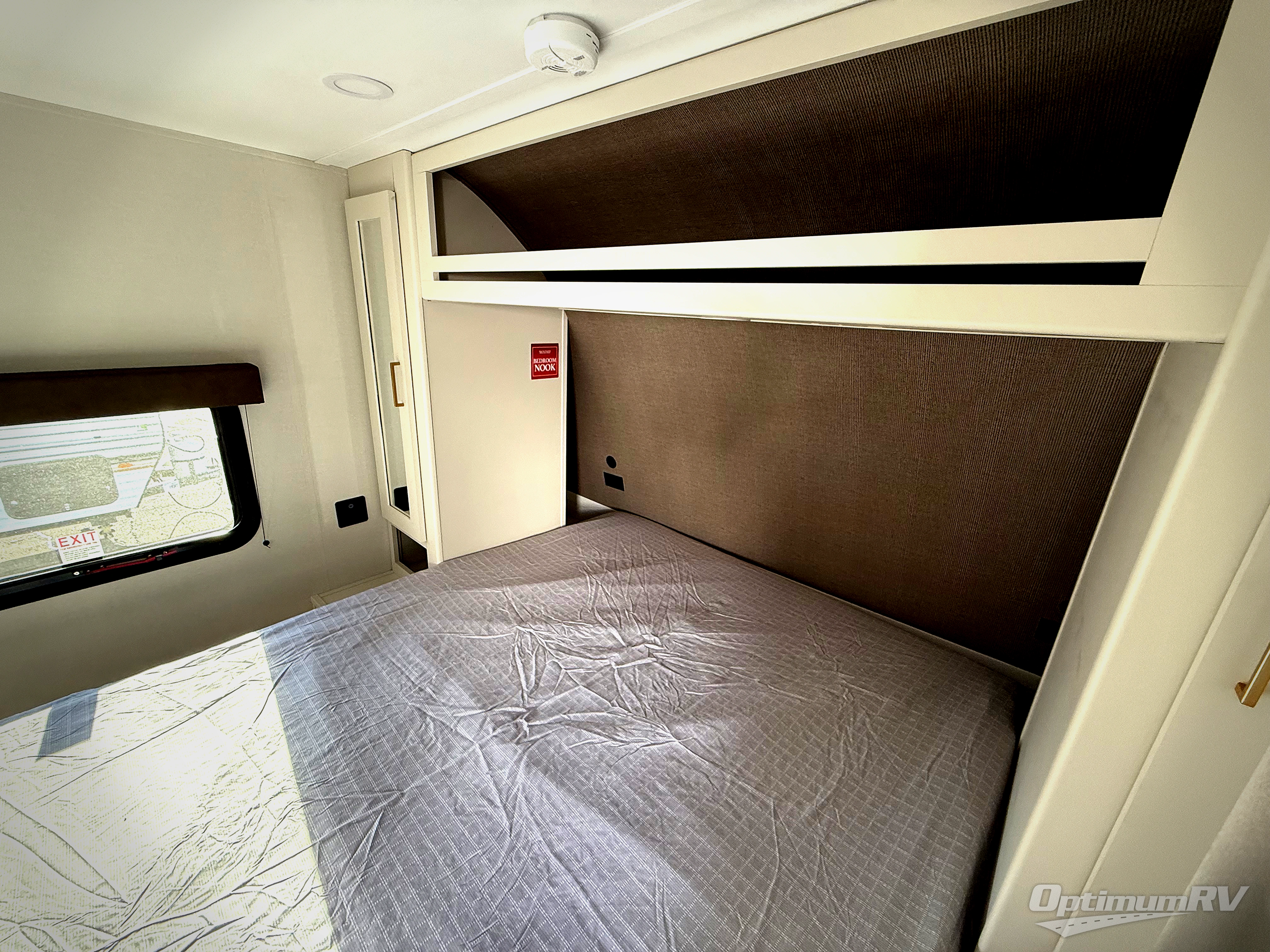 Get ready to take your travels to new heights with our incredible luxury travel trailer! The front bedroom has a queen bed, wardrobe, and overhead cabinets for all your favorite belongings, the perfect place to relax and recharge after a long day of adventure. The living room/kitchen combined area is equipped with a U-shaped dinette, three-burner cooktop, microwave, refrigerator, pantry, and 62” theater seating. Perfect for cooking up your favorite meals, entertaining friends and family, or simply relaxing and enjoying the comforts of home. The full bathroom is spacious and complete with a linen closet for added convenience. And with double-sized bunk beds featuring curtains and under-bunk storage, the kids will have their cozy retreat. But the adventure doesn't stop there! Outside, you'll find an exterior griddle with a 1.7 refrigerator, perfect for cooking up a storm in the great outdoors. And with a massive 19’ awning, you'll have plenty of shade and protection from the elements, plus, with two entry/exit doors and pass-through storage, you'll have easy access to the trailer and all your gear.