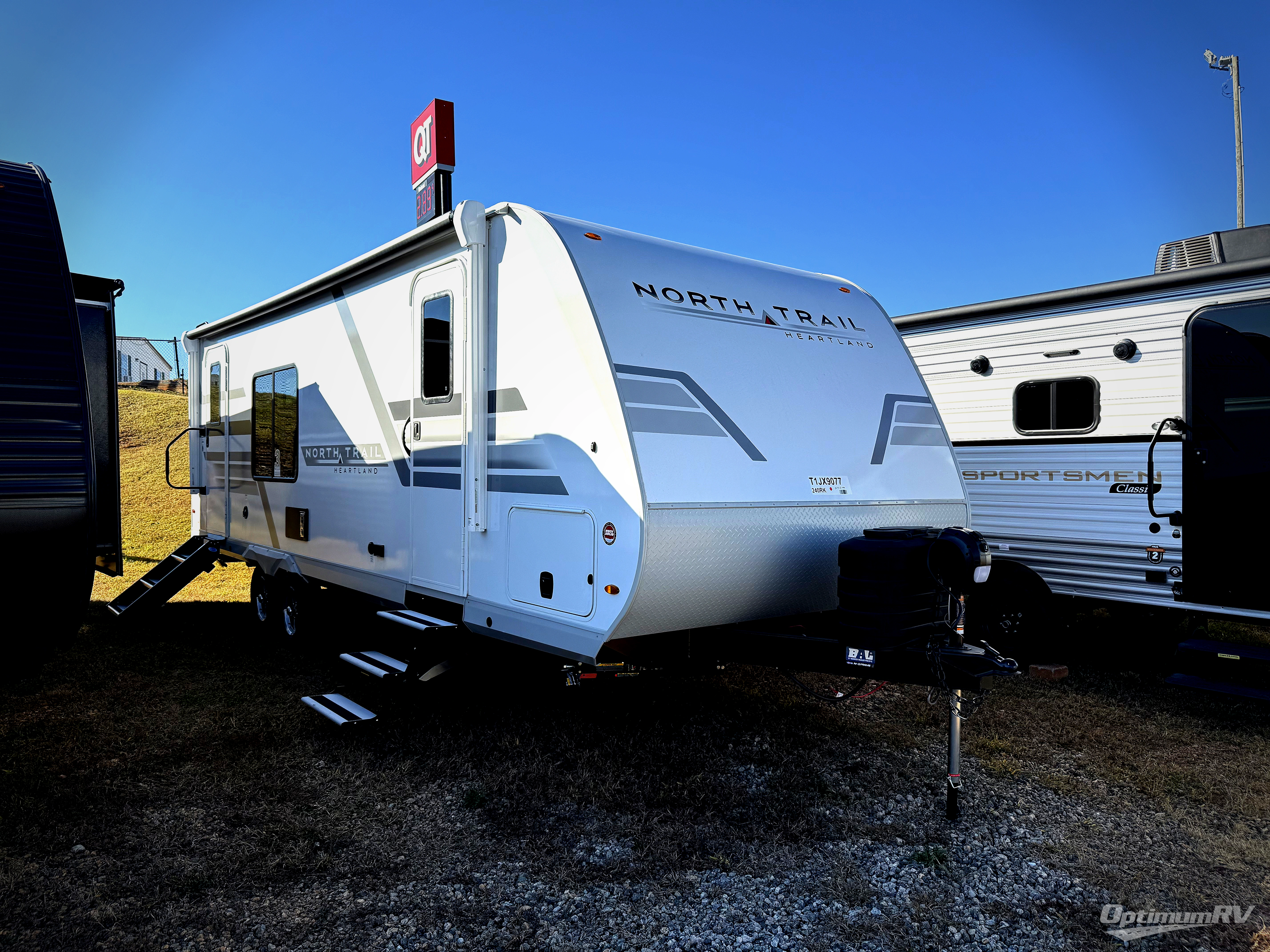 Built for comfort, durability, and modern convenience, these Heartland North Trail travel trailers offer everything you need for a premium camping experience. Each model features a strong American-made Norco Z-frame with an aerodynamic front profile and front diamond plating for added protection. The exclusive TrusstXL Roof System and CoreShield vacuum-bonded walls with Azdel provide superior insulation. Inside, enjoy residential comforts like seamless countertops, solid hardwood maple cabinet doors, LED lighting throughout, and 60 x 80 in. queen beds or 60 x 76 in. Murphy beds. Tech-ready features include an LED smart TV, USB ports, TPMS monitoring, and a 200W solar panel with 30 AMP digital controller. With a Quiet Series A/C, on-demand 60K BTU water heater, with these trailers you are equipped to make every trip comfortable and adventure-ready.