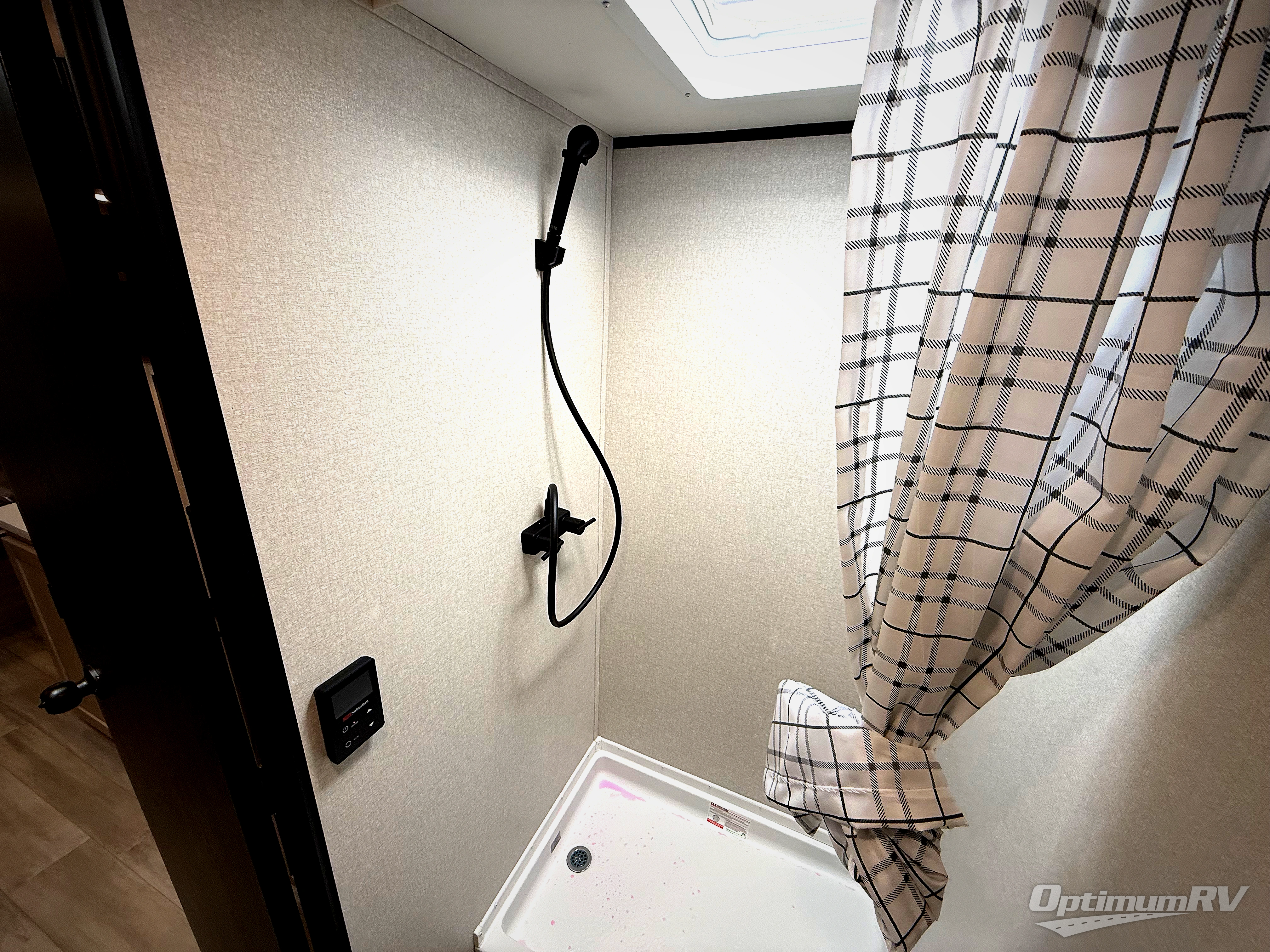Camping trips are made easy in this Lynx Edition travel trailer with bunk beds for guests or little ones. You'll find the front queen bed for a great night's rest, along with a nightstand and wardrobe to keep your things tidy. The rear corner private bath includes a foot-flush toilet and a 24" x 36" shower, so you won't have to leave the camper in the middle of the night. A two-burner cooktop and microwave oven will let you make meals each day, and a 12V refrigerator will keep your food fresh!
