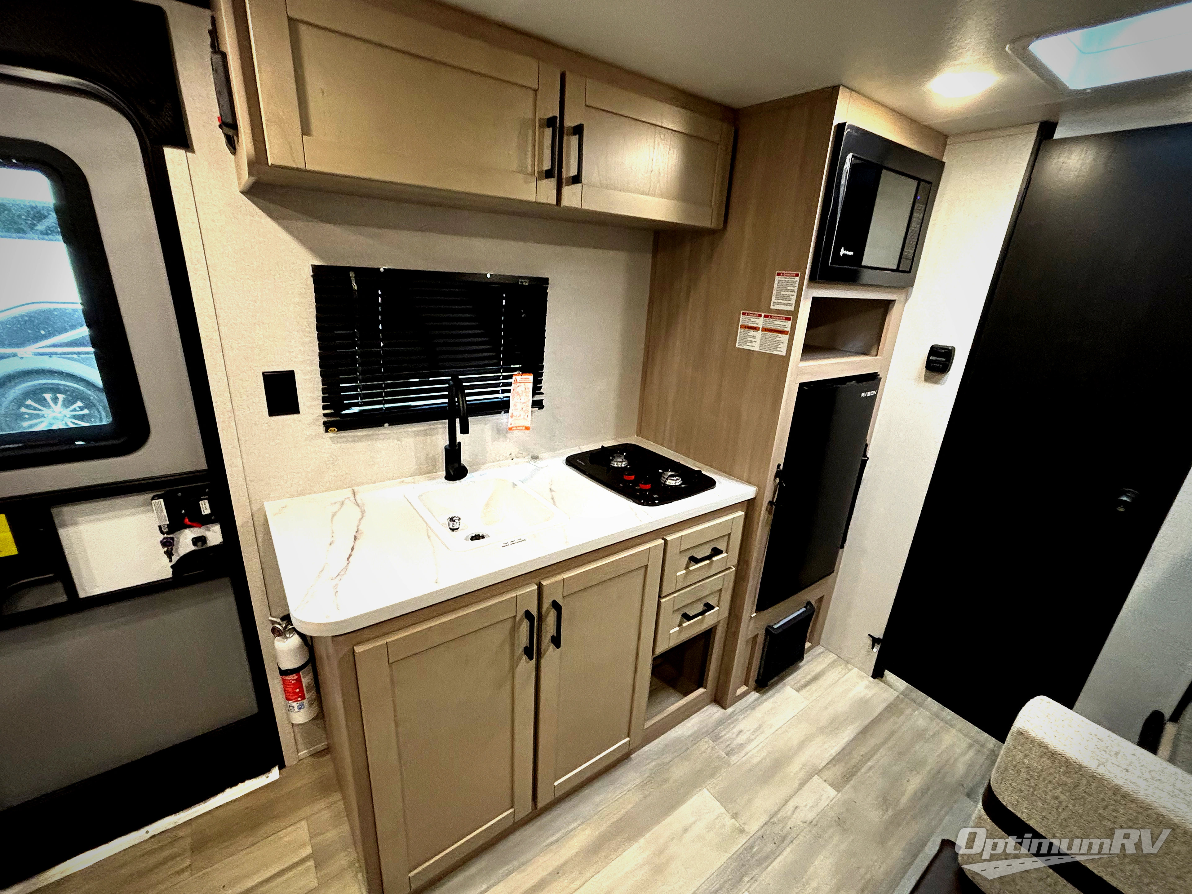 Camping trips are made easy in this Lynx Edition travel trailer with bunk beds for guests or little ones. You'll find the front queen bed for a great night's rest, along with a nightstand and wardrobe to keep your things tidy. The rear corner private bath includes a foot-flush toilet and a 24" x 36" shower, so you won't have to leave the camper in the middle of the night. A two-burner cooktop and microwave oven will let you make meals each day, and a 12V refrigerator will keep your food fresh!
