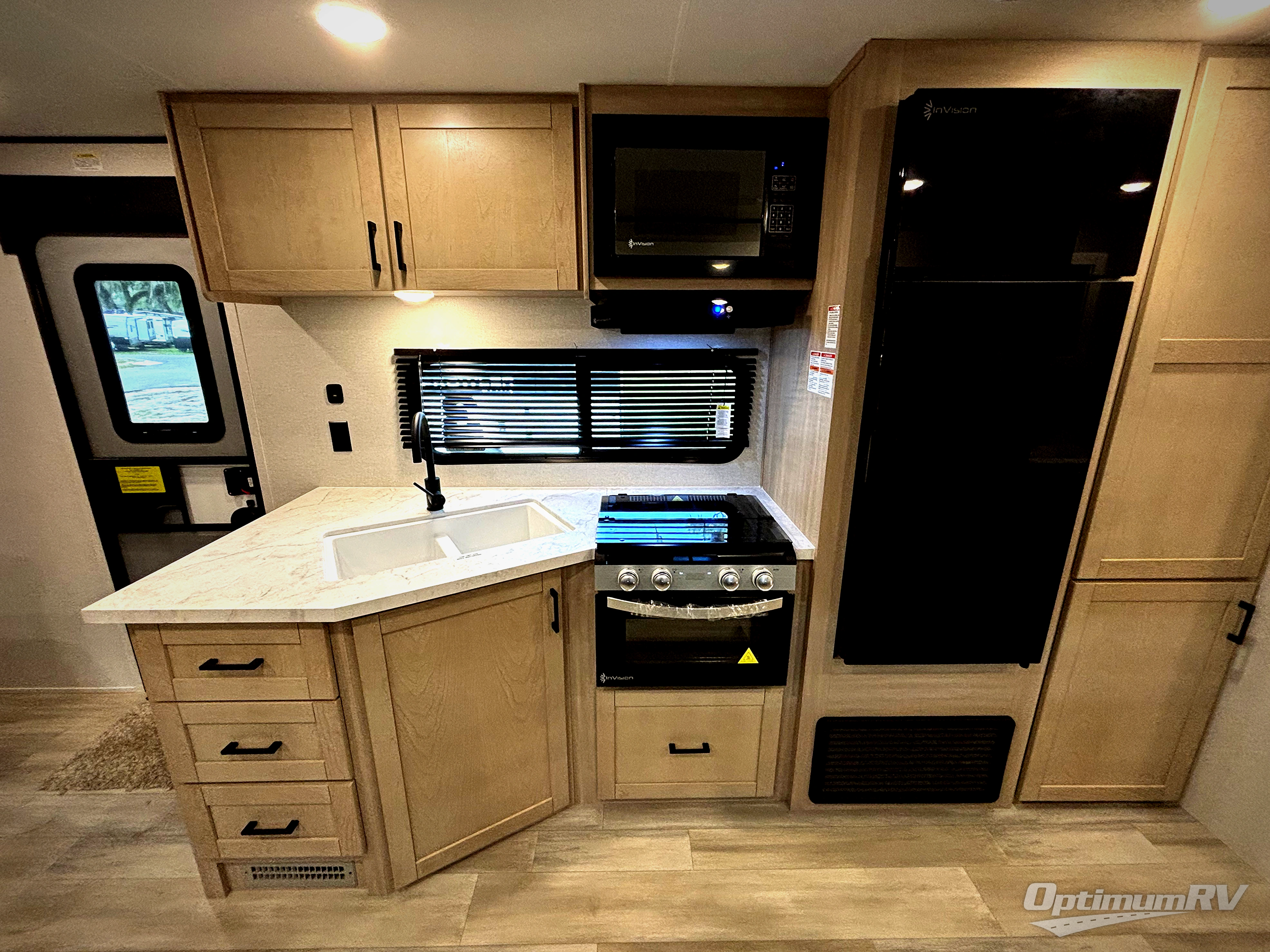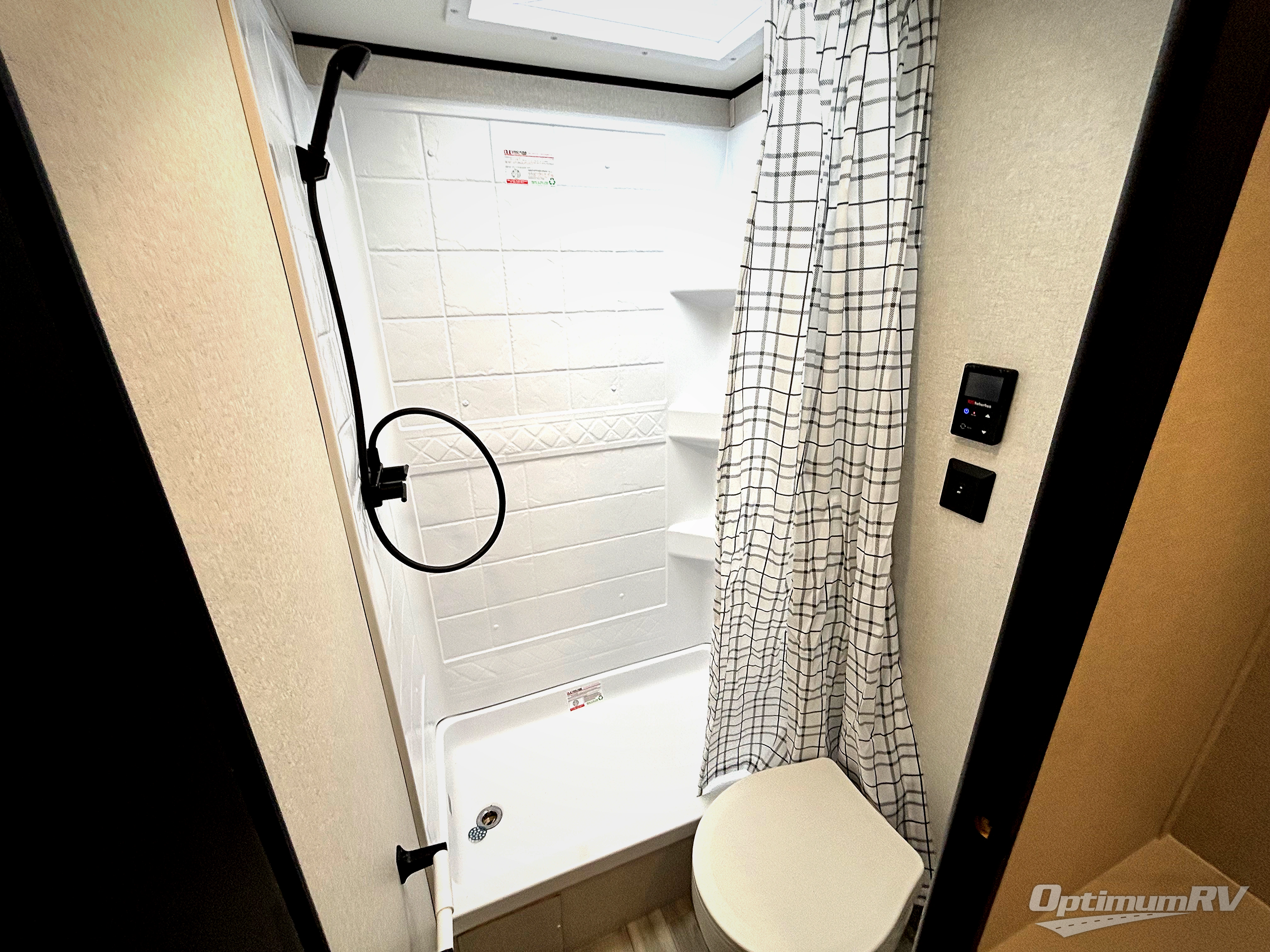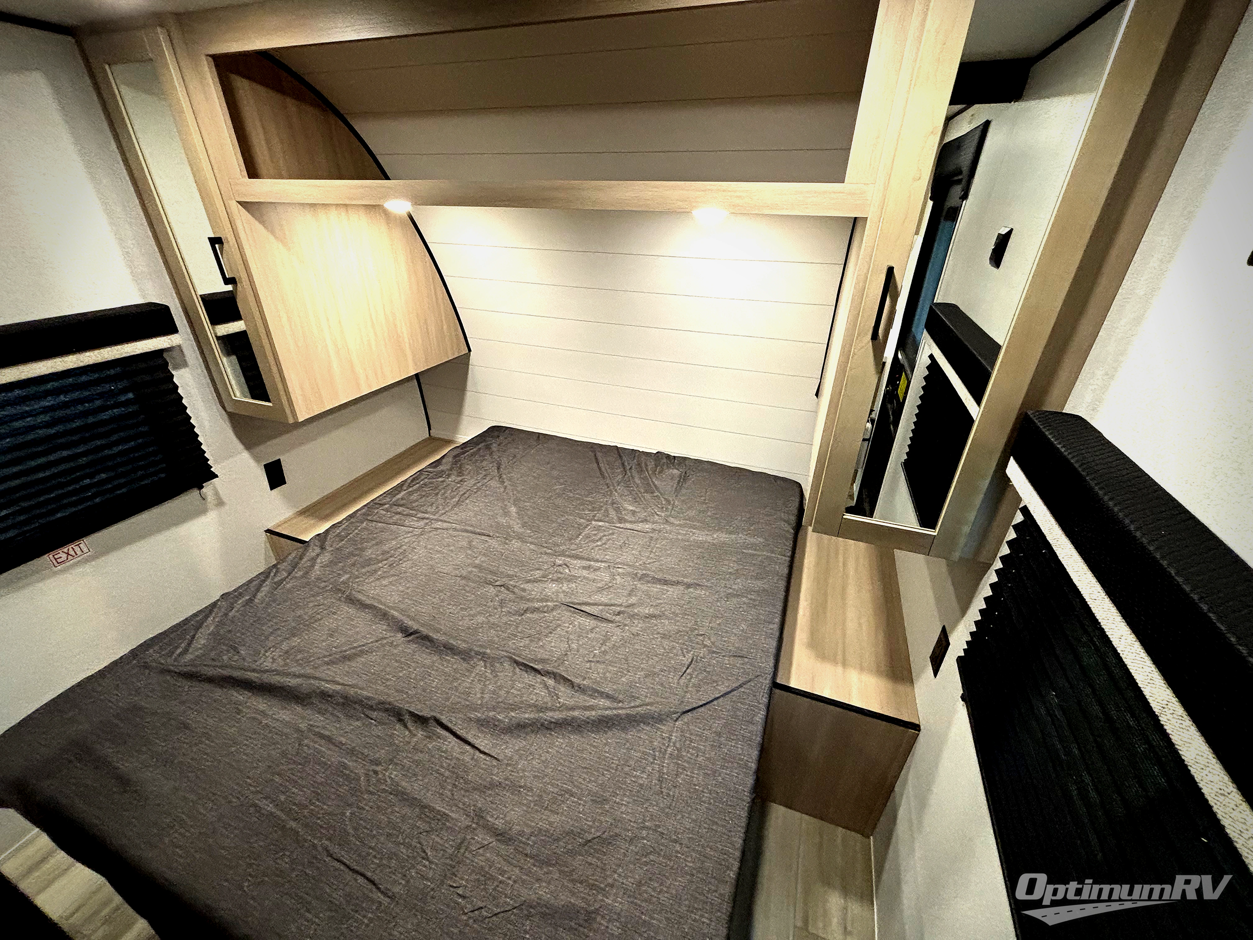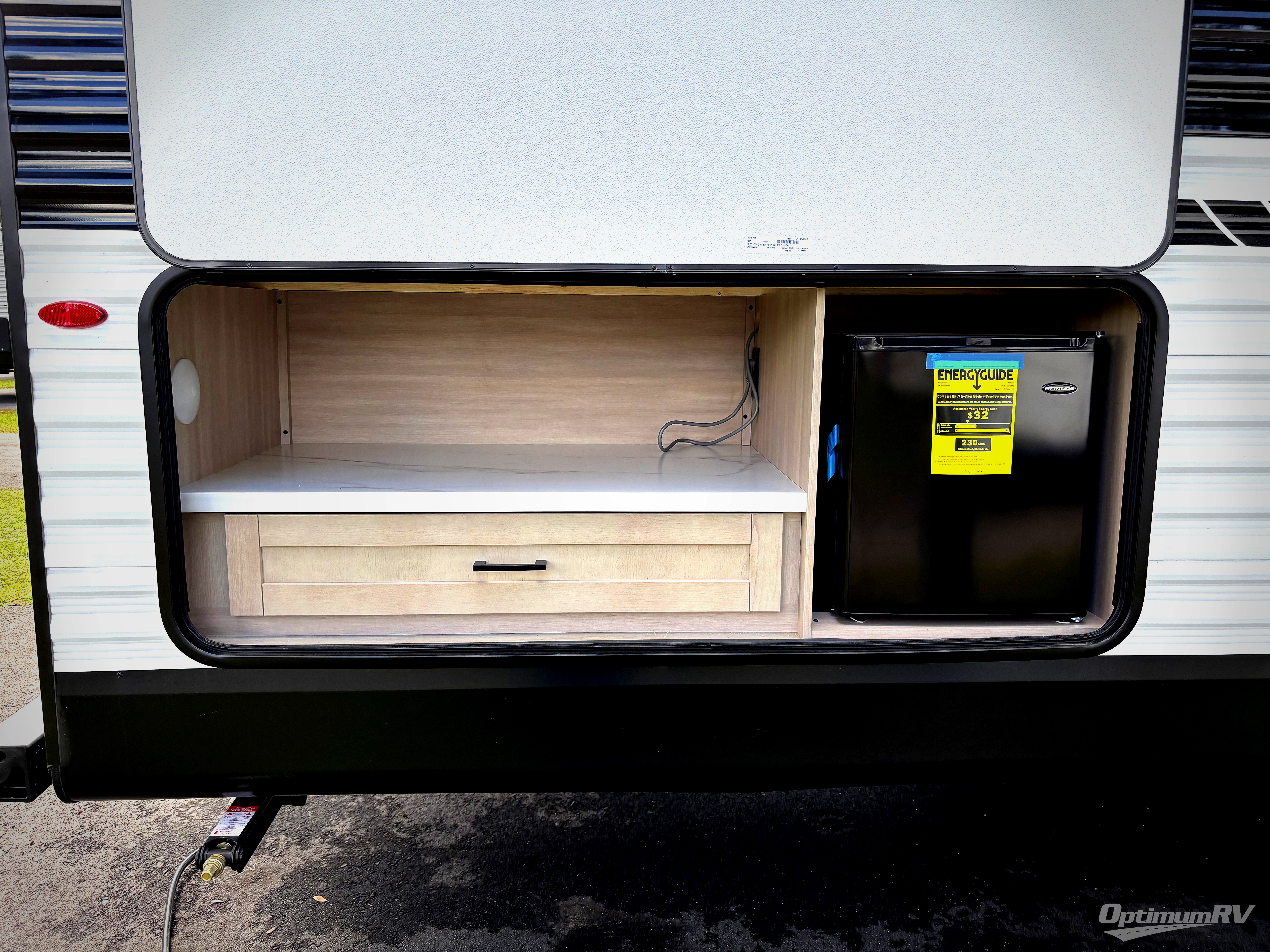 The whole gang will love weekends in the woods with this travel trailer in tow! There is a large slide out for added space, and here you'll find the jack-knife sofa and booth dinette. You can claim the front private bedroom to yourselves, while your guests or little ones take the double-size bunks. A full kitchen is complete with a three-burner cooktop and microwave oven to make meals each day, plus a 12V refrigerator and pantry for food storage. This unit also includes an outdoor kitchen with a refrigerator to keep cold drinks ready to enjoy!