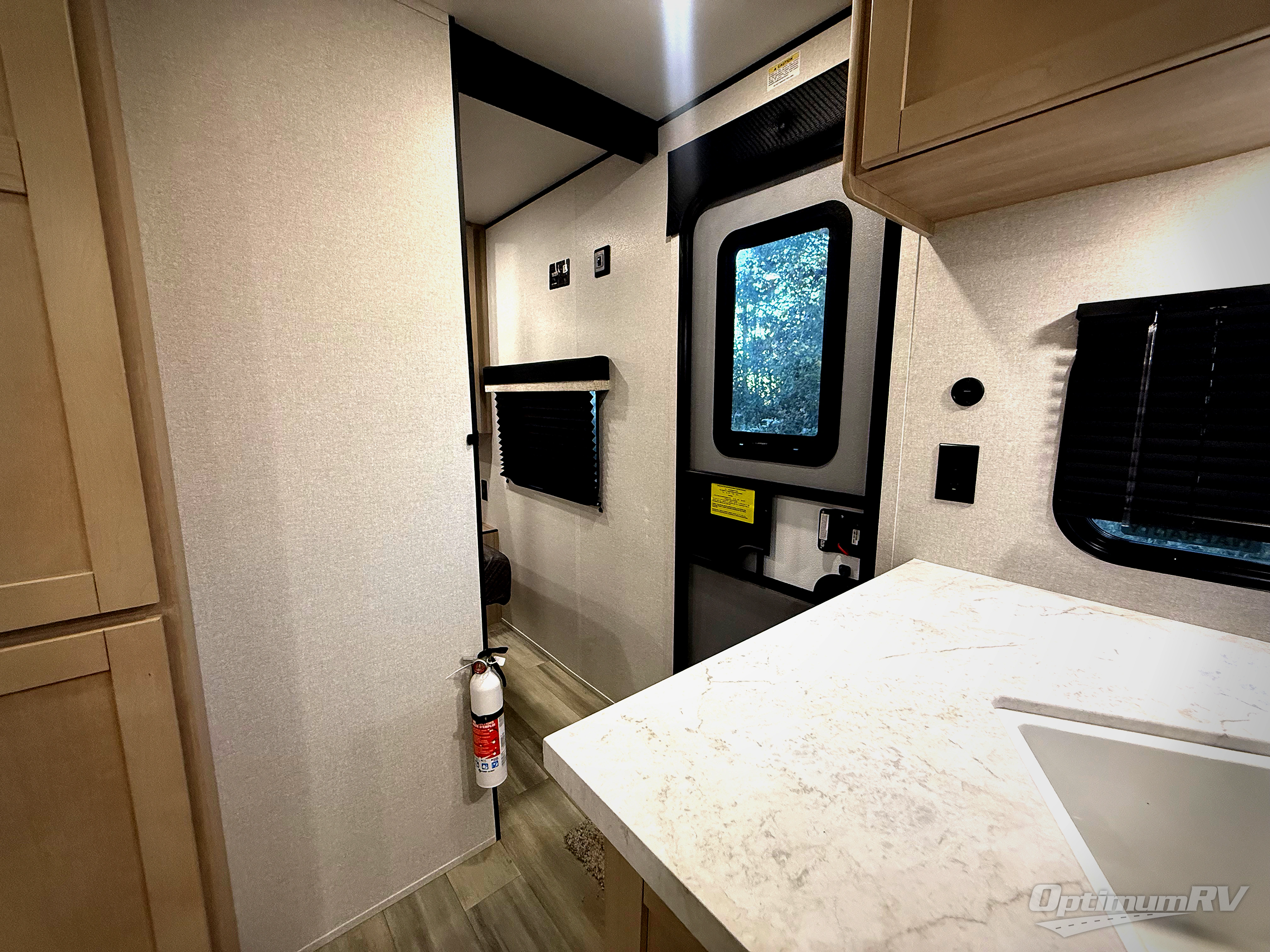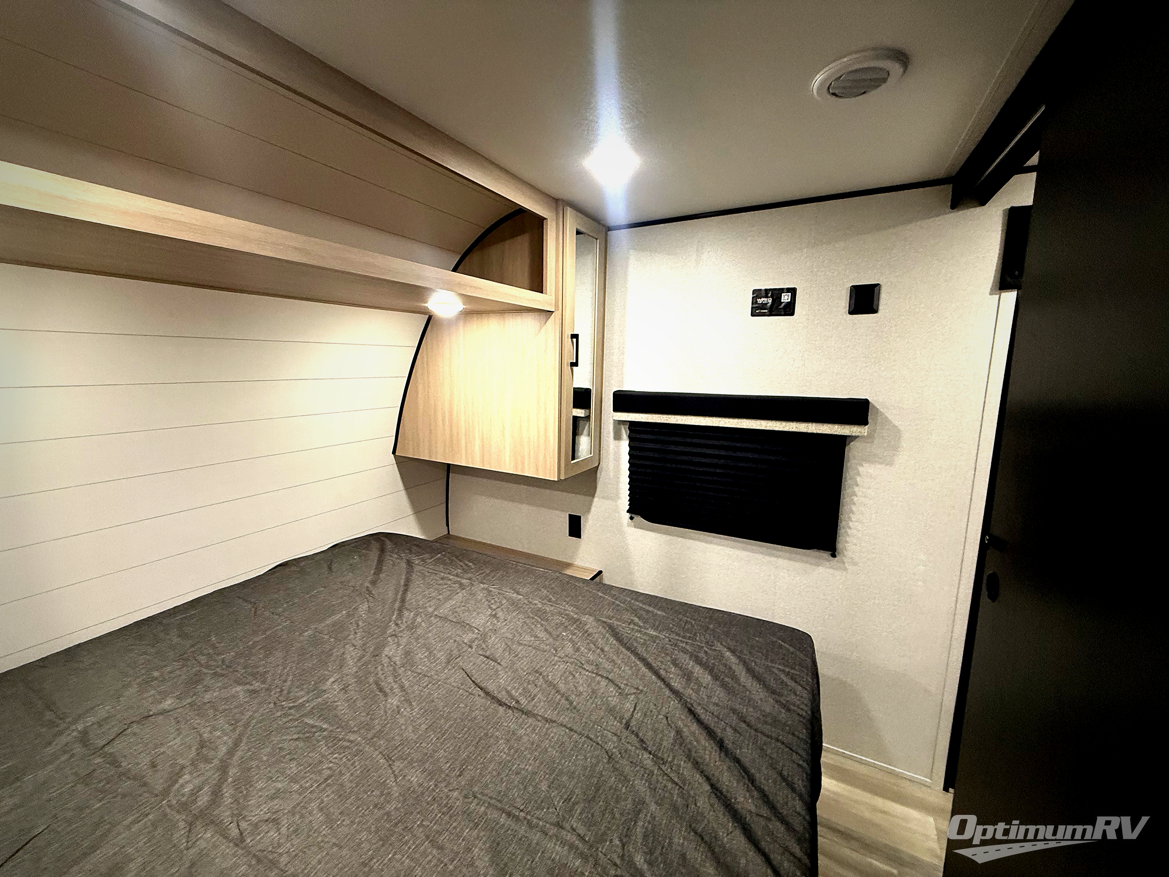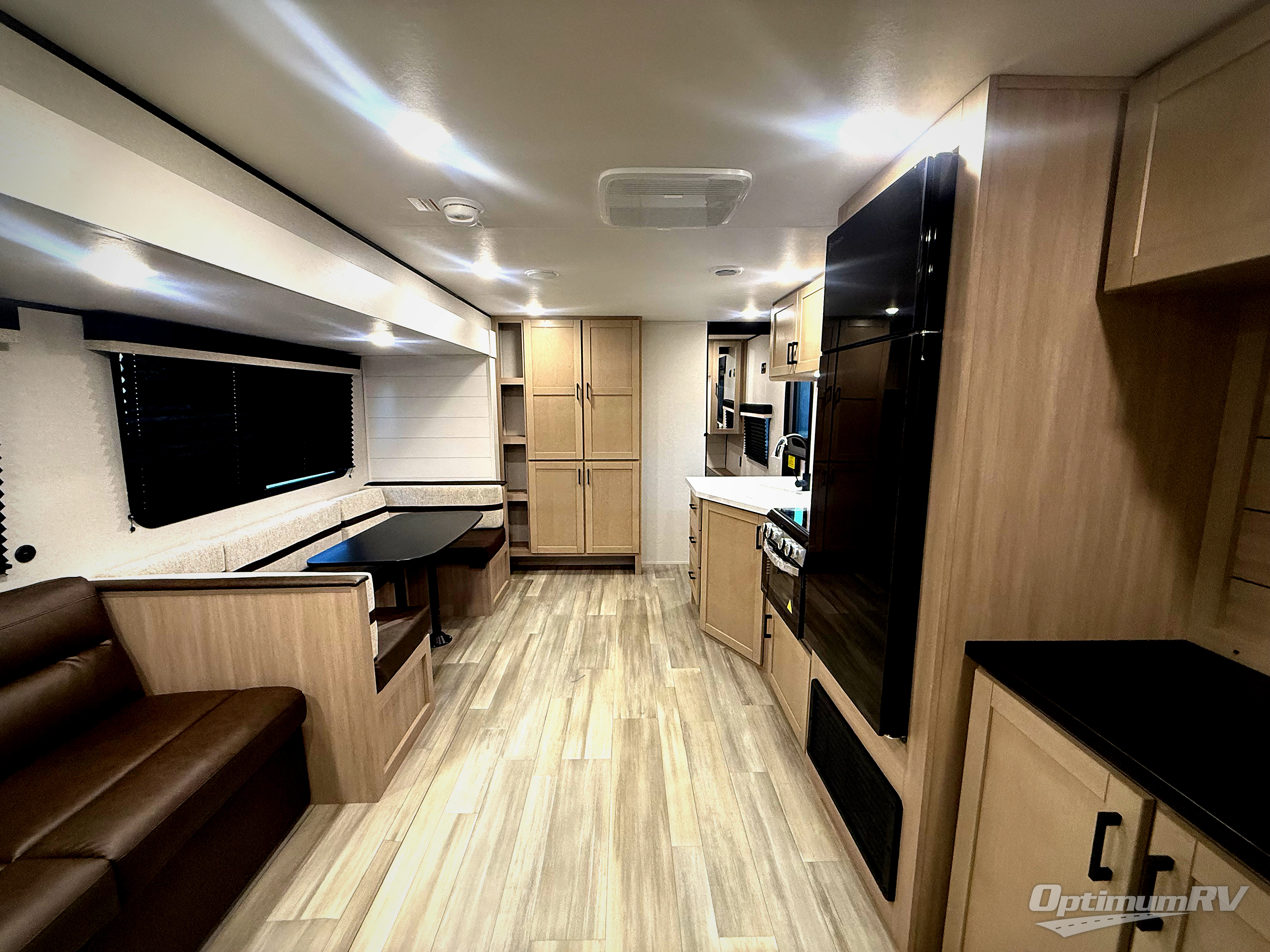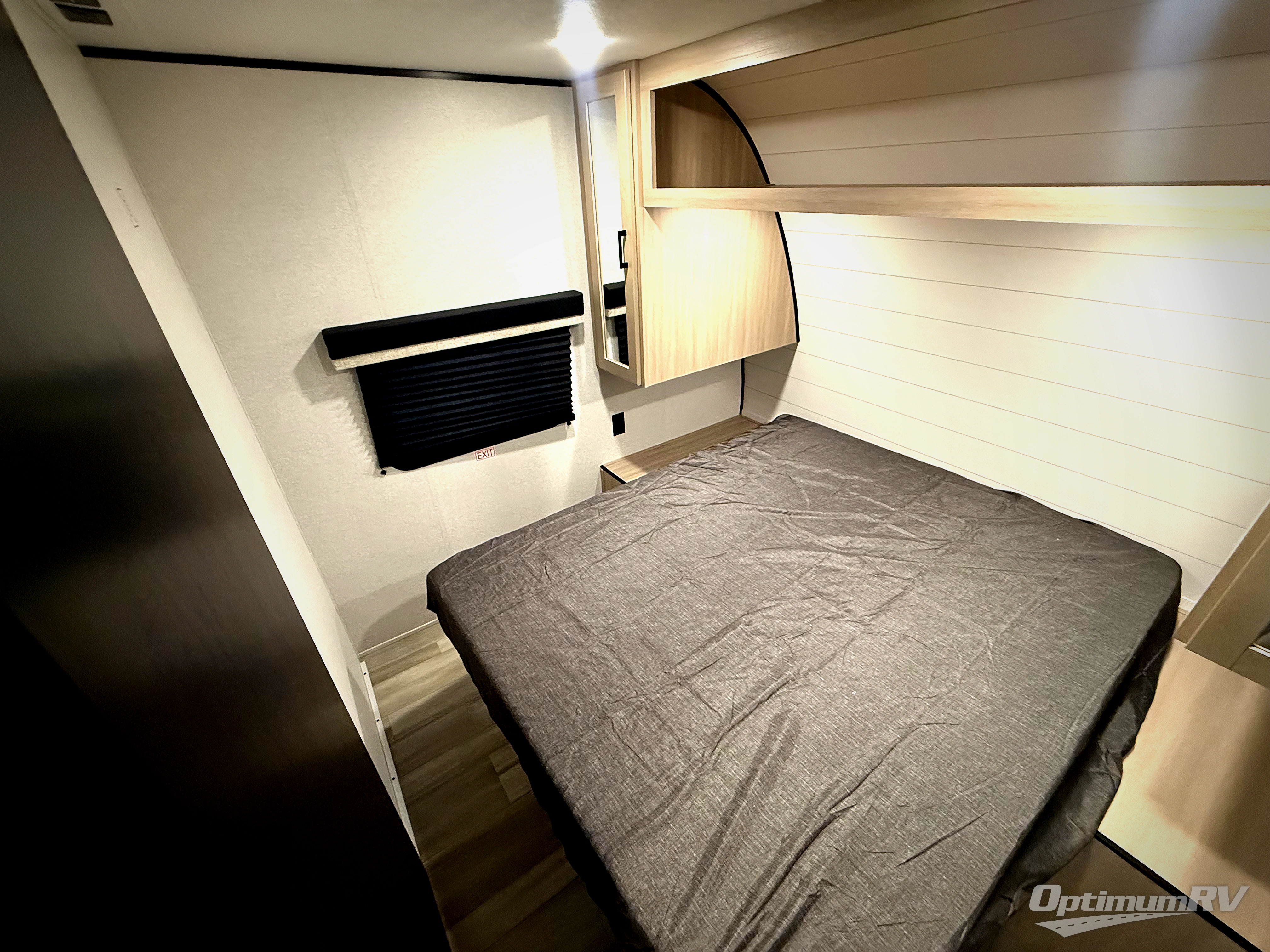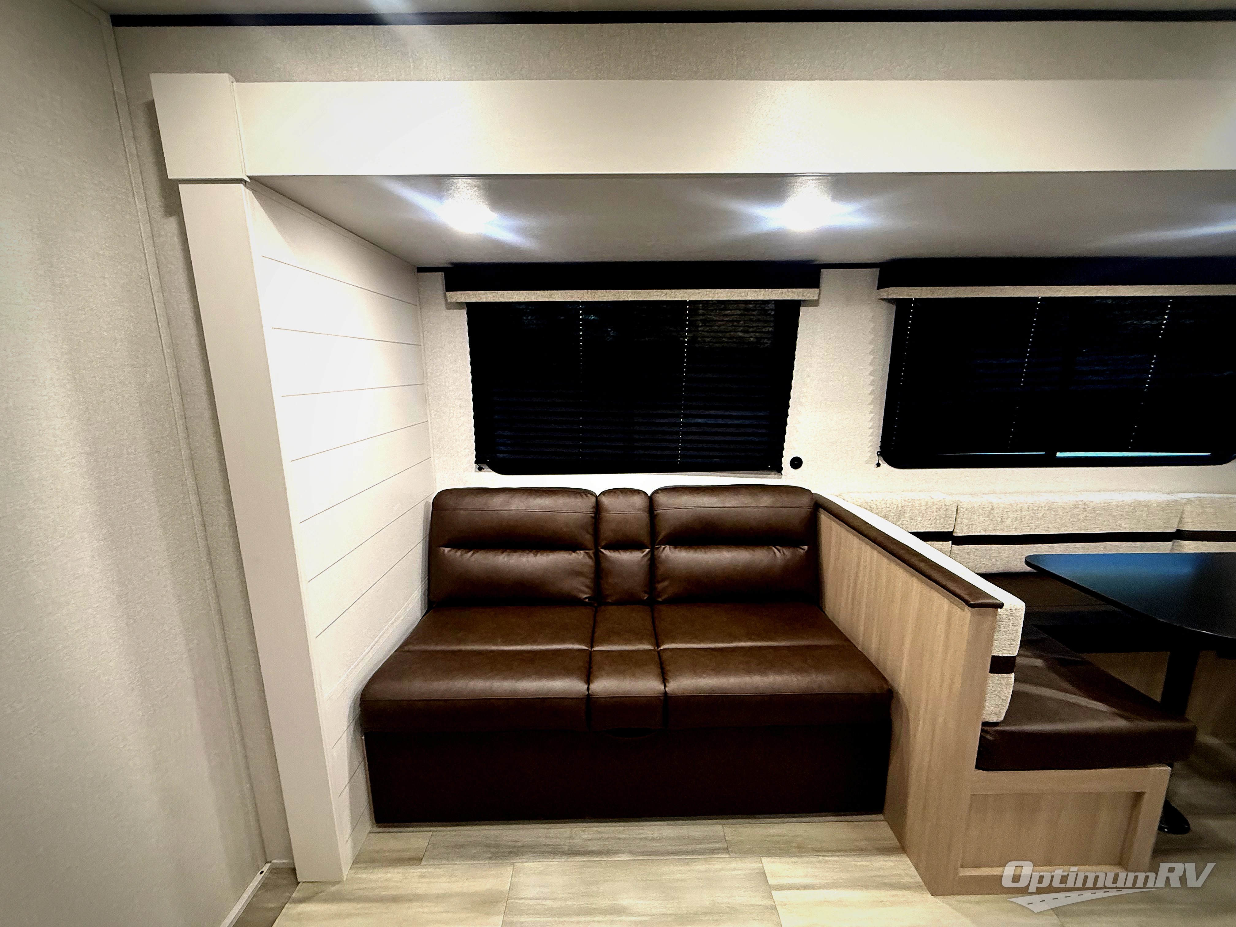 The whole gang will love weekends in the woods with this travel trailer in tow! There is a large slide out for added space, and here you'll find the jack-knife sofa and U-shaped dinette. There is also an entertainment center with a fireplace for cozy evenings indoors, and you'll appreciate the storage cabinet and shelves for board games, movies and more! You can claim the front private bedroom to yourselves, while your guests or little ones take the double-size bunks. A full kitchen is complete with a three-burner cooktop and microwave oven to make meals each day, plus a 12V refrigerator for food storage. This unit also includes an outdoor kitchen with a refrigerator to keep cold drinks ready to enjoy!