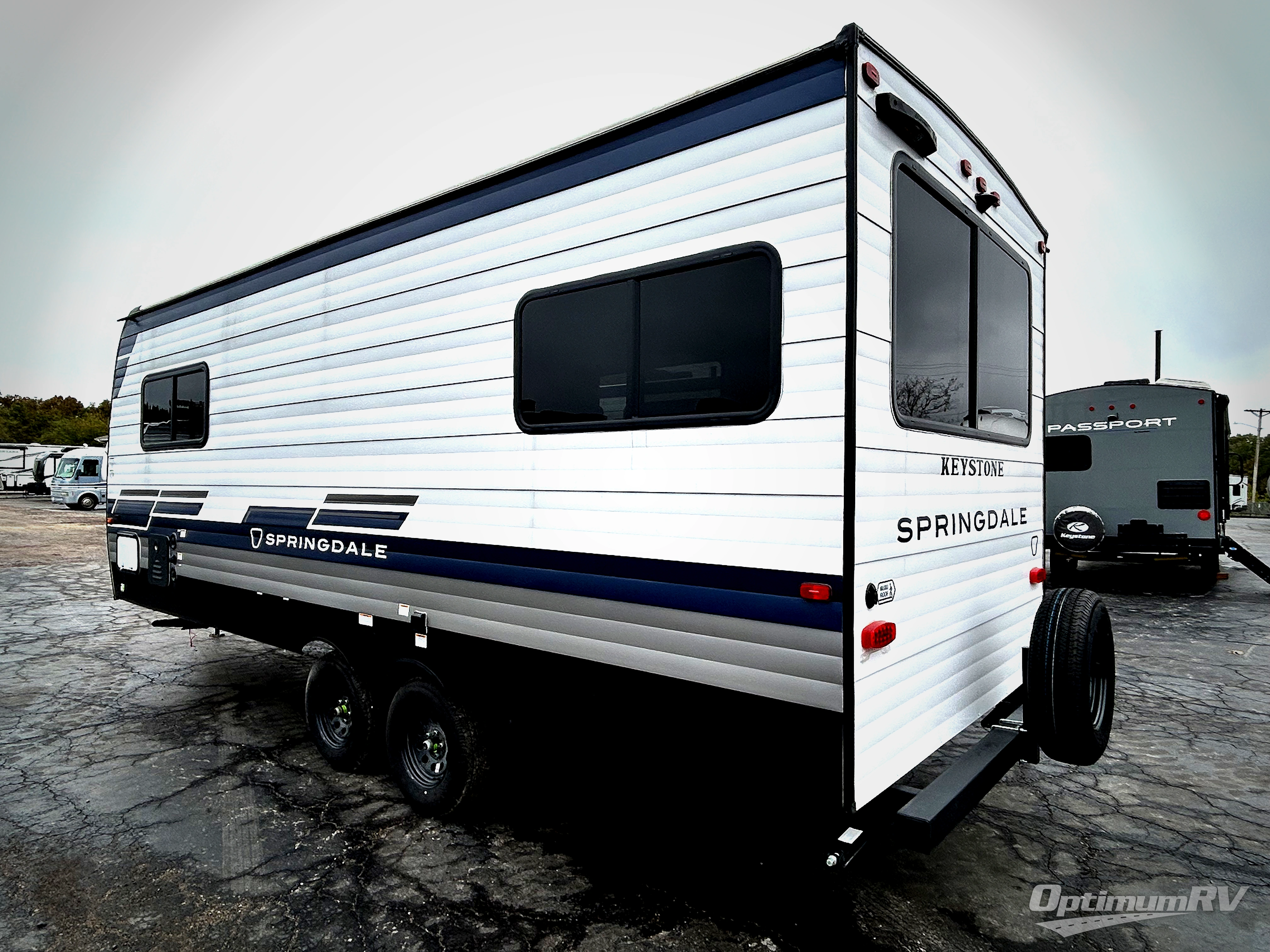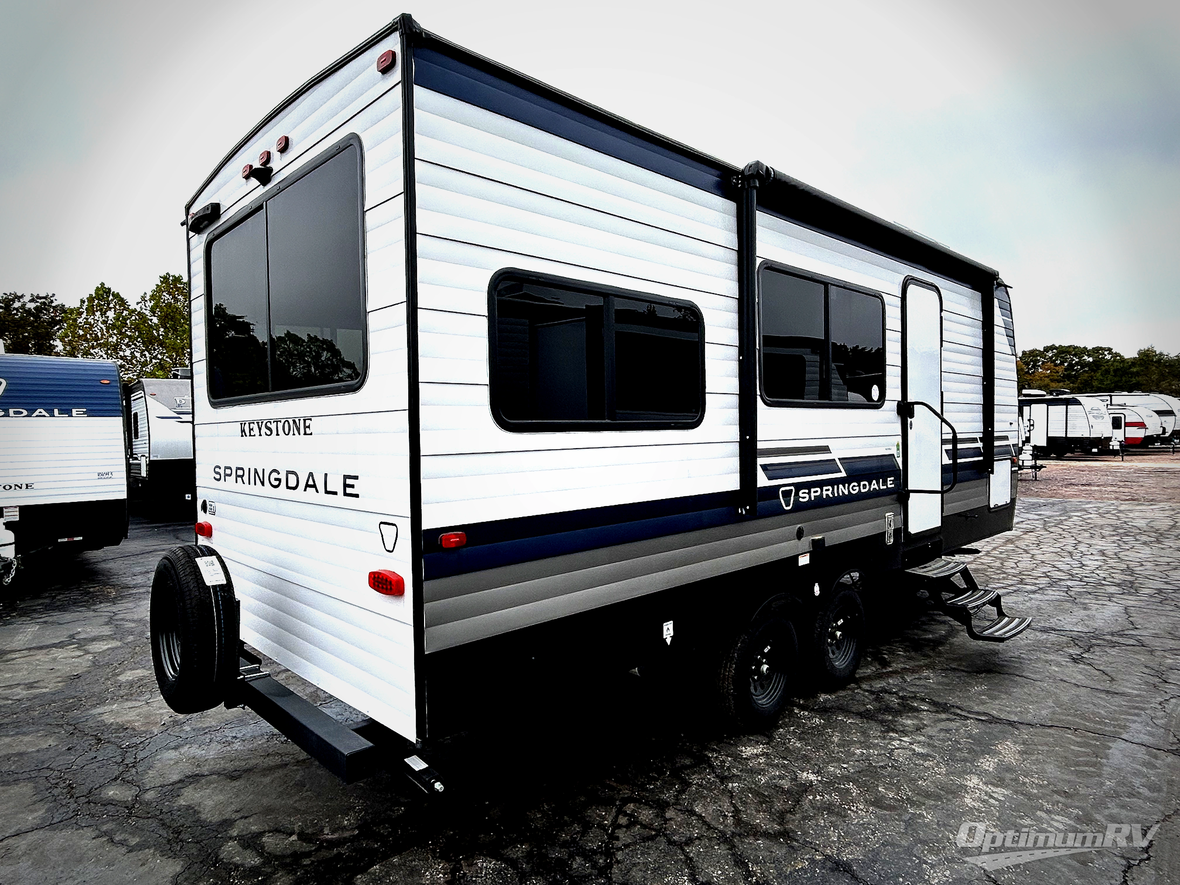 The Springdale Classic travel trailers by Keystone will provide you and your family many great outdoor experiences and it will also be kind to your pocketbook. Each one is constructed with a walkable roof and an I-beam frame with stamped steel cross-members and outriggers for added strength. There are also heavy-duty stabilizer jacks and power tongue jacks outside, along with an XL entry assist handle for added convenience. Each travel trailer includes LED lighting, bedside outlets, and blackout night shades inside that will provide you with more privacy at night.